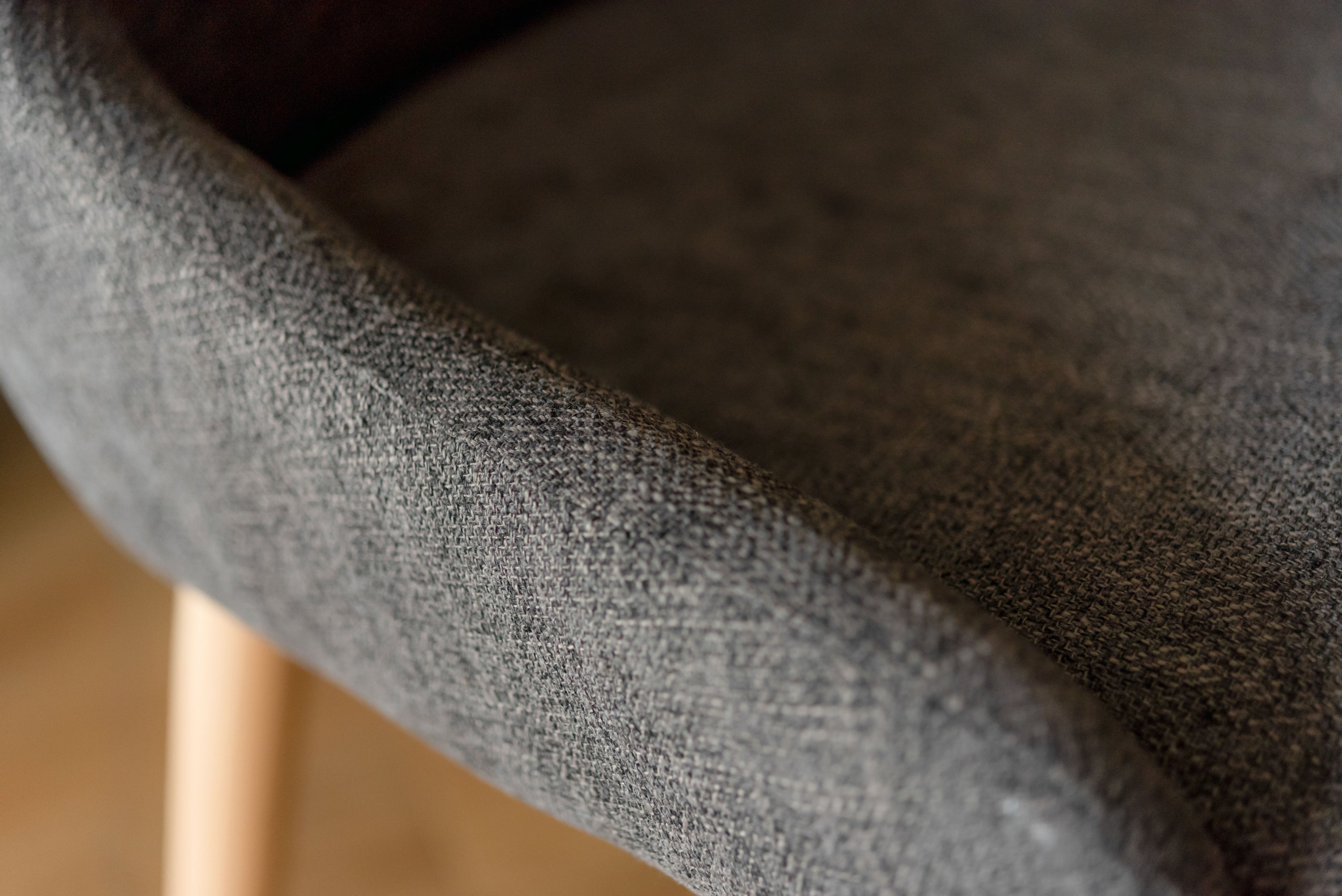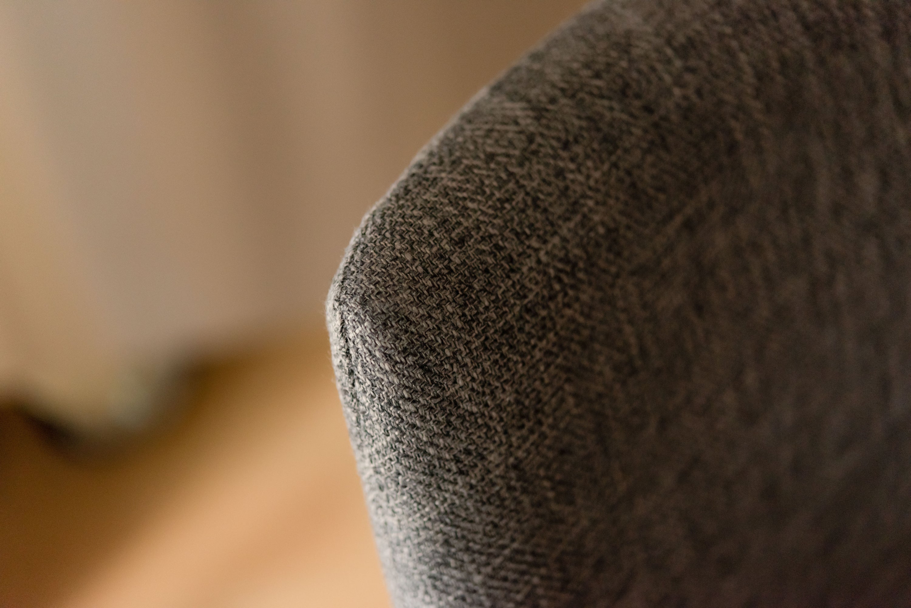 身体を包み込むような曲線を取り入れたフォルムと、表情豊かな木目が特徴のアッシュ材を組み合わせたハイバックチェア。背もたれに柔らかいカーブを掛け、背中にピッタリフィットする設計のチェア。しっとりとした感触の、手触りの良いファブリックを採用。後脚は八の字に広がる形状でデザイン性をプラス。座面は快適に使用していただけるよう、硬すぎず柔らかすぎない適度なクッション性を持たせました。脚裏は床への傷を防止するフェルト付き。