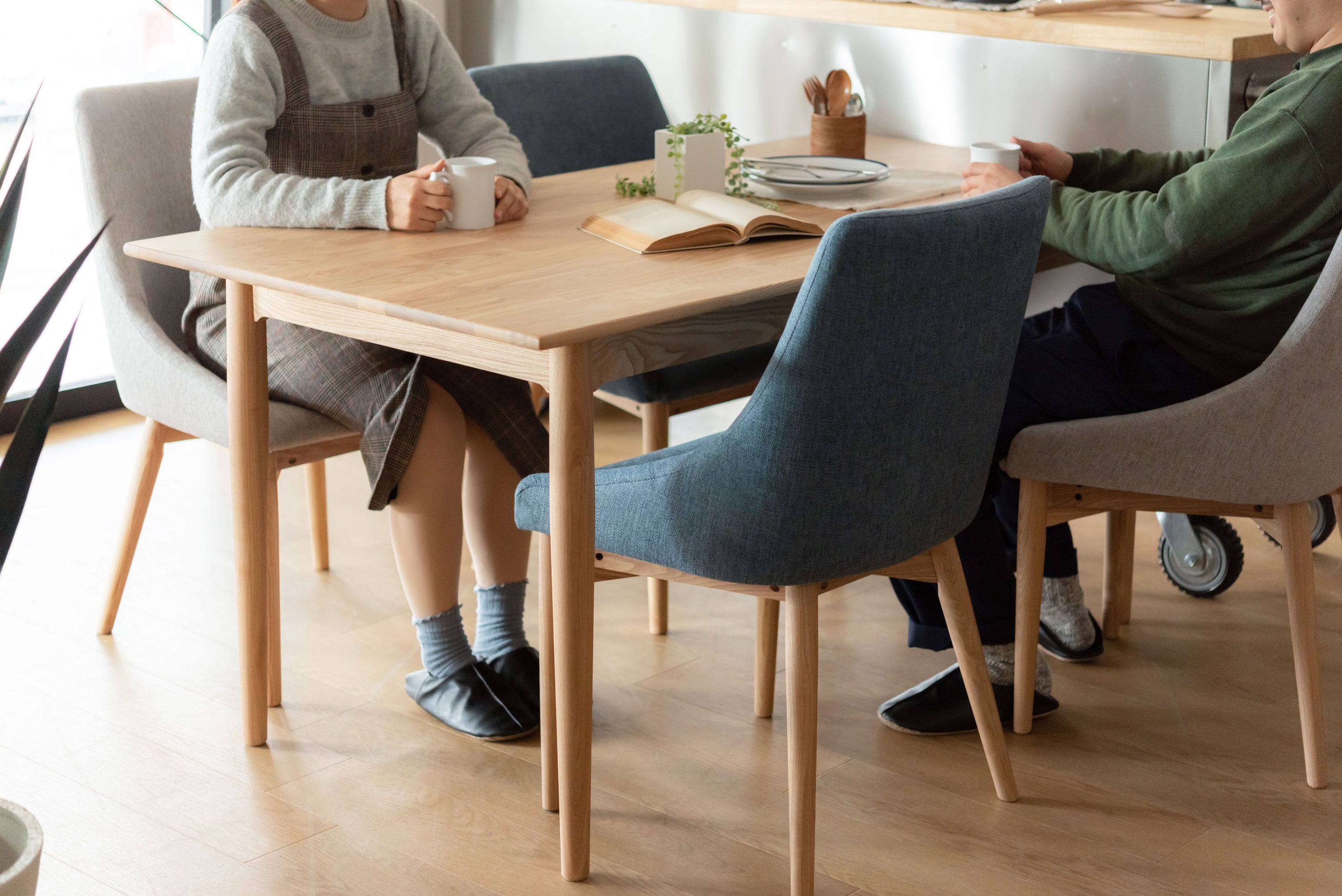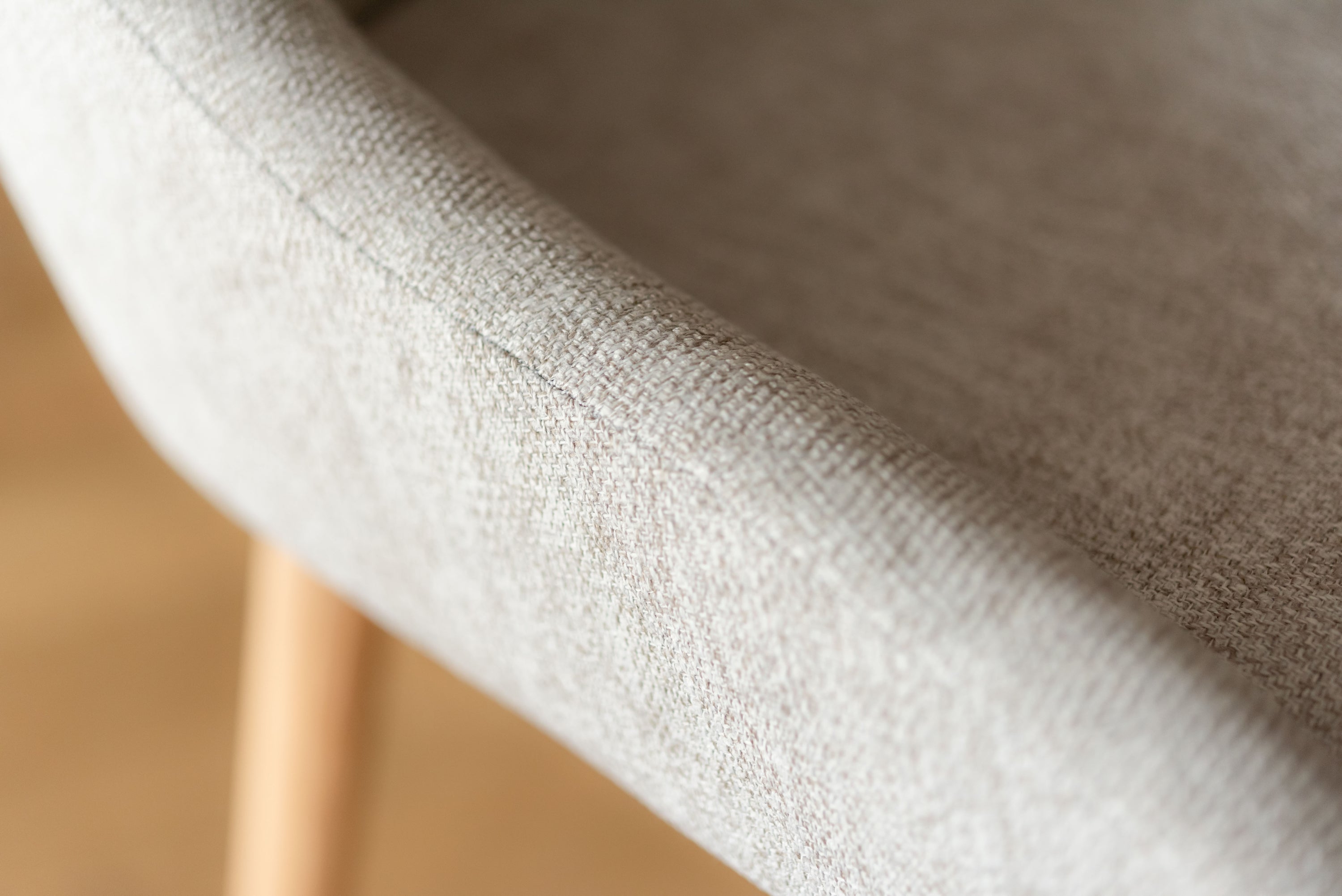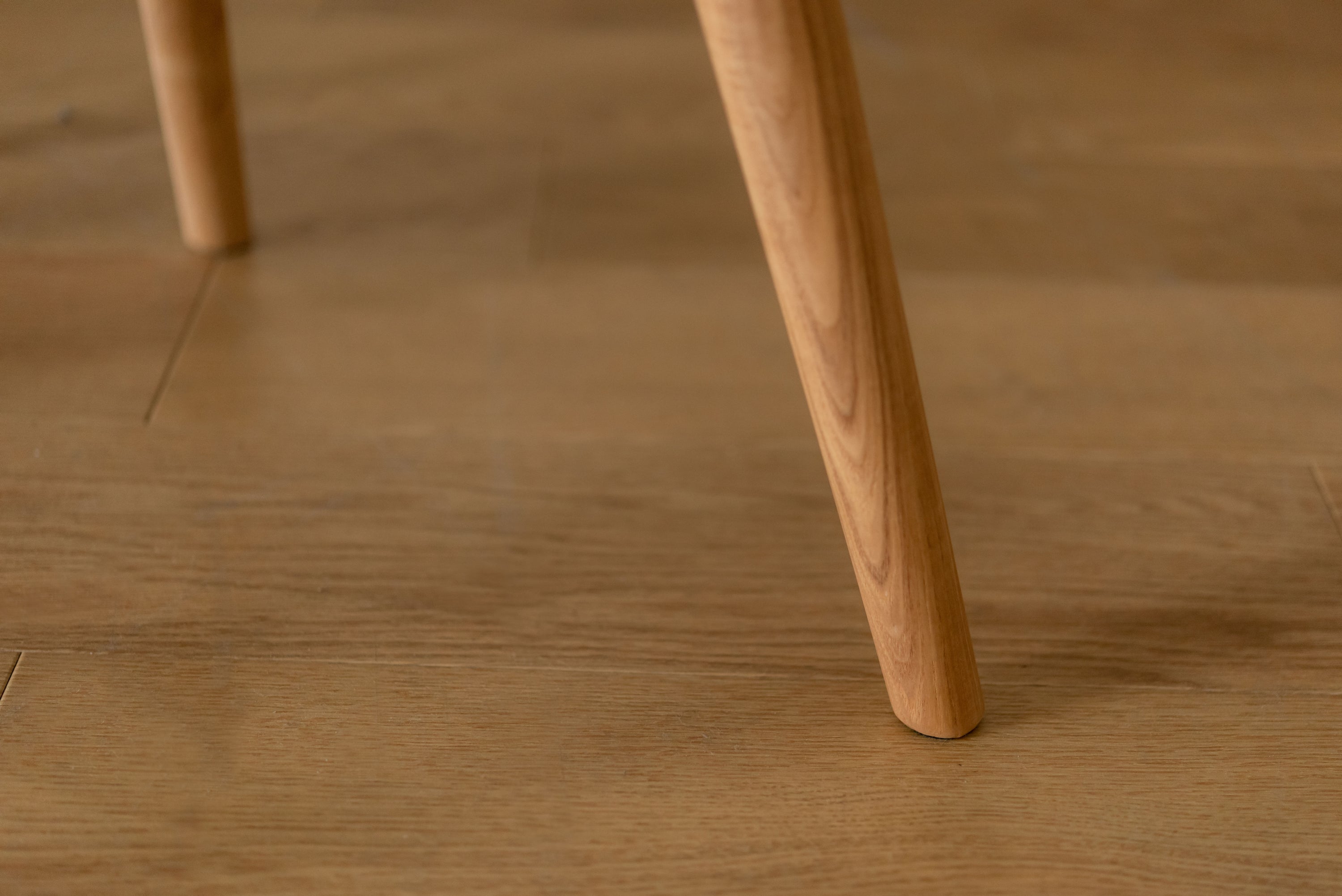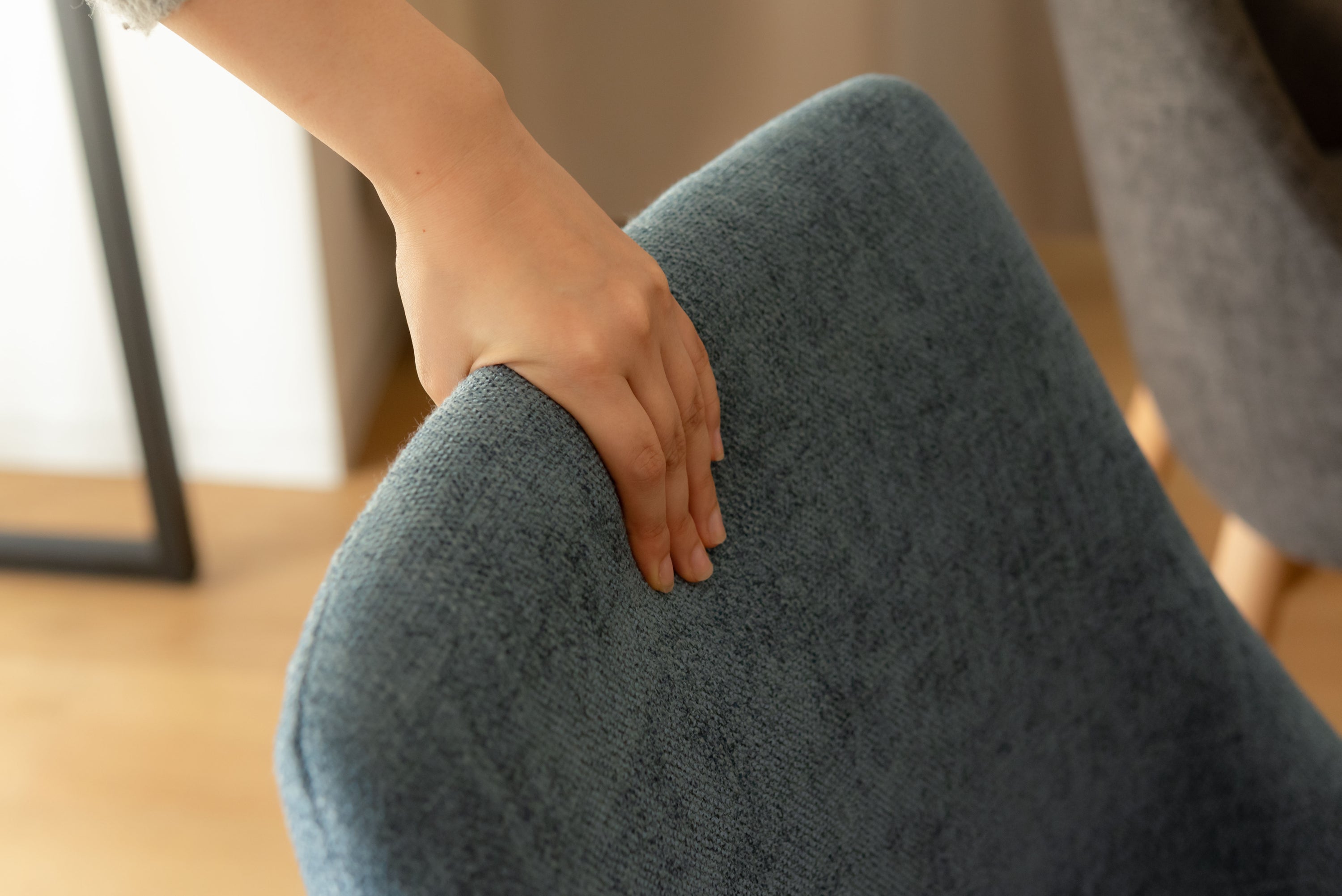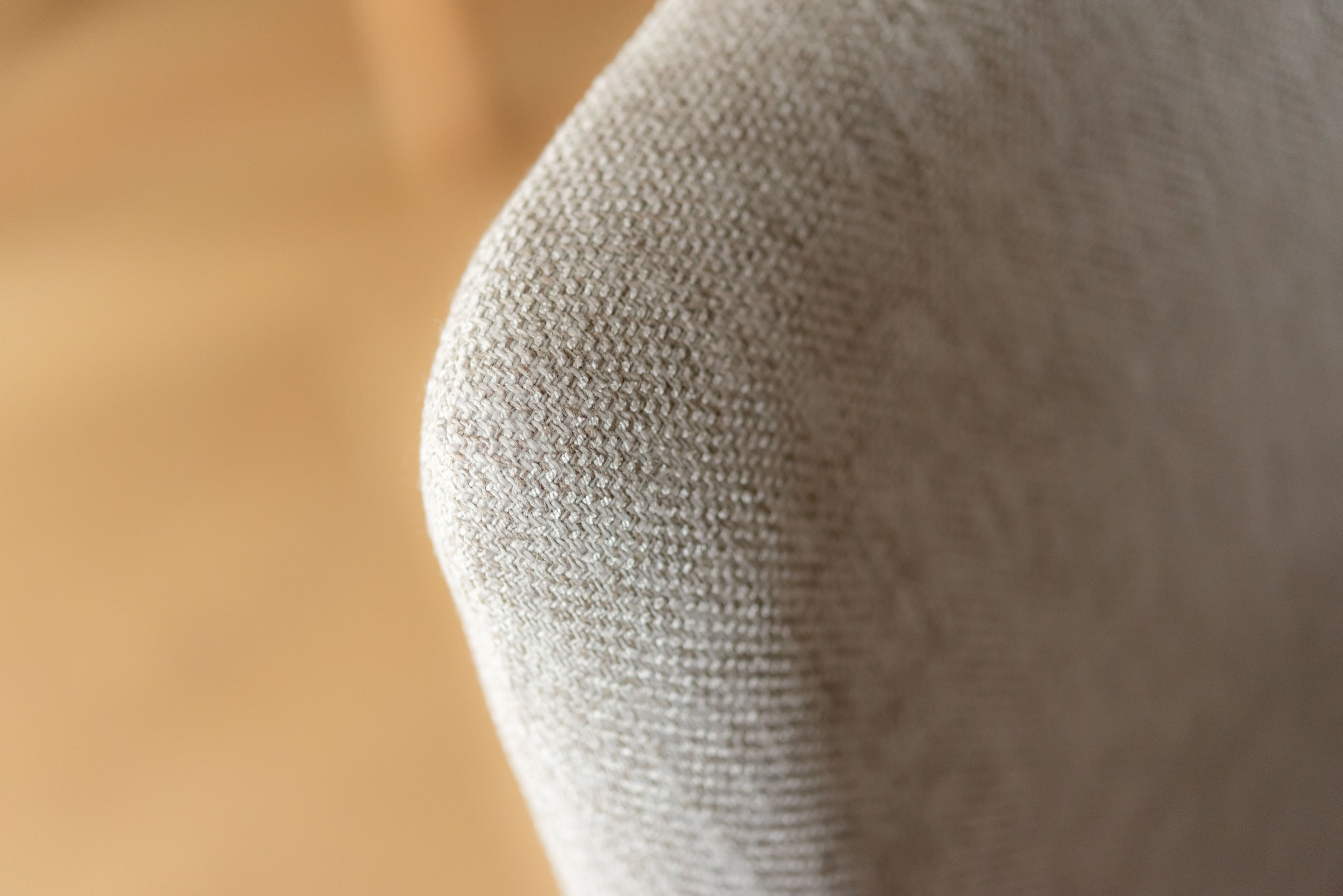 身体を包み込むような曲線を取り入れたフォルムと、表情豊かな木目が特徴のアッシュ材を組み合わせたハイバックチェア。背もたれに柔らかいカーブを掛け、背中にピッタリフィットする設計のチェア。しっとりとした感触の、手触りの良いファブリックを採用。後脚は八の字に広がる形状でデザイン性をプラス。座面は快適に使用していただけるよう、硬すぎず柔らかすぎない適度なクッション性を持たせました。脚裏は床への傷を防止するフェルト付き。