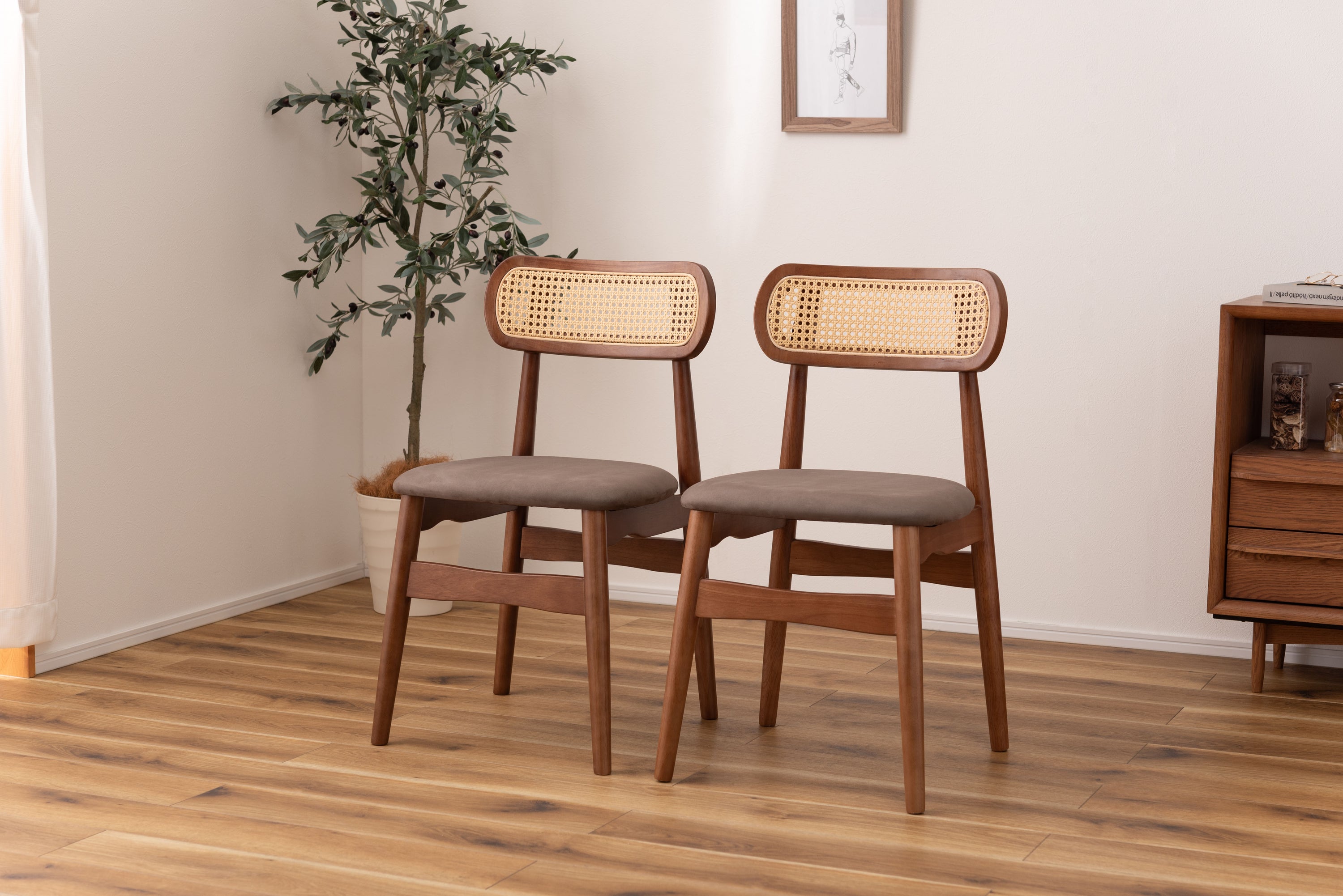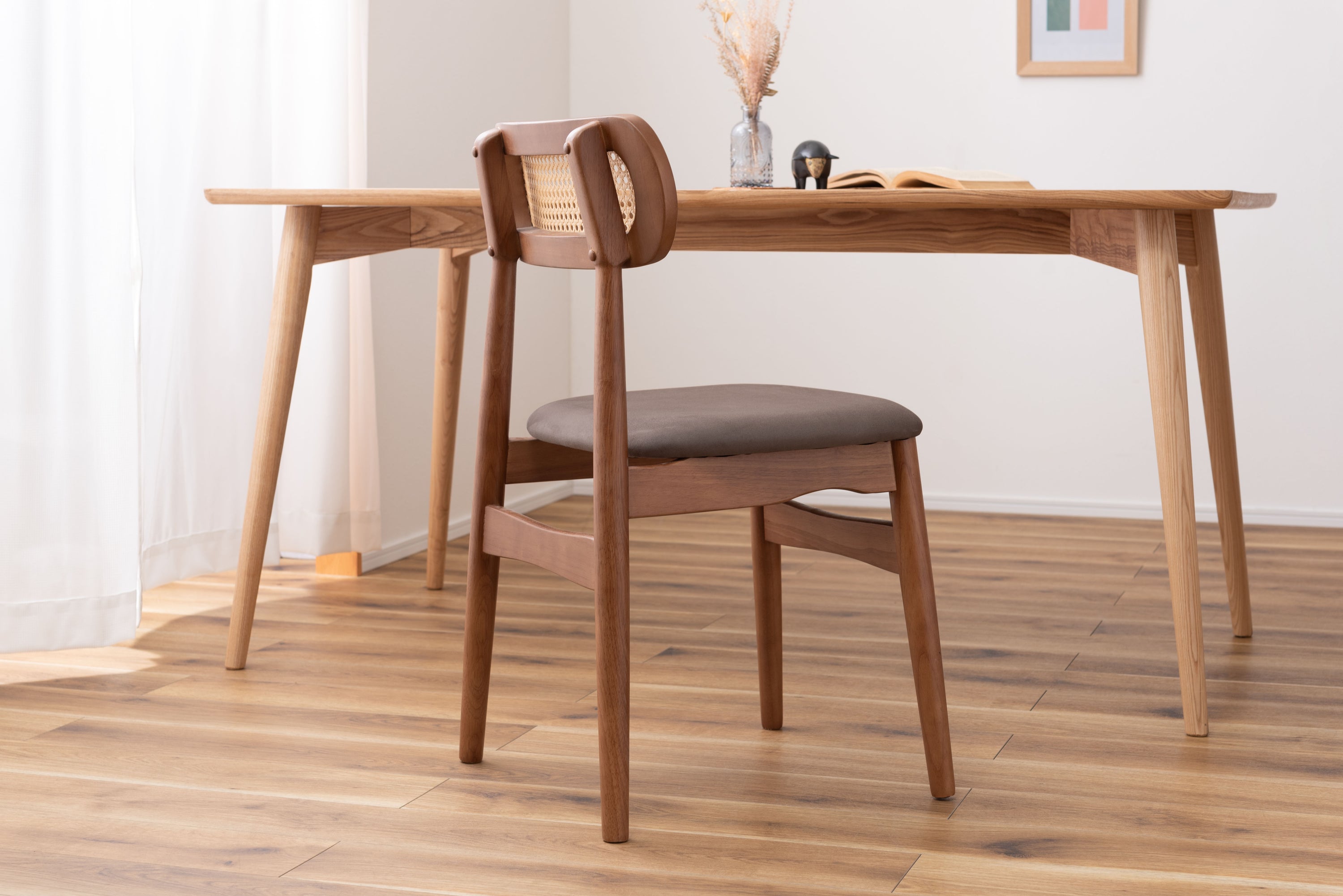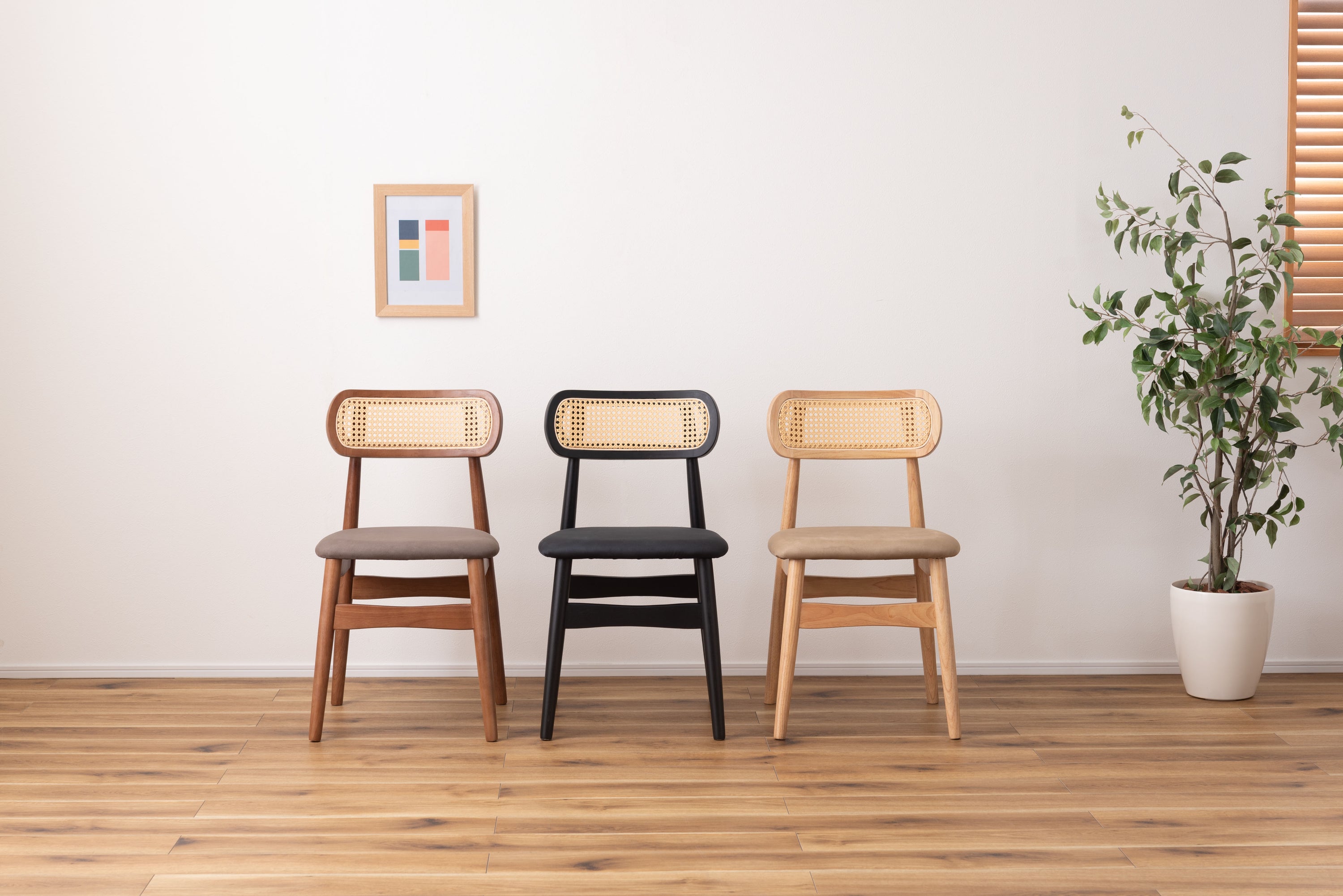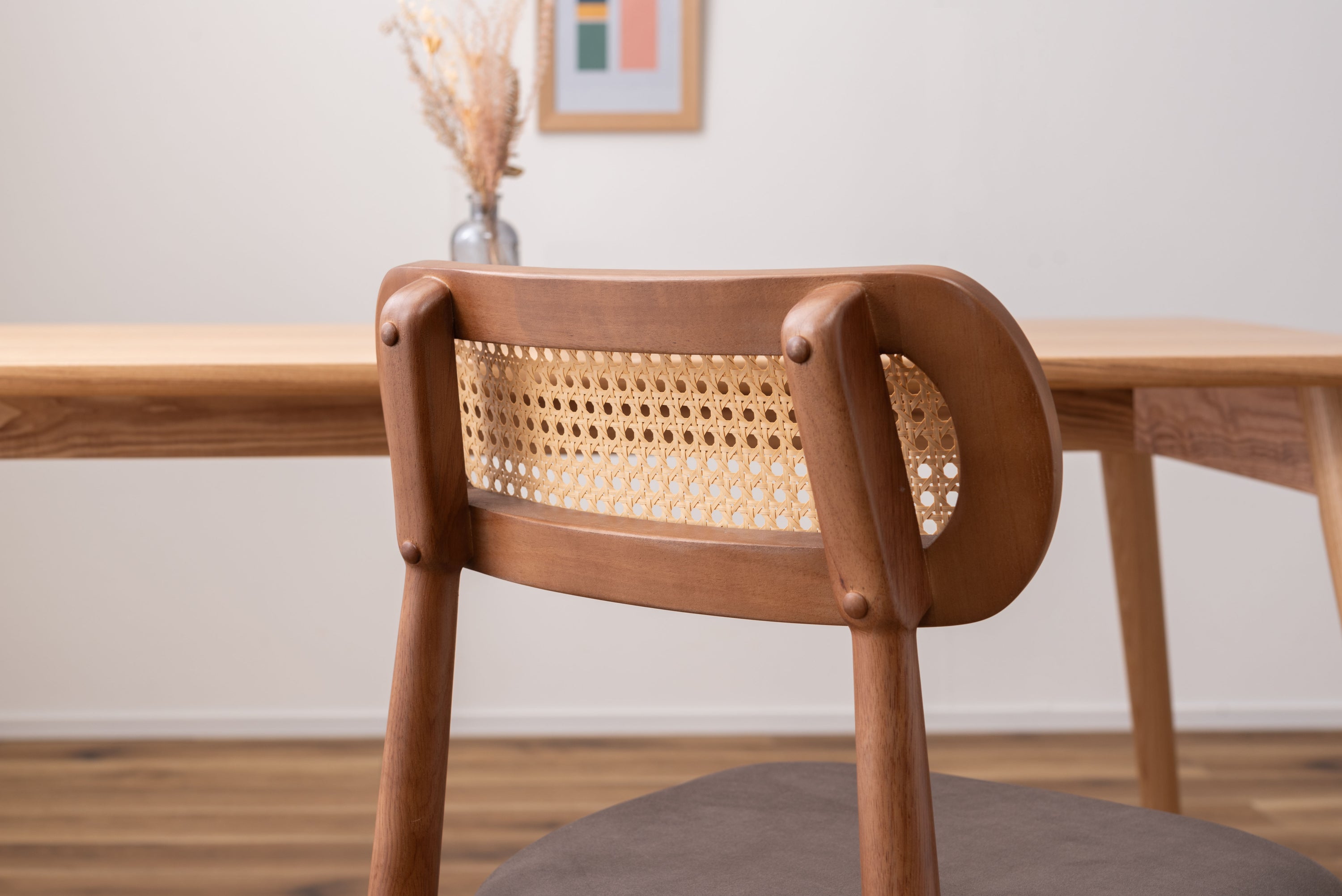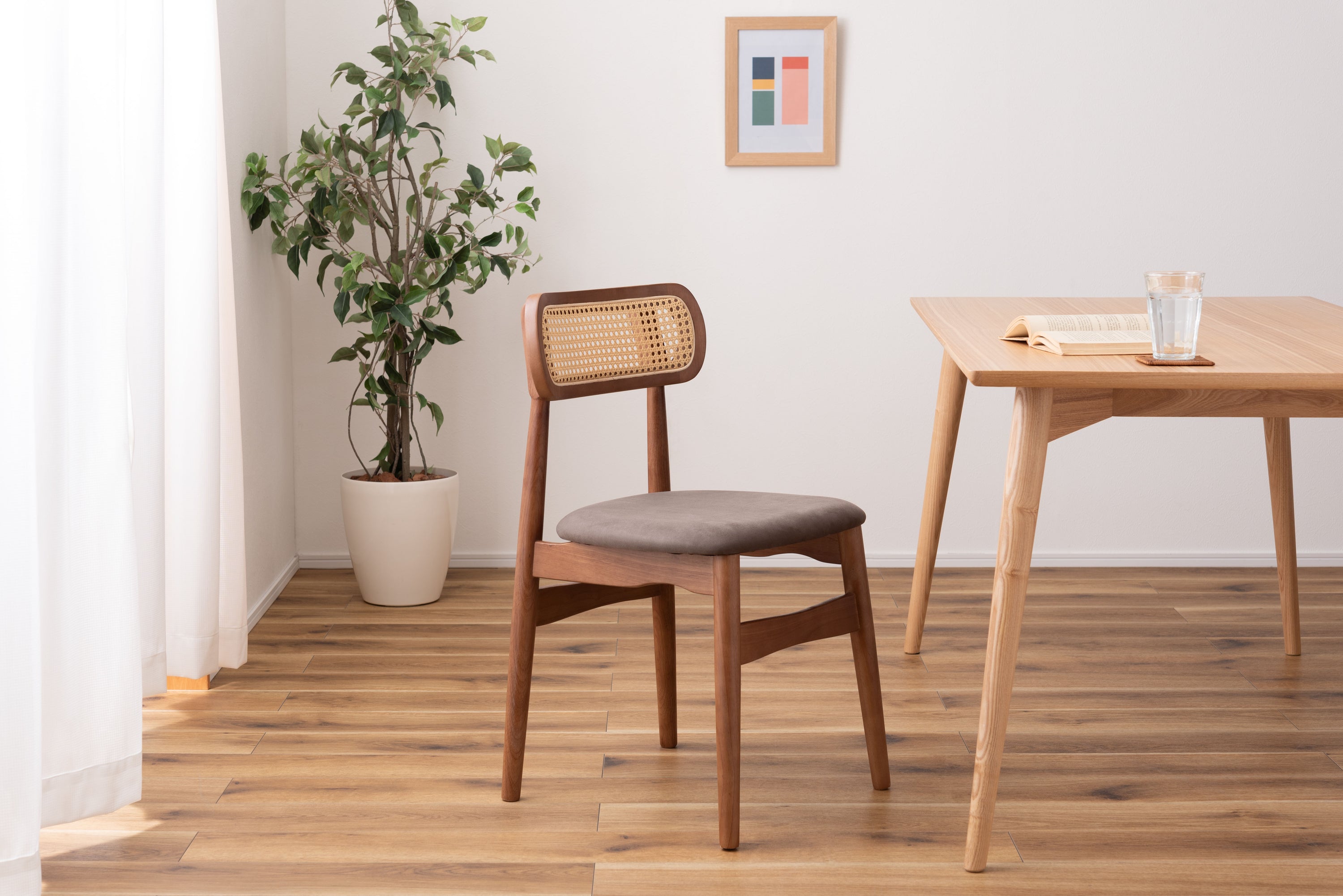 高級感のあるスエード調の座面×天然木×ポリプロピレン素材の人口ラタンが優しい雰囲気を作り出してくれるチェア。 角の無い丸みのあるデザインでどんなインテリアにもなじみます。 ささくれが無いため衣類の繊維が絡みません 単色でありながら表情豊かなスエード調の生地 天然木を使用した木フレーム
