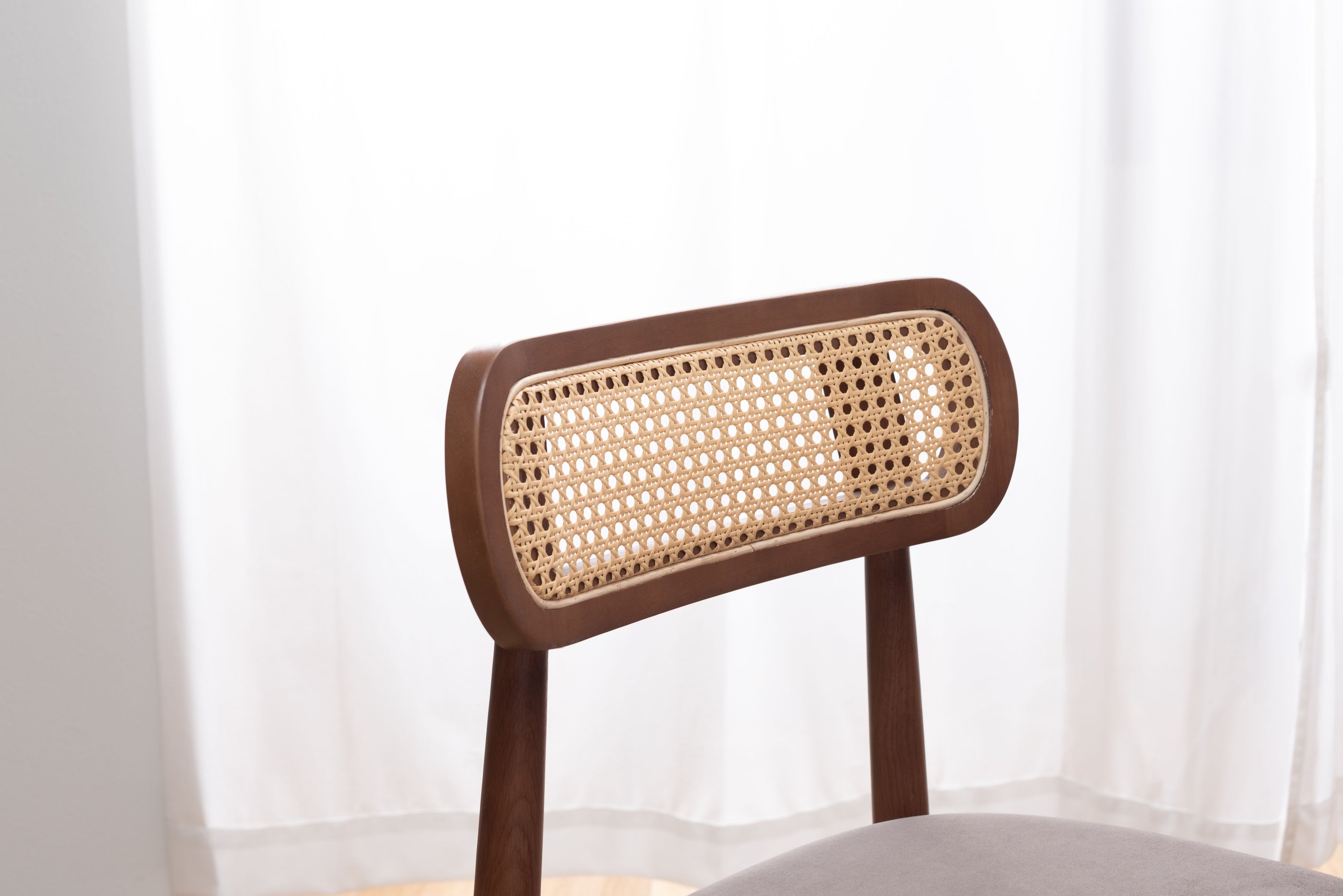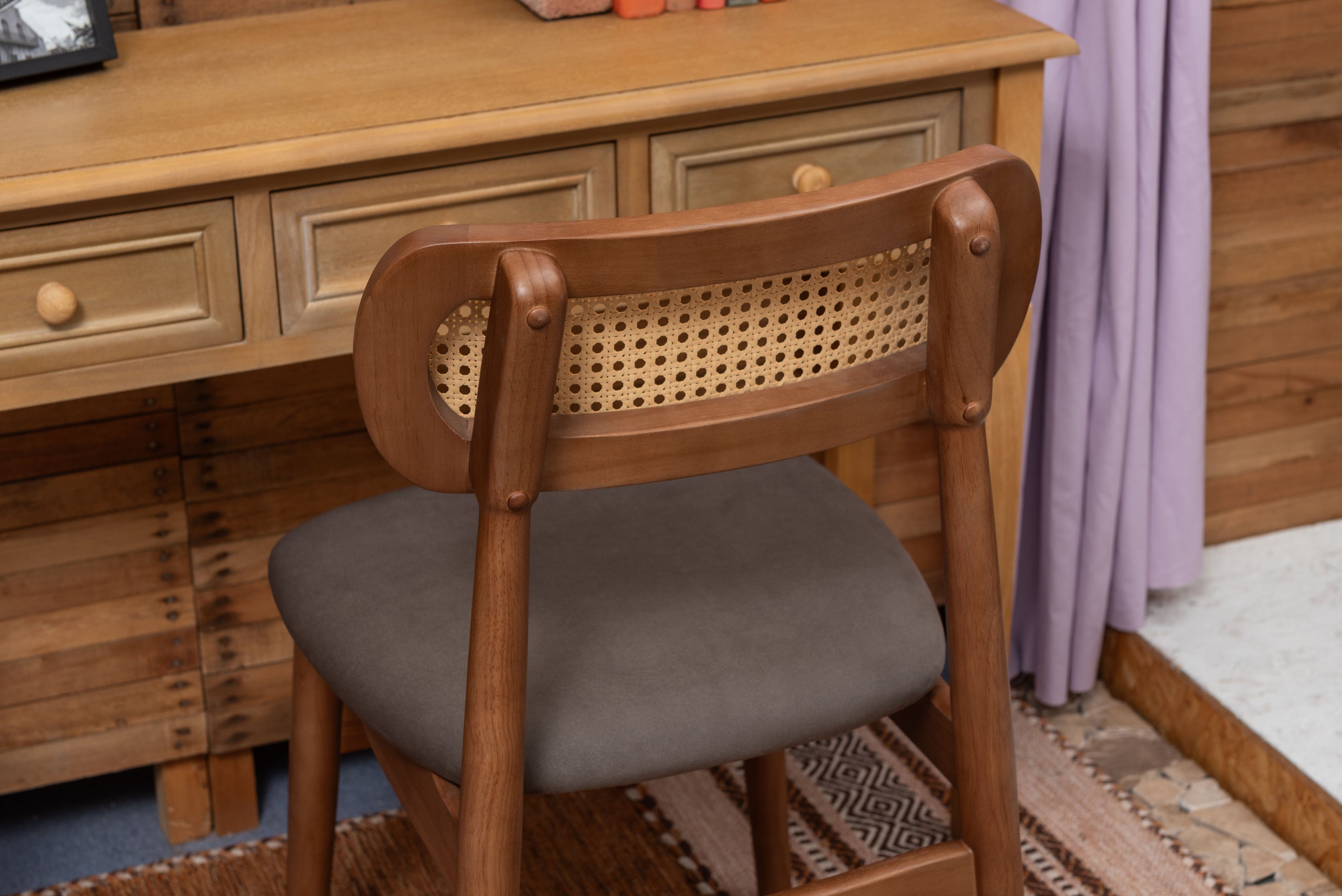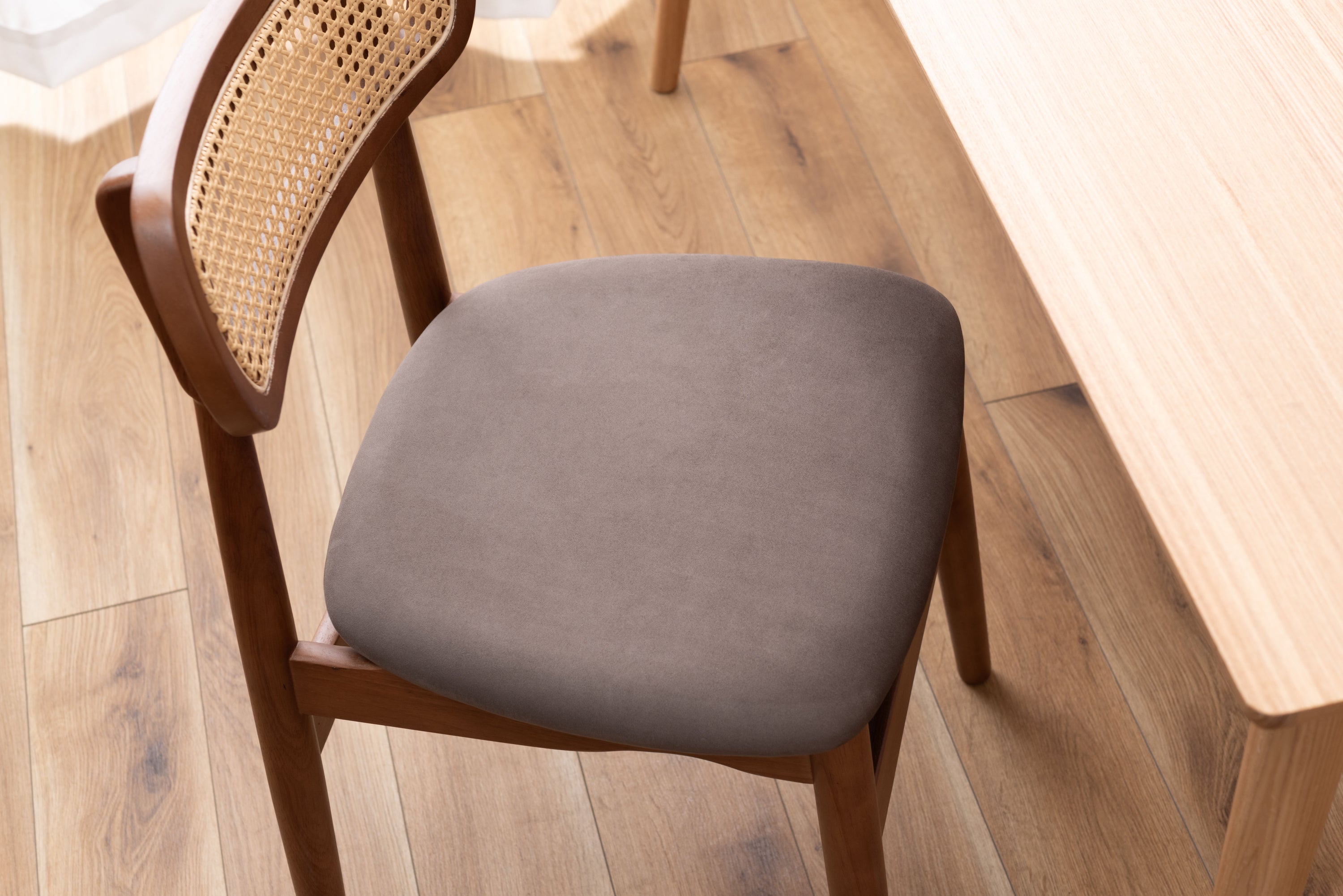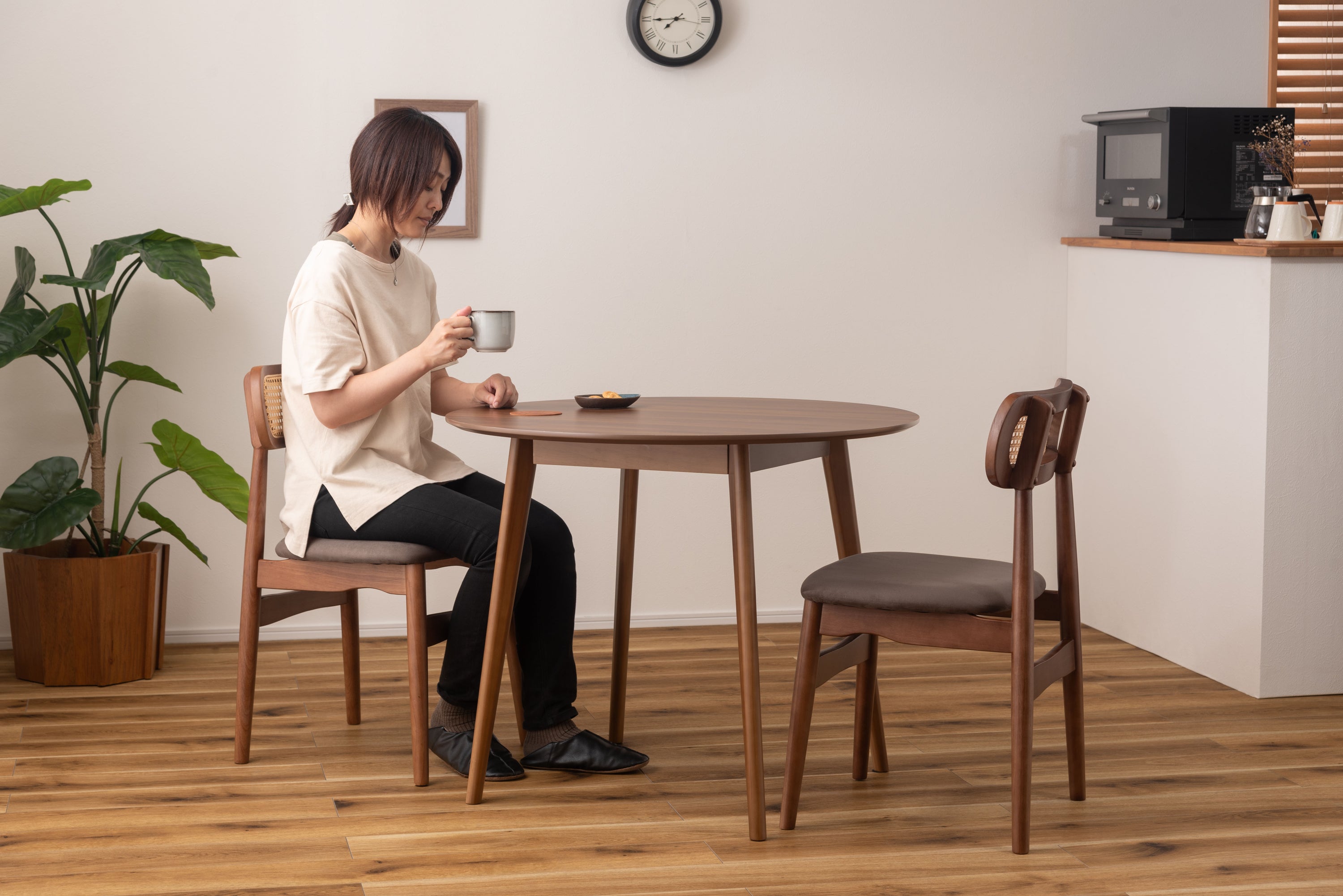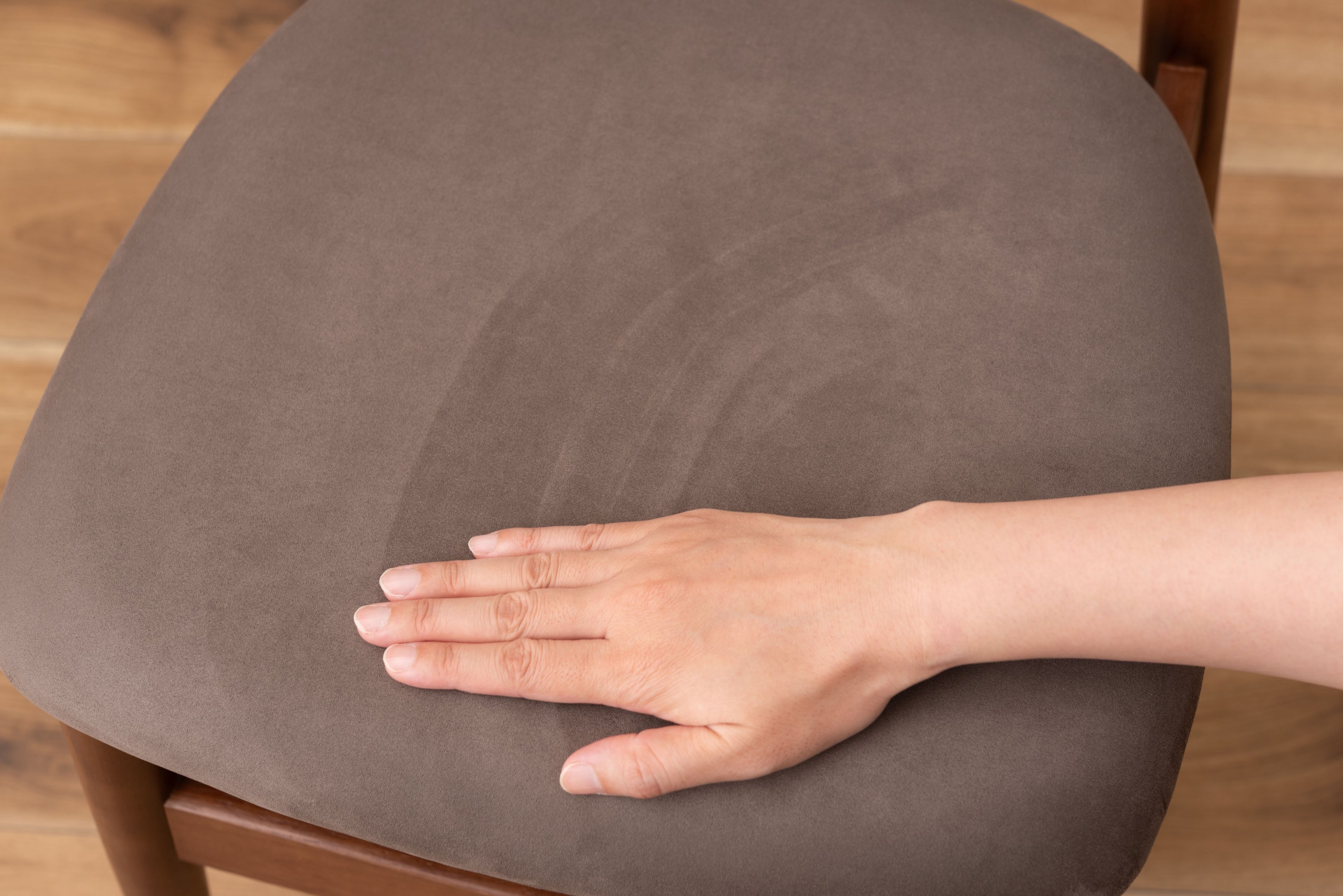高級感のあるスエード調の座面×天然木×ポリプロピレン素材の人口ラタンが優しい雰囲気を作り出してくれるチェア。 角の無い丸みのあるデザインでどんなインテリアにもなじみます。 ささくれが無いため衣類の繊維が絡みません 単色でありながら表情豊かなスエード調の生地 天然木を使用した木フレーム