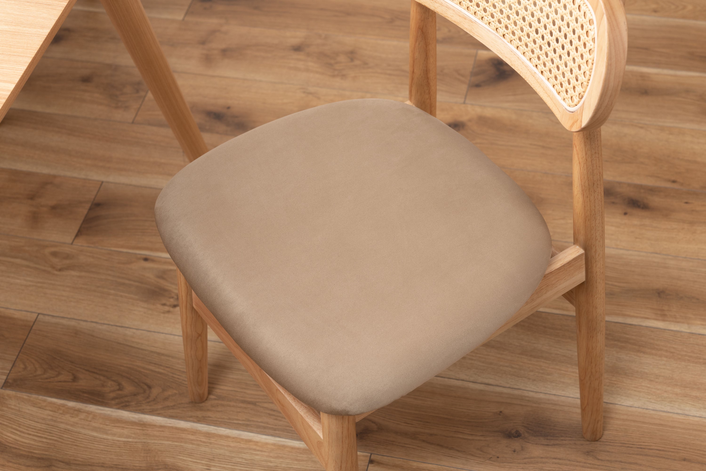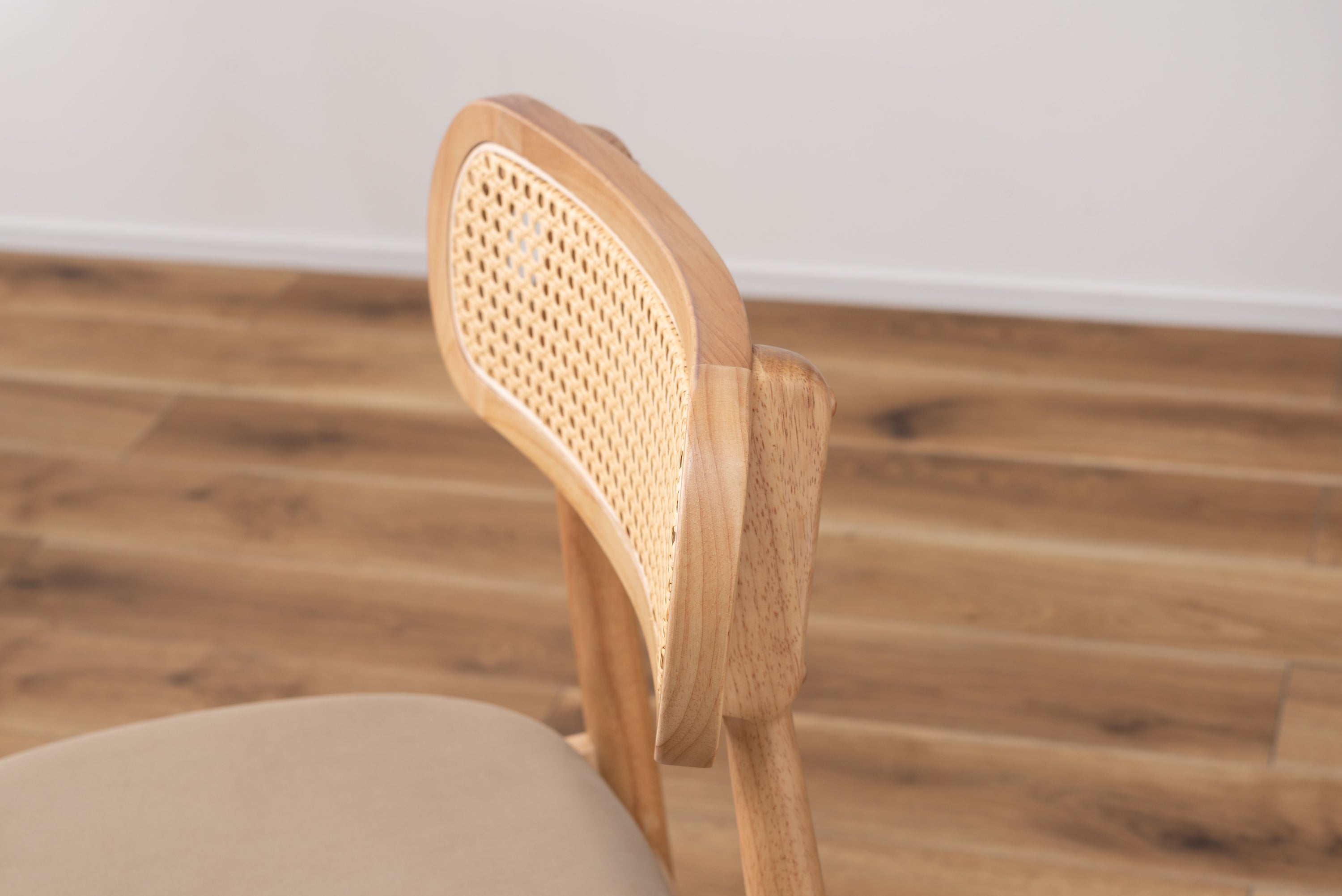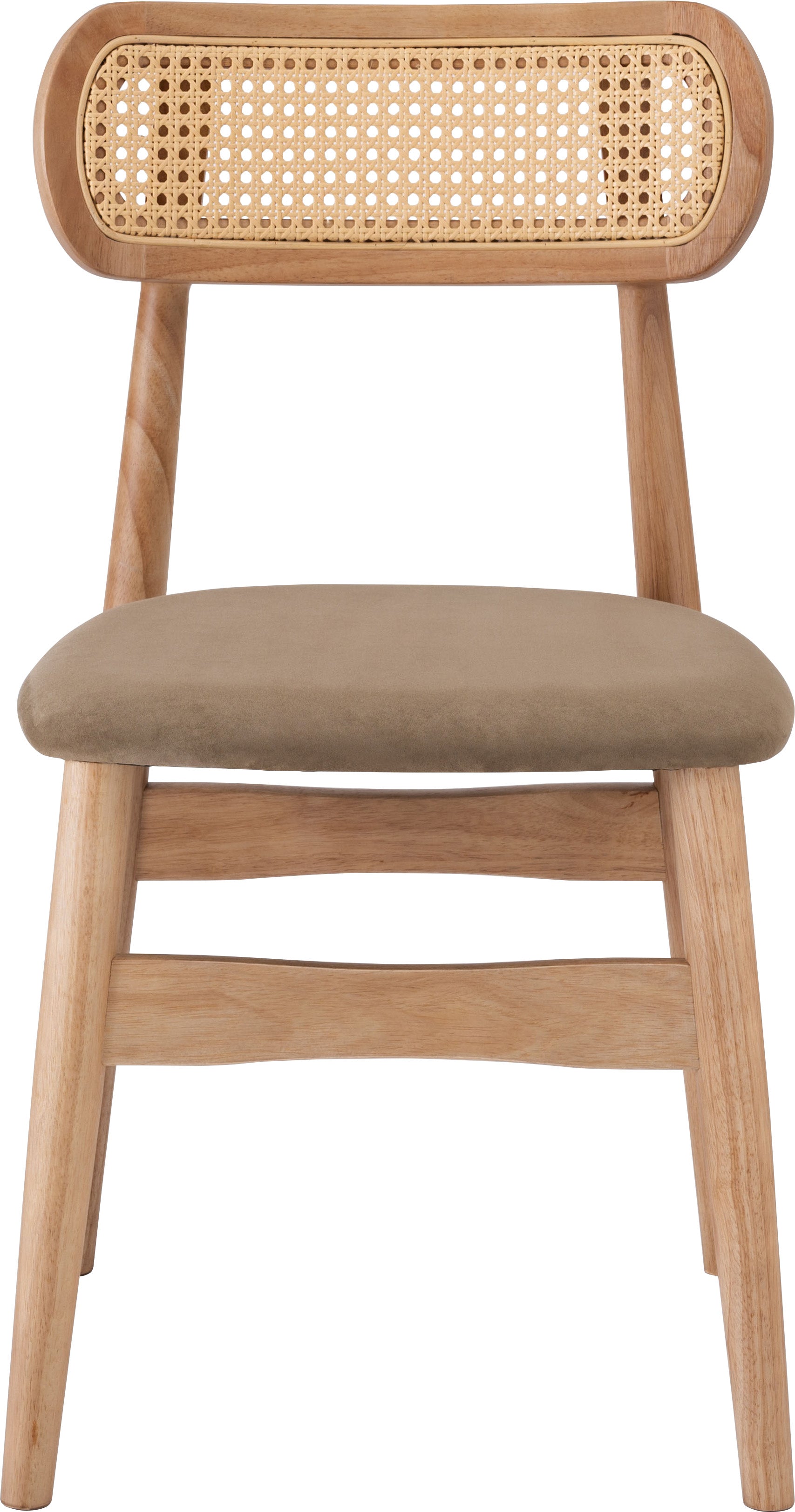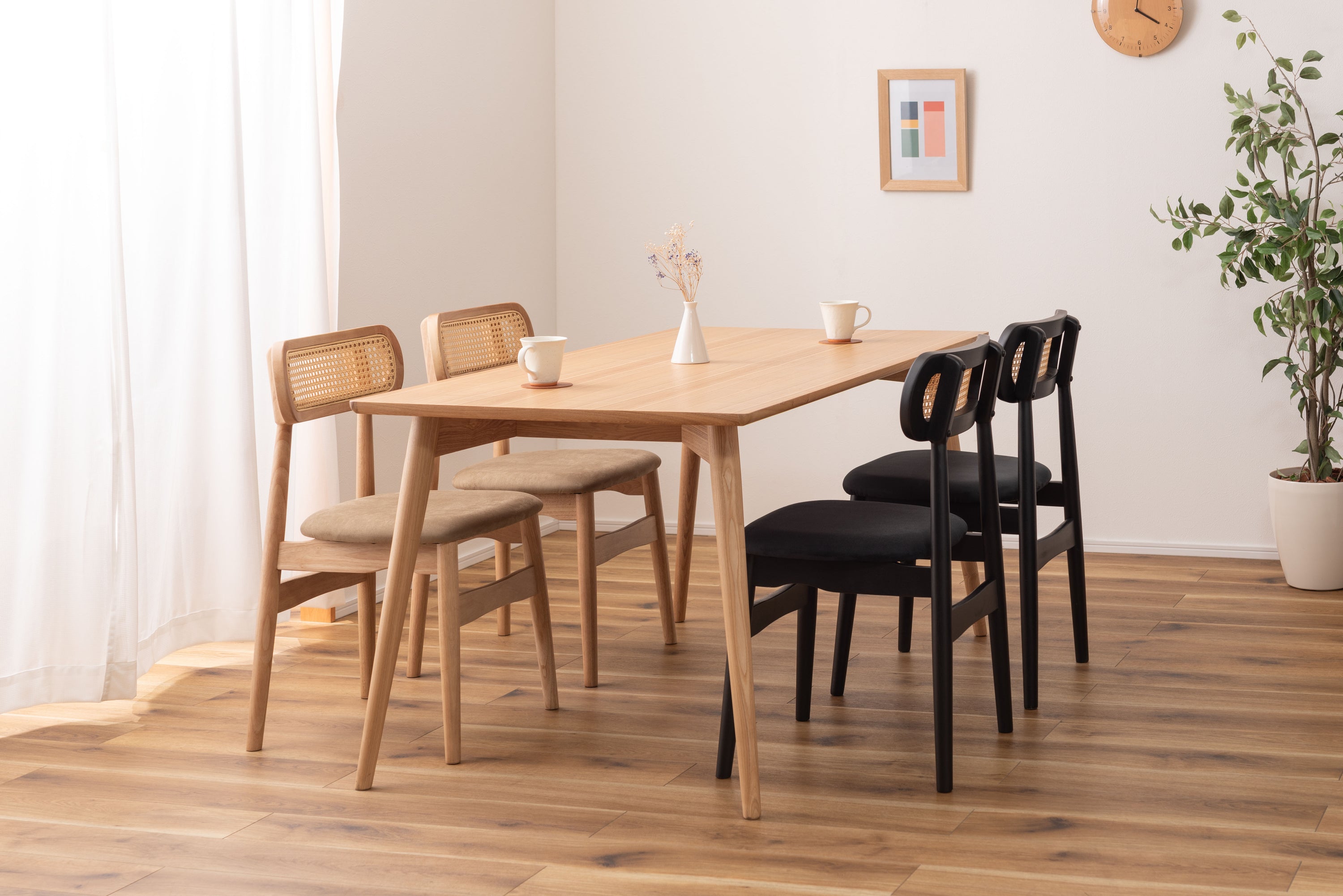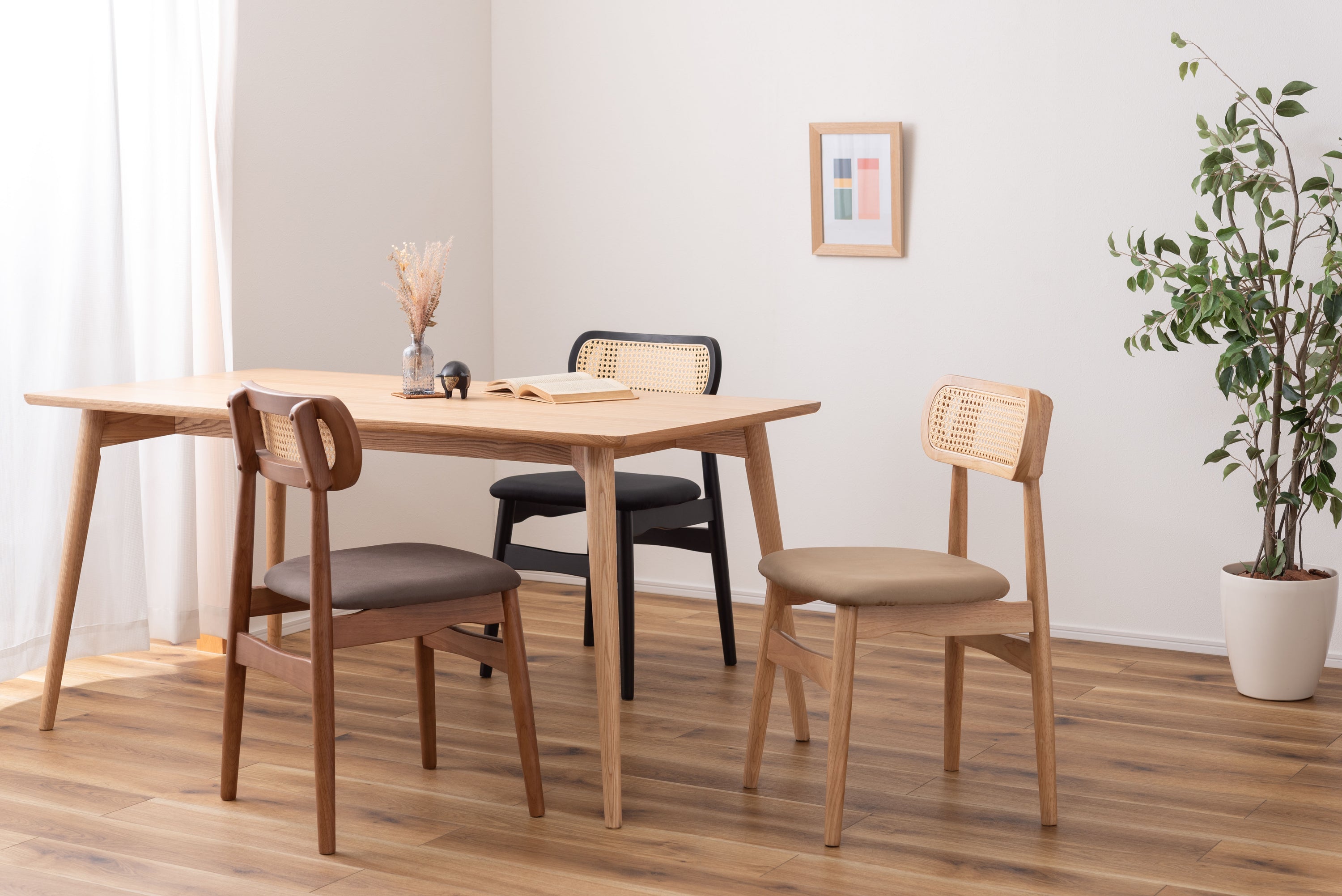 高級感のあるスエード調の座面×天然木×ポリプロピレン素材の人口ラタンが優しい雰囲気を作り出してくれるチェア。 角の無い丸みのあるデザインでどんなインテリアにもなじみます。 ささくれが無いため衣類の繊維が絡みません 単色でありながら表情豊かなスエード調の生地 天然木を使用した木フレーム