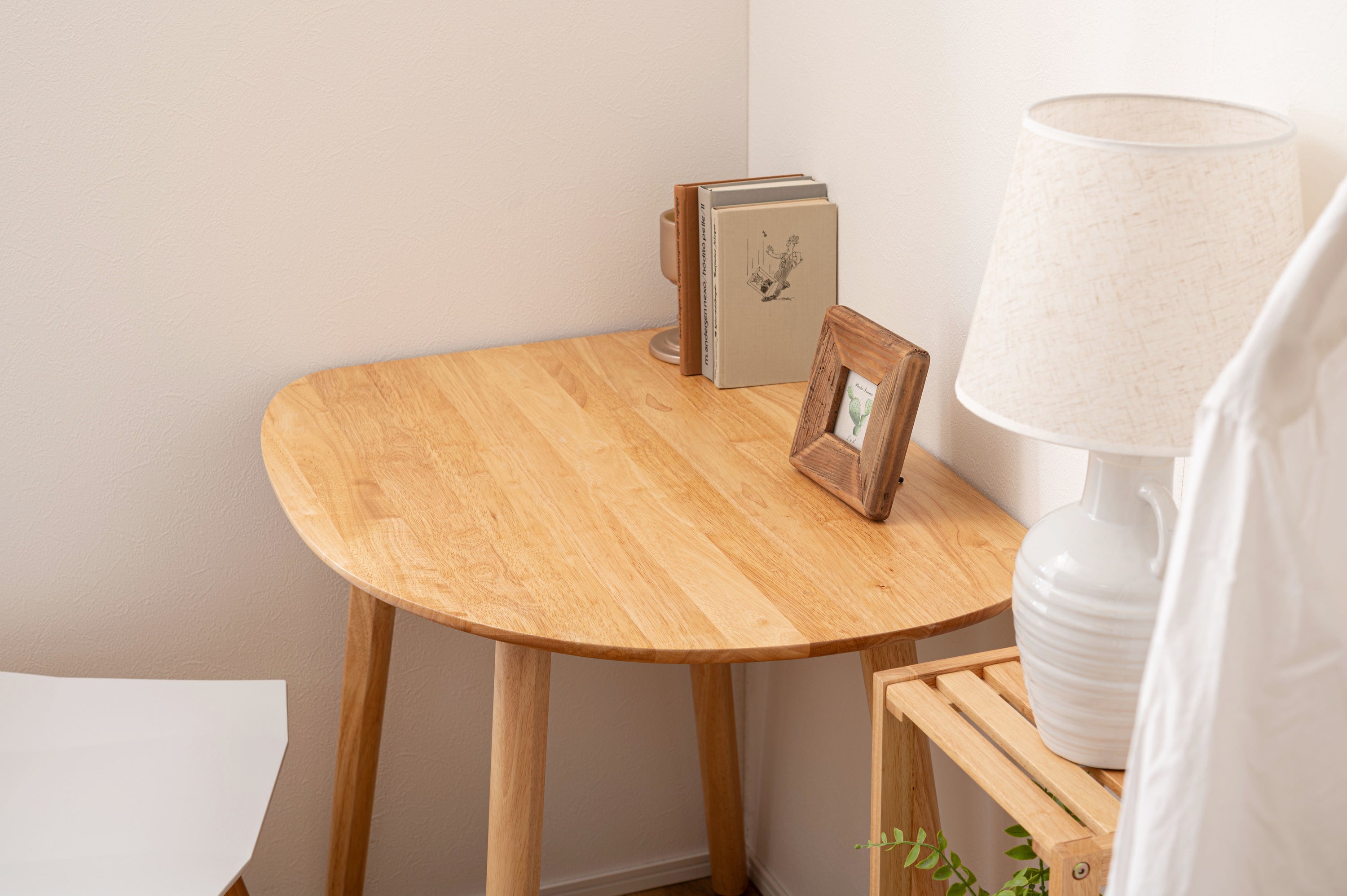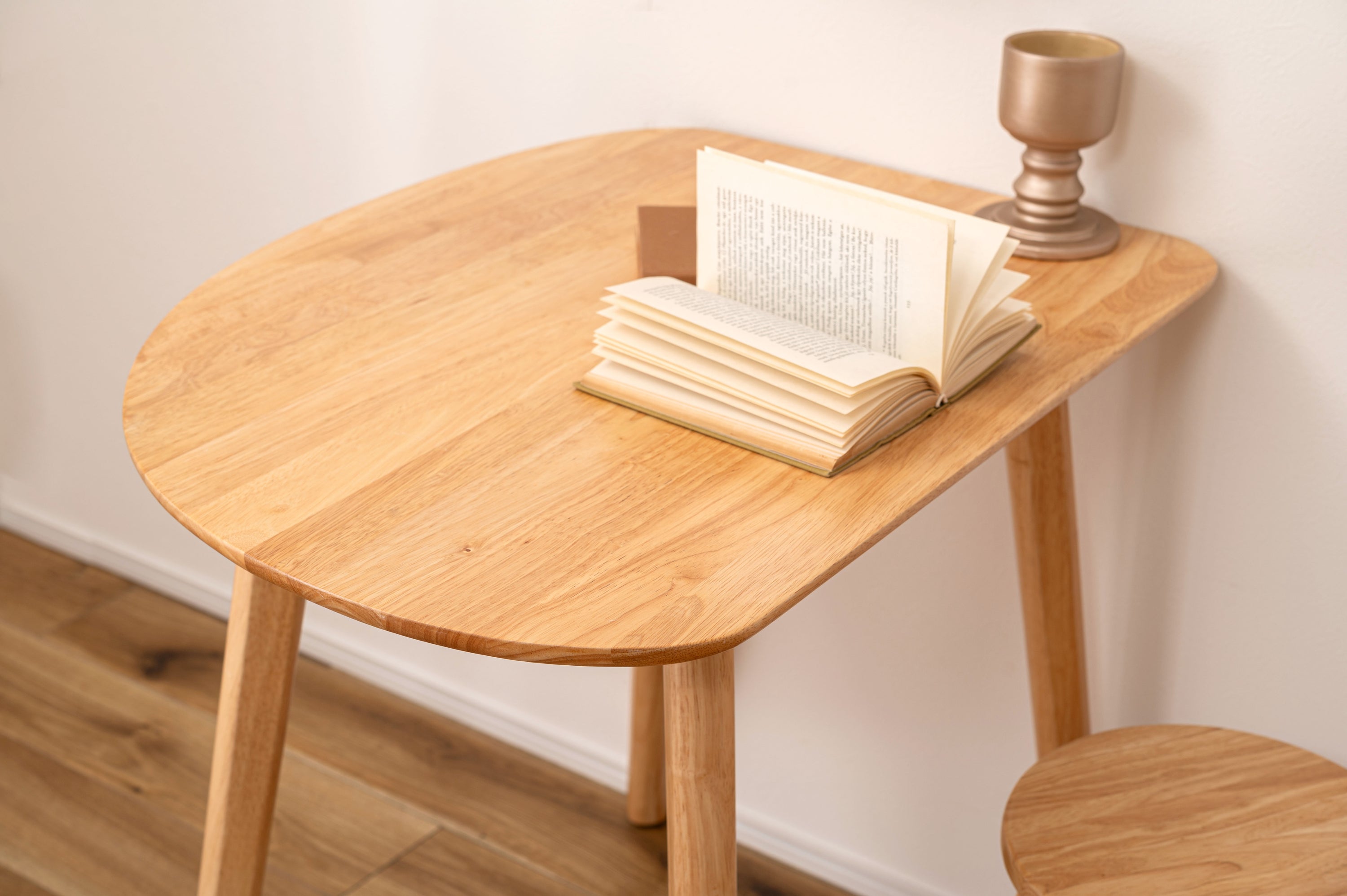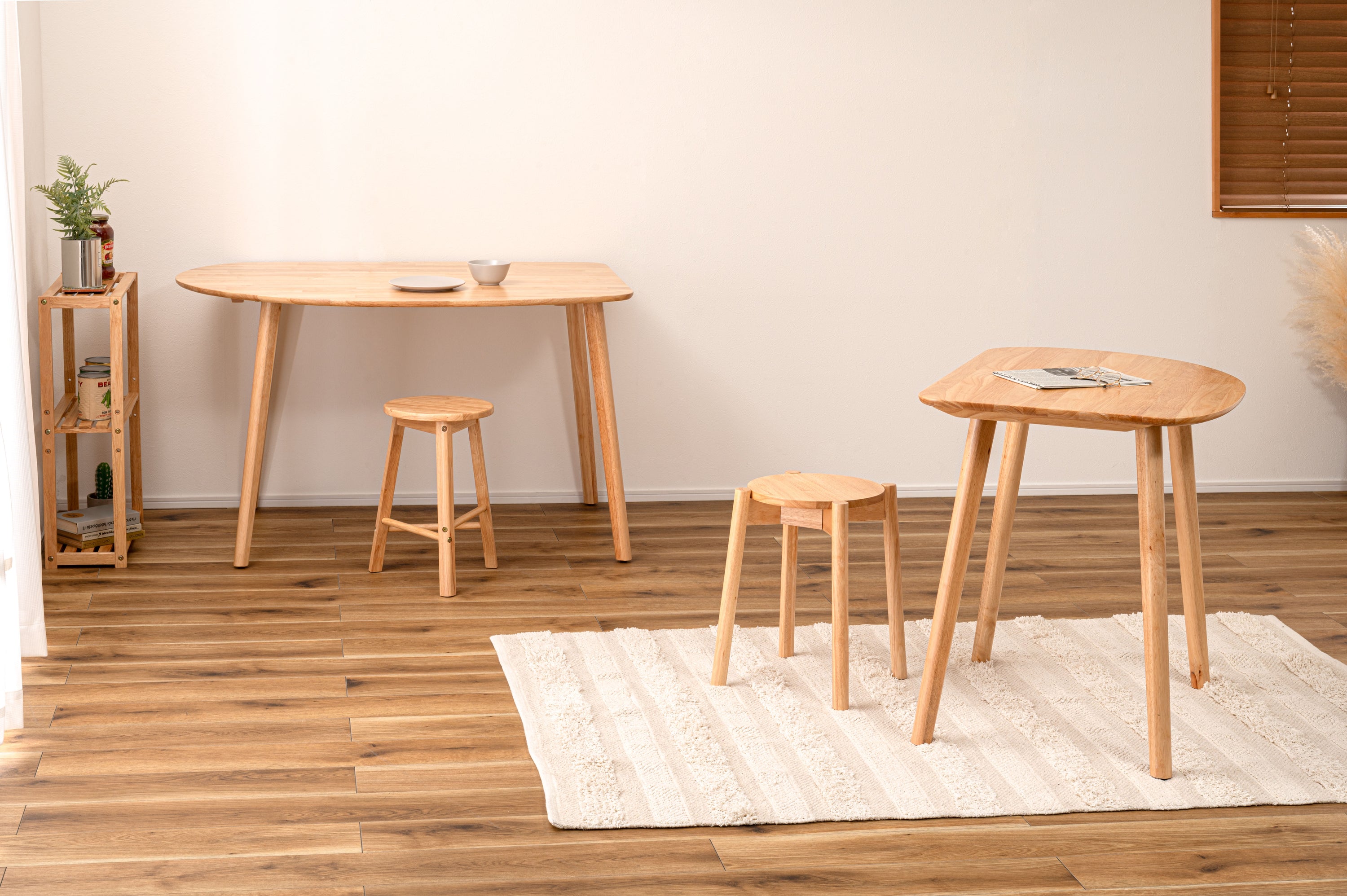 天然木のぬくもりを感じる北欧風デザインの「helppo」シリーズより、個性的なフォルムのダイニングテーブルが登場しました。 木目を活かしたデザインと、エッジを極力落とした丸みのあるフォルムが優しい印象を与えます。