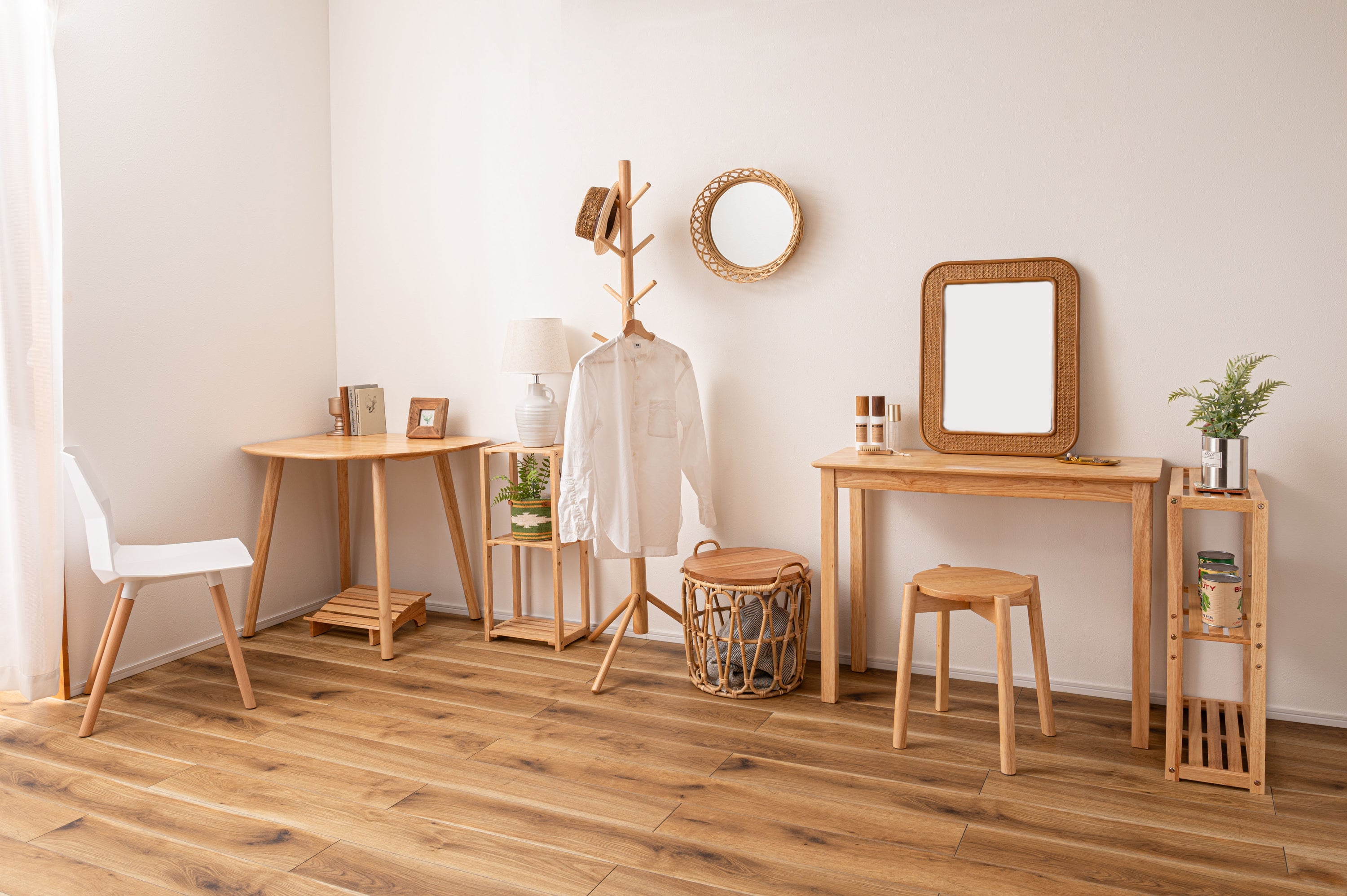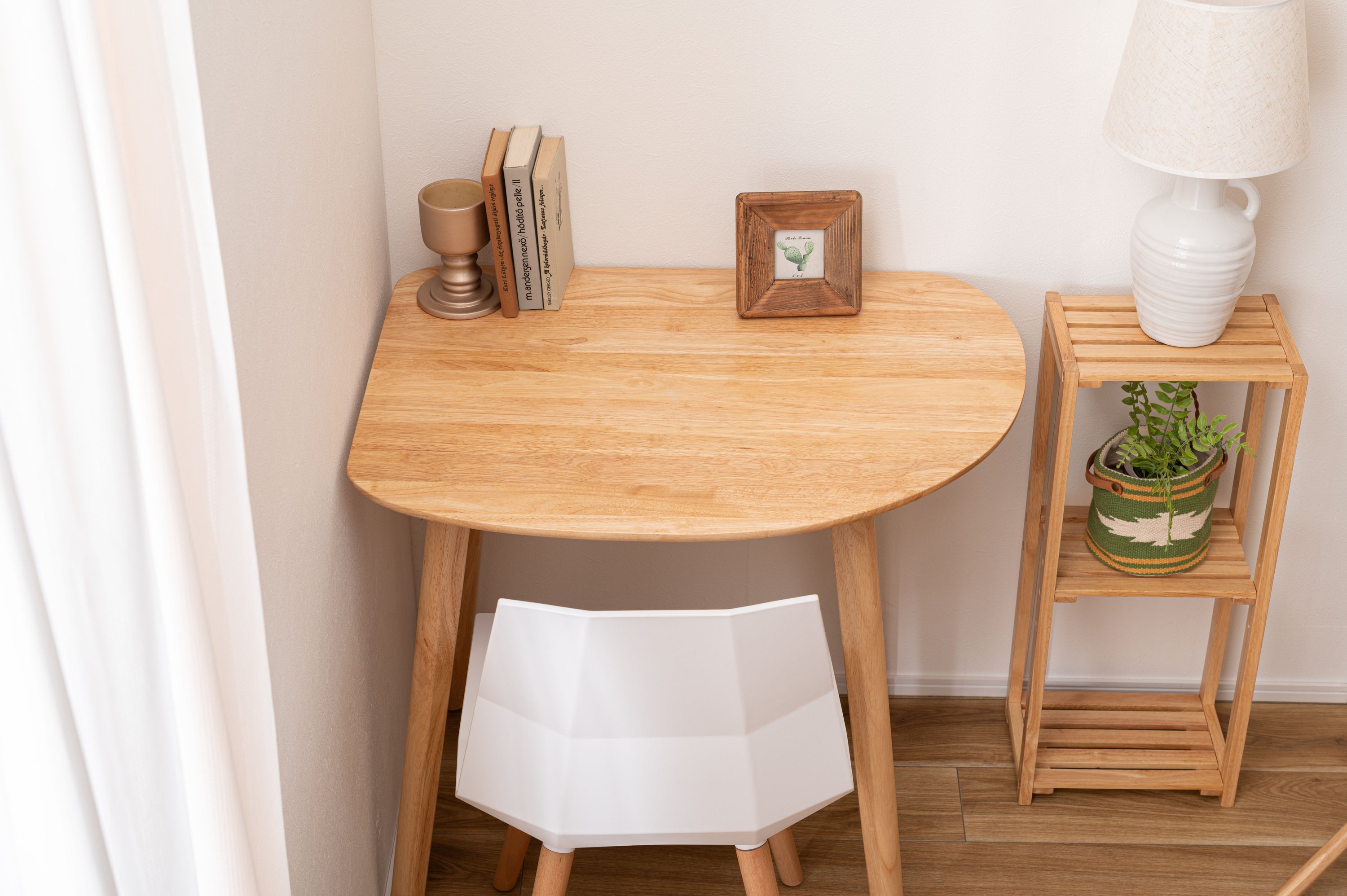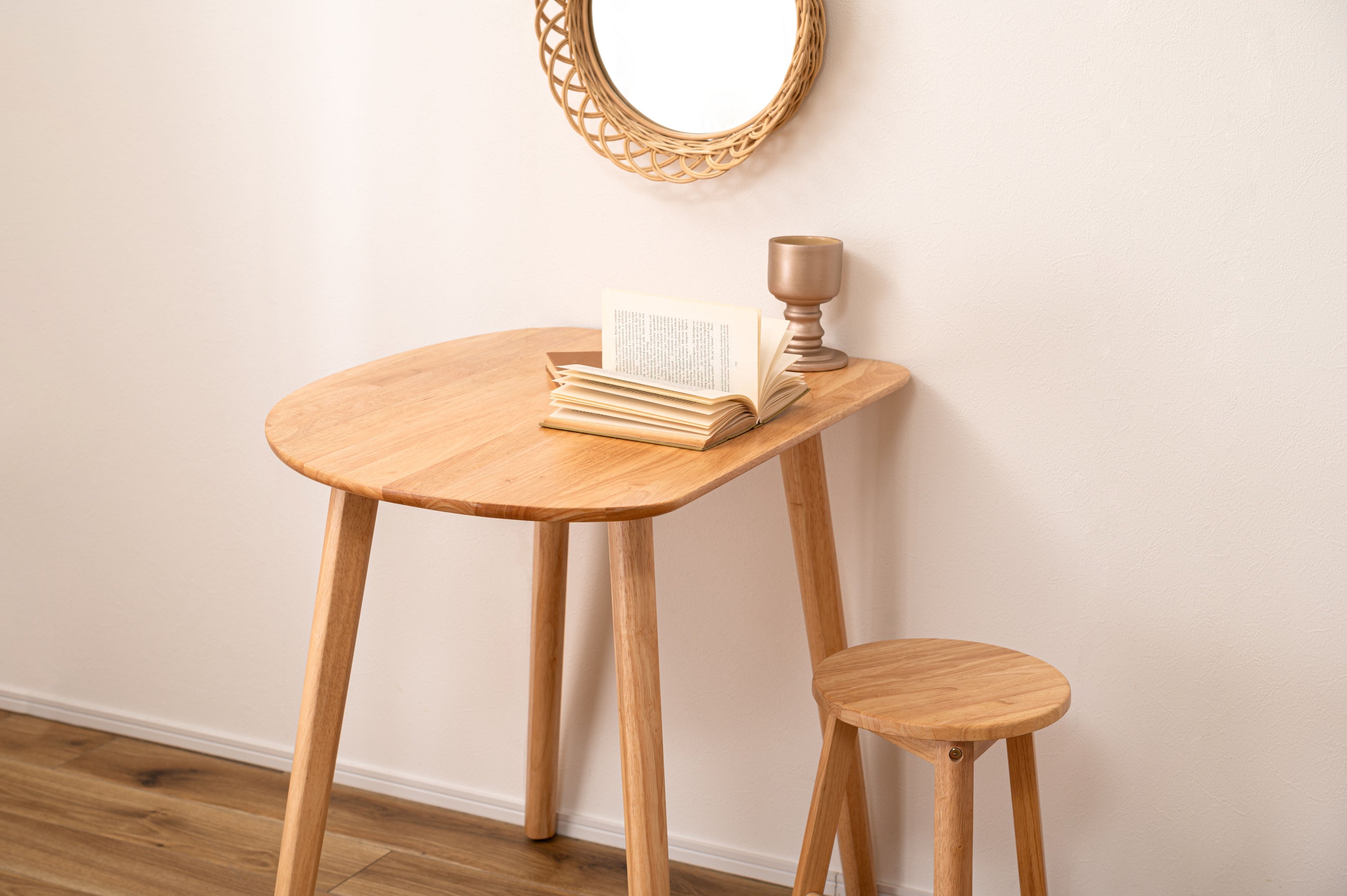 天然木のぬくもりを感じる北欧風デザインの「helppo」シリーズより、個性的なフォルムのダイニングテーブルが登場しました。 木目を活かしたデザインと、エッジを極力落とした丸みのあるフォルムが優しい印象を与えます。