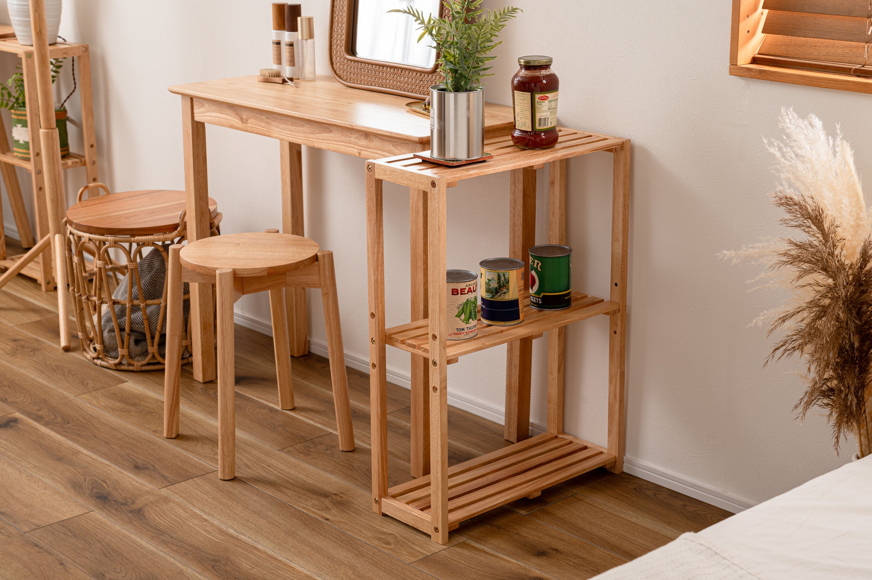 天然木のぬくもりを感じる北欧風デザインの「helppo」シリーズより、あると嬉しい収納アイテムやスリムなデスク、機能的なスツールが登場しました。 シリーズで揃えて置けば、お部屋に統一感が生まれます。 木目を活かしたデザインが優しい印象を与え、お部屋の雰囲気を明るくしてくれます。