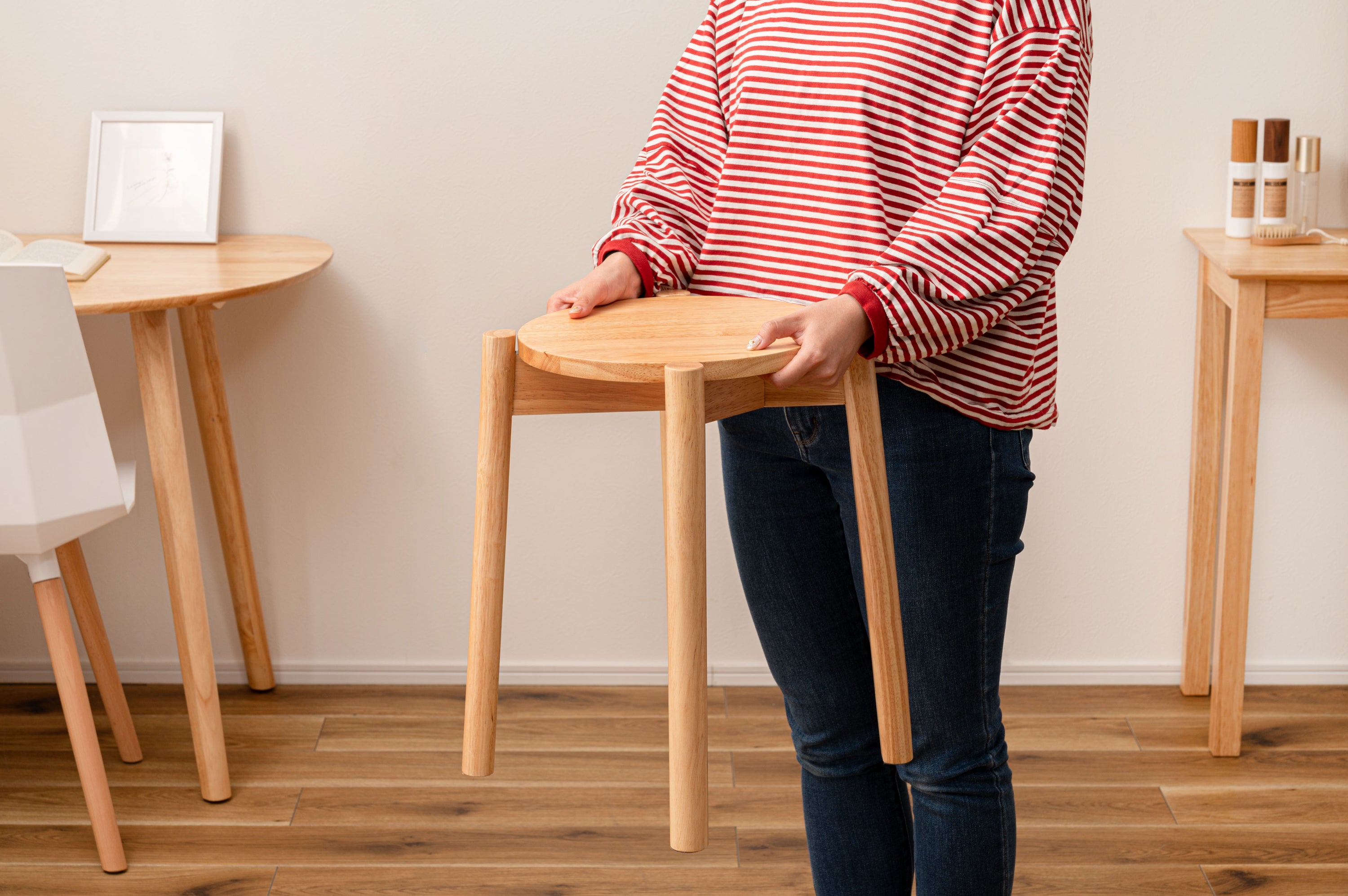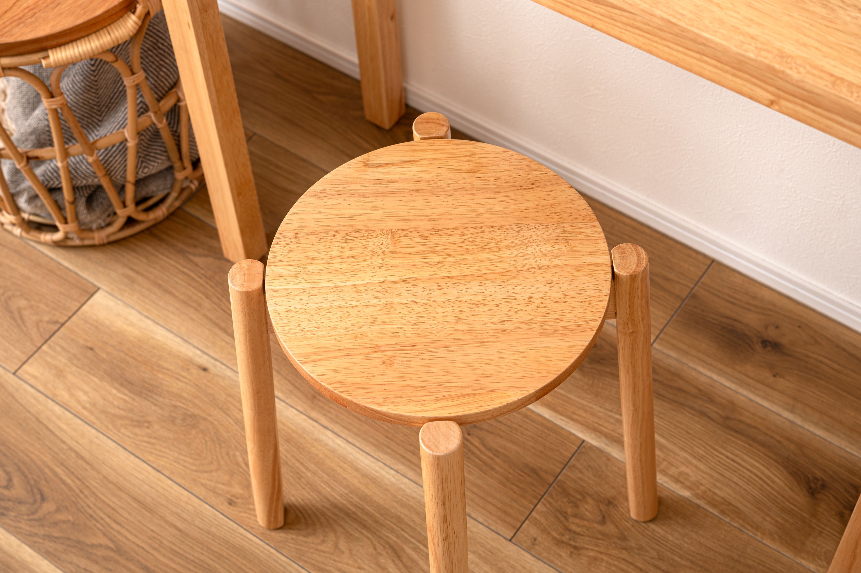天然木のぬくもりを感じる北欧風デザインの「helppo」シリーズより、シンプルで色々なシーンで活躍するスツールが登場しました。 木目を活かしたデザインと、エッジを極力落とした丸みのあるフォルムが優しい印象を与えます。