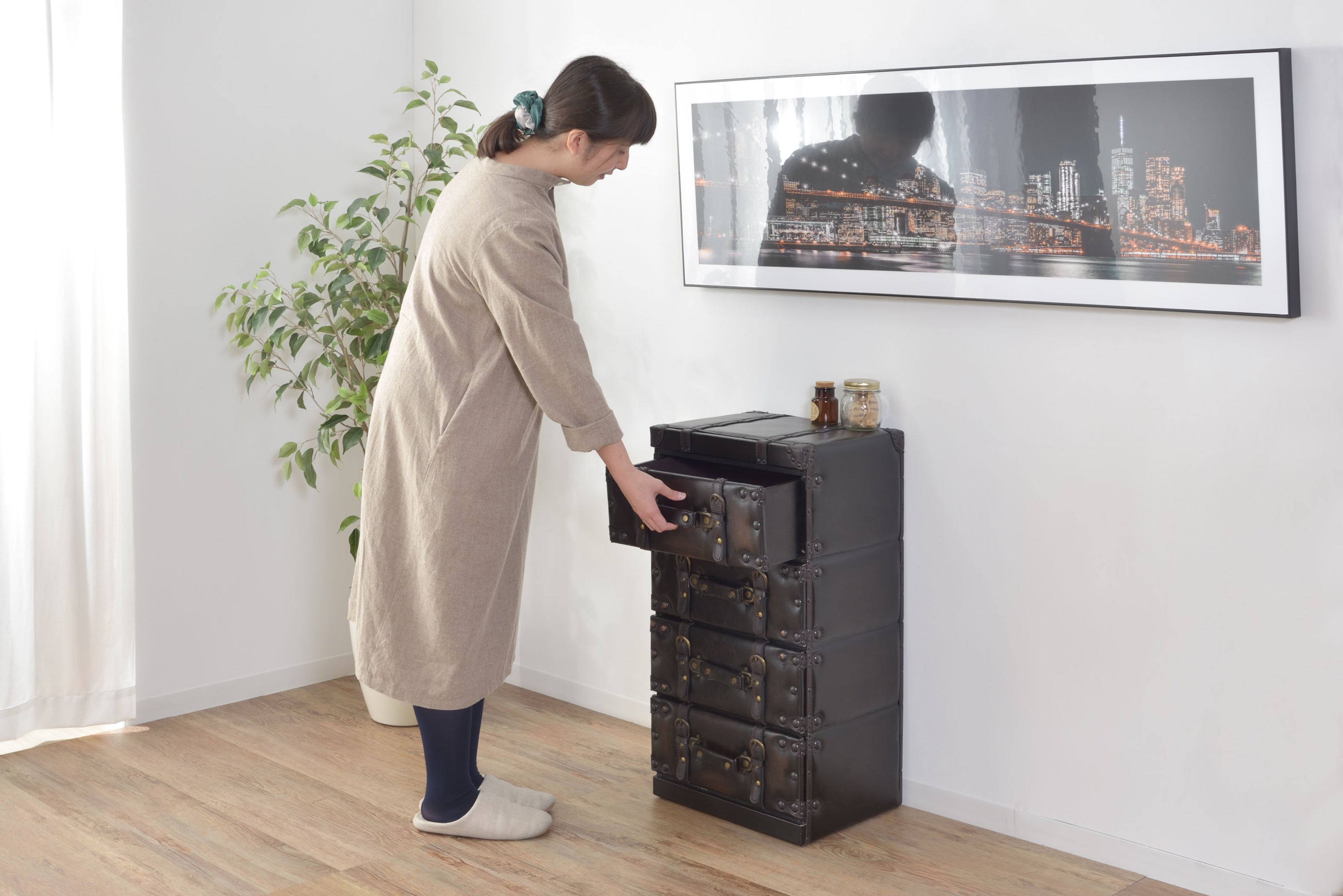 ROOMESSENCEのチェスト4Dダークブラウンです。使い勝手の良さとデザイン性を両立を備え、幅広いシーンで活躍します。ブランドの美意識を感じる佇まいで、日常づかいから来客時まで幅広く対応。品番:IW-874。暮らしに上質なアクセントを添える一品です。