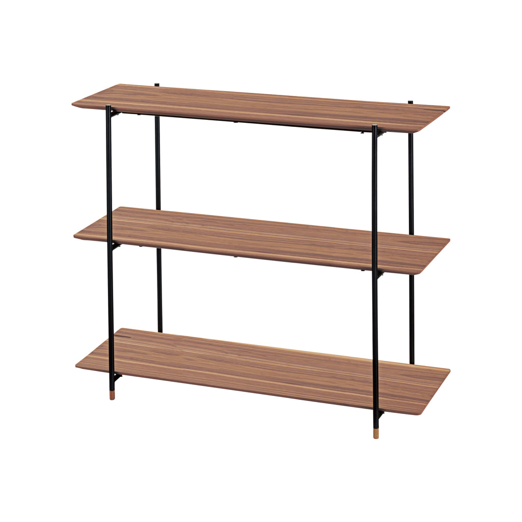 ROOMESSENCEのルカシェルフ3段ブラウンです。見せる収納にも隠す収納にも対応を備え、リビングや書斎で活躍します。ブランドの美意識を感じる佇まいで、日常づかいから来客時まで幅広く対応。品番:JPB-101WAL。暮らしに上質なアクセントを添える一品です。