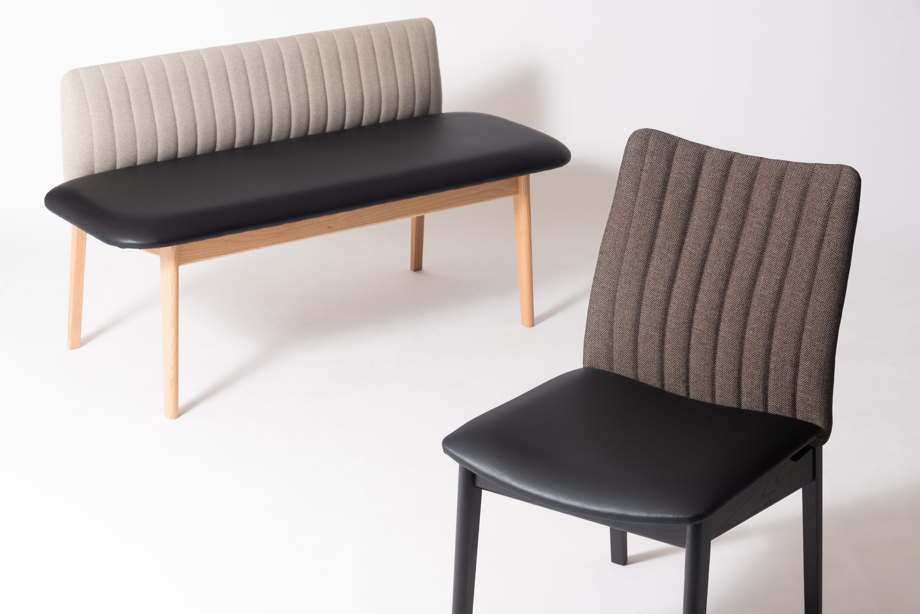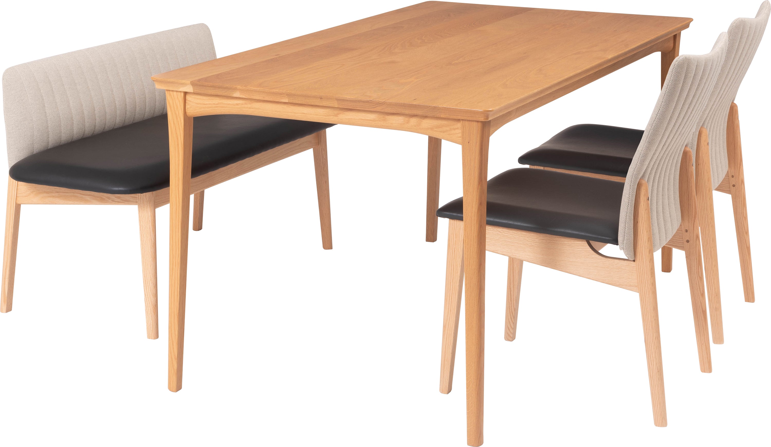 座り心地とデザイン性を兼ね備えたフォルム。なめらかな曲線を描いた背もたれがやわらかな座り心地を味わうことができます。座面には合皮を使用しているので、汚れてもサッと拭き取れてお手いても簡単。フレームには丈夫で傷が付きにくい、天然木のレッドオークを使用。一点一点丁寧に生産された日本製。