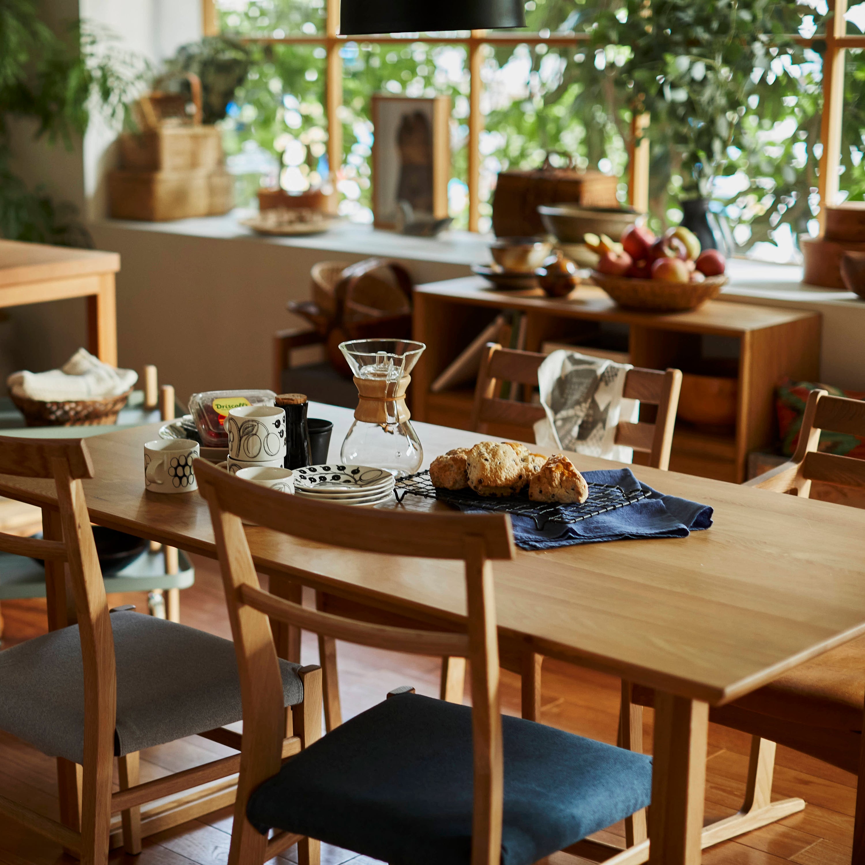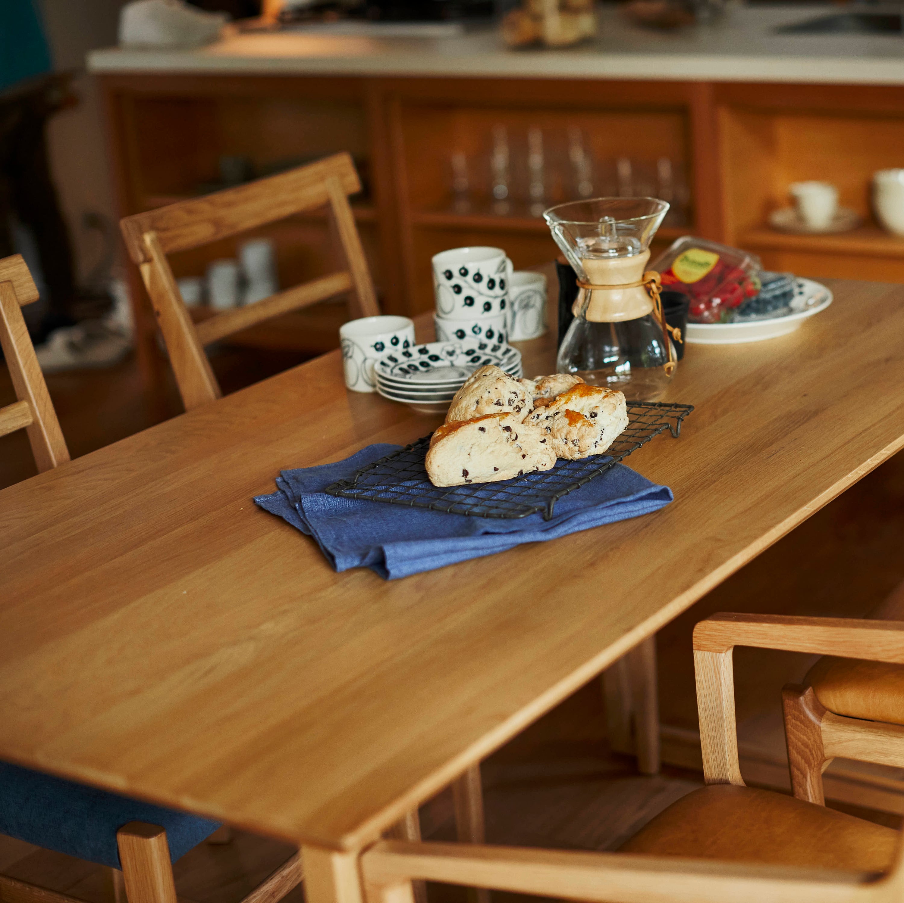 ROOMESSENCEのダイニングテーブル天板150ナチュラルです。安定感のあるつくりを備え、ダイニングや作業台として活躍します。ブランドの美意識を感じる佇まいで、日常づかいから来客時まで幅広く対応。品番:JPT-251OAK。暮らしに上質なアクセントを添える一品です。