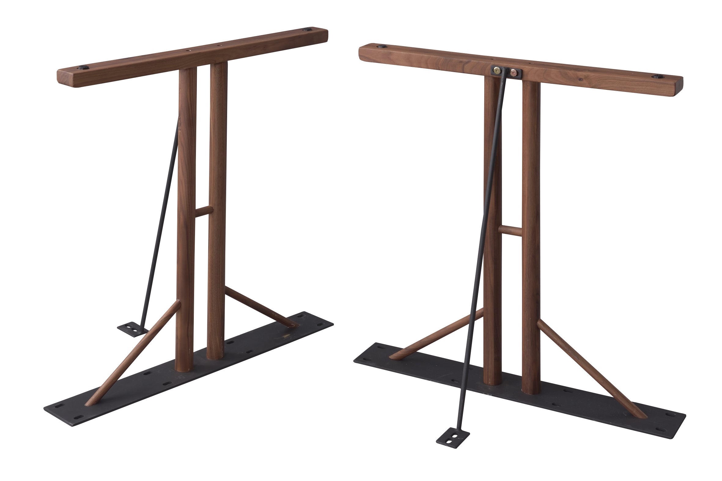 組み合わせを選べるダイニングテーブル脚のバリエーションに天然木の風合いが感じられる木製脚が加わりました。立ち座りがしやすいT型はアクセントにスチールバーを使用し異素材の組み合わせがスタイリッシュなデザインです。