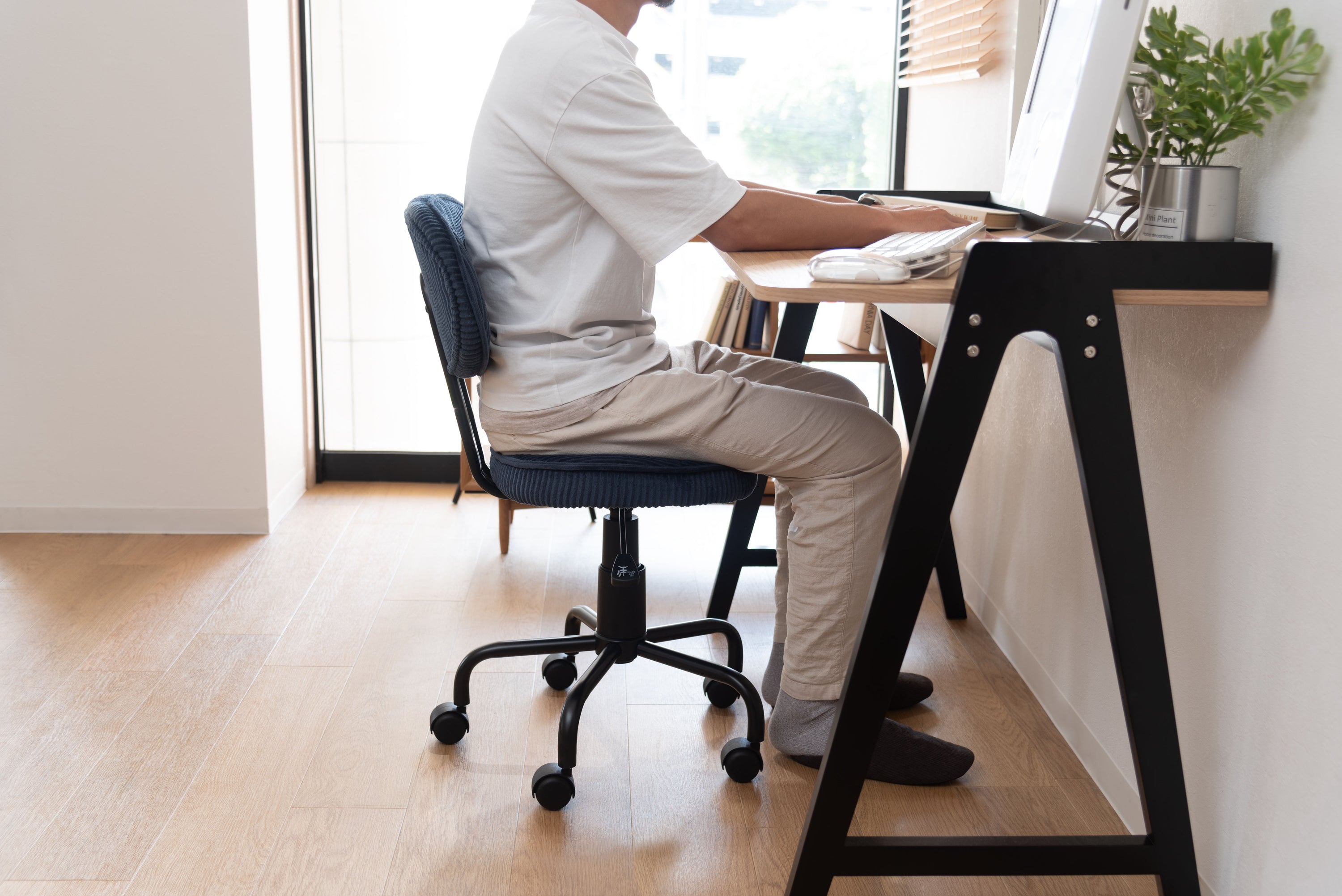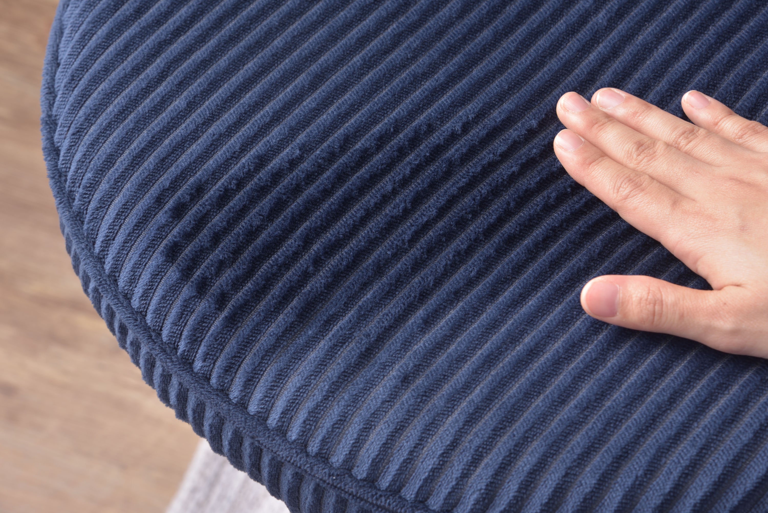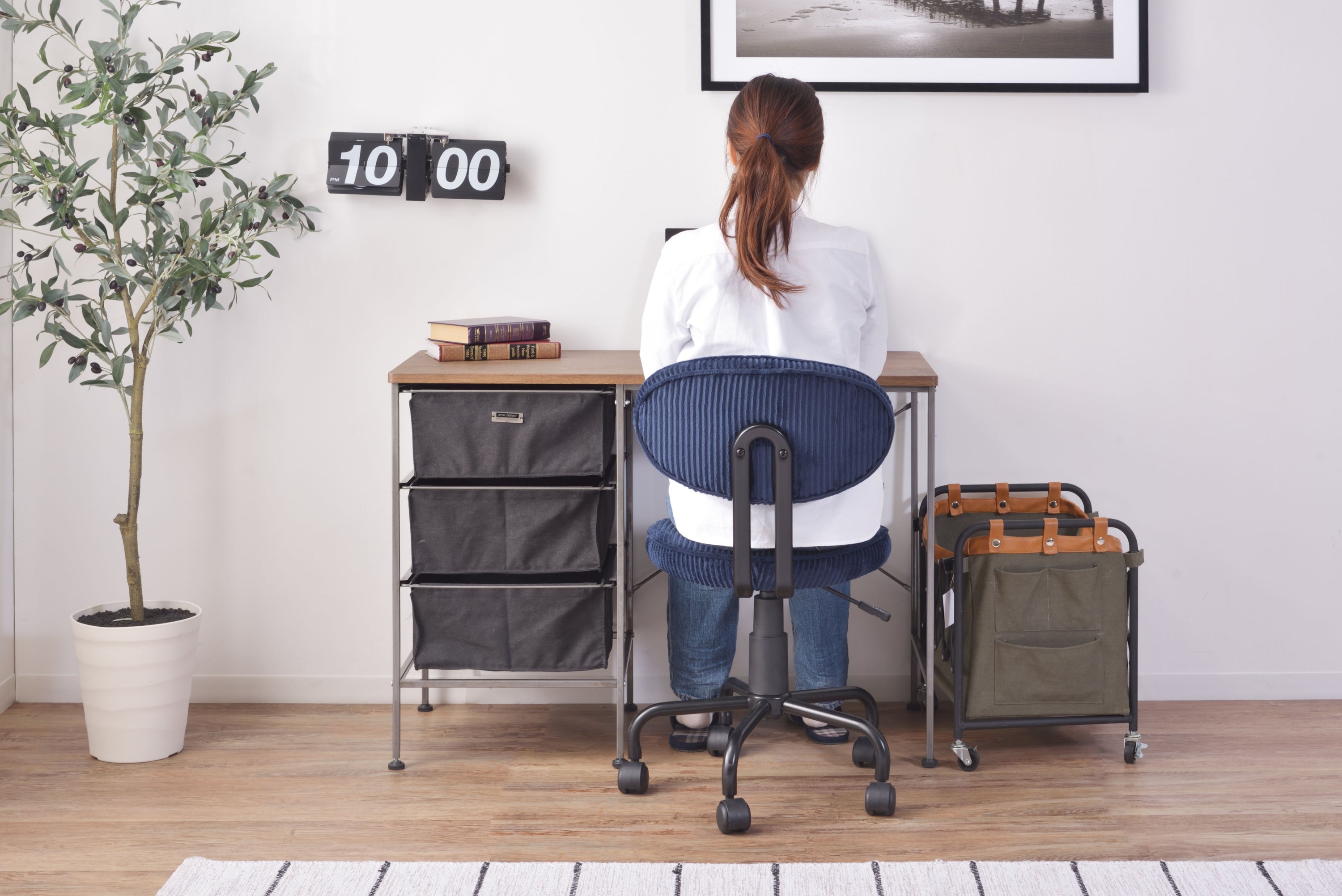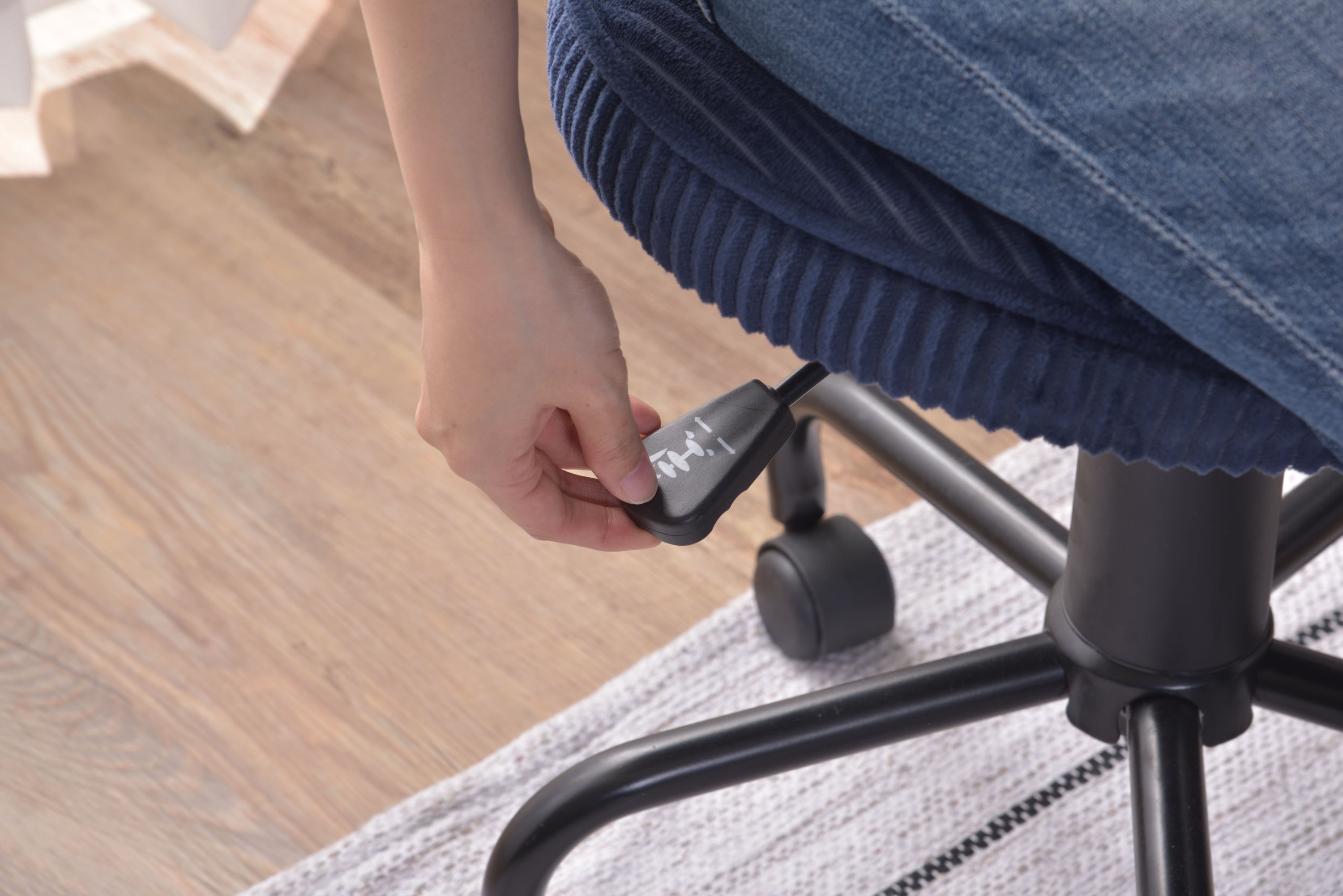 コンパクトサイズでデザイン性の高いおしゃれなデスクチェア。スリムサイズなのでリビングやベッドサイドなど狭い空間での使用に便利。スリムサイズのデスクにもピッタリフィットする使い勝手のよいデスクチェア。ガス圧シリンダーの昇降式なので、座面下のレバーで高さ調整可能。座面回転式でキャスター付き。背もたれと座面にはウレタンクッション入り。おしゃれでデザイン性のあるコーデュロイ生地を使用。リビング等で使用する際も周りのインテリアと好相性。シェアオフィスやデザイナーズオフィス等での使用もおススメ。