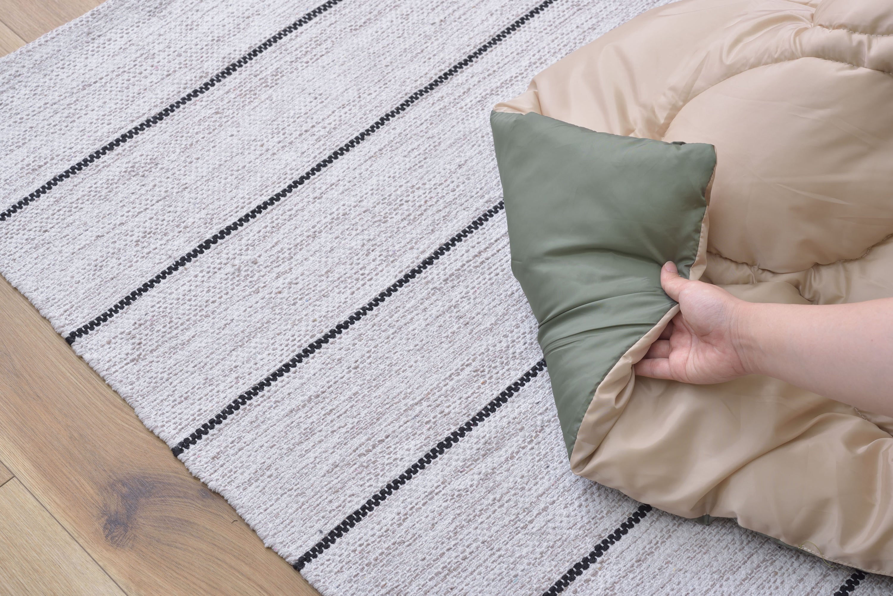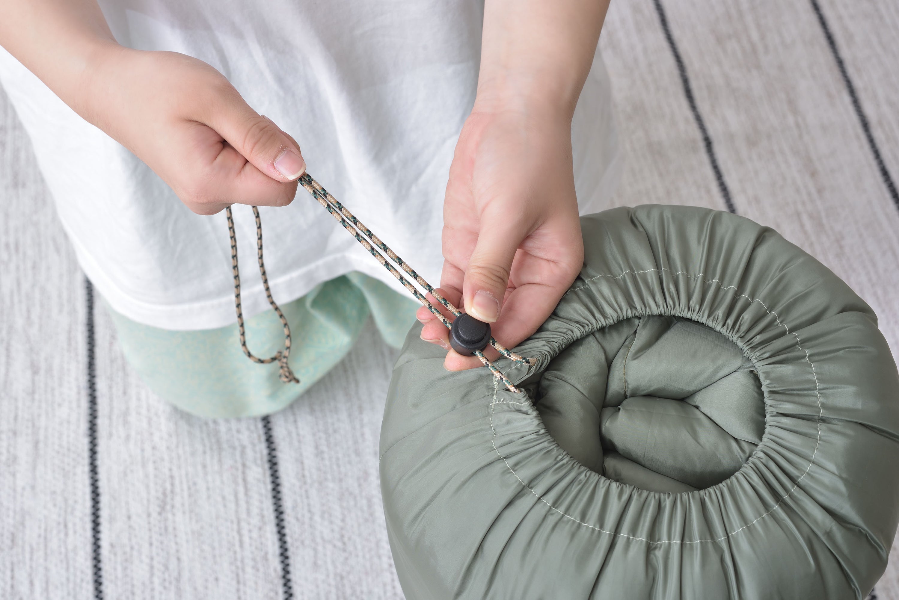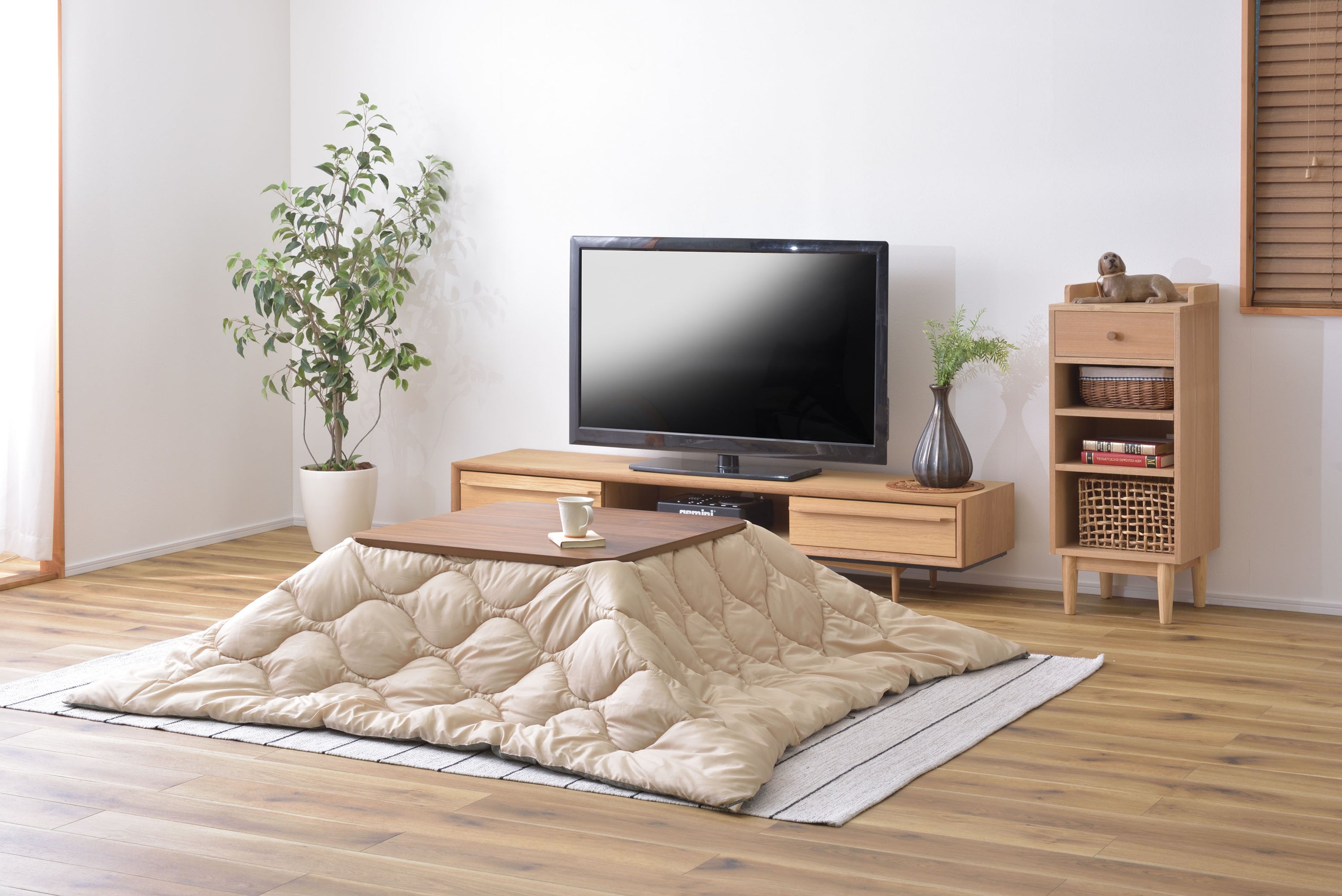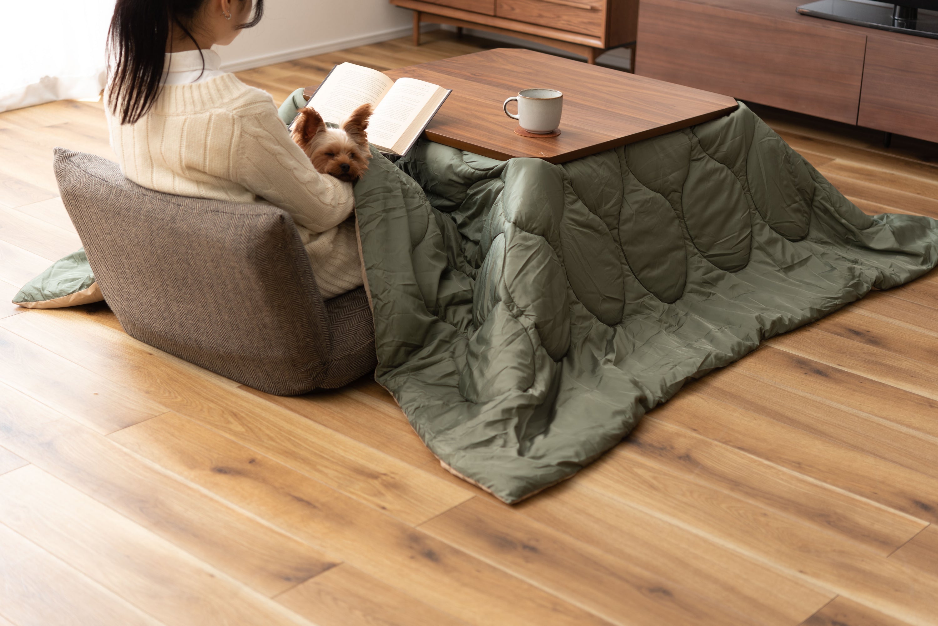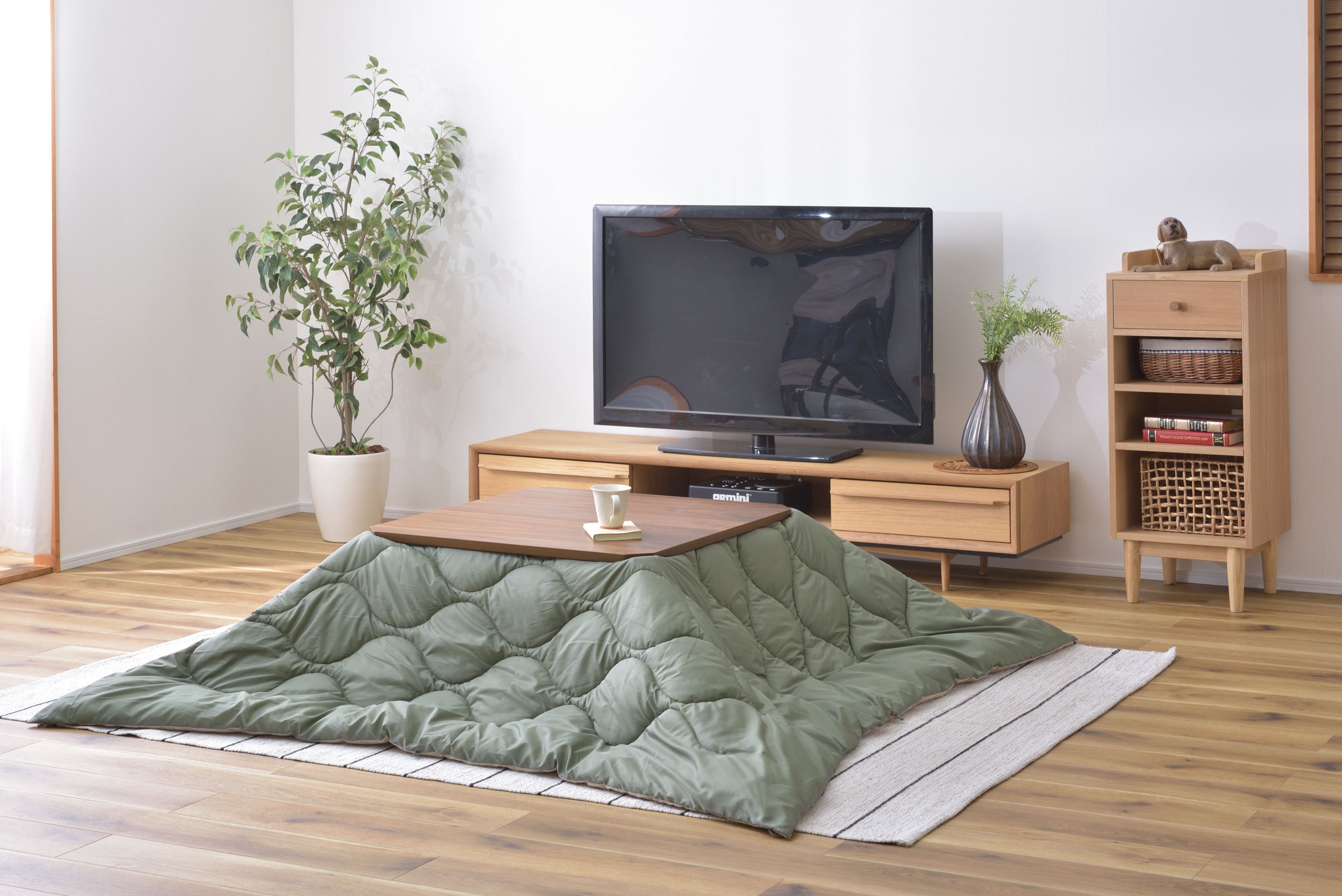 撥水加工を施したコタツ布団は、飲み物をこぼした時など汚れを弾くのでお手入れカンタン。 持ち運びに便利な寝袋のような収納バック付で、キャンプなどのアウトドアでも活躍します。