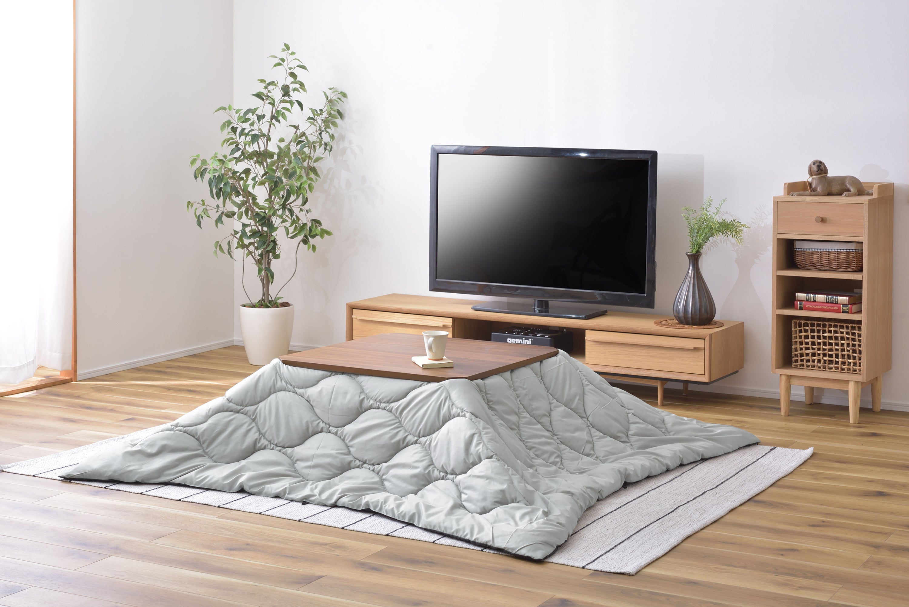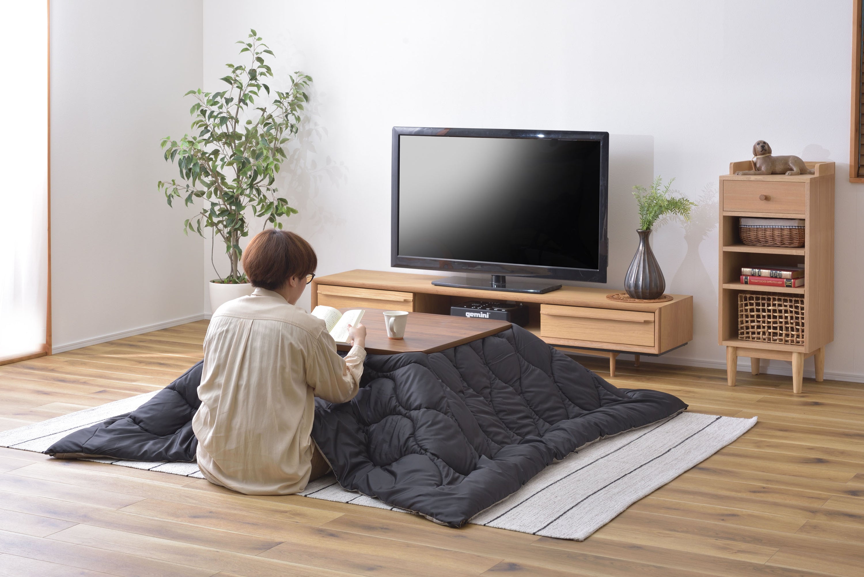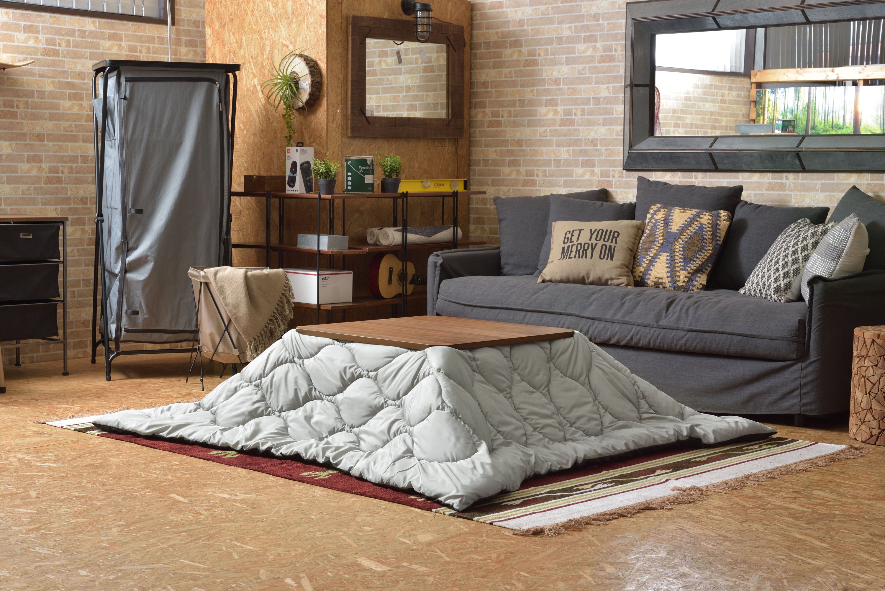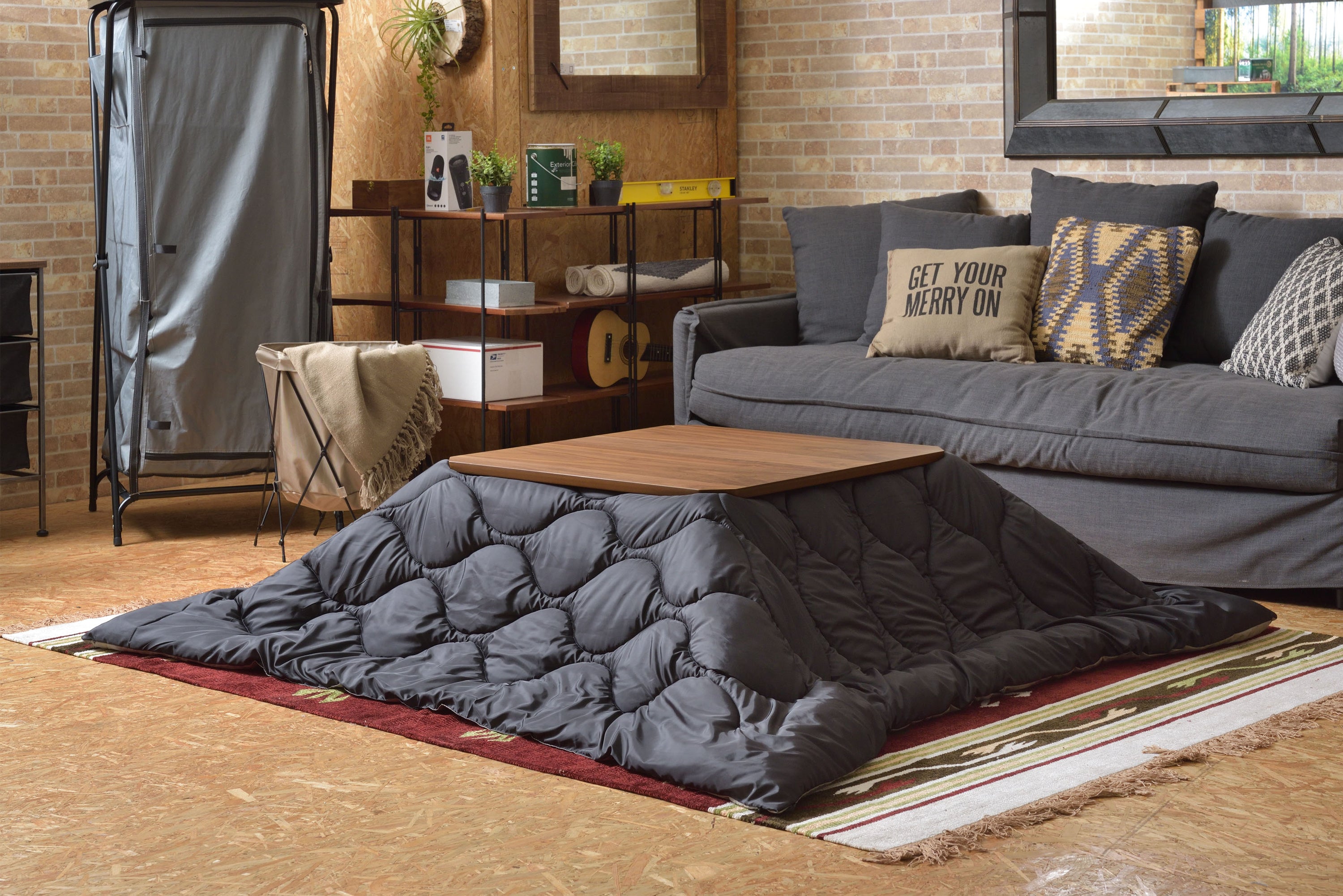 撥水加工を施したコタツ布団は、飲み物をこぼした時など汚れを弾くのでお手入れカンタン。 持ち運びに便利な寝袋のような収納バック付で、キャンプなどのアウトドアでも活躍します。