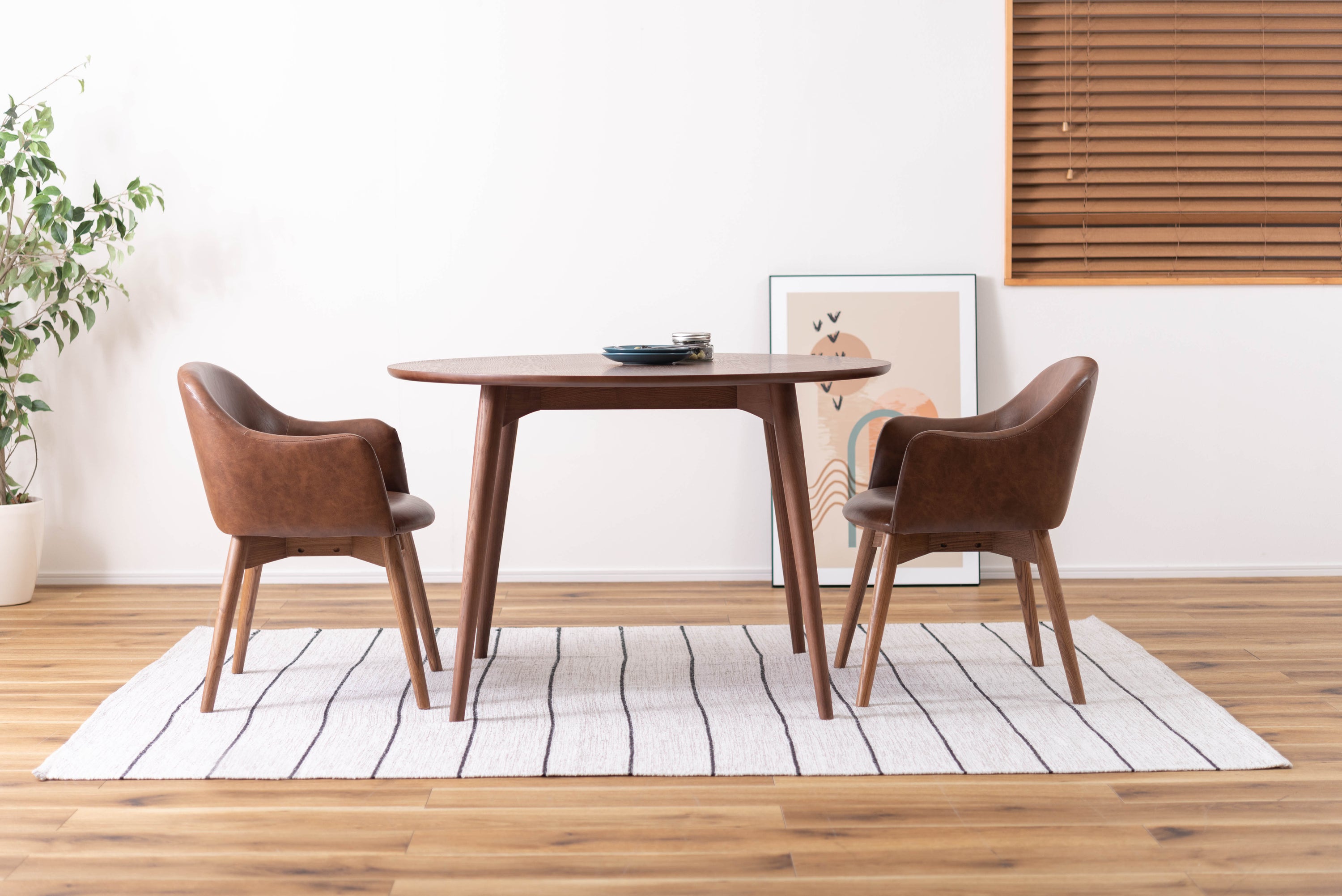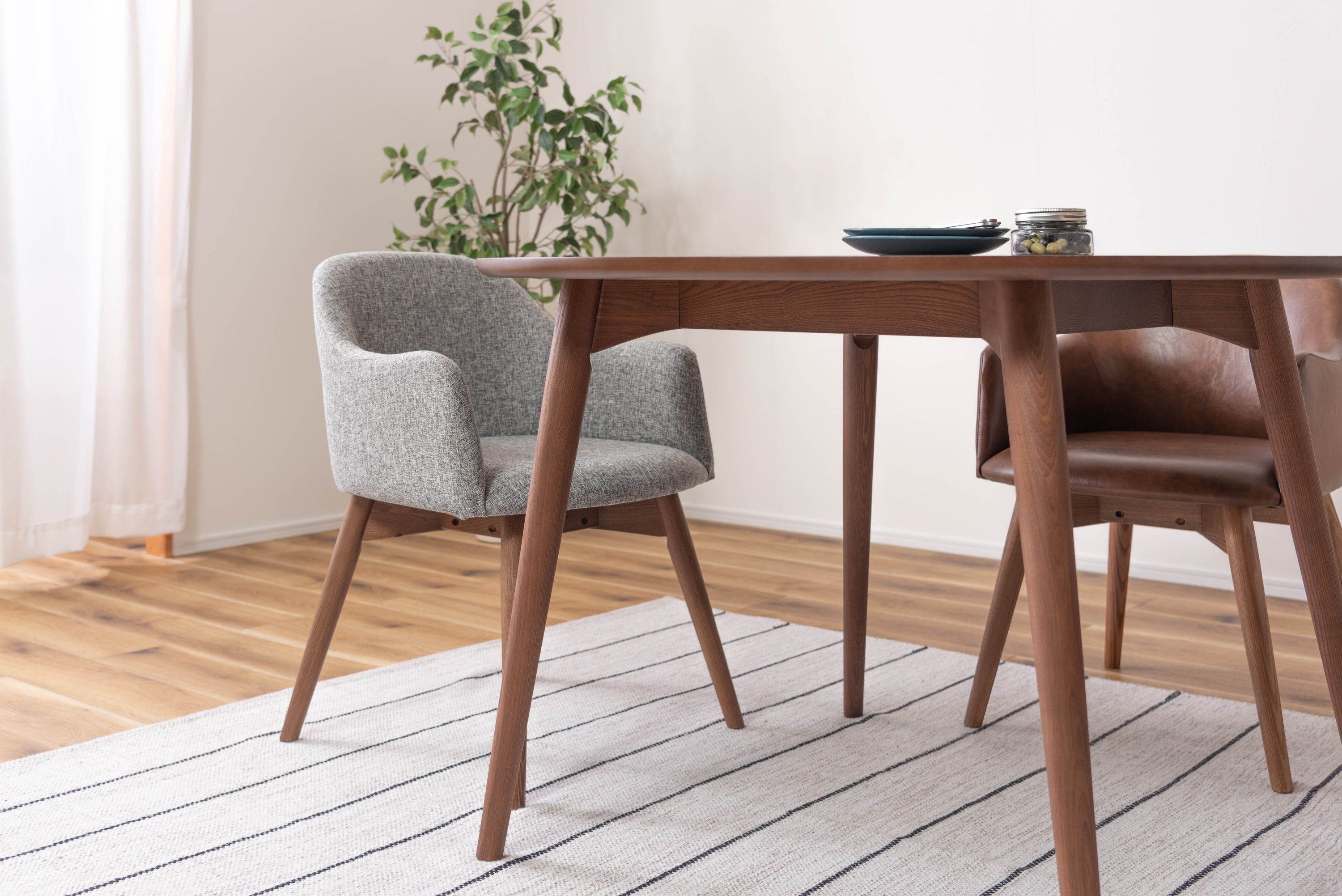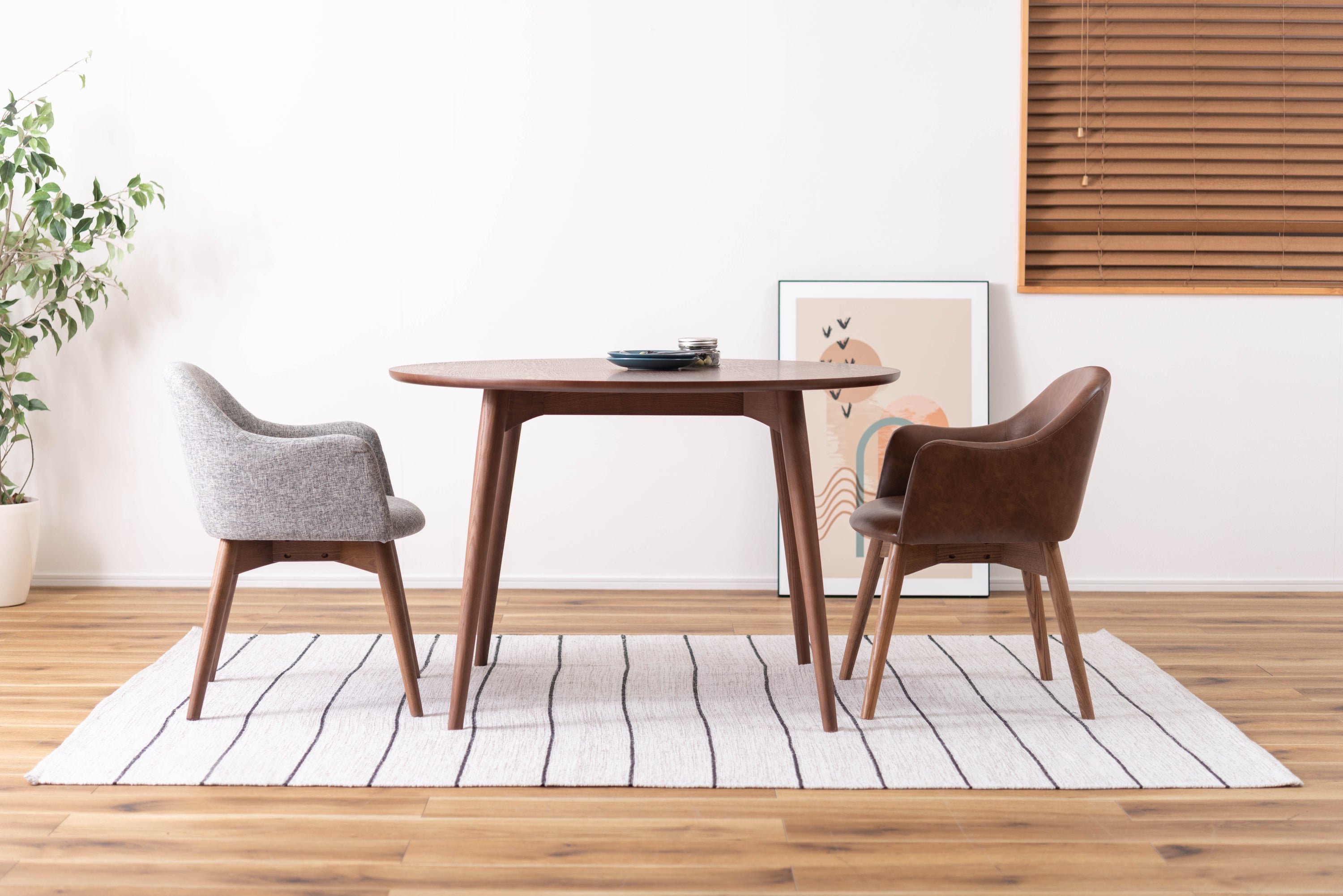 人気のカラメリシリーズに、落ち着いた色味のブラウンのテーブルが登場。ナチュラル同様に丸みのあるデザインを取り入れ、永く親しみやすいように仕上げました。セットにおすすめのチェアは、同シリーズのダイニングチェア。脚部分がブラウンなのでテーブルとの色味もばっちりです。より一層シックで落ち着いた雰囲気の食卓を演出します。
