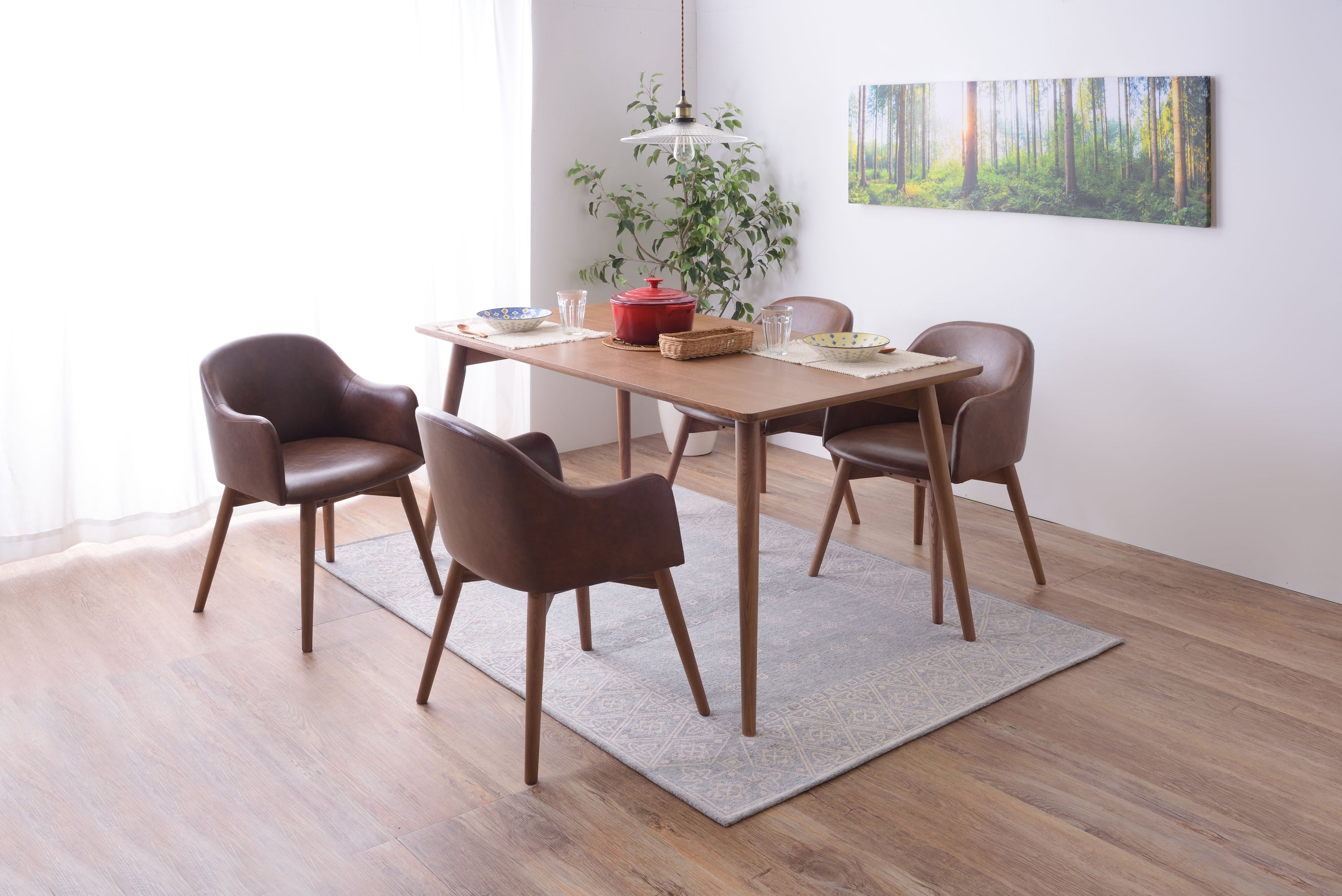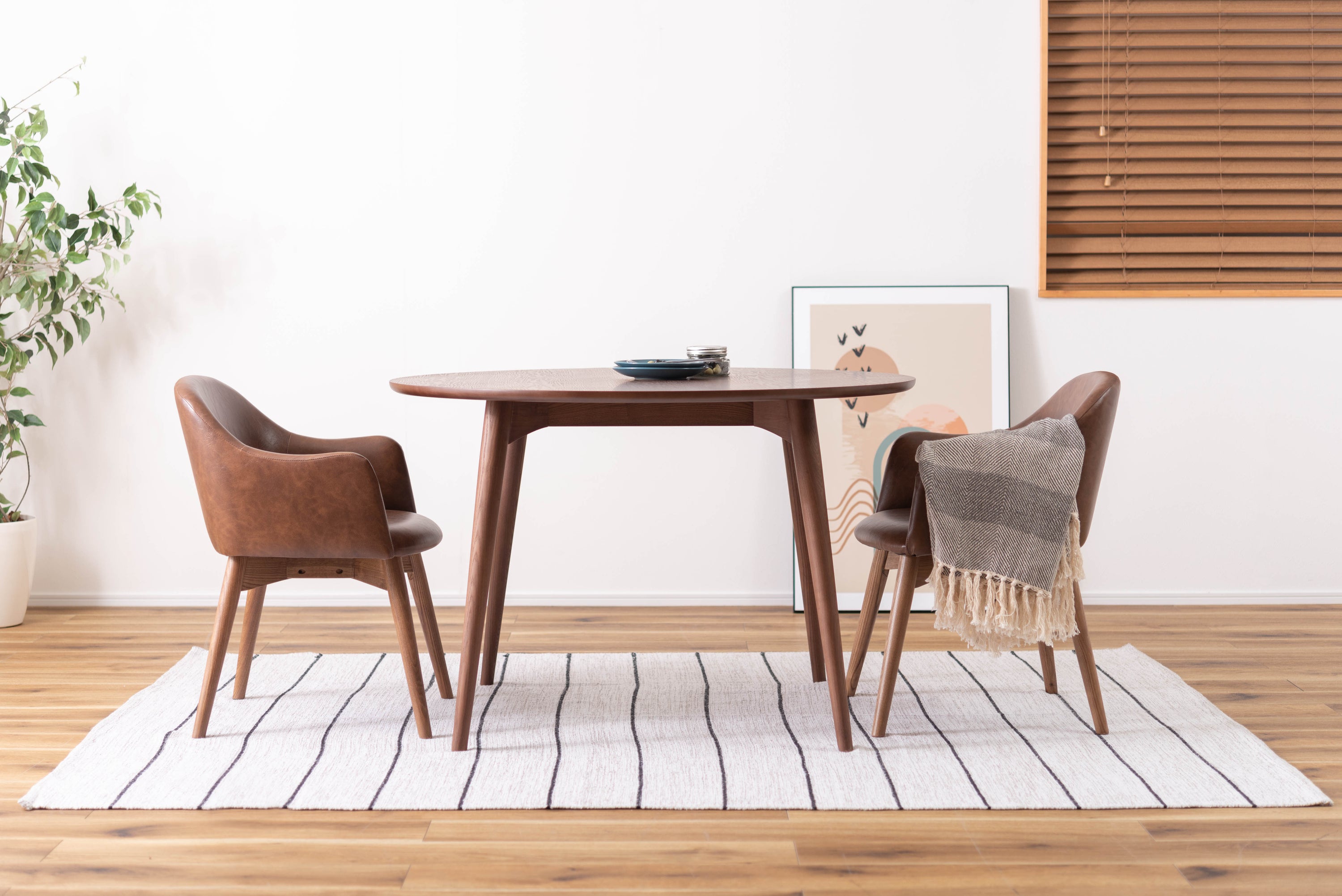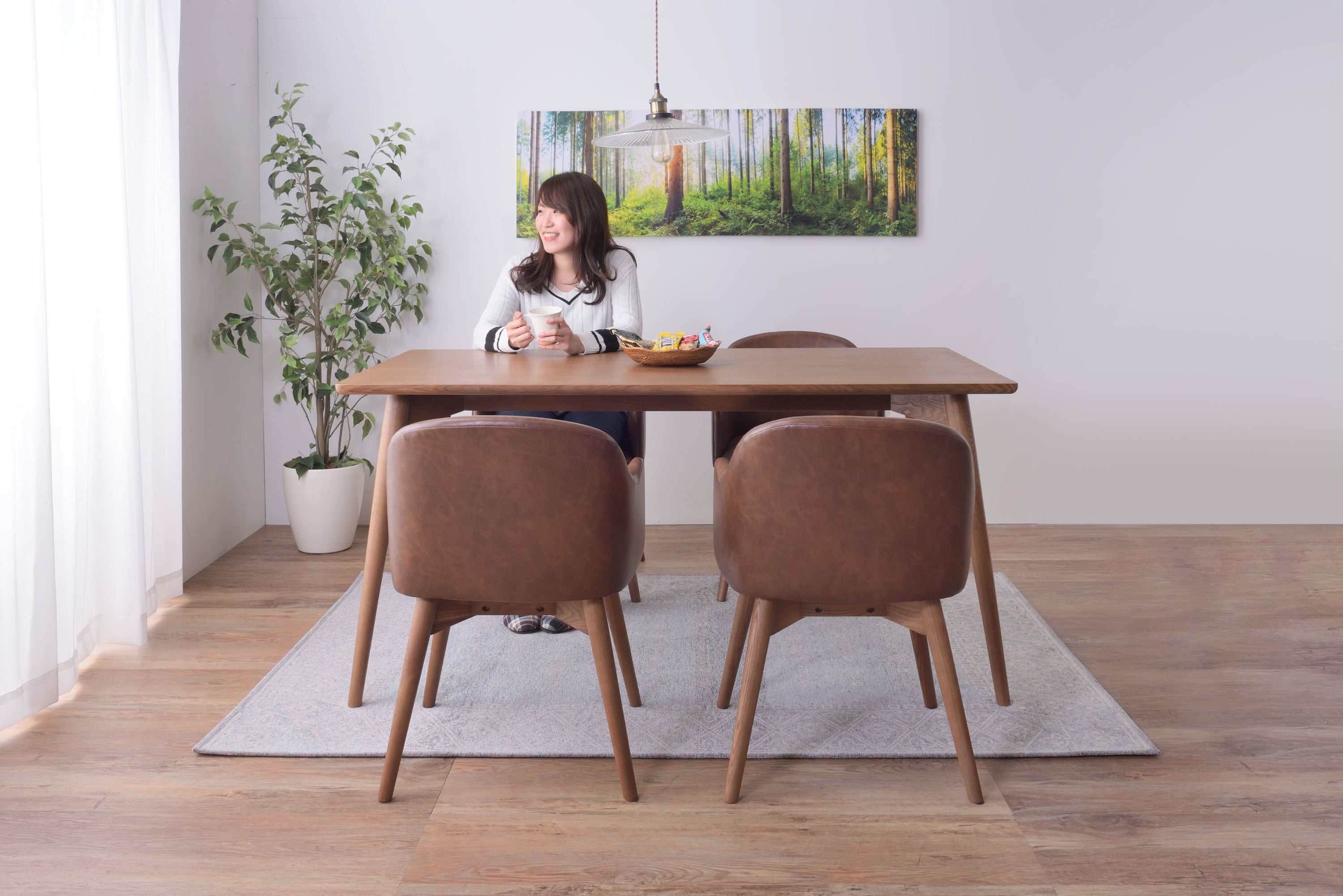 人気のカラメリシリーズに、落ち着いた色味のブラウンのテーブルが登場。ナチュラル同様に丸みのあるデザインを取り入れ、永く親しみやすいように仕上げました。セットにおすすめのチェアは、同シリーズのダイニングチェア。脚部分がブラウンなのでテーブルとの色味もばっちりです。より一層シックで落ち着いた雰囲気の食卓を演出します。