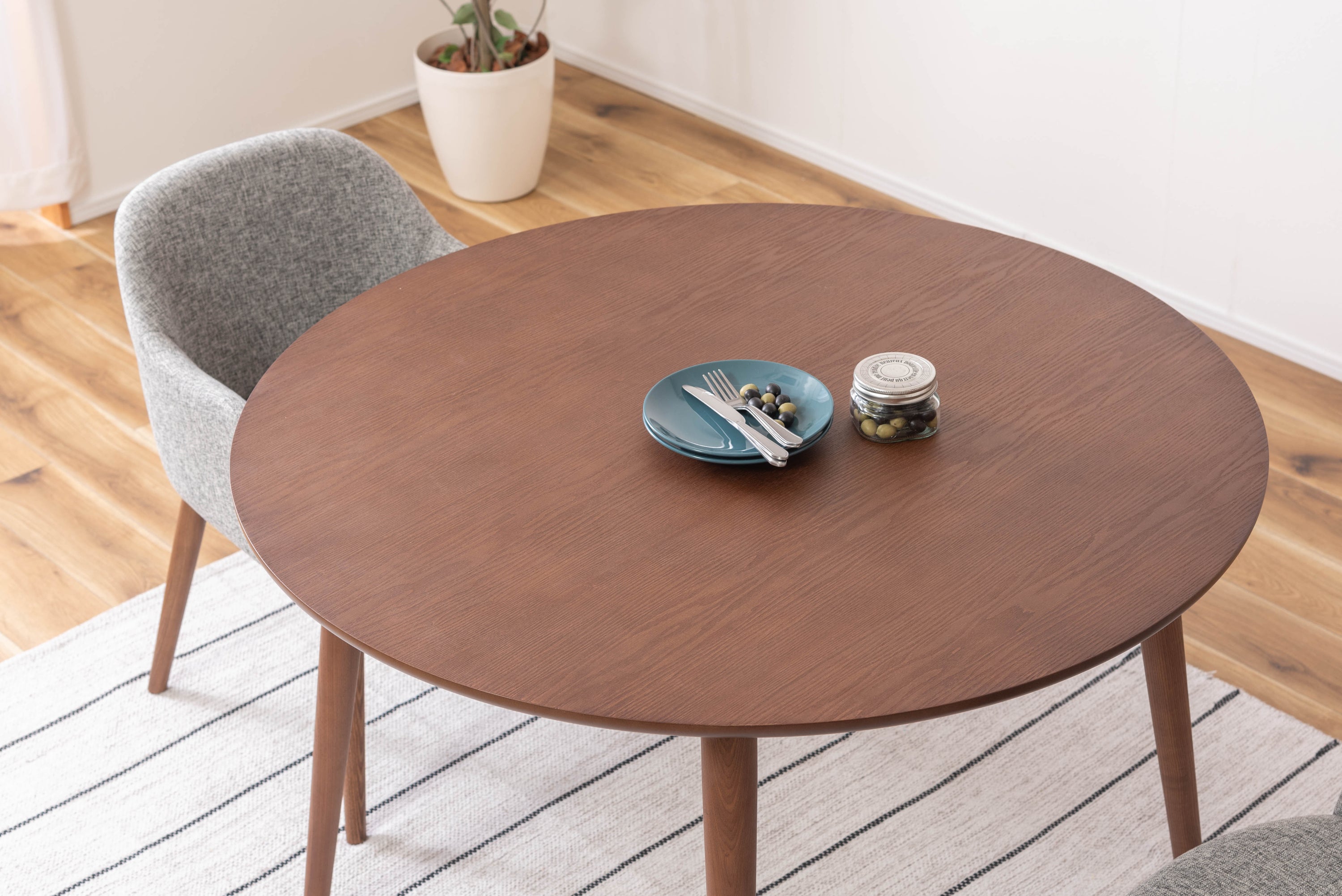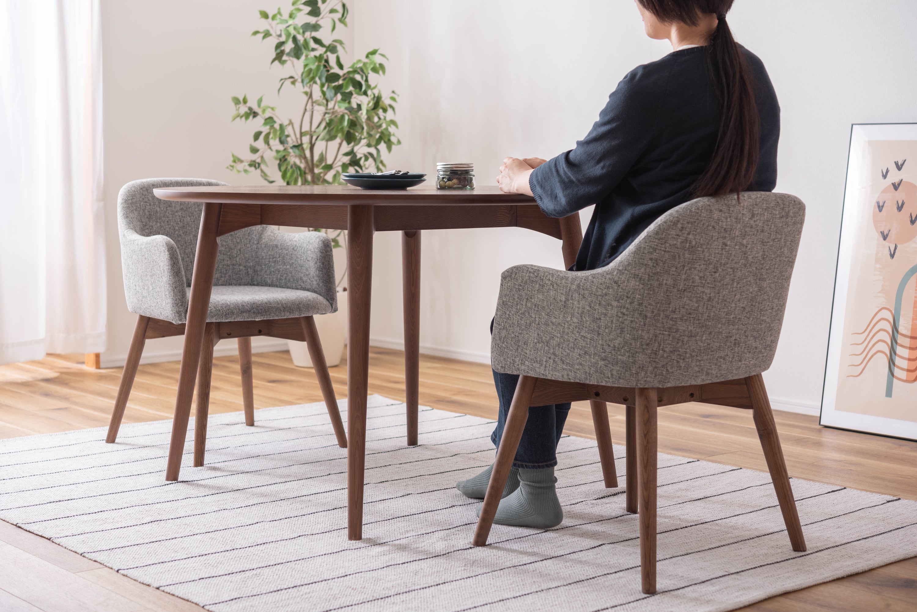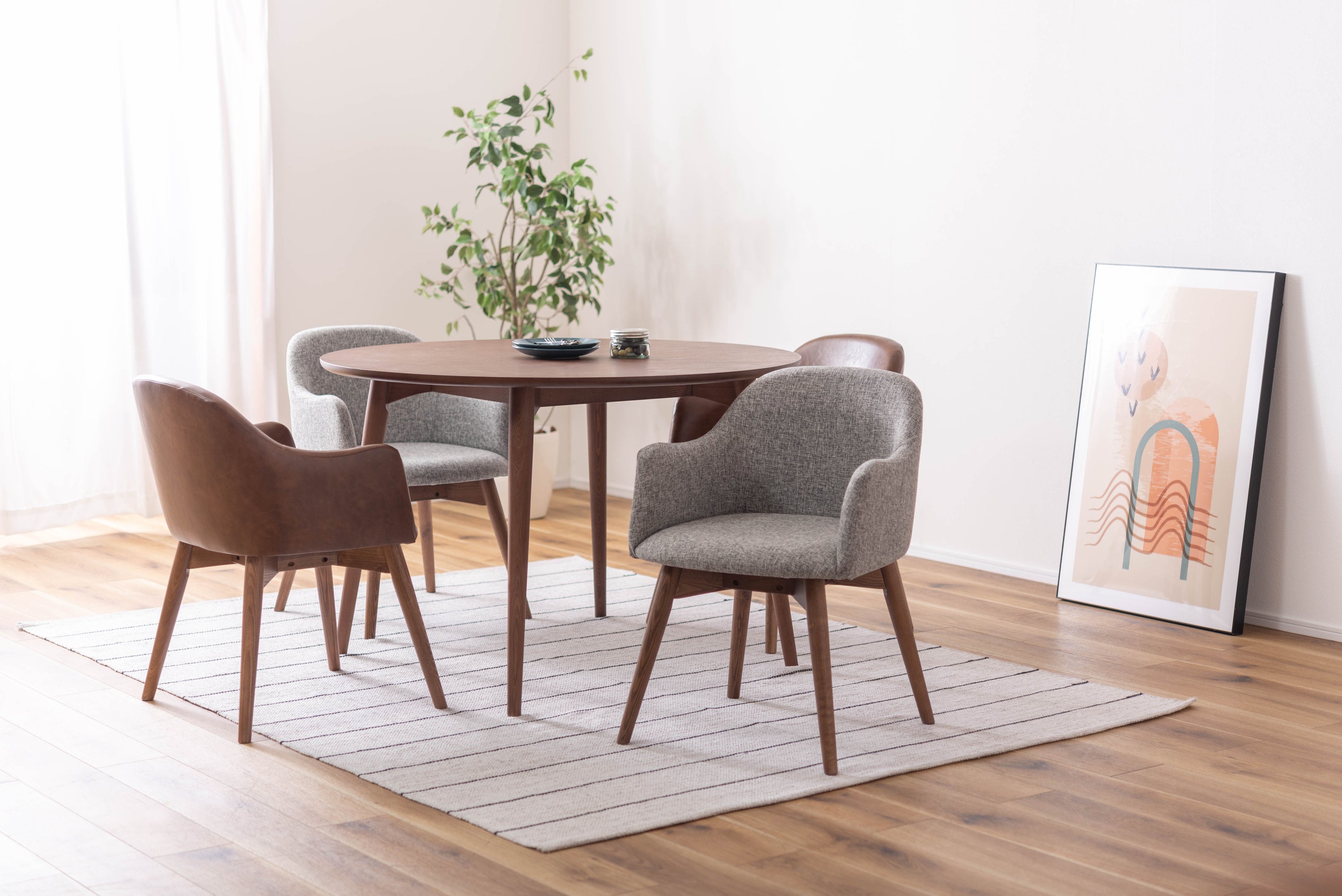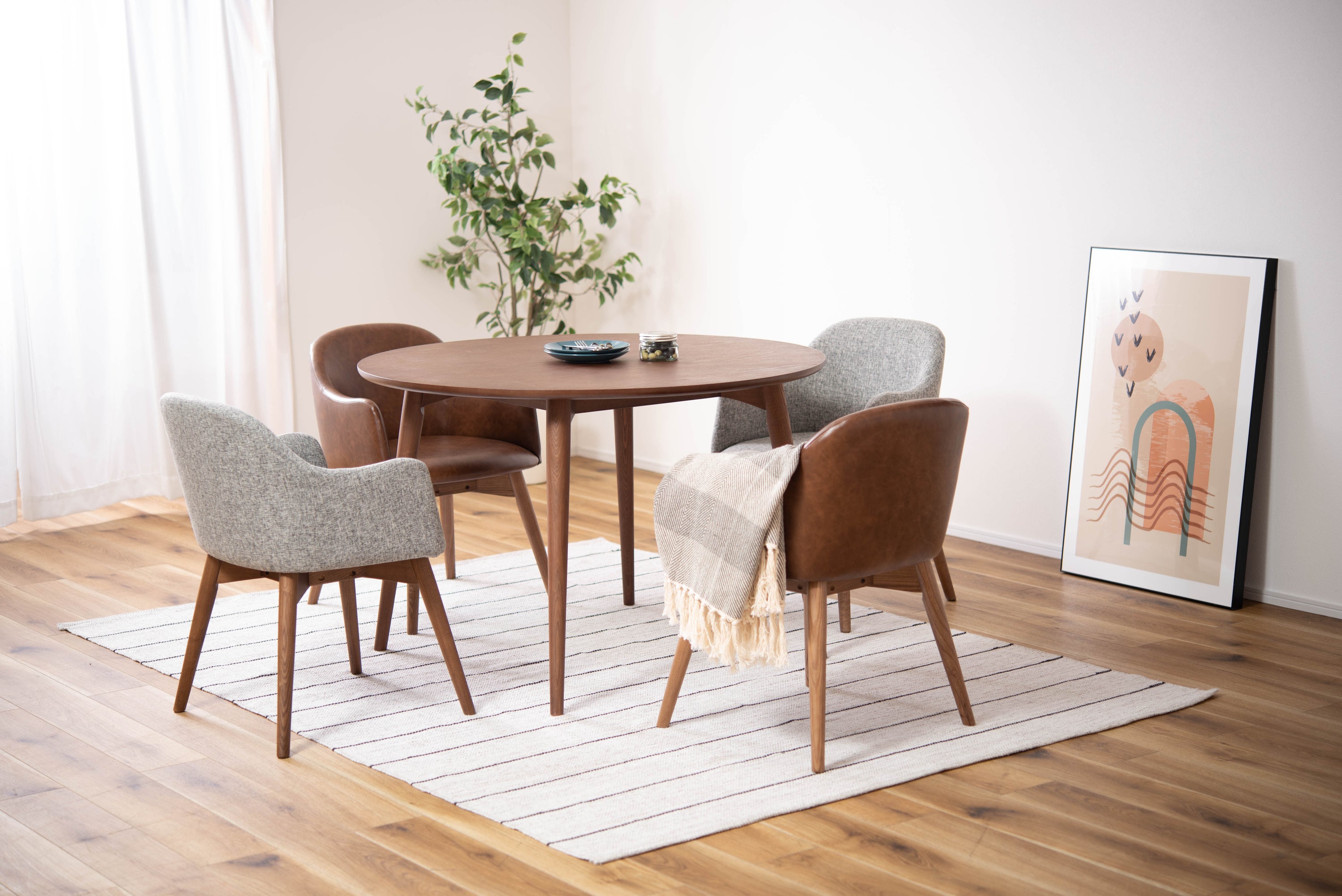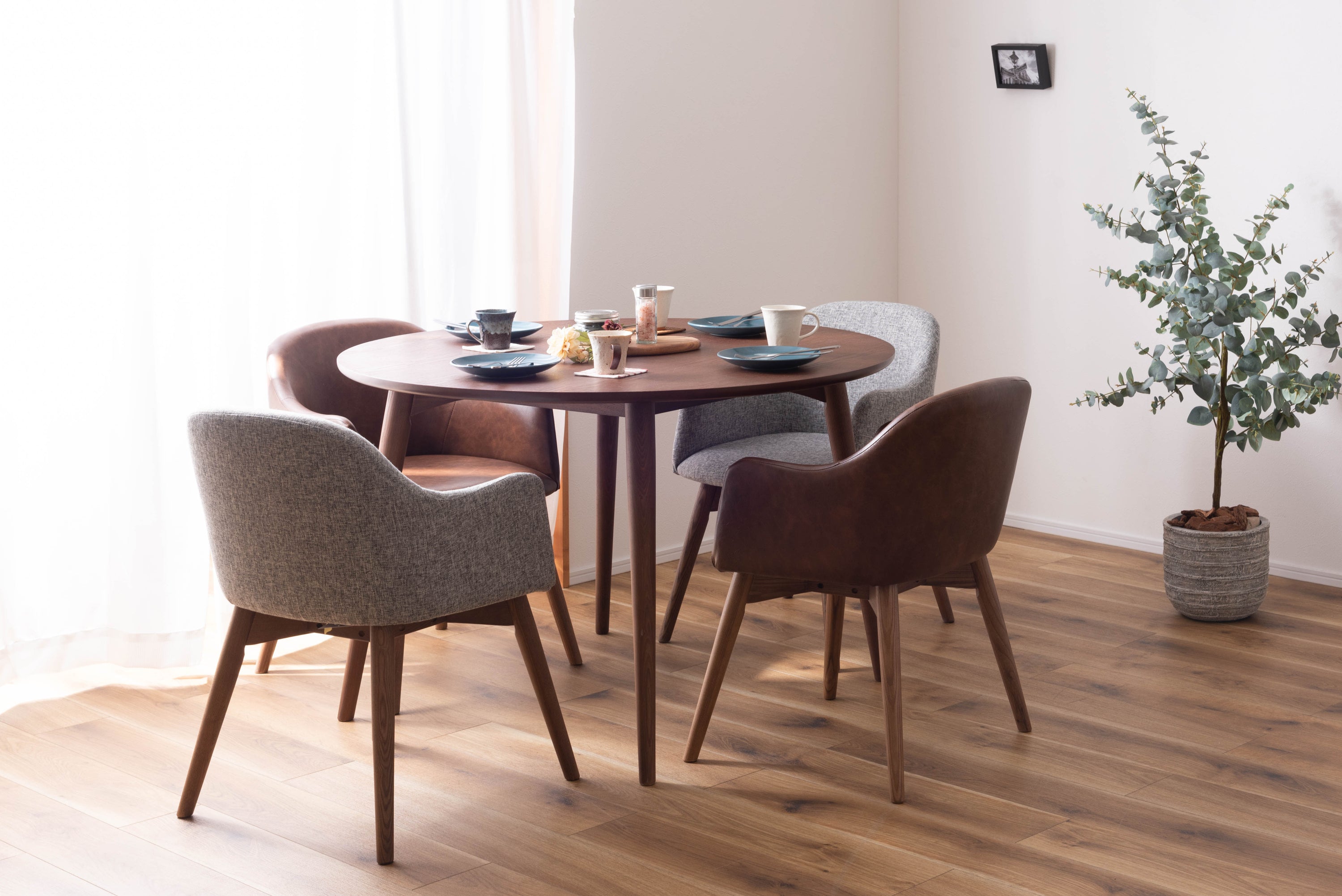 人気のカラメリシリーズに、落ち着いた色味のブラウンのテーブルが登場。ナチュラル同様に丸みのあるデザインを取り入れ、永く親しみやすいように仕上げました。セットにおすすめのチェアは、同シリーズのダイニングチェア。脚部分がブラウンなのでテーブルとの色味もばっちりです。より一層シックで落ち着いた雰囲気の食卓を演出します。