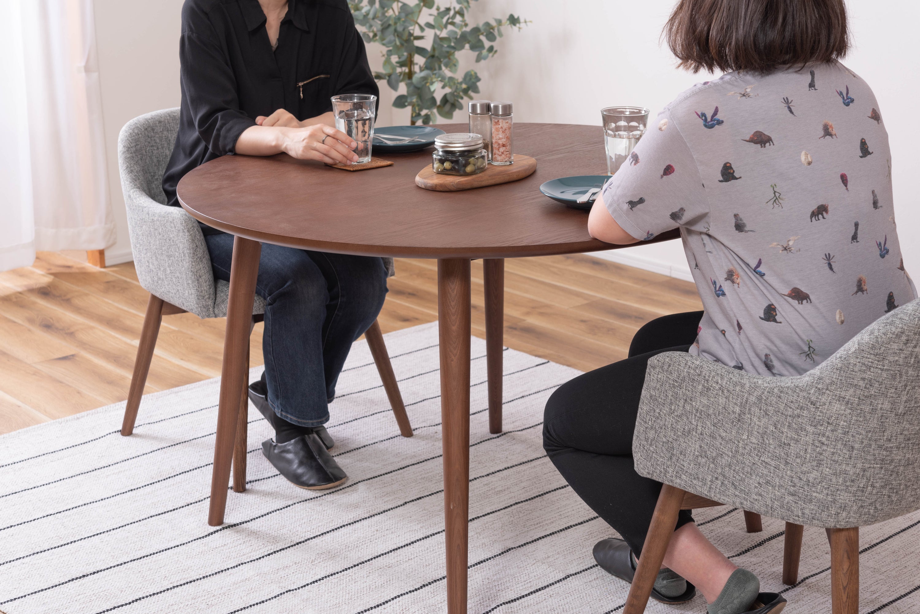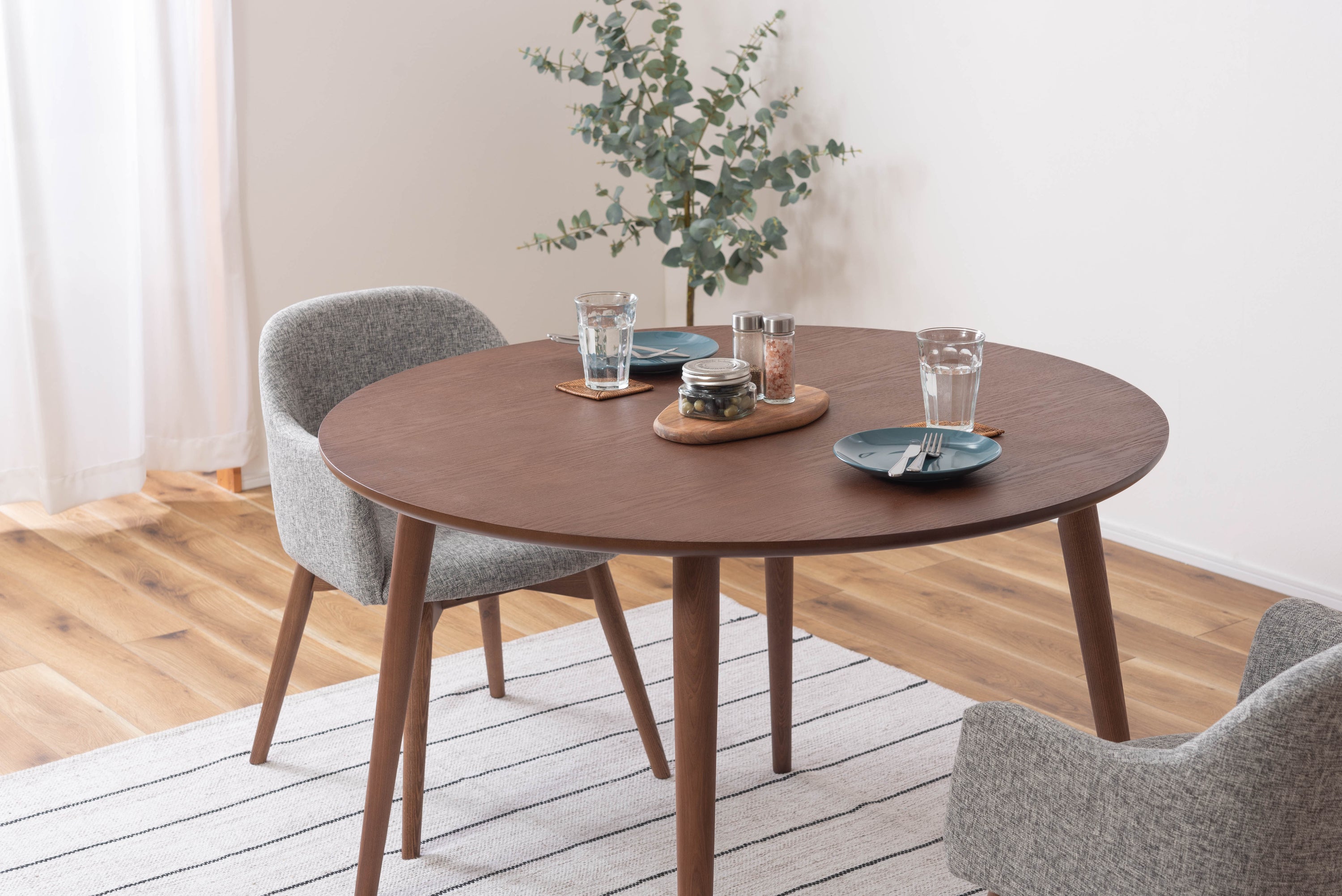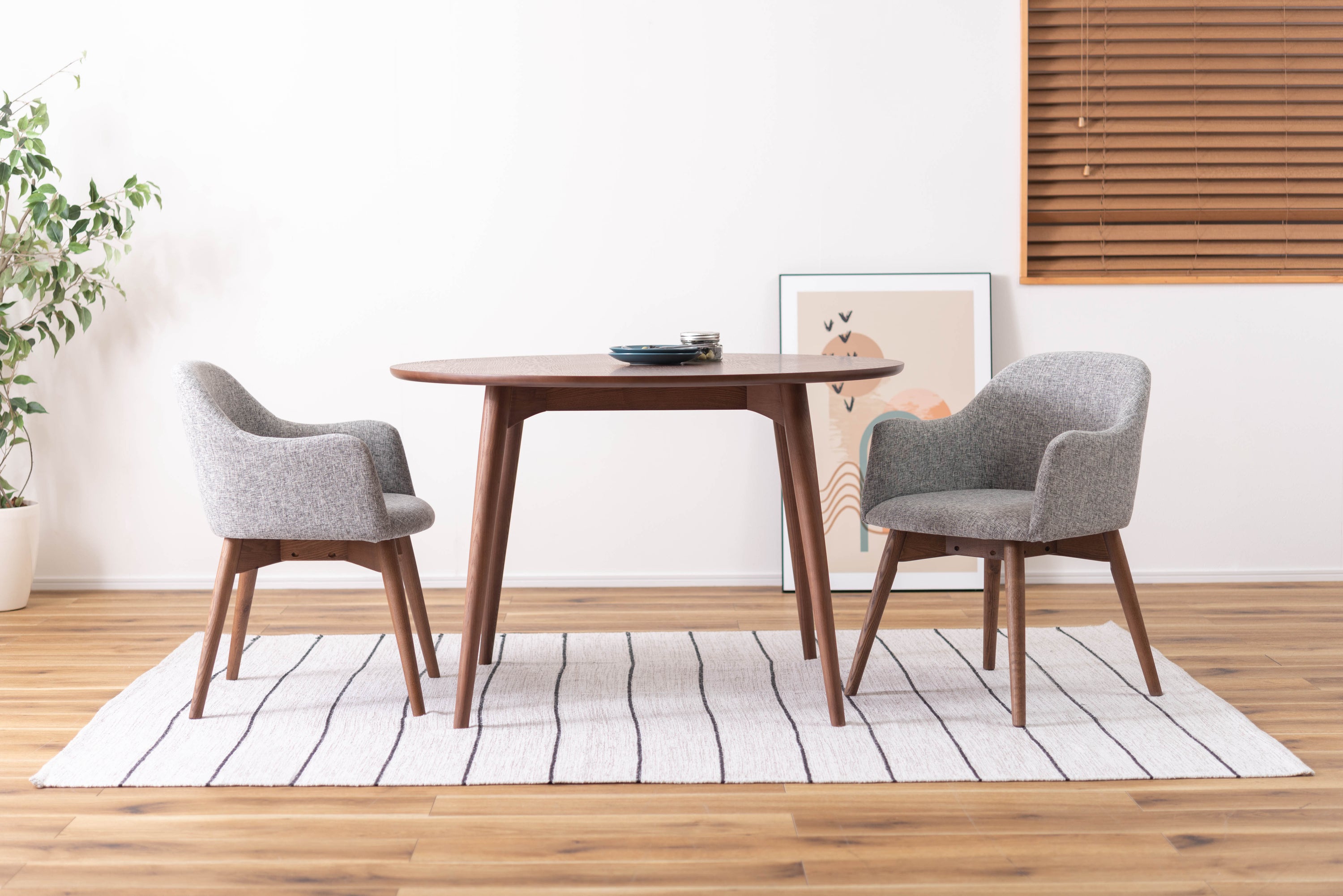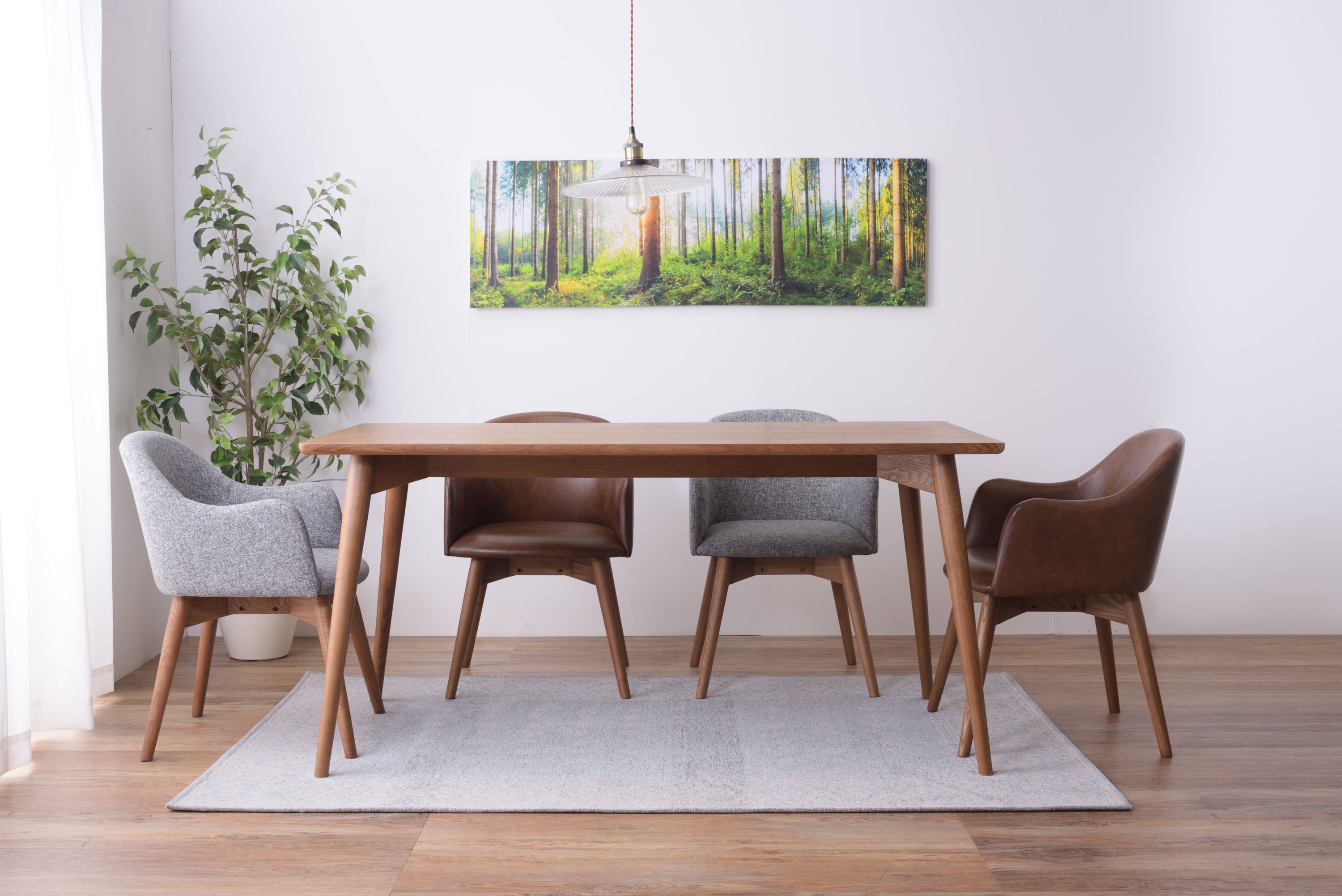 人気のカラメリシリーズに、落ち着いた色味のブラウンのテーブルが登場。ナチュラル同様に丸みのあるデザインを取り入れ、永く親しみやすいように仕上げました。セットにおすすめのチェアは、同シリーズのダイニングチェア。脚部分がブラウンなのでテーブルとの色味もばっちりです。より一層シックで落ち着いた雰囲気の食卓を演出します。
