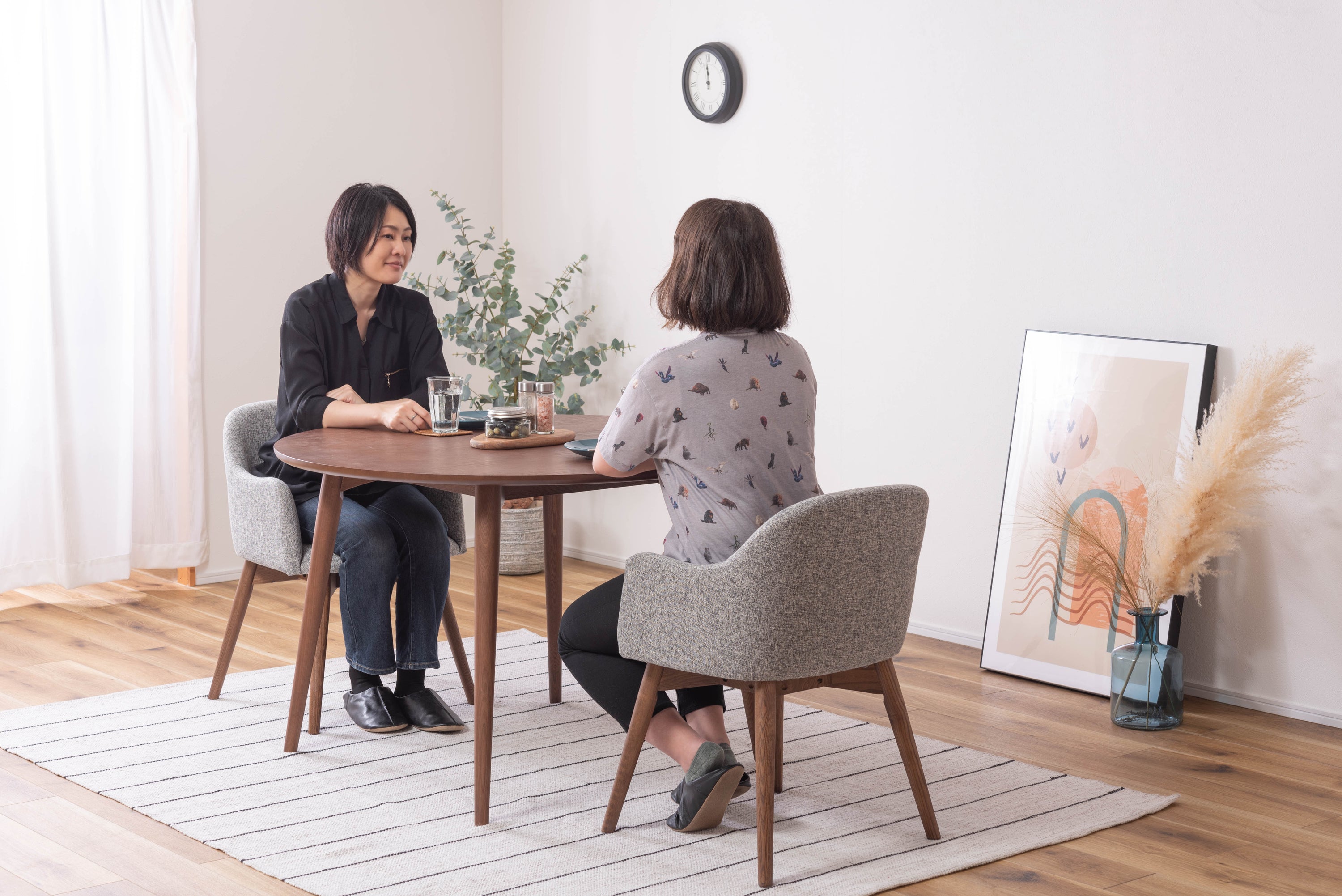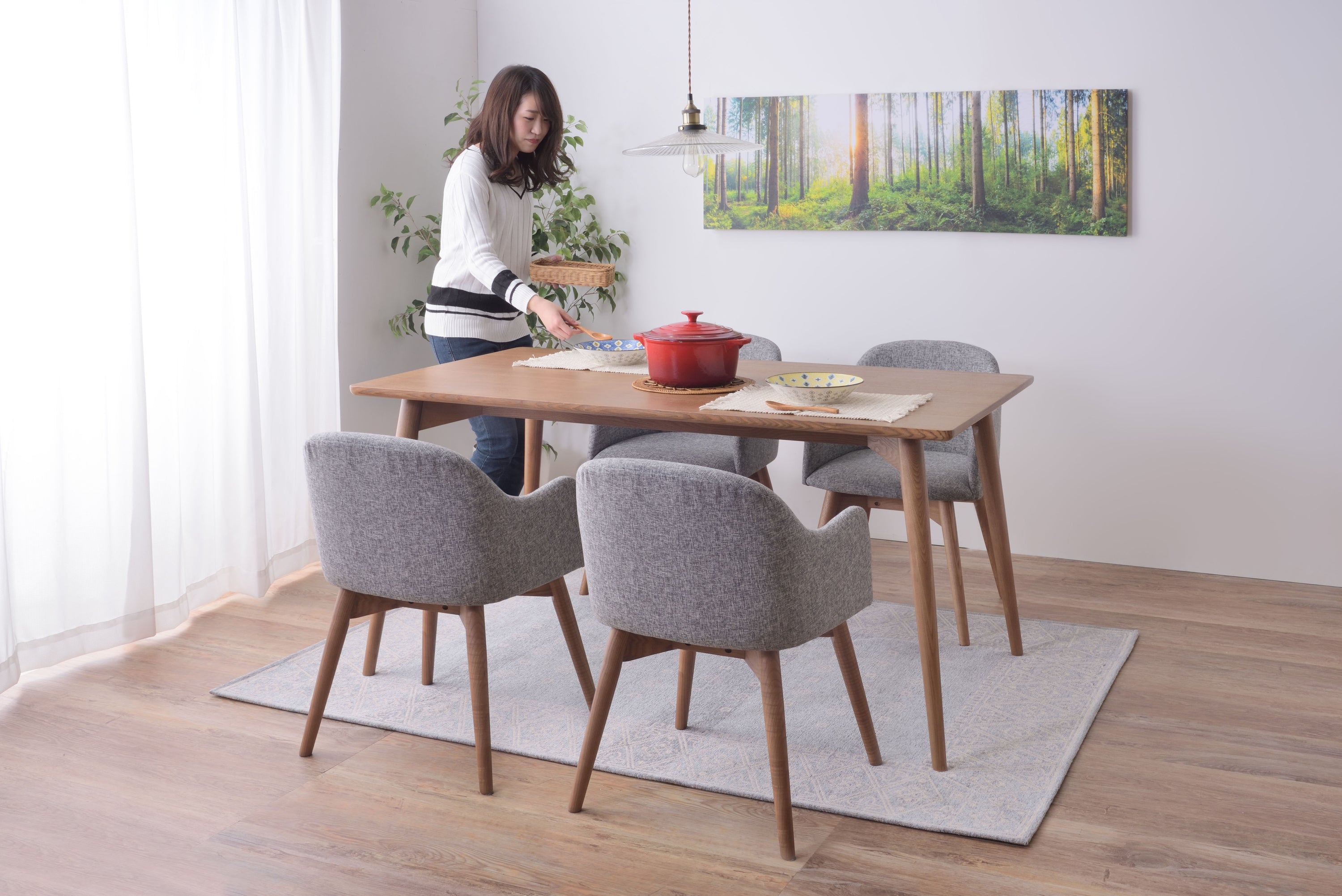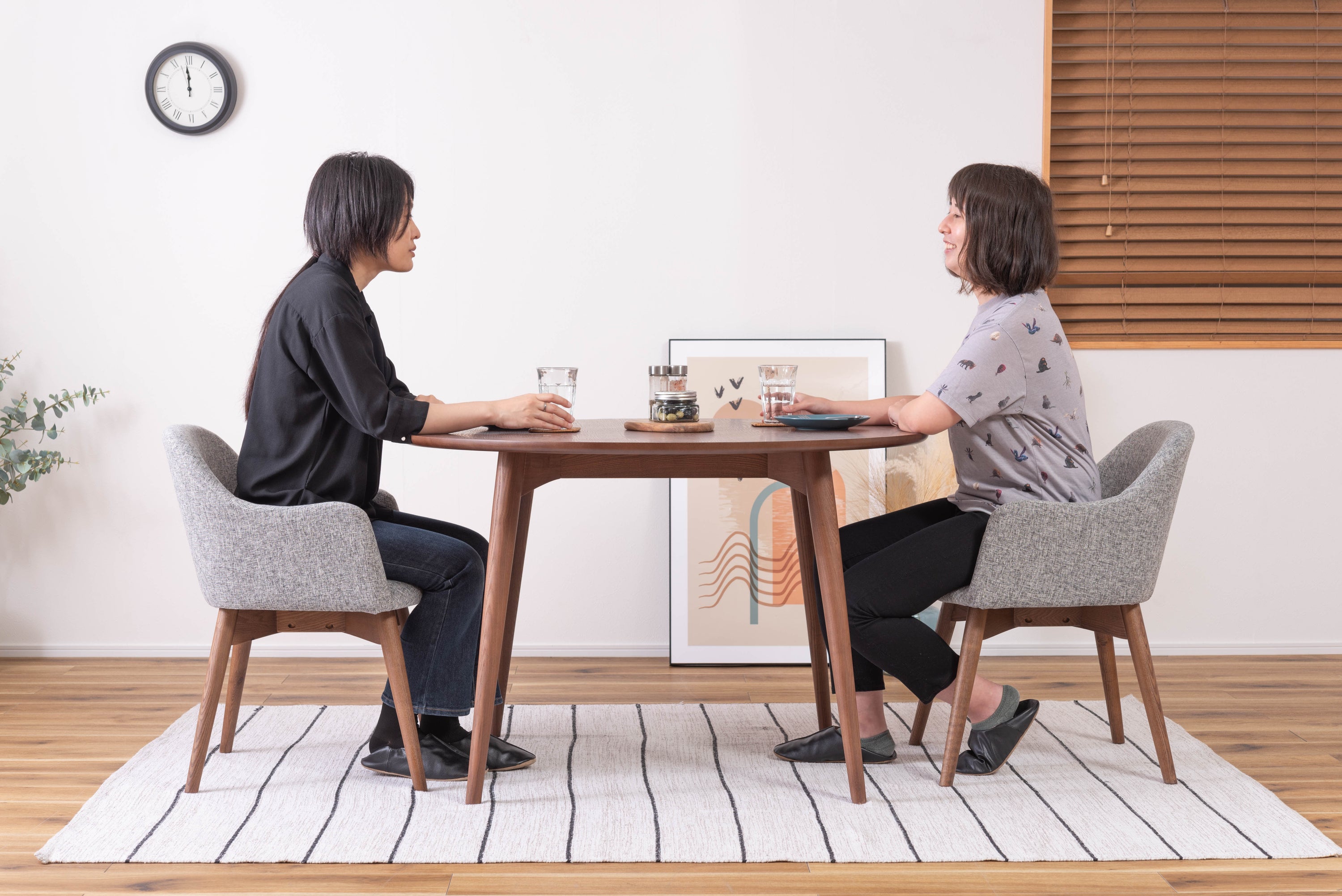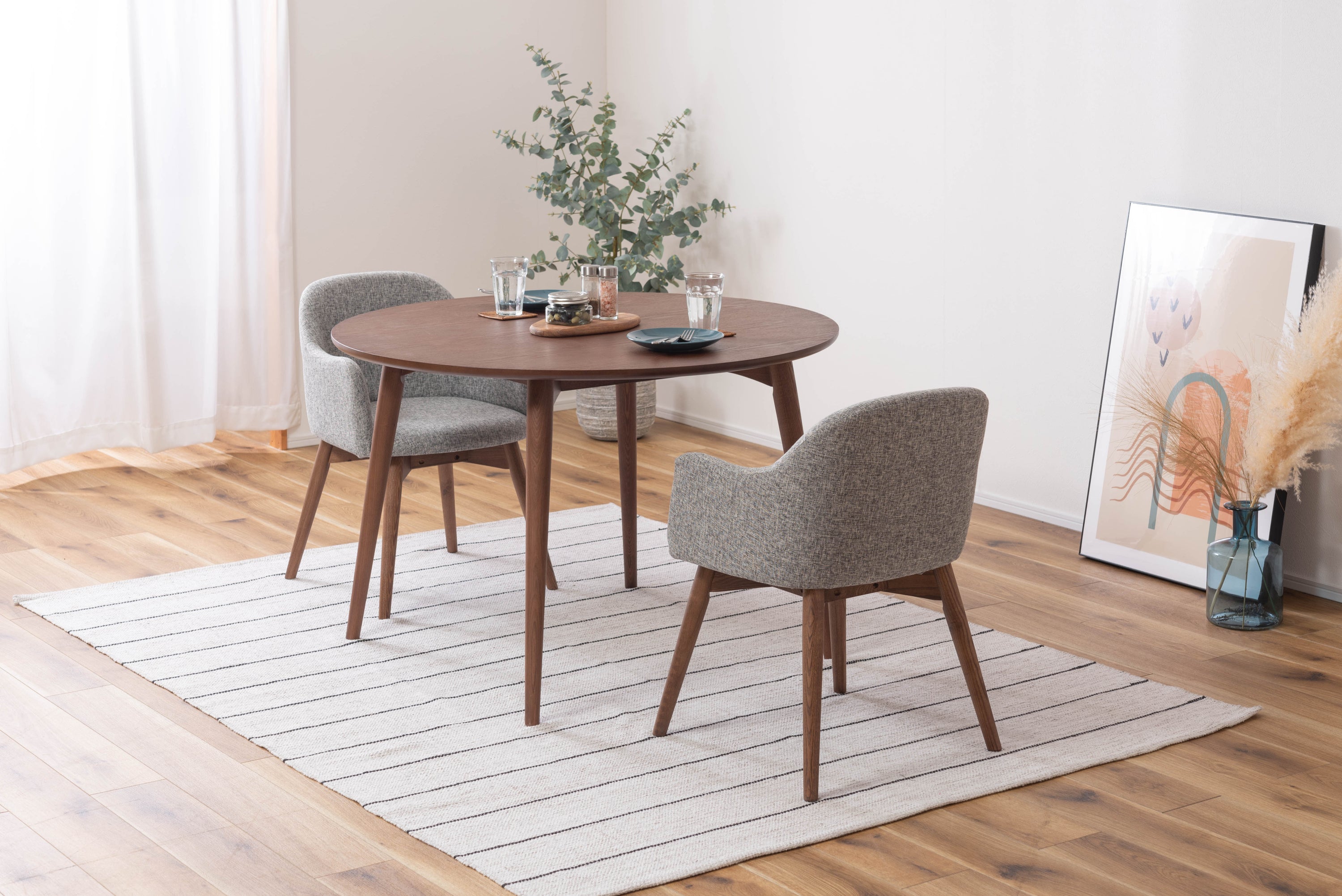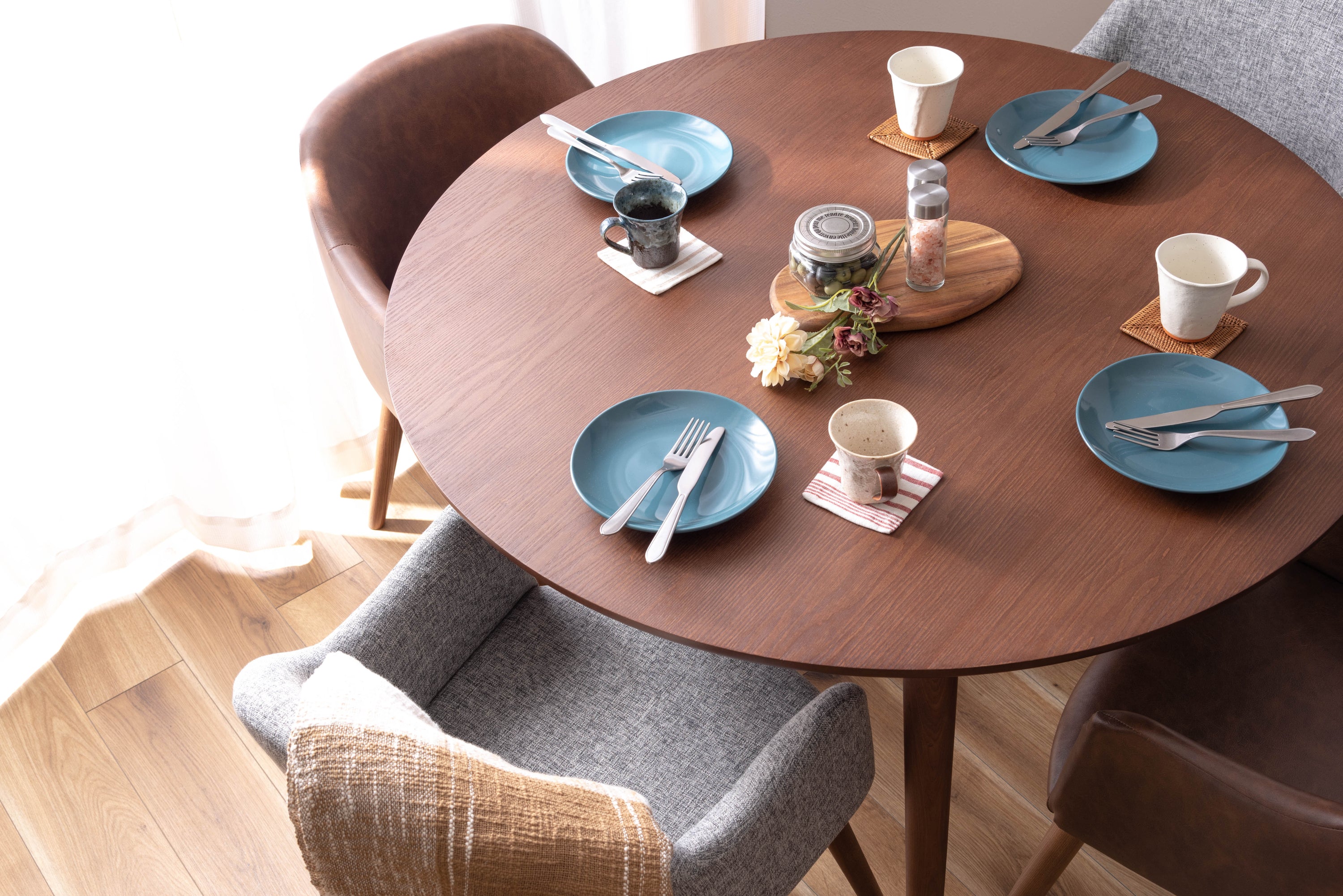 人気のカラメリシリーズに、落ち着いた色味のブラウンのテーブルが登場。ナチュラル同様に丸みのあるデザインを取り入れ、永く親しみやすいように仕上げました。セットにおすすめのチェアは、同シリーズのダイニングチェア。脚部分がブラウンなのでテーブルとの色味もばっちりです。より一層シックで落ち着いた雰囲気の食卓を演出します。