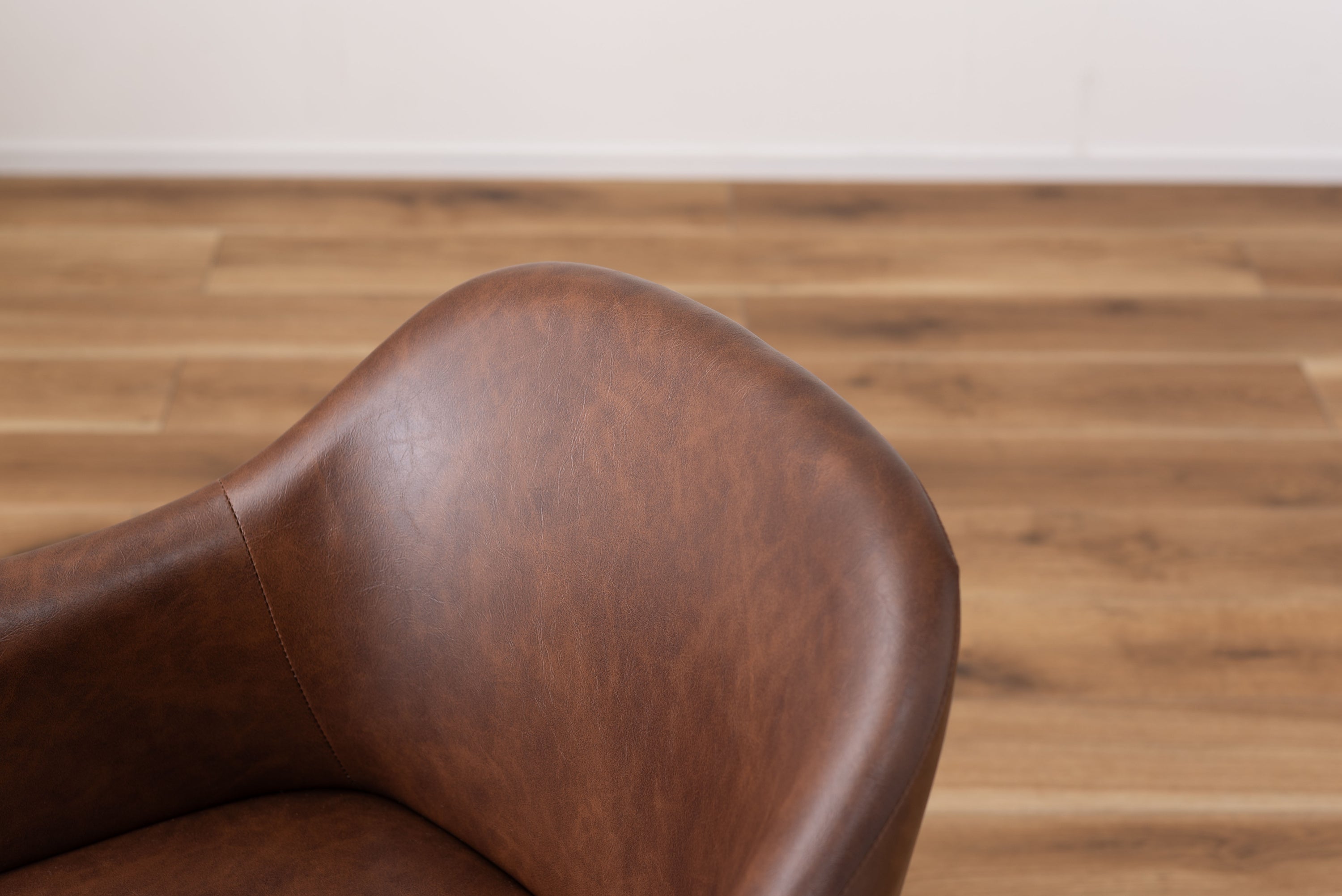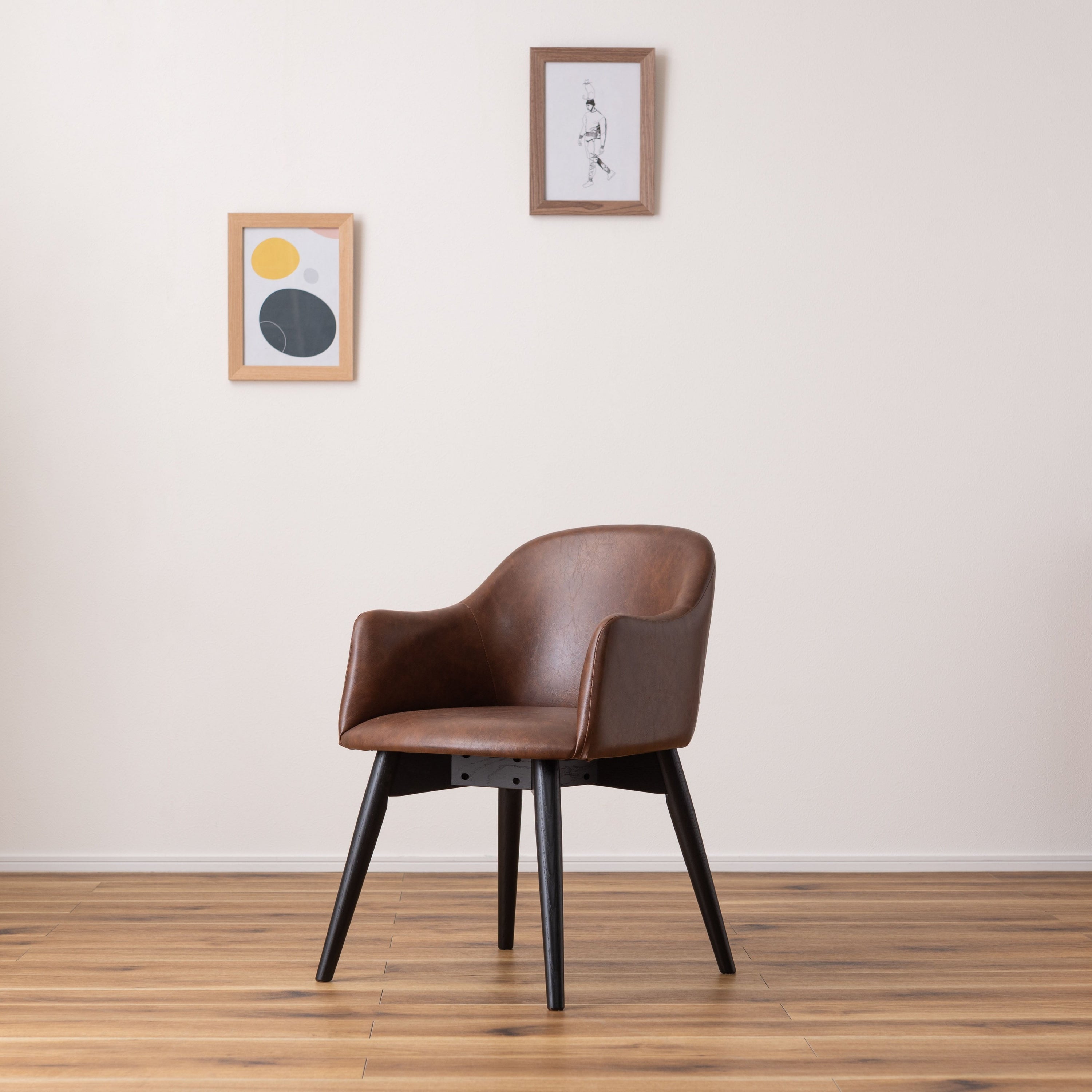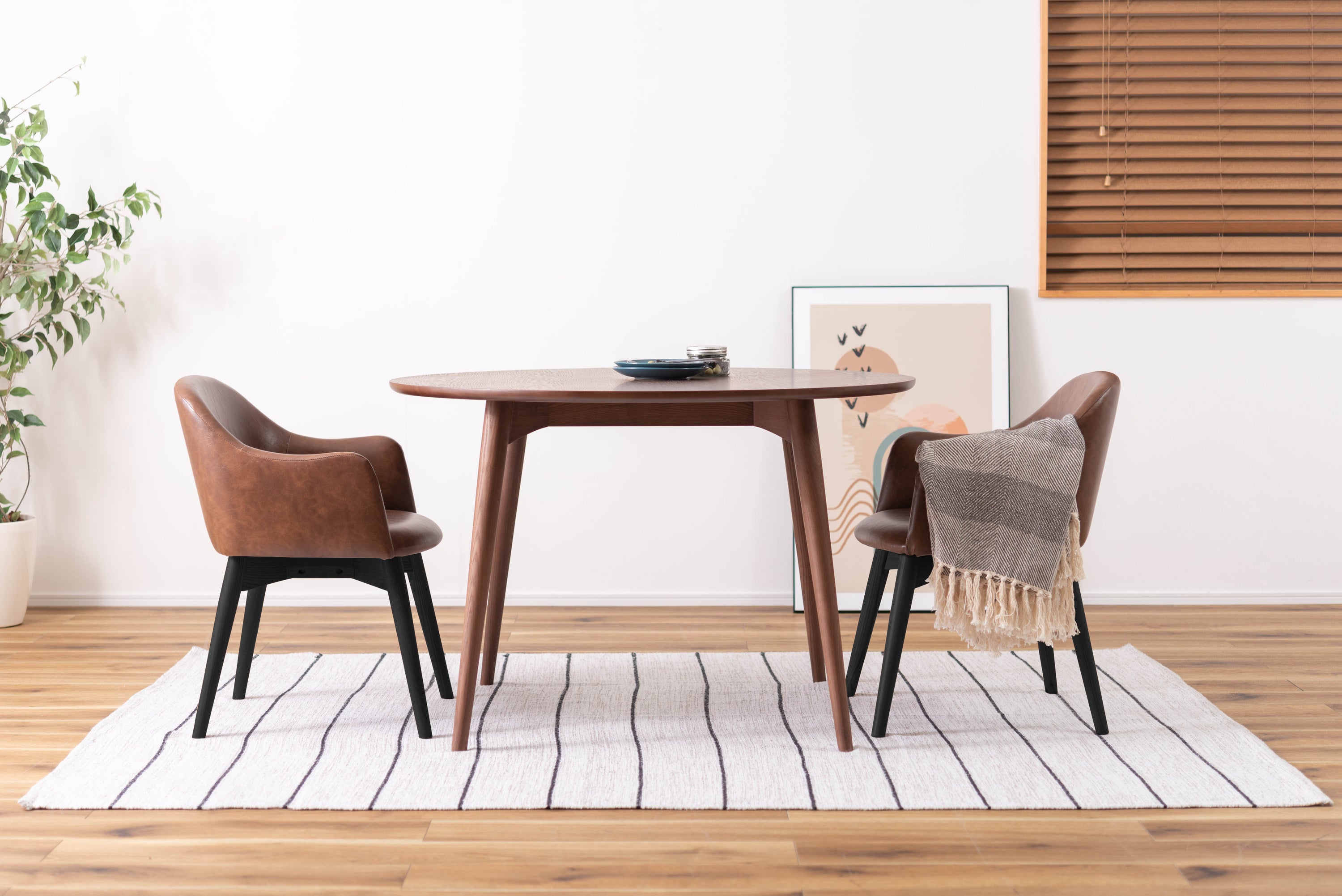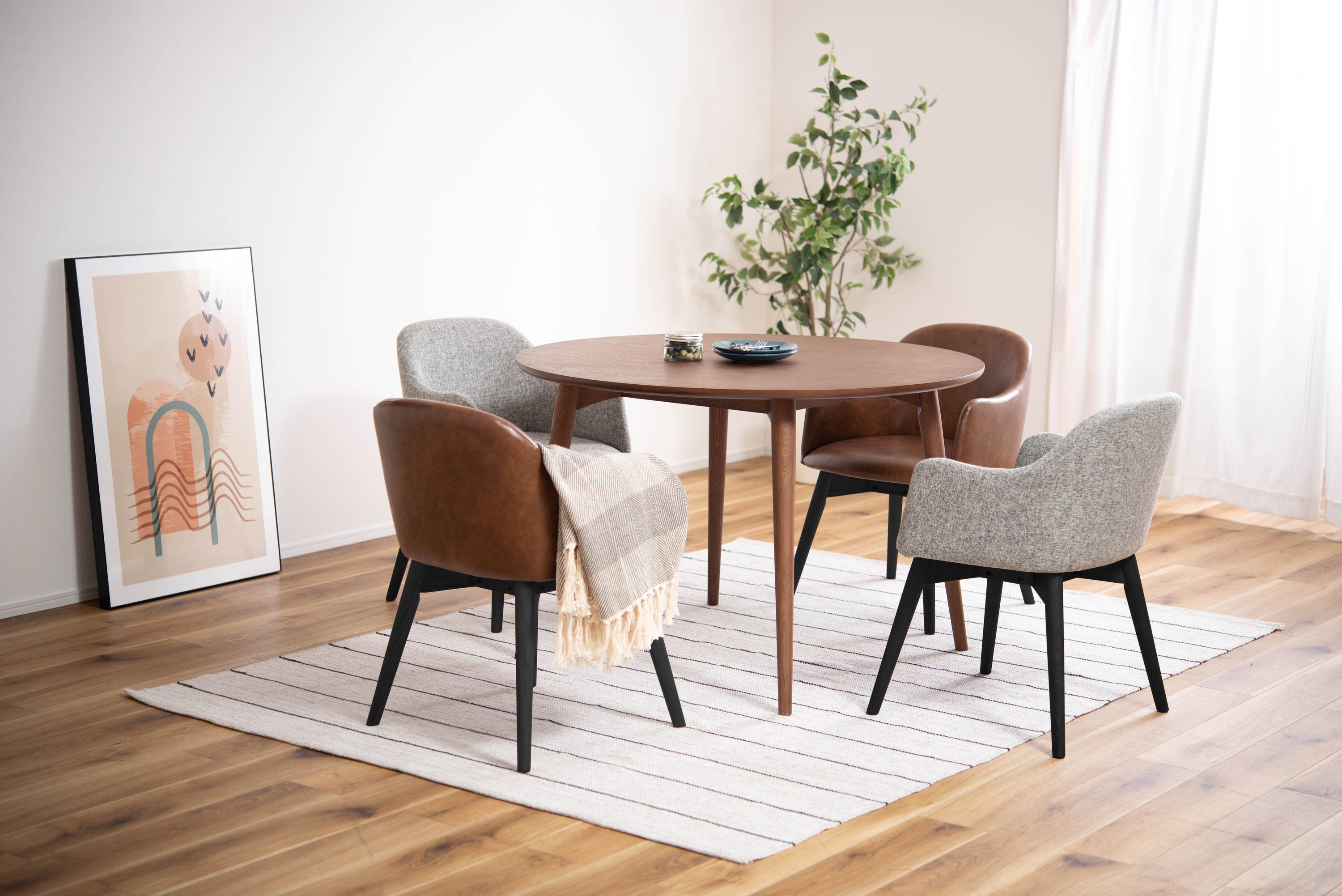 カラメリシリーズのダイニングチェアに黒脚タイプが登場。 木目の優しさはそのままに、シックなカラーが空間を引き締めてくれます。 レザー(合皮)とファブリックの2種類の座面とも相性は抜群。 背もたれとアームが一体となった、包み込むように身体を支えてくれるダイニングチェア。 全体的に丸みのある優しいフォルムが「心地よい曲線」=カラメリ(造語)の由来。 カラメリチェアはSHを43cmに設計してあるので、立ち座りしやすく長時間座っていても疲れにくい仕様。 脚部は角を落とし、ハの字に設計することで、北欧ナチュラルデザインを表現した優しい印象に仕上げました。
