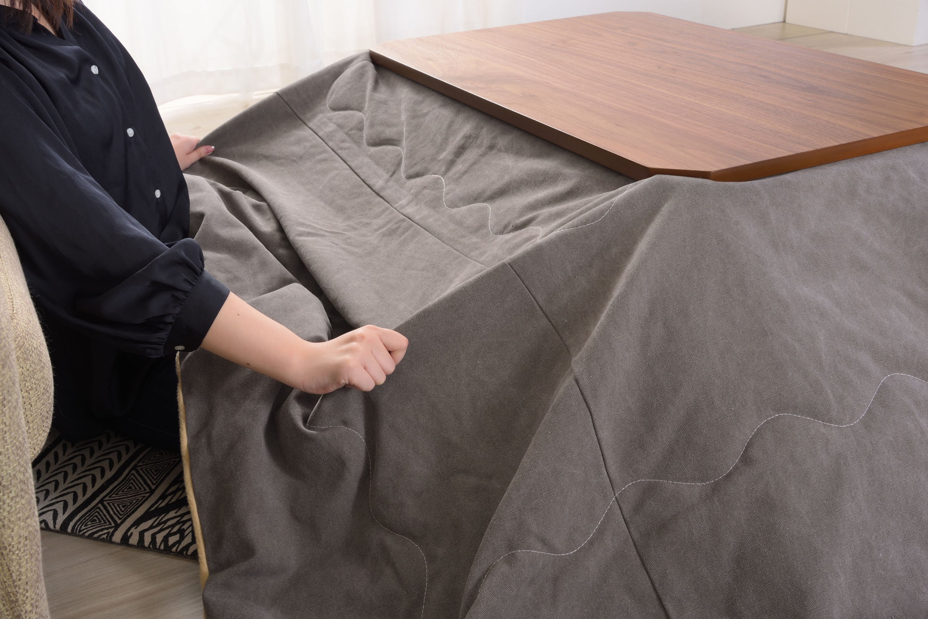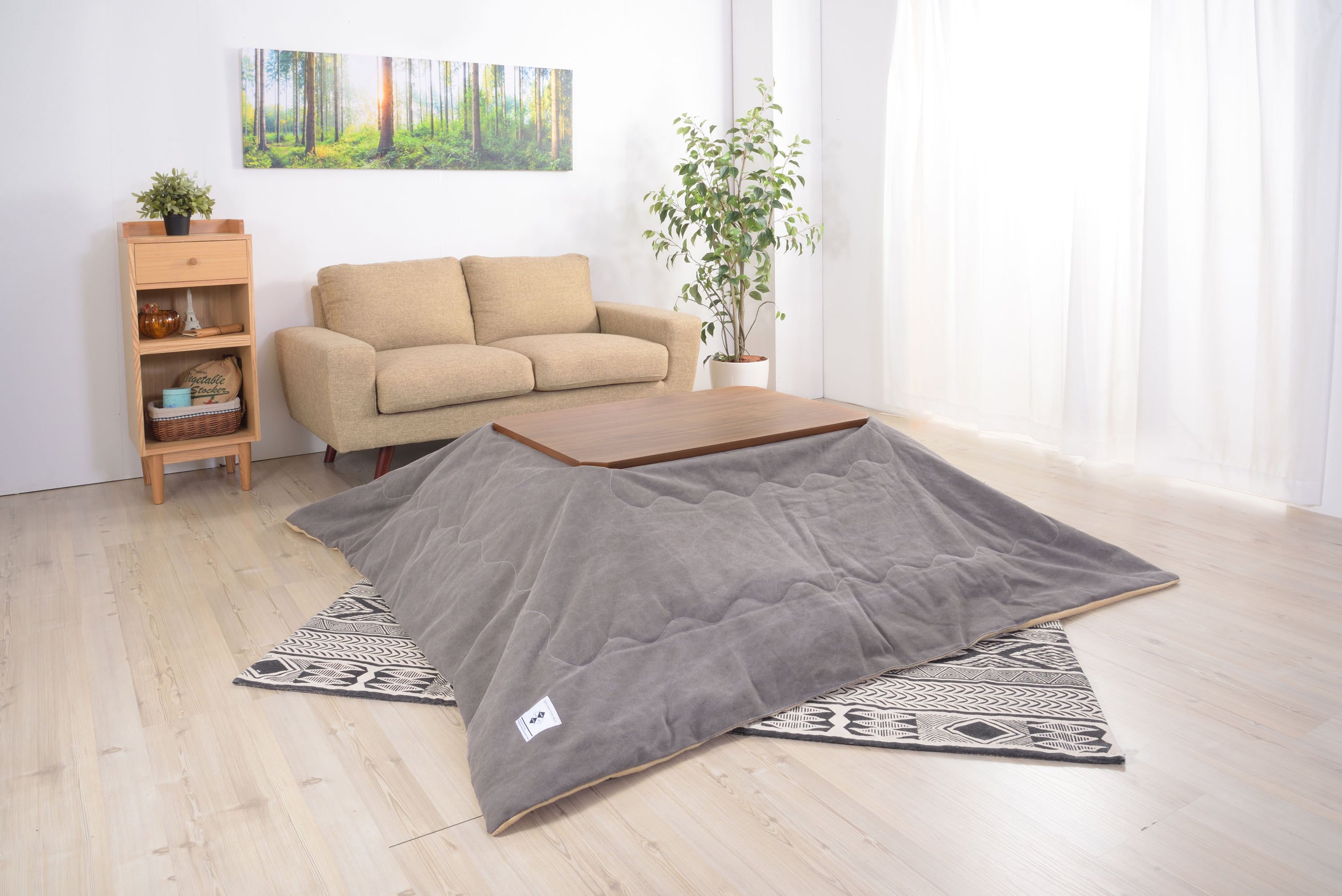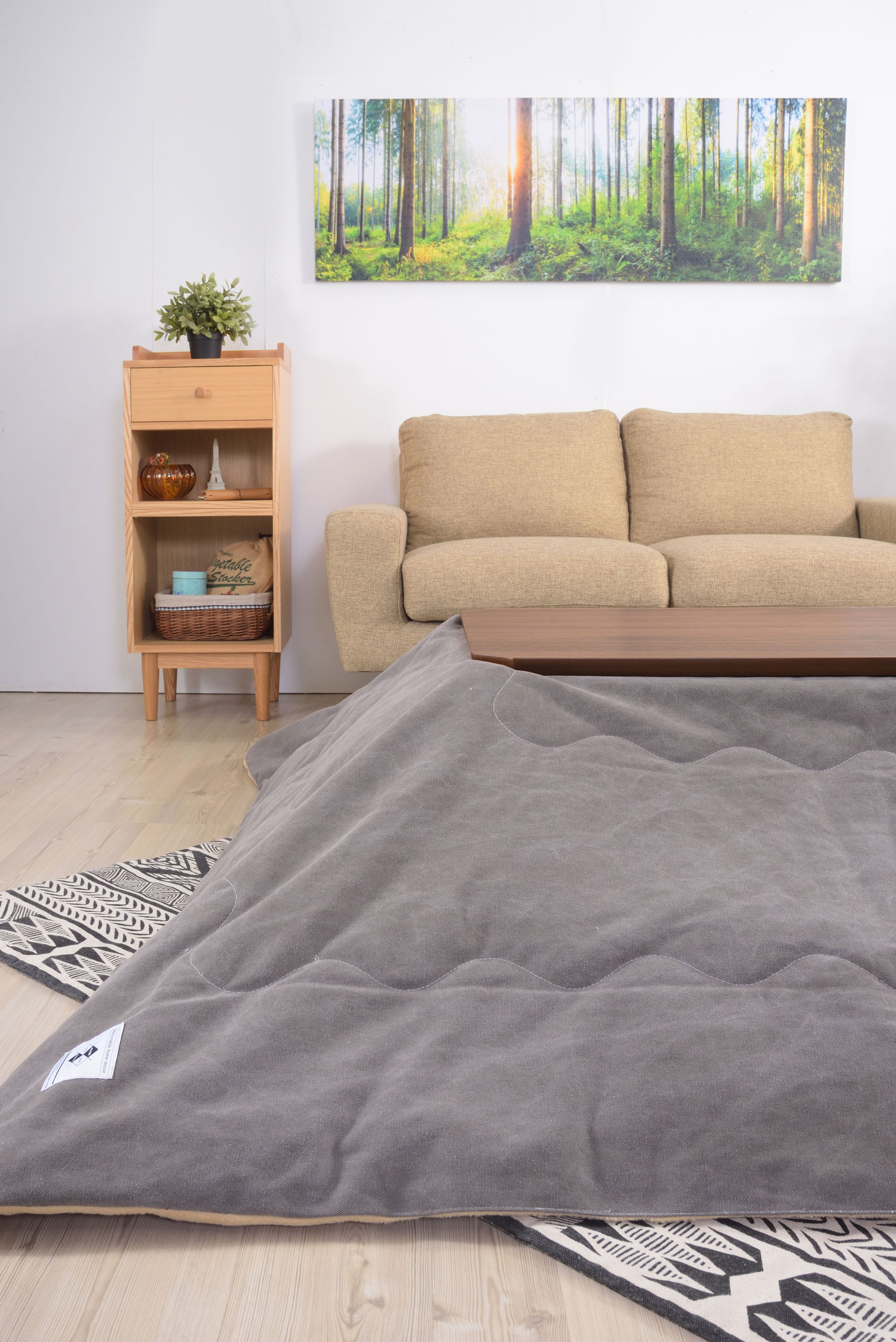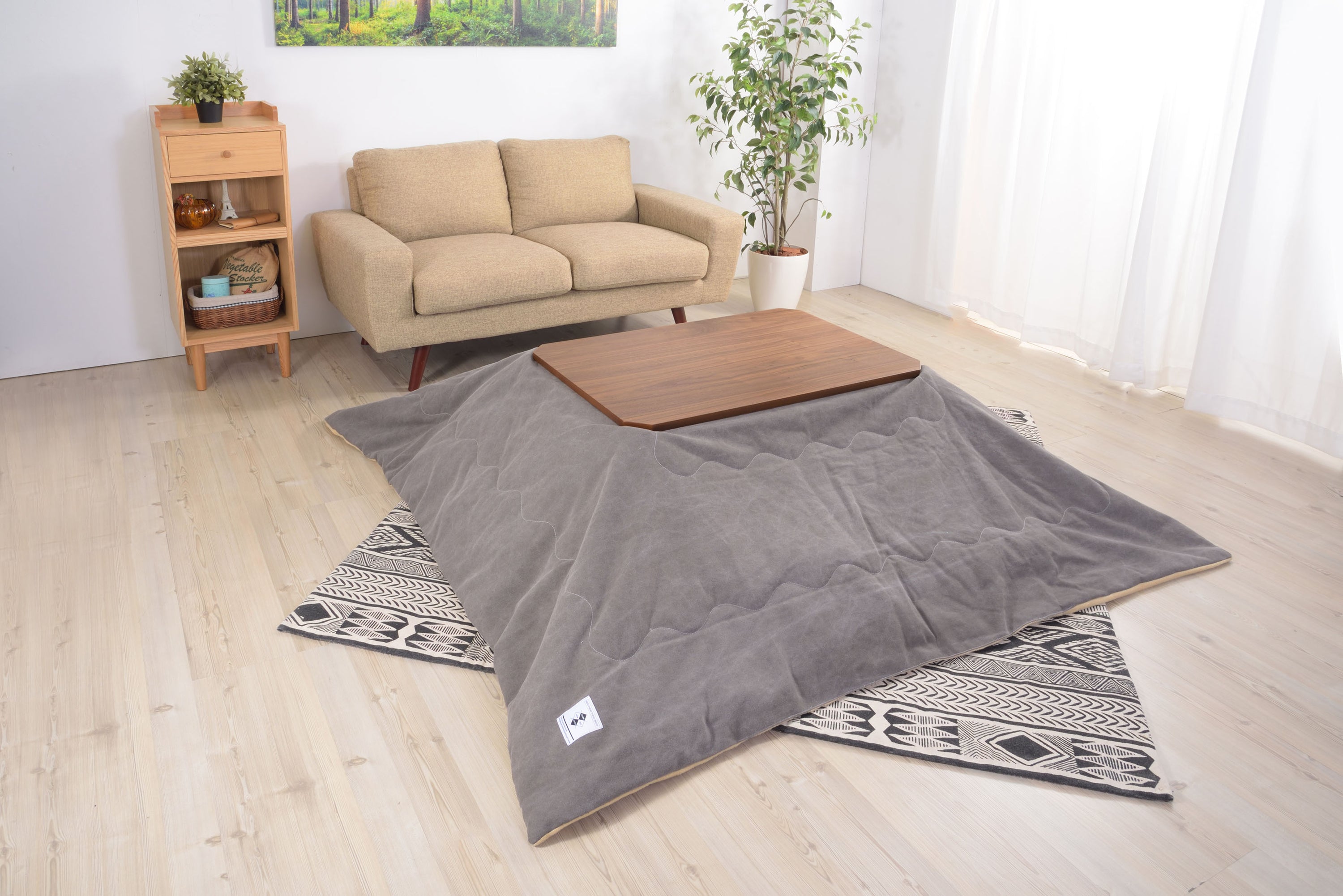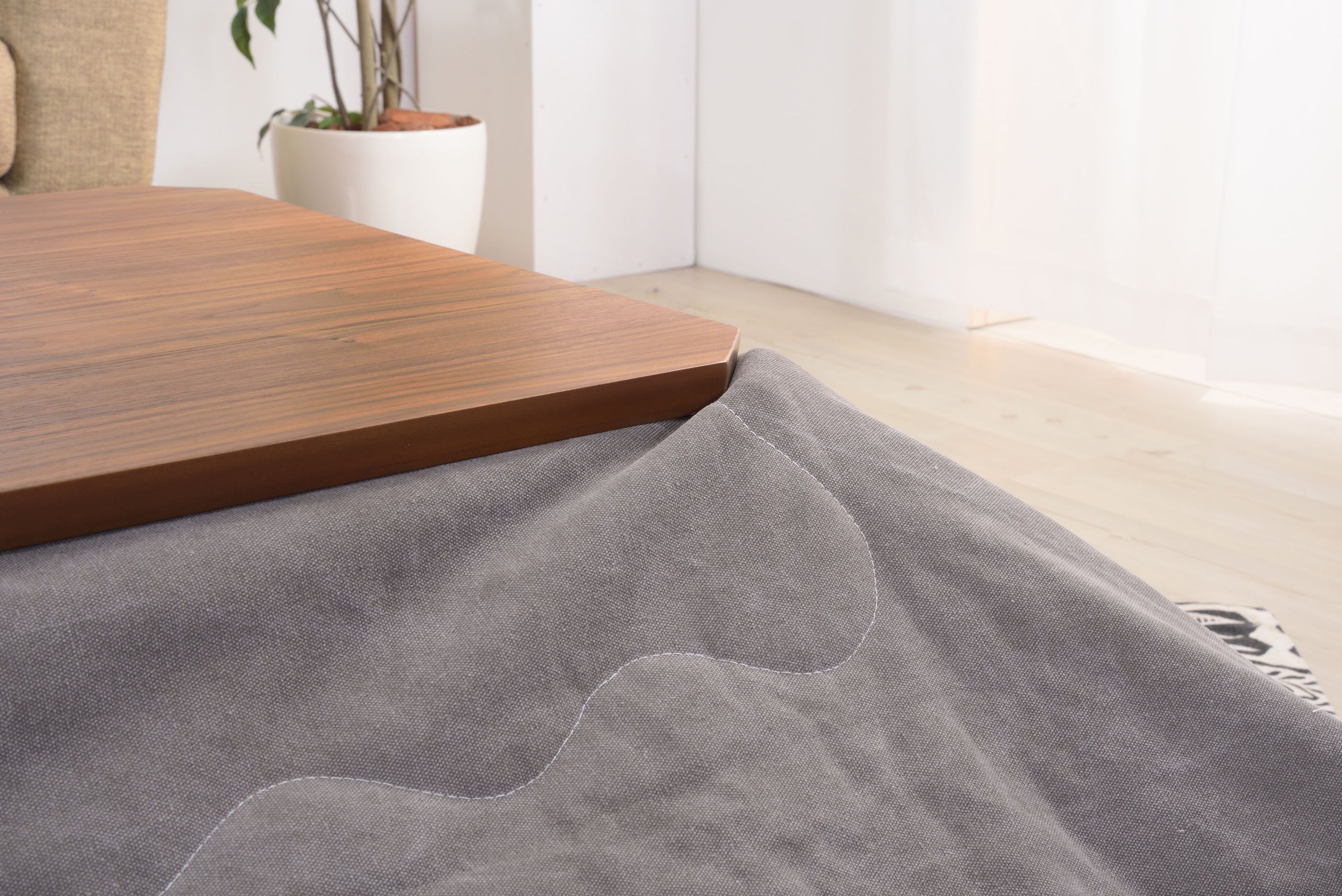 フトンがズレにくいコタツテーブル 薄型のヒーターでオフシーズンもヒーターが目立ちません。
