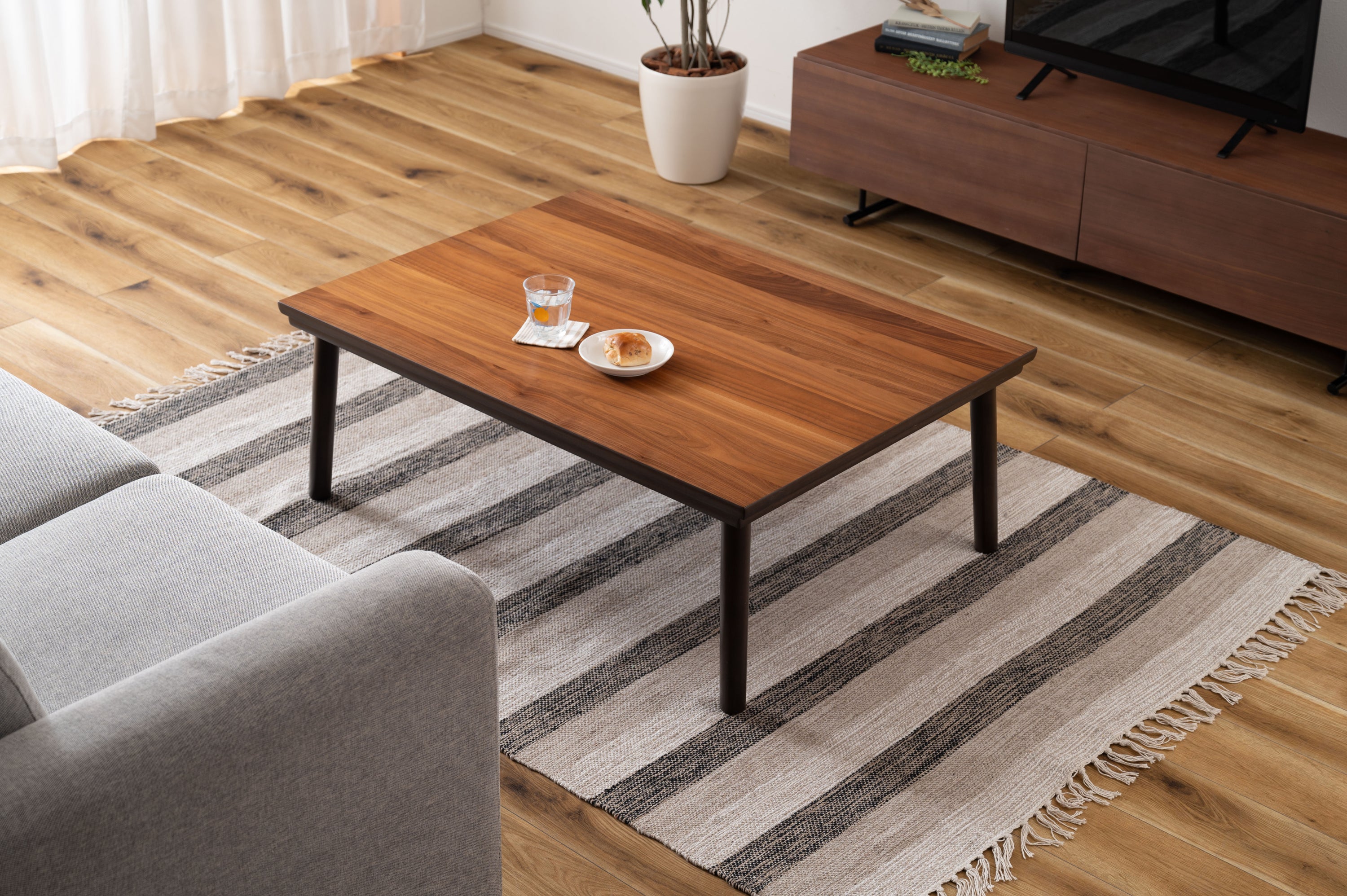 ROOMESSENCEのフラットヒーターコタツテーブルブラウンです。安定感のあるつくりを備え、ダイニングや作業台として活躍します。ブランドの美意識を感じる佇まいで、日常づかいから来客時まで幅広く対応。品番:KT-303。暮らしに上質なアクセントを添える一品です。