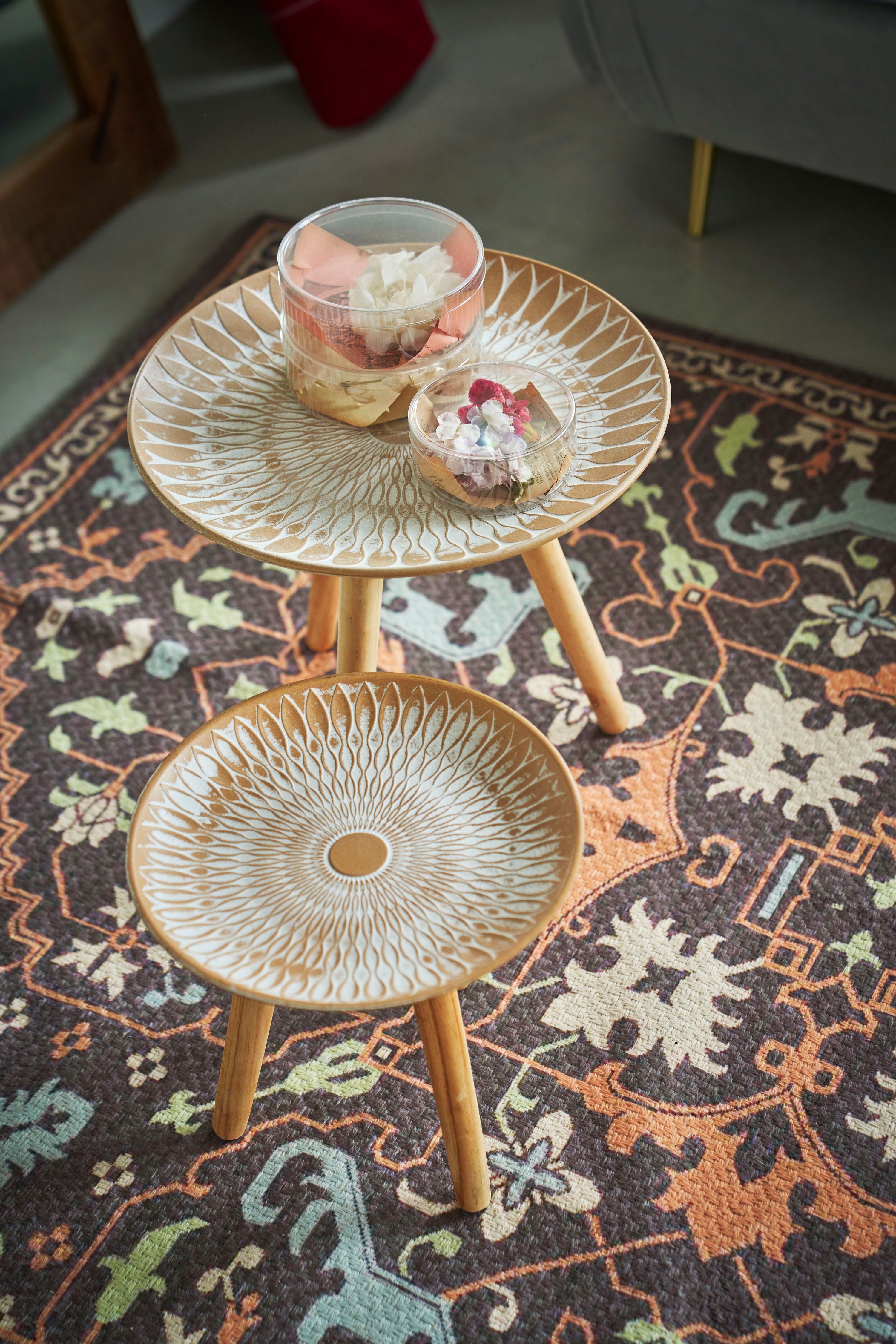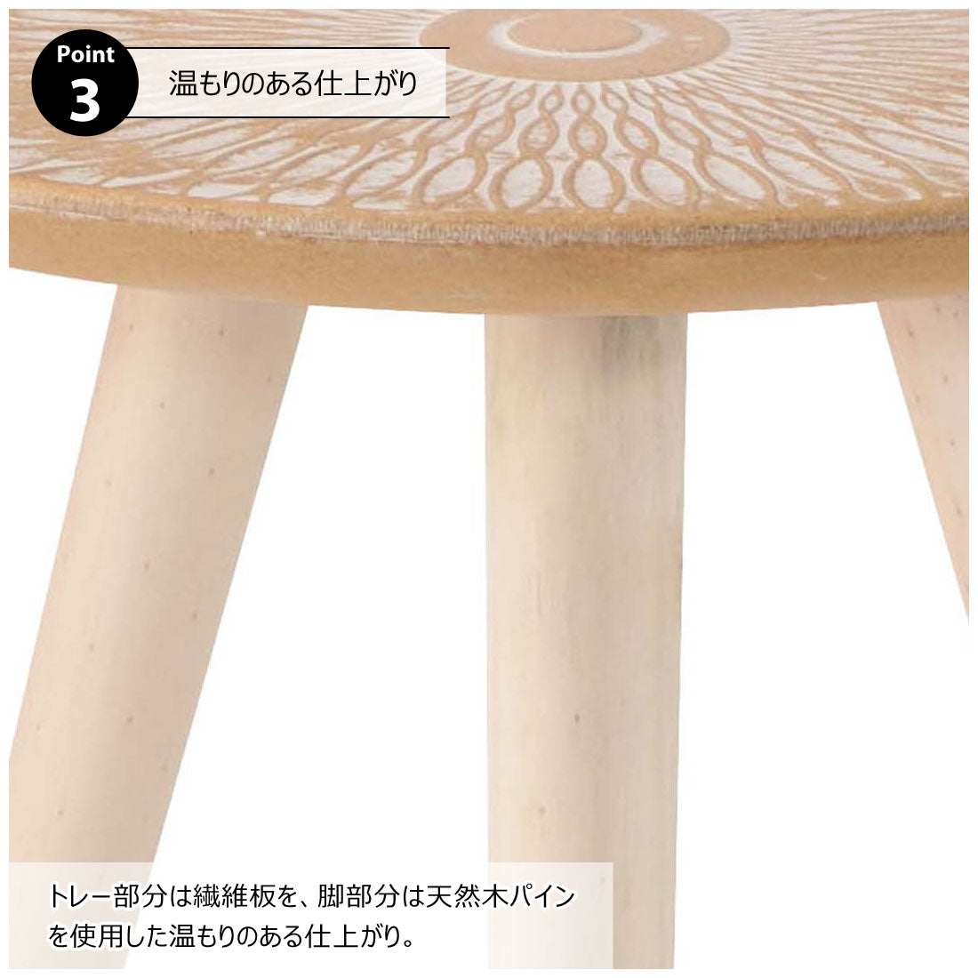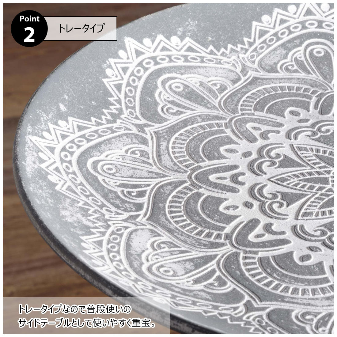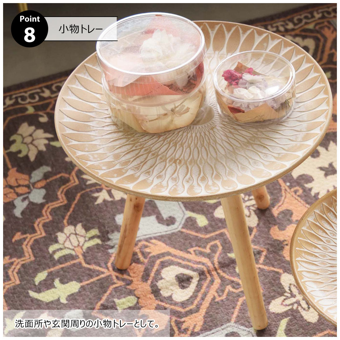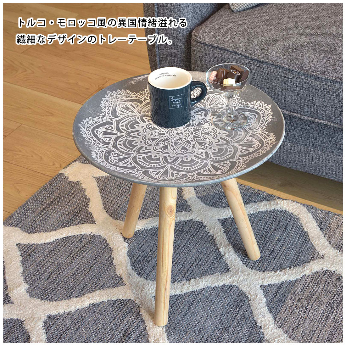 トルコ・モロッコ風の異国情緒溢れる繊細なデザインのトレーテーブル。 トレーテーブルを置くだけでお部屋が洗練された印象に。 トレータイプなので普段使いのサイドテーブルとして使いやすく重宝。 トレー部分は繊維板を、脚部分は天然木パインを使用した温もりのある仕上がり。 本体重量は約1.5kgと軽量なので移動や持ち運びもらくらく。 ソファや座椅子横のサイドテーブルとして。 テーブルやデスク上のアロマテーブルとして。 ベッド周りのナイトテーブルとして。 洗面所や玄関周りの小物トレーとして。