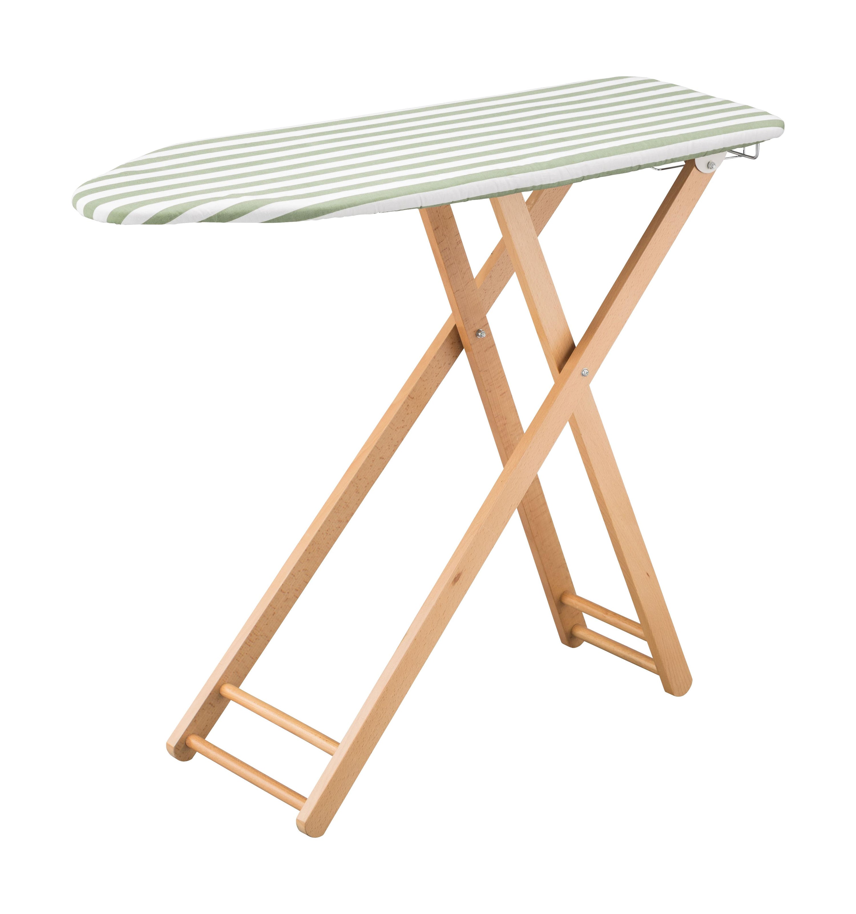 爽やかなストライプ柄と木製の脚を採用したアイロン台。女性に人気のナチュラルテイストに仕上げました。