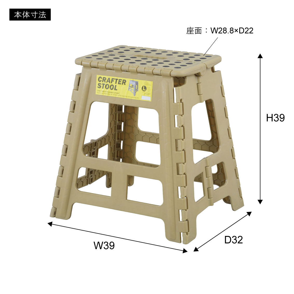 様々なシーンで使える、折りたたみクラフタースツール 軽量で持ち運びが簡単なクラフタースツール。 キャンプ等のアウトドアはもちろん、掃除等インドアでも使える1台は欲しいアイテム。
