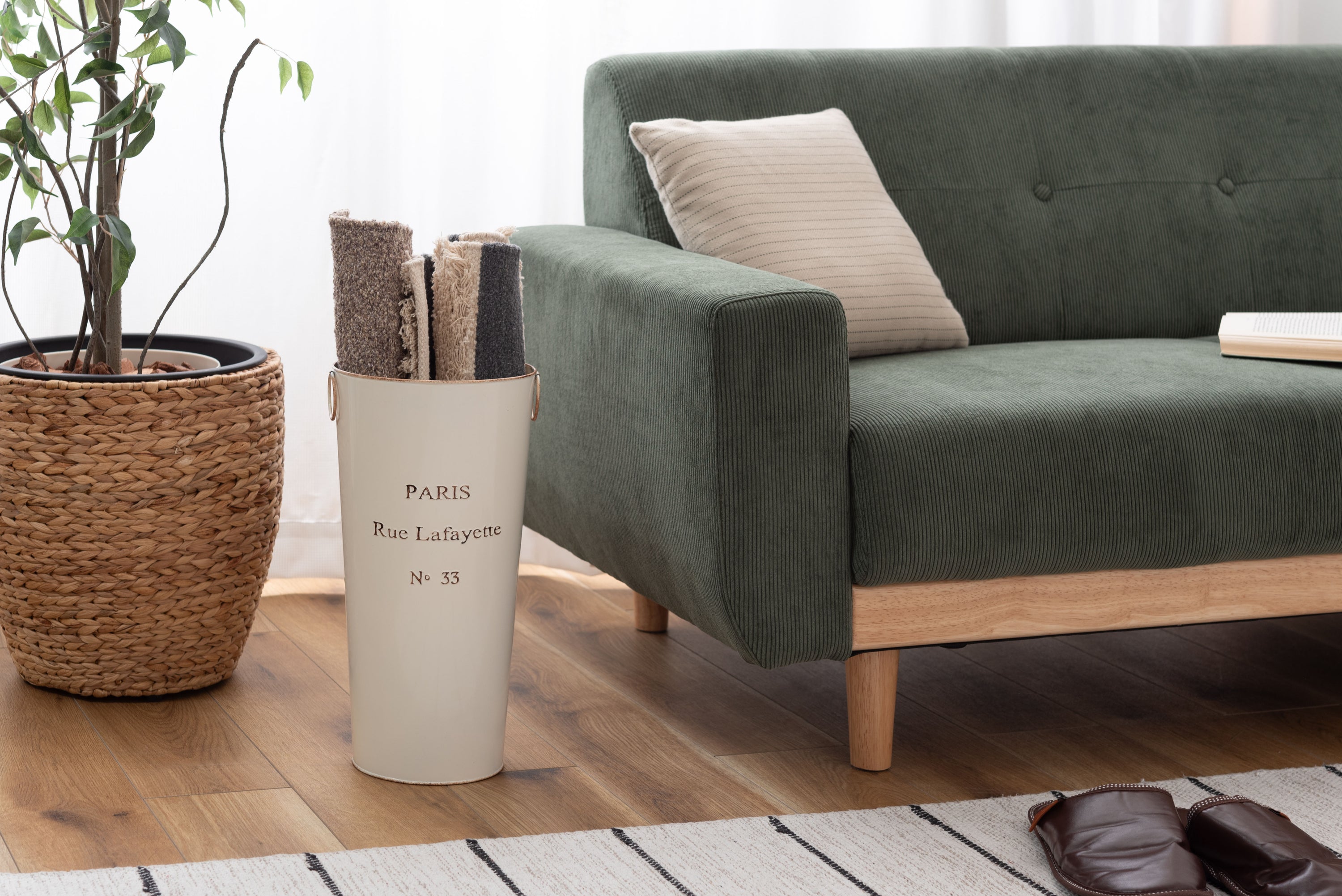 ROOMESSENCEの傘立てアイボリーです。使い勝手の良さとデザイン性を両立を備え、幅広いシーンで活躍します。ブランドの美意識を感じる佇まいで、日常づかいから来客時まで幅広く対応。品番:LFS-427IV。暮らしに上質なアクセントを添える一品です。