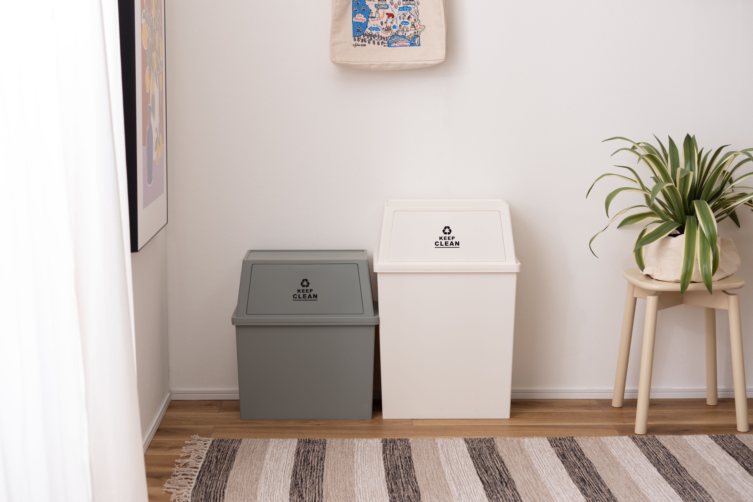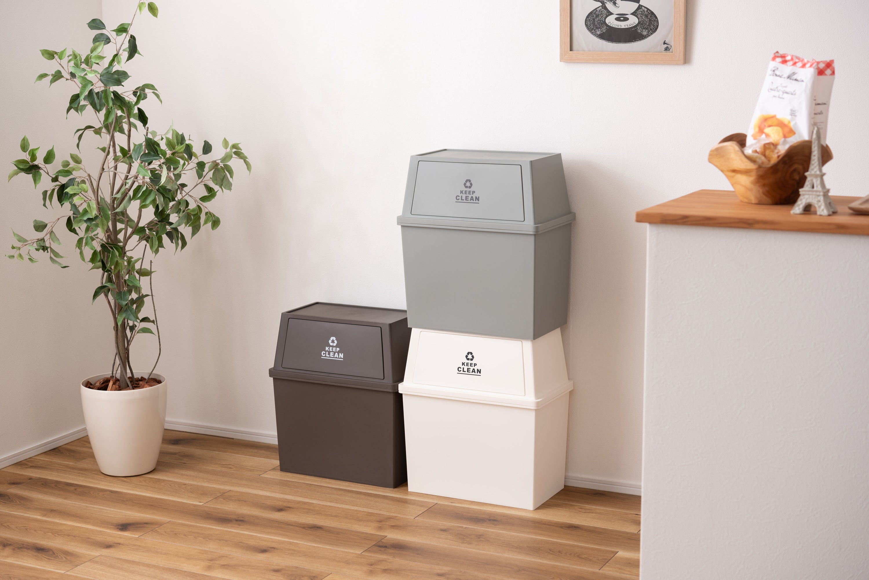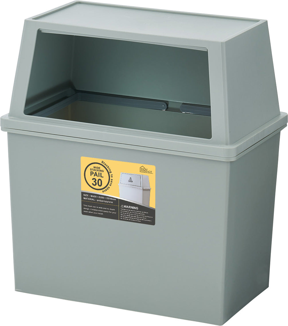 横幅ワイドで奥行スリム、大容量でもスペースを取らないスタッキングペール。キッチン回り以外にリビングやデスク回りなど壁面に沿って設置できるので、無駄なくきれいにスペースを使う事ができます。積み重ね(スタッキング)ができるのでゴミの分別にも便利。蓋の内側にはバネが付いているので、ゴミを捨てた後は自然に蓋が閉まる仕様。また蓋の裏側にストッパーが付いているので、蓋を上に押し上げて固定させておく事もできます。底面にはミニキャスター付きで移動もらくらく。キャスターは縦方向用・横方向用どちらにも取り付け可能。本体内側には可動式の袋止め付き。ゴミ袋の脱着をする際、綺麗に簡単に脱着できます。ポリプロピレン製なのでお手入れが簡単でいつでも清潔。安心の日本製。