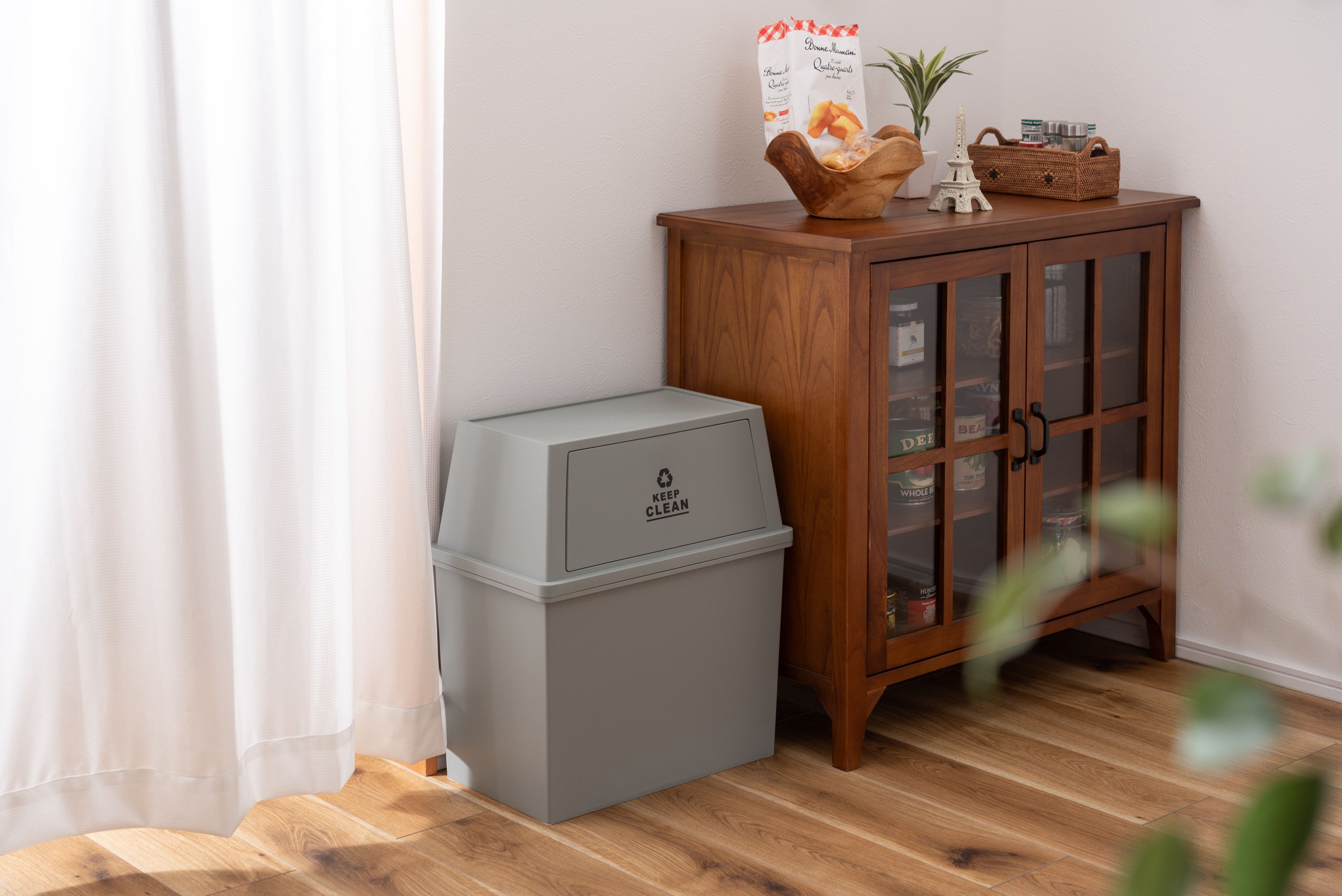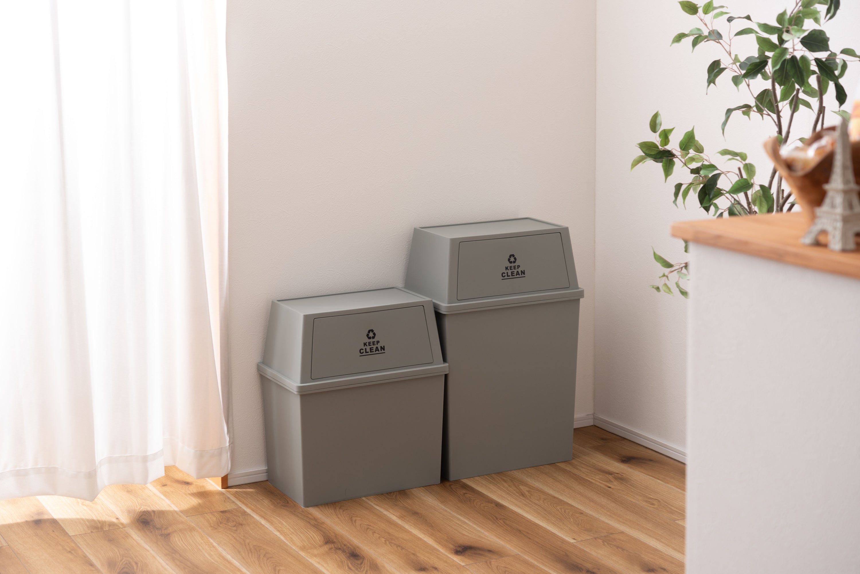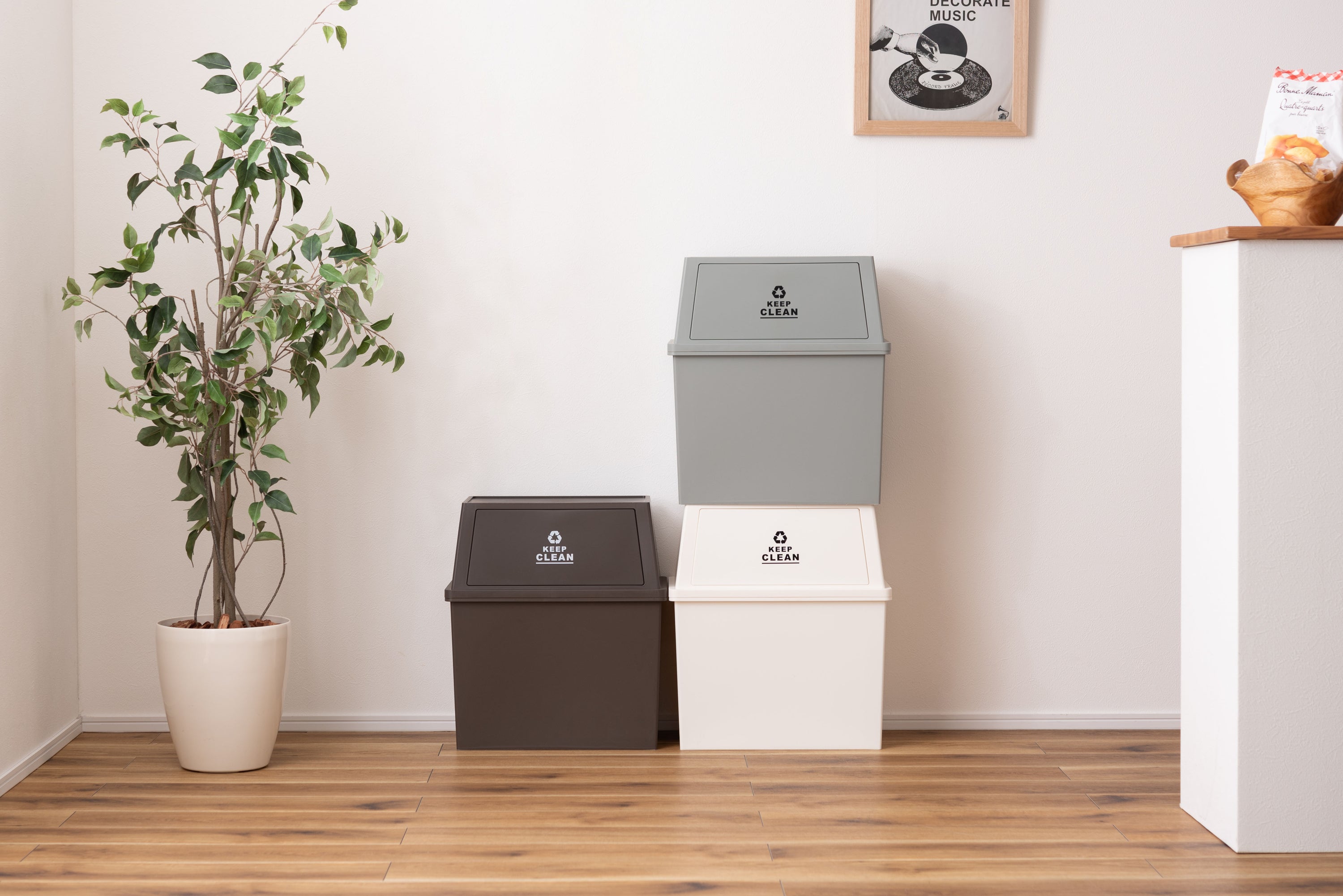 横幅ワイドで奥行スリム、大容量でもスペースを取らないスタッキングペール。キッチン回り以外にリビングやデスク回りなど壁面に沿って設置できるので、無駄なくきれいにスペースを使う事ができます。積み重ね(スタッキング)ができるのでゴミの分別にも便利。蓋の内側にはバネが付いているので、ゴミを捨てた後は自然に蓋が閉まる仕様。また蓋の裏側にストッパーが付いているので、蓋を上に押し上げて固定させておく事もできます。底面にはミニキャスター付きで移動もらくらく。キャスターは縦方向用・横方向用どちらにも取り付け可能。本体内側には可動式の袋止め付き。ゴミ袋の脱着をする際、綺麗に簡単に脱着できます。ポリプロピレン製なのでお手入れが簡単でいつでも清潔。安心の日本製。