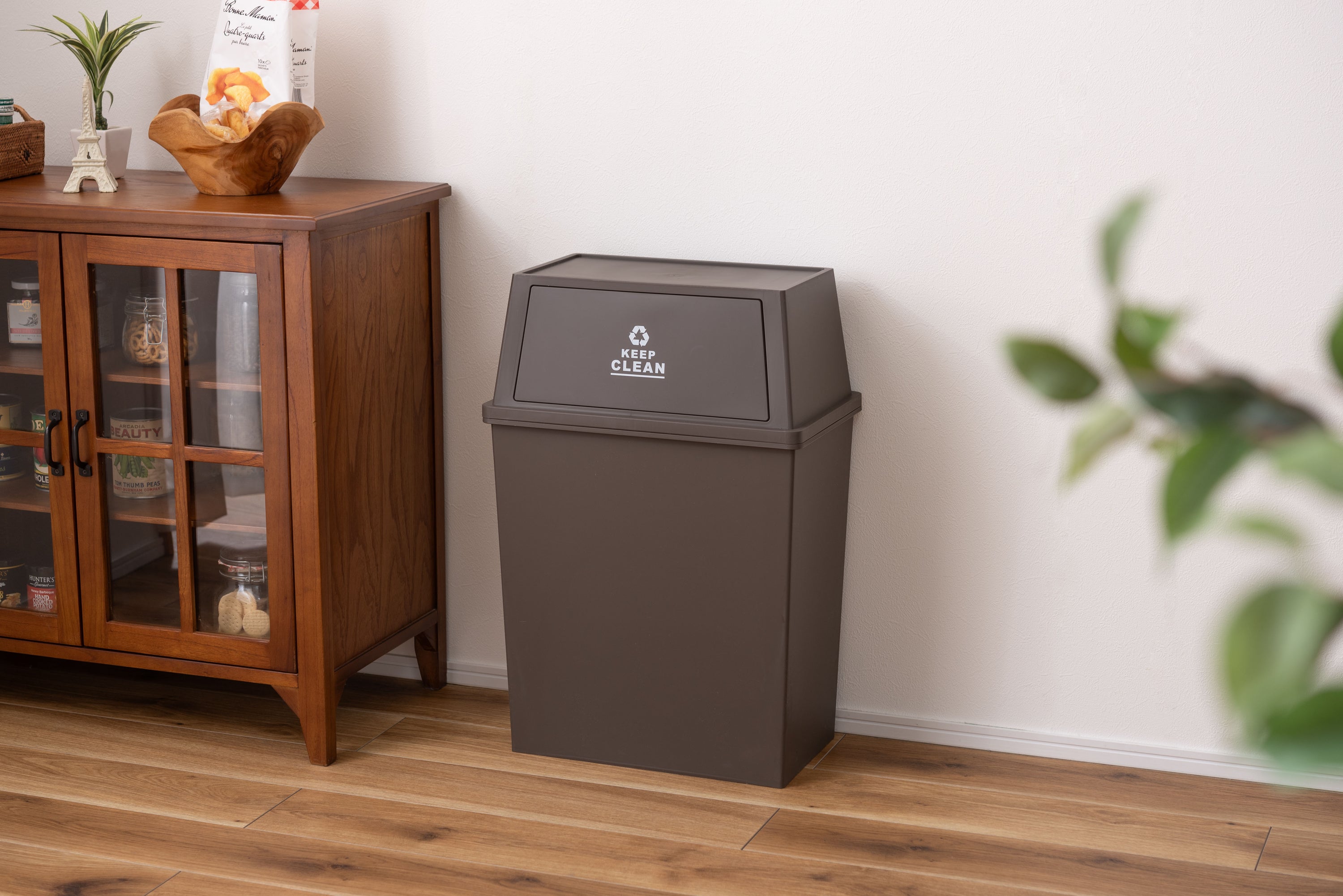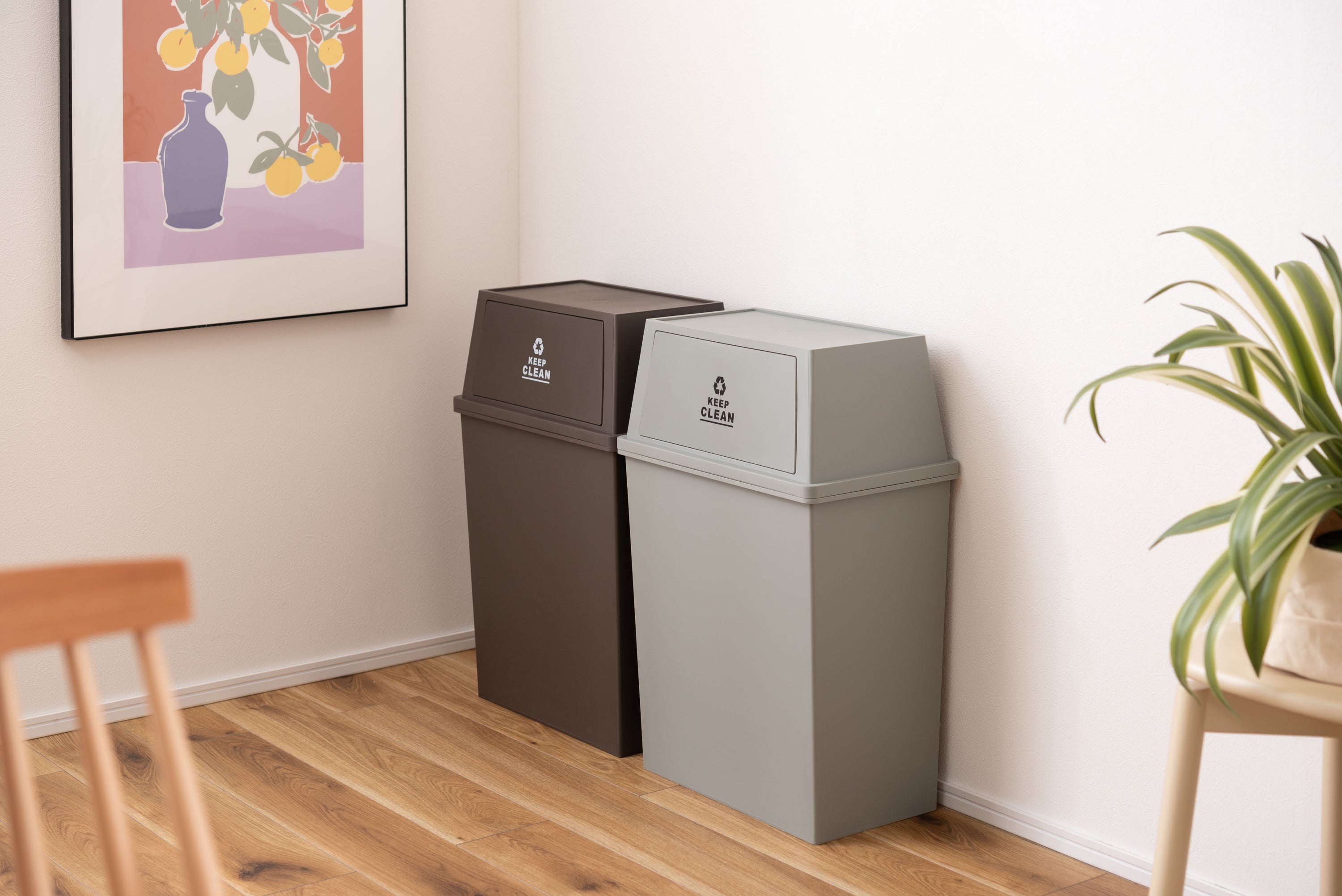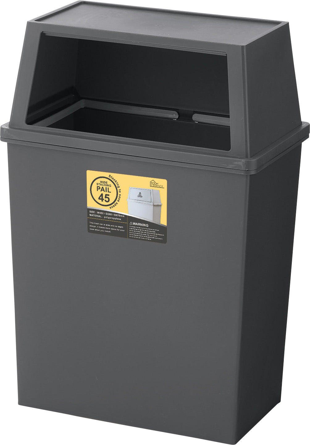 横幅ワイドで奥行スリム、大容量でもスペースを取らないスタッキングペール。キッチン回り以外にリビングやデスク回りなど壁面に沿って設置できるので、無駄なくきれいにスペースを使う事ができます。積み重ね(スタッキング)ができるのでゴミの分別にも便利。蓋の内側にはバネが付いているので、ゴミを捨てた後は自然に蓋が閉まる仕様。また蓋の裏側にストッパーが付いているので、蓋を上に押し上げて固定させておく事もできます。底面にはミニキャスター付きで移動もらくらく。キャスターは縦方向用・横方向用どちらにも取り付け可能。本体内側には可動式の袋止め付き。ゴミ袋の脱着をする際、綺麗に簡単に脱着できます。ポリプロピレン製なのでお手入れが簡単でいつでも清潔。安心の日本製。