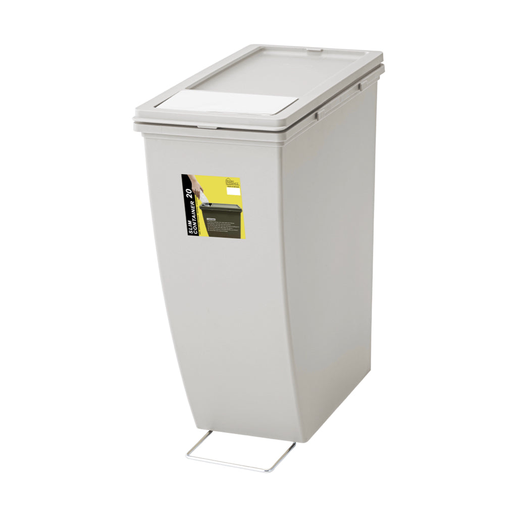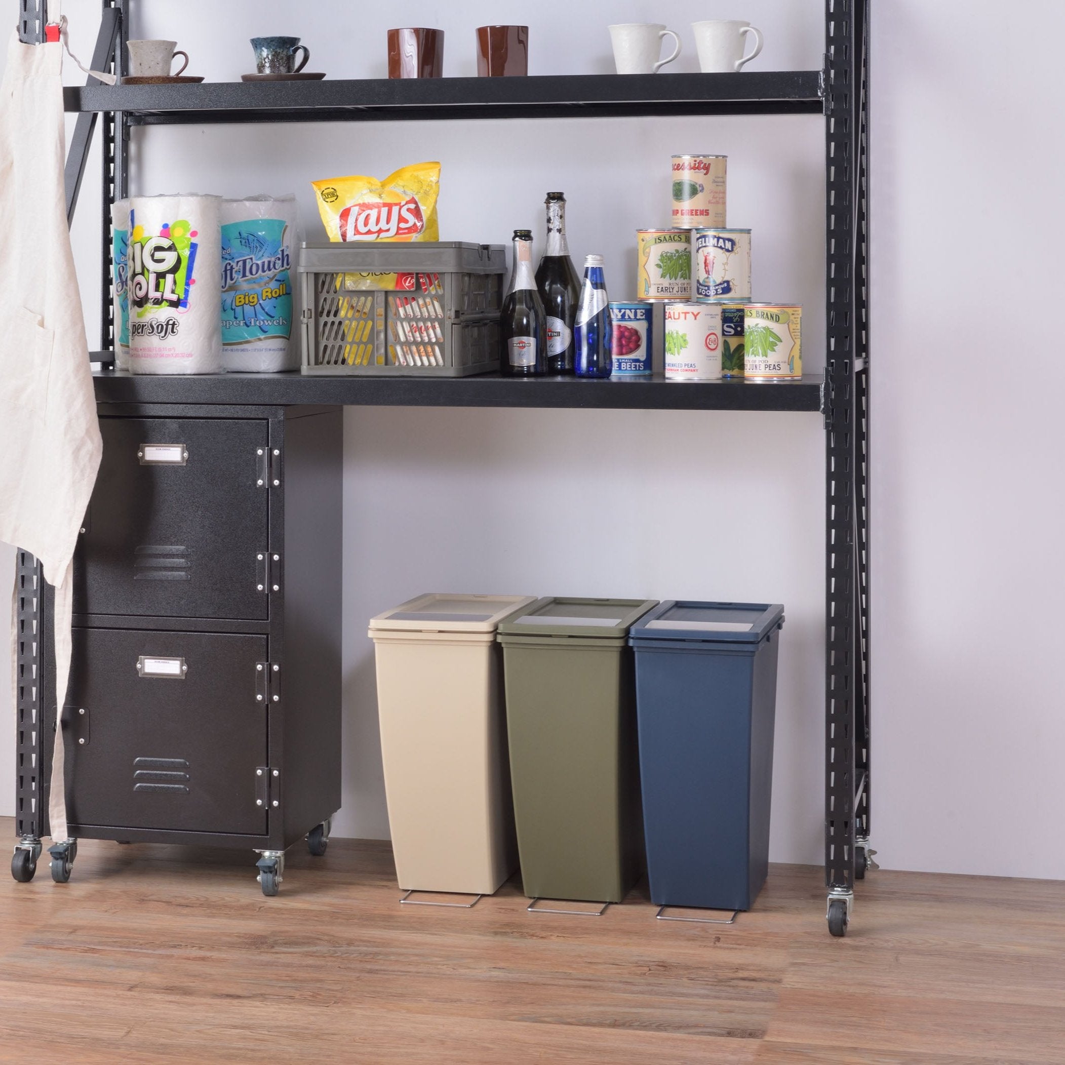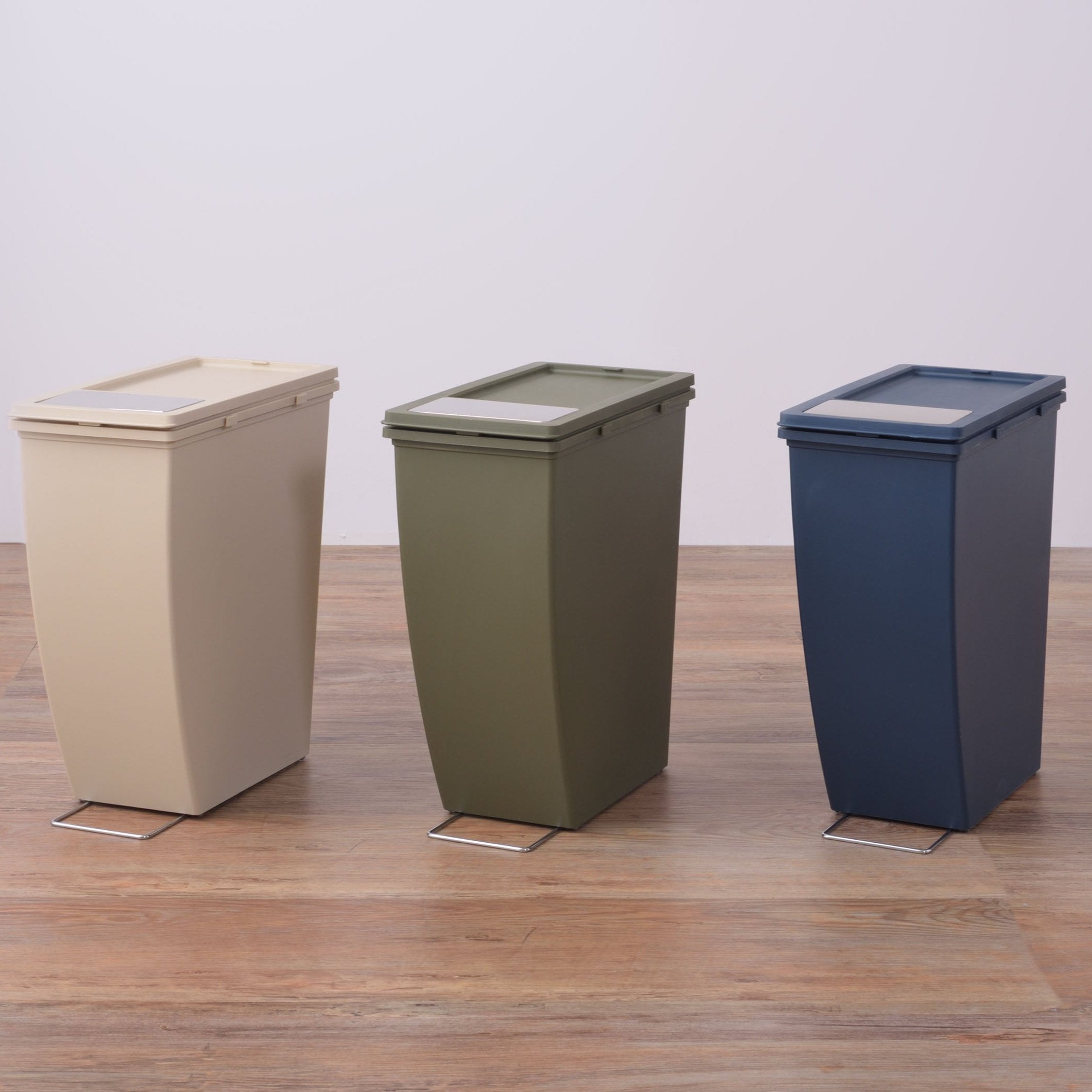 スリムサイズが使いやすい、横連結が可能なコンテナ(ダストボックス)。キッチン周りやデスク横などのちょっとしたスペースに最適。横連結が可能。ゴミの分別がしやすいよう、色違いでの連結もおすすめ。袋止めの内側にはT字フックが付いているので、小さいゴミ袋を複数セットしてゴミ箱内での分別も可能。底面の4箇所にはミニキャスターを標準装備。ゴミ出しなどのちょっとした移動に便利。水に強いポリプロピレン製なのでお手入れもラクラク。いつでも清潔。別売りのコンテナを使えばスタッキングが可能。凹凸の固定できる仕様なので、安定感もあり安心。フタの手前部分にはステンレス製のコンパクトな開閉フタ付き。バネ付きなので、ゴミを捨てた後はピタッとフタが閉まります。足元部分にはコの字型の金具脚付きなのでしっかりと安定。空間に馴染みやすいマットで落ち着いたカラーのラインナップ。