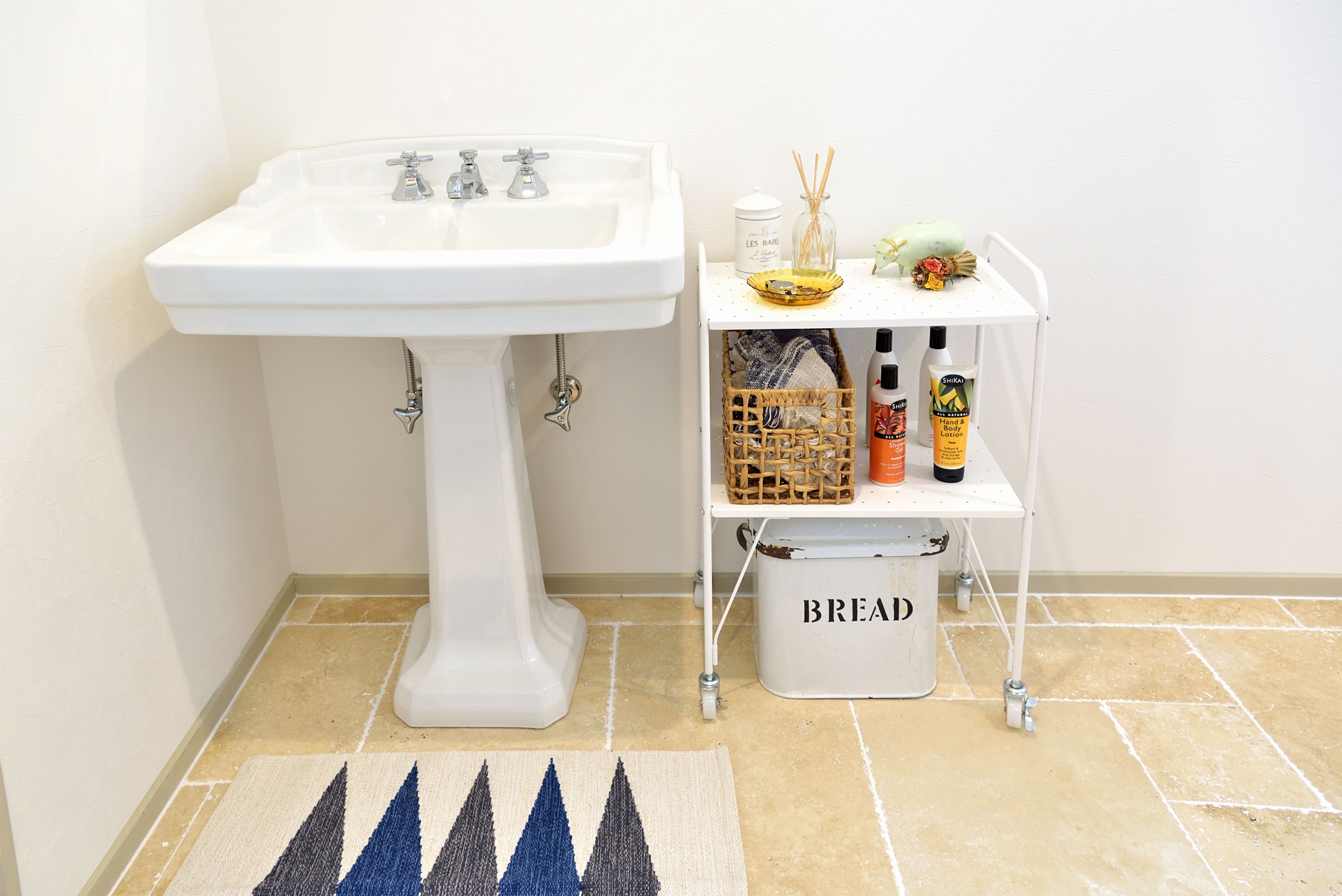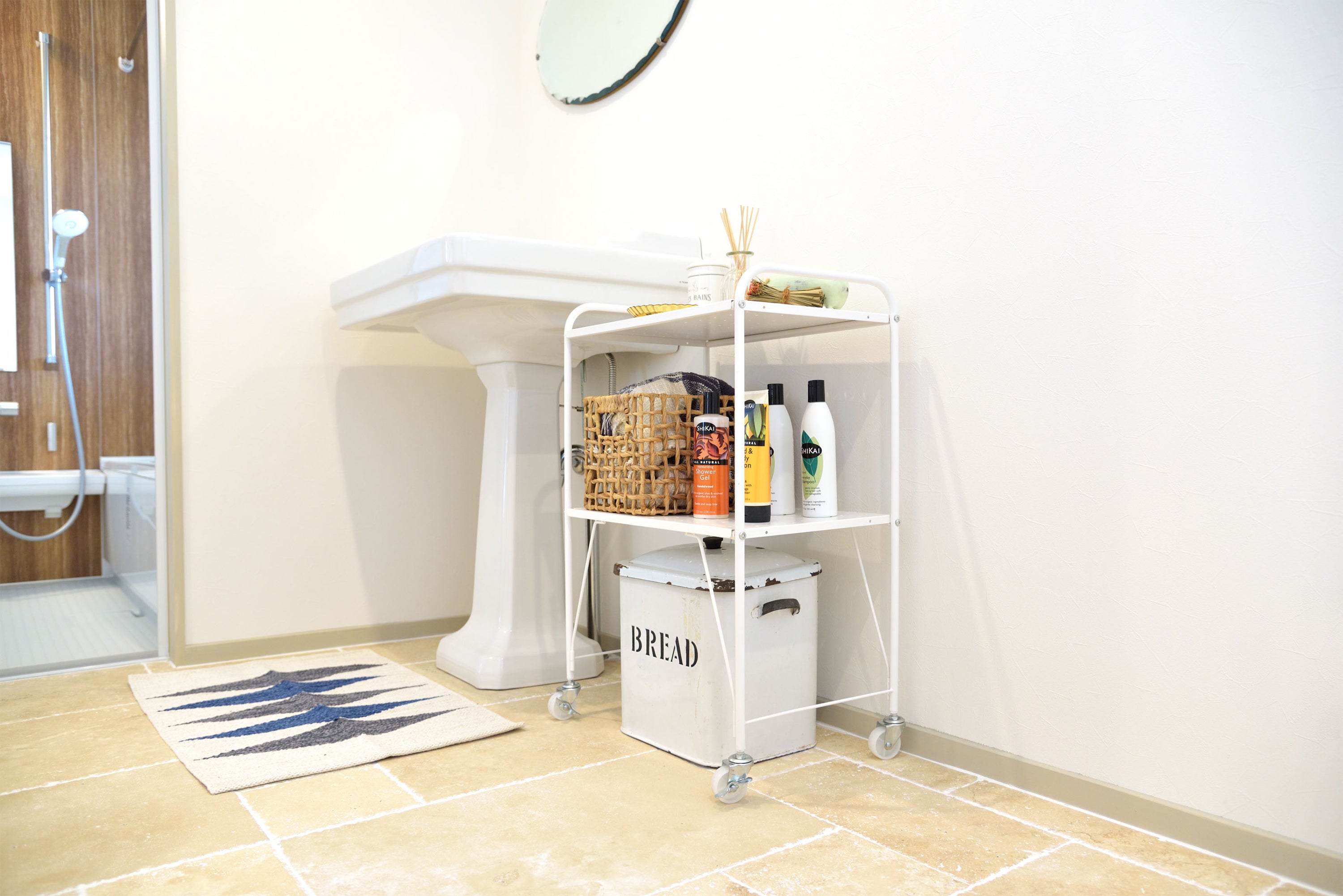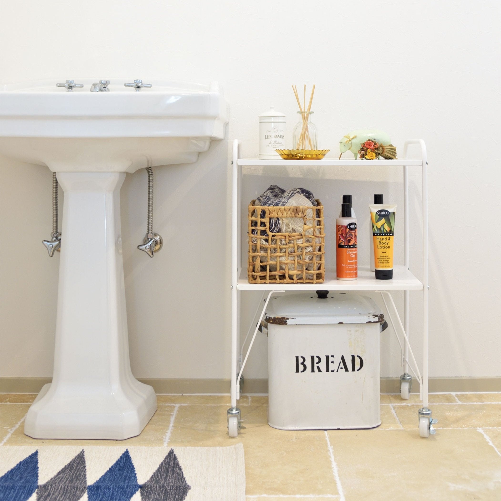 リビングやキッチン、洗面所など、どこでも役にたつスチール性のサイドワゴンです。キャスター付きで移動も簡単にできます。