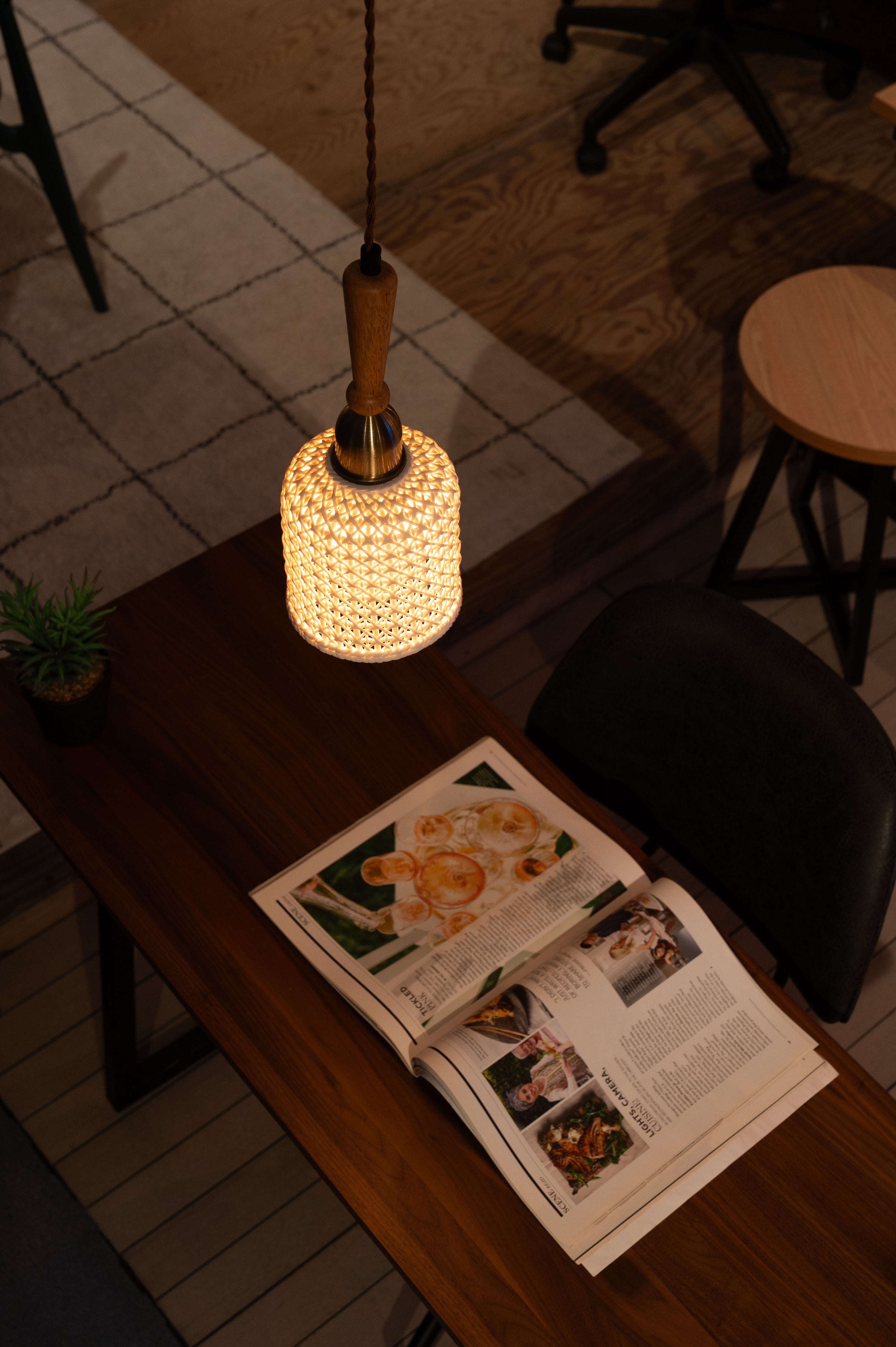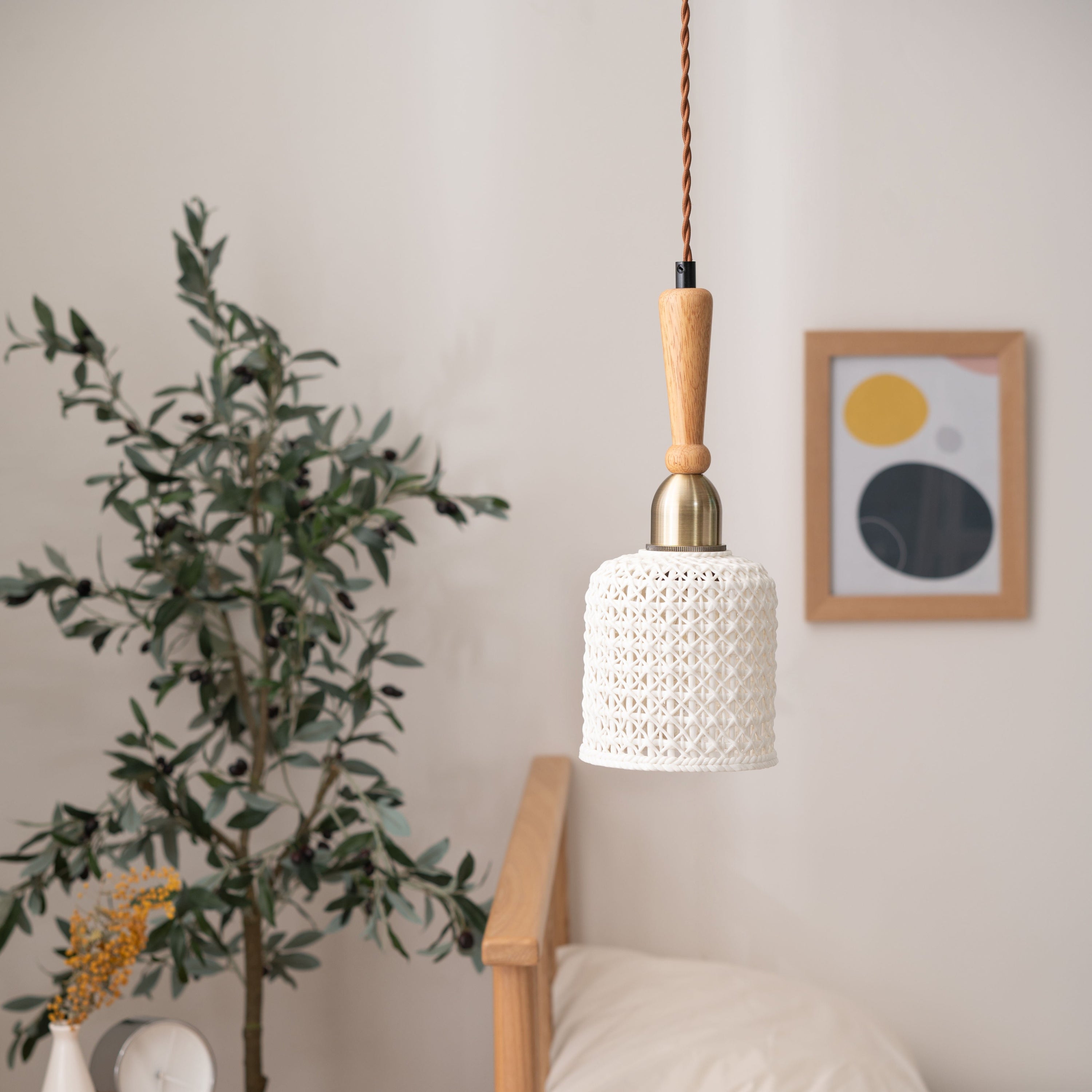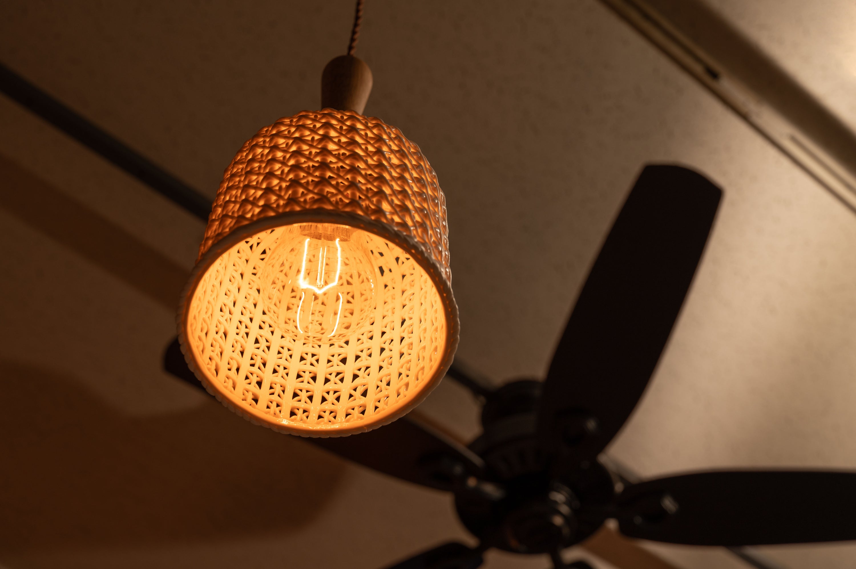 シェードが陶器製のおしゃれなペンダントライト。 消灯時にはなめらかな陶器のデザインを楽しめ、点灯時は優しい光でぬくもりのある空間を演出します。 エジソン球が1個付いているので、届いたその日から使えます。 LED電球対応。 コードの長さは約1m。長さ調整用のプレートが付いているので、お好みの高さに調整可能。