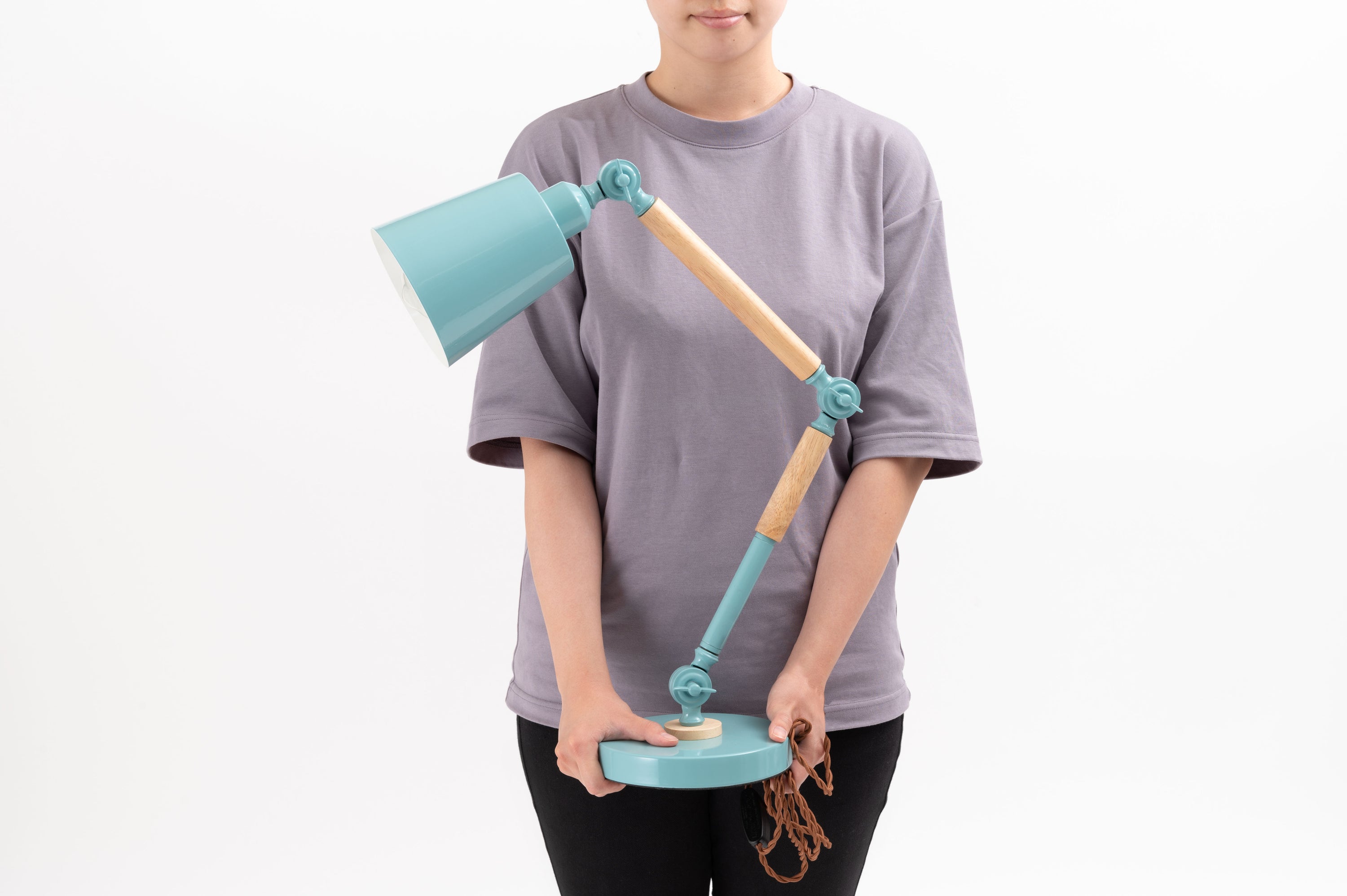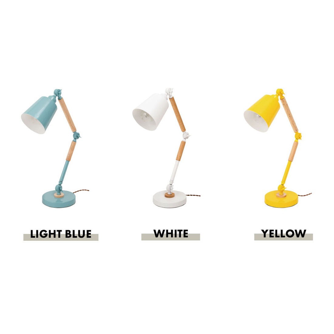 ポップなカラーリングと天然木の組み合わせが特徴的な北欧風デスクライト。 3箇所のジョイント部分で自由な角度調整が可能。 デスクはもちろん、ソファサイドやベッドサイドなど様々な場所で活躍。 電源は、コードについている中間スイッチでON/OFFの切り替えが可能。