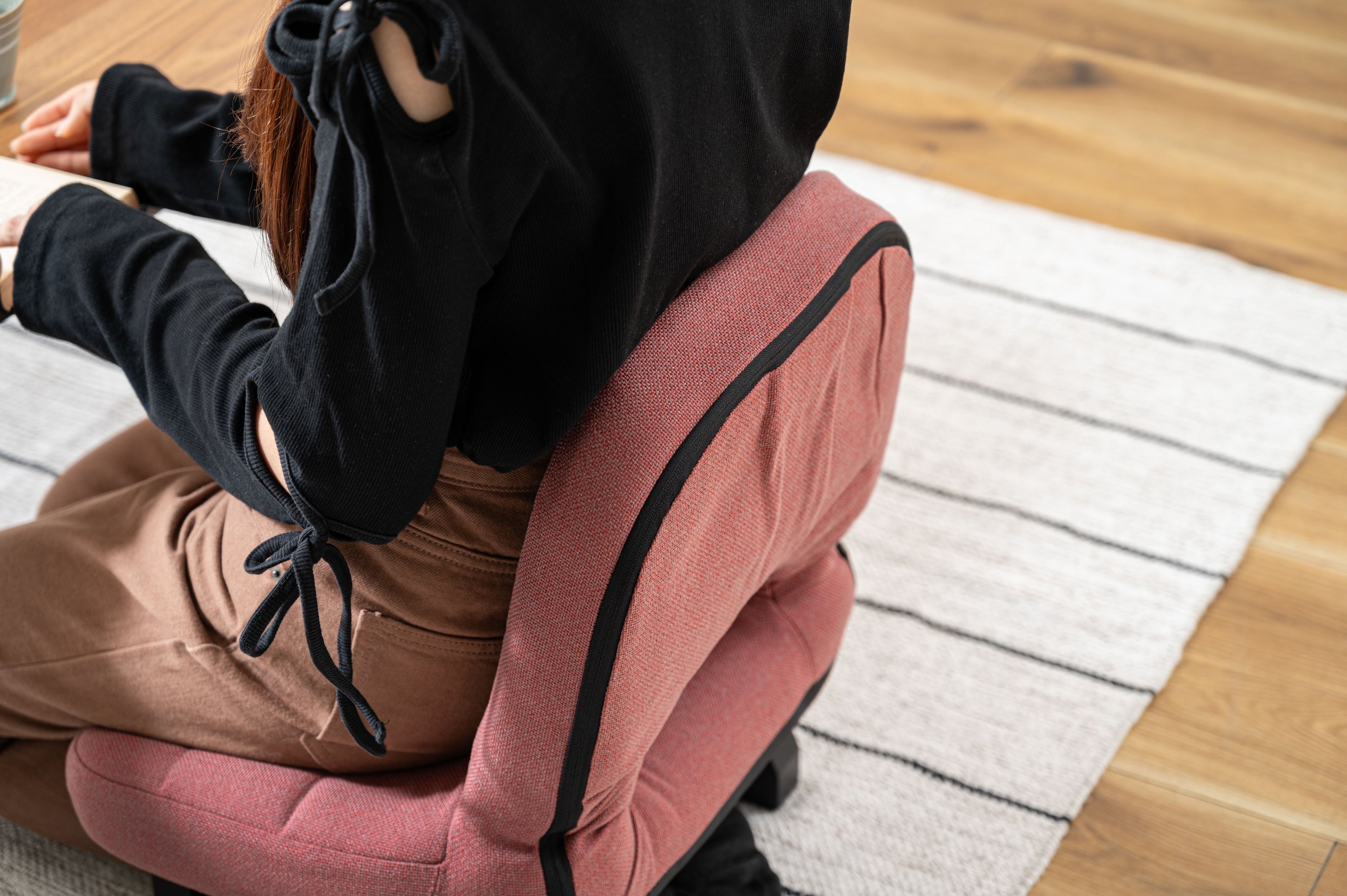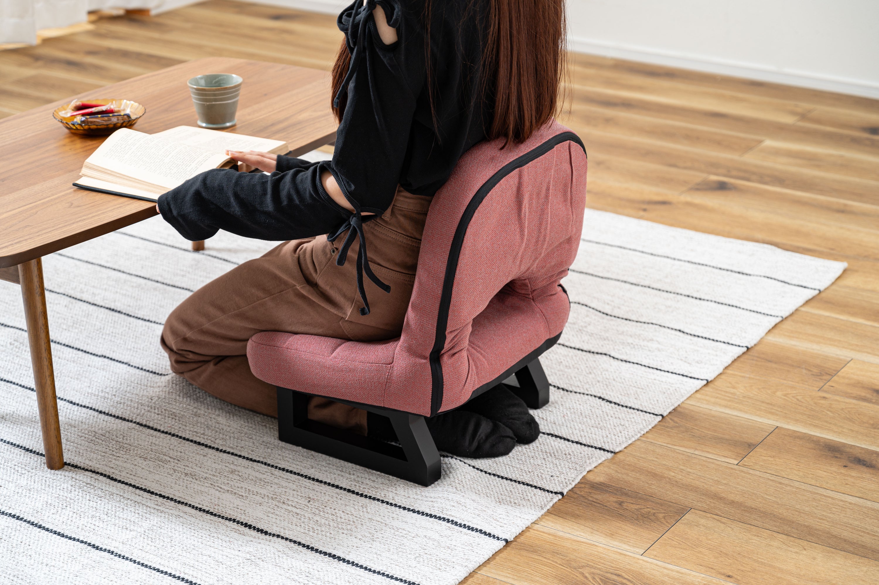 ROOMESSENCEの背もたれ付正座椅子レッドです。長時間でも快適な座り心地を備え、ダイニングやワークスペースに活躍します。ブランドの美意識を感じる佇まいで、日常づかいから来客時まで幅広く対応。品番:LSS-23RD。暮らしに上質なアクセントを添える一品です。