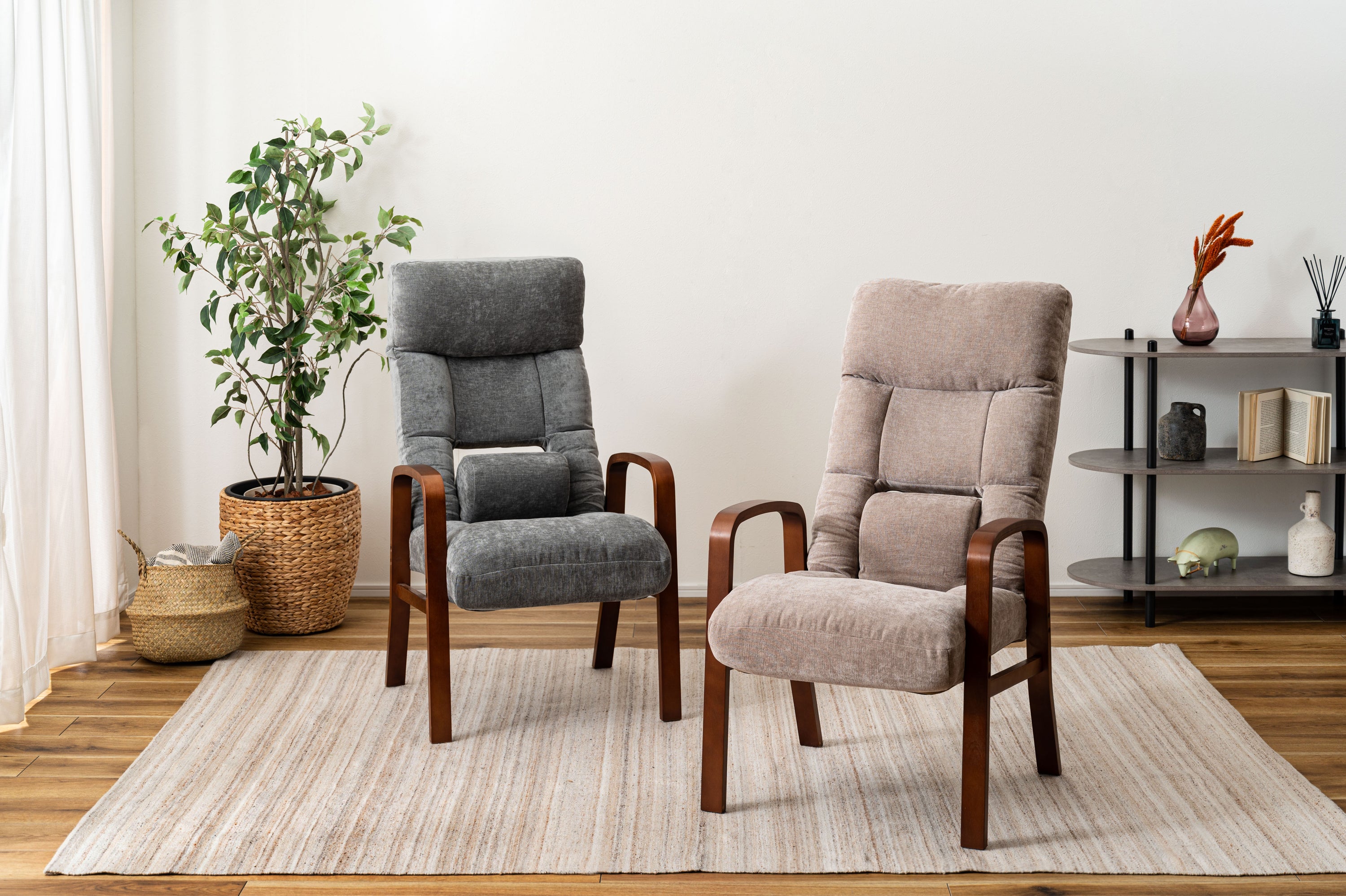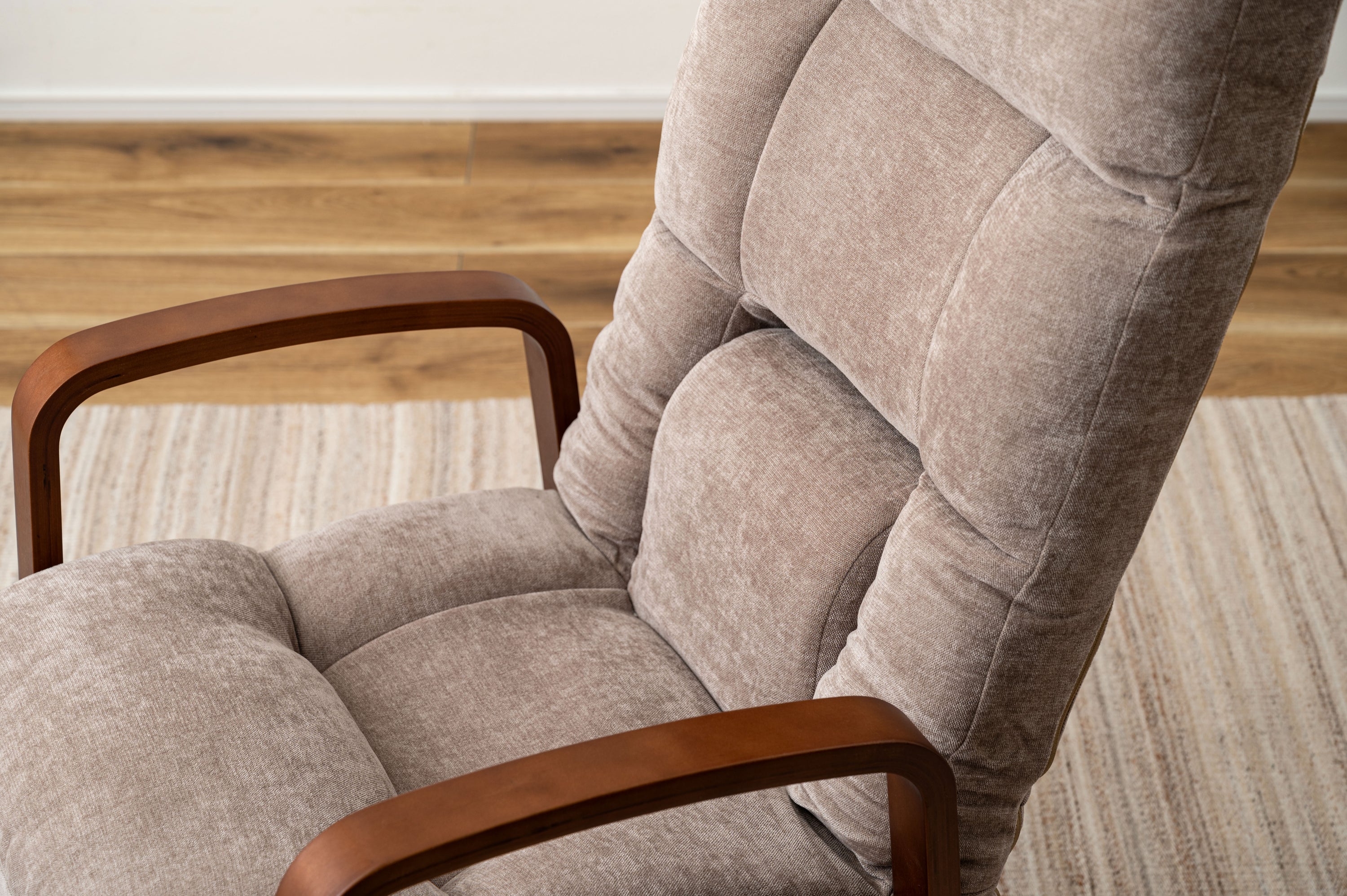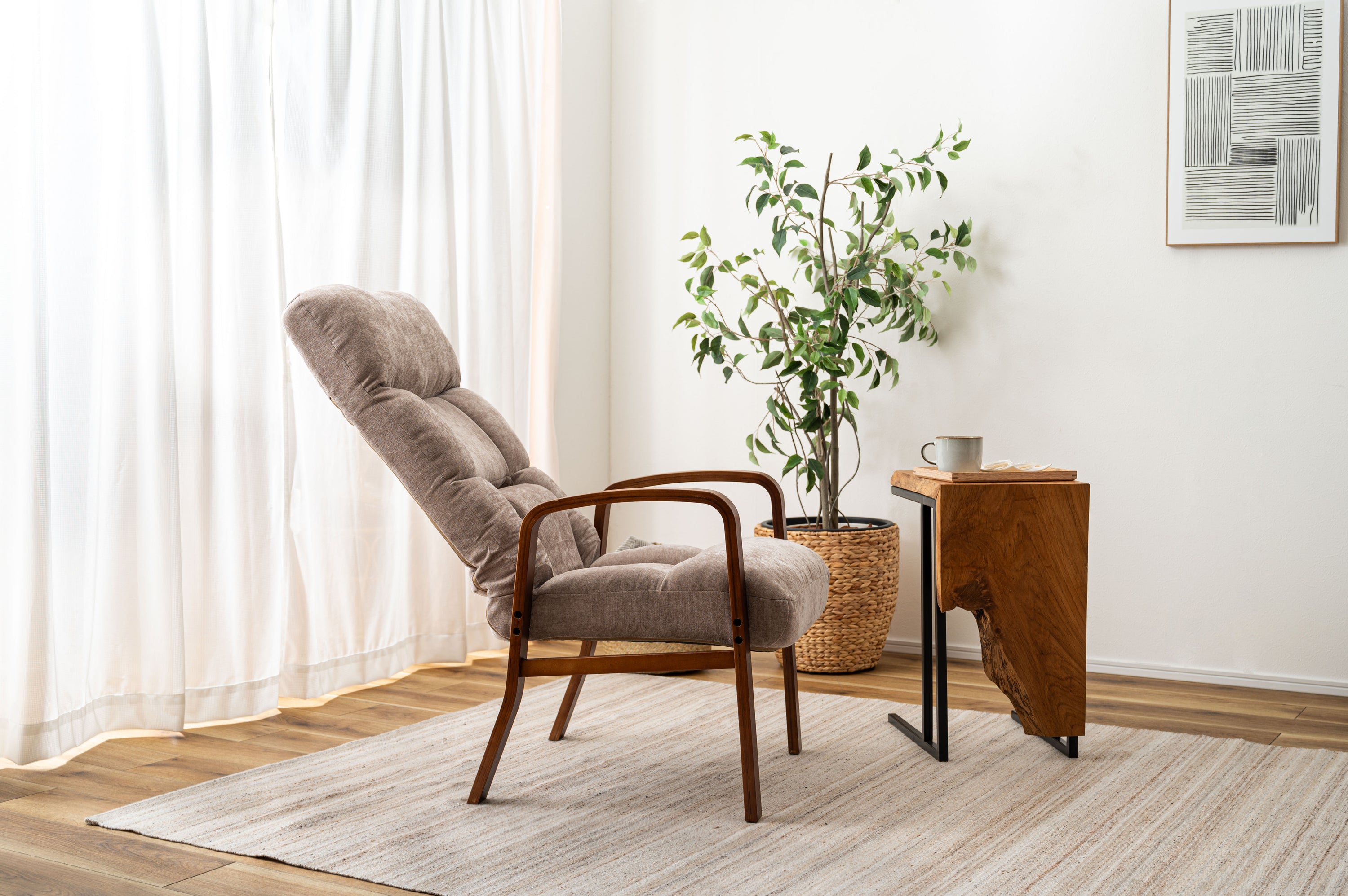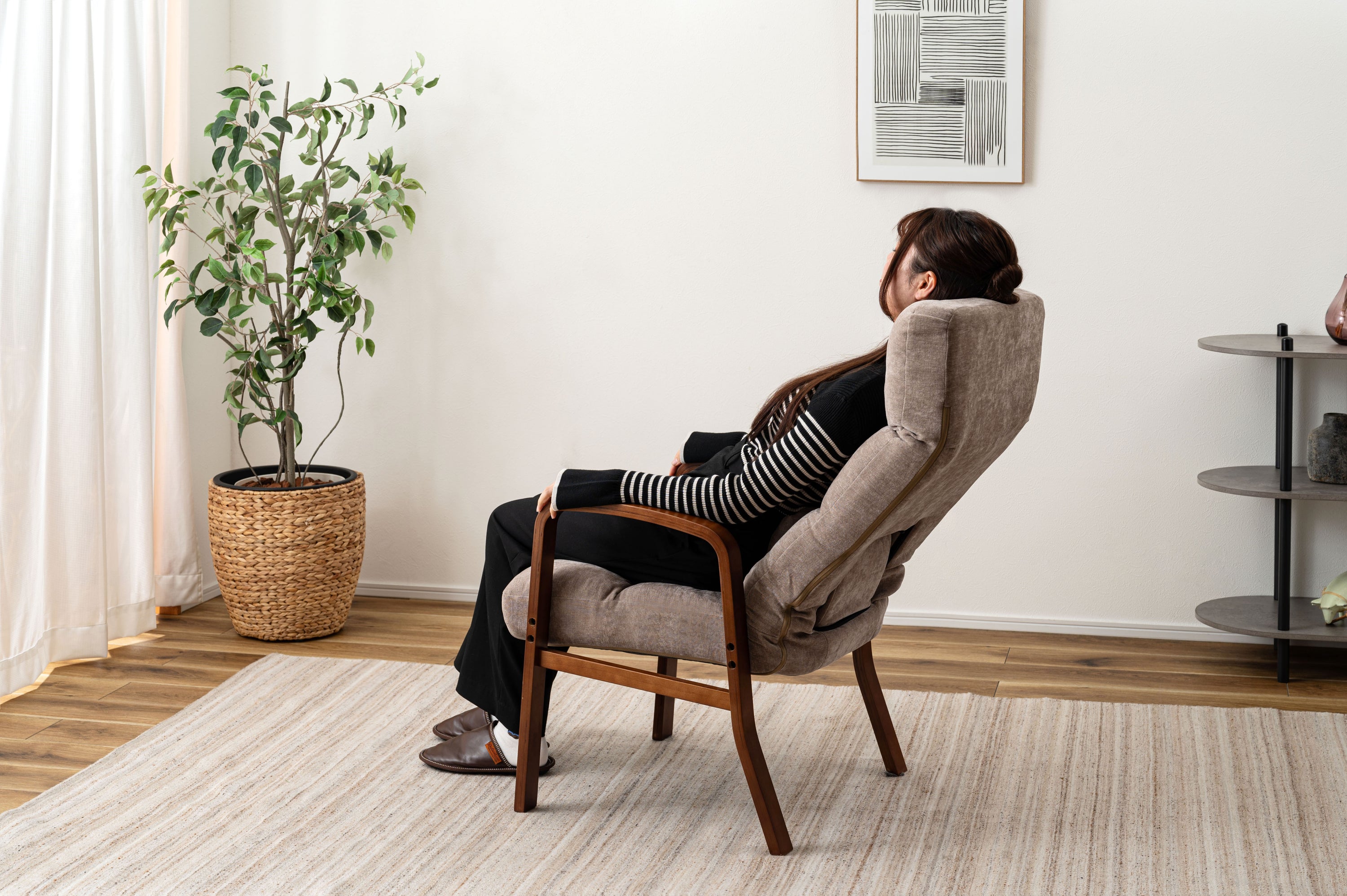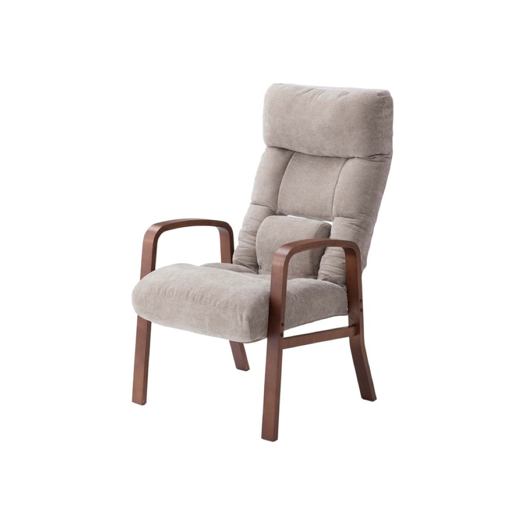 リクライニング機能で、自分にぴったりのチェアに調整が可能な高座椅子。立ち上がりやすい肘掛の形状や持ち運びやすさなど、使う人に寄り添った設計の高座椅子。腰を支えるランバーサポートと、首を支えるヘッドレスト付き。背もたれは7段階リクライニング。頭・腰部は14段階リクライニング。自分の好みに合わせて快適な姿勢に調整。背もたれは折りたたみが可能で、使わない時は最小限のスペースで保管。掴みやすい形状の肘掛で、立ったり座ったりの動作をサポート。しっかりと硬めのクッションで、長時間座っても疲れにくい設計。ヘッド部分が独立してリクライニングするので、ヘッドレストとして頭を預けてリラックス。腰部もリクライニング可能で、ランバーサポートとして腰を支え背筋を伸ばして使用可能。脚裏にはフェルトが付いているので、床への傷防止にもなり安心。