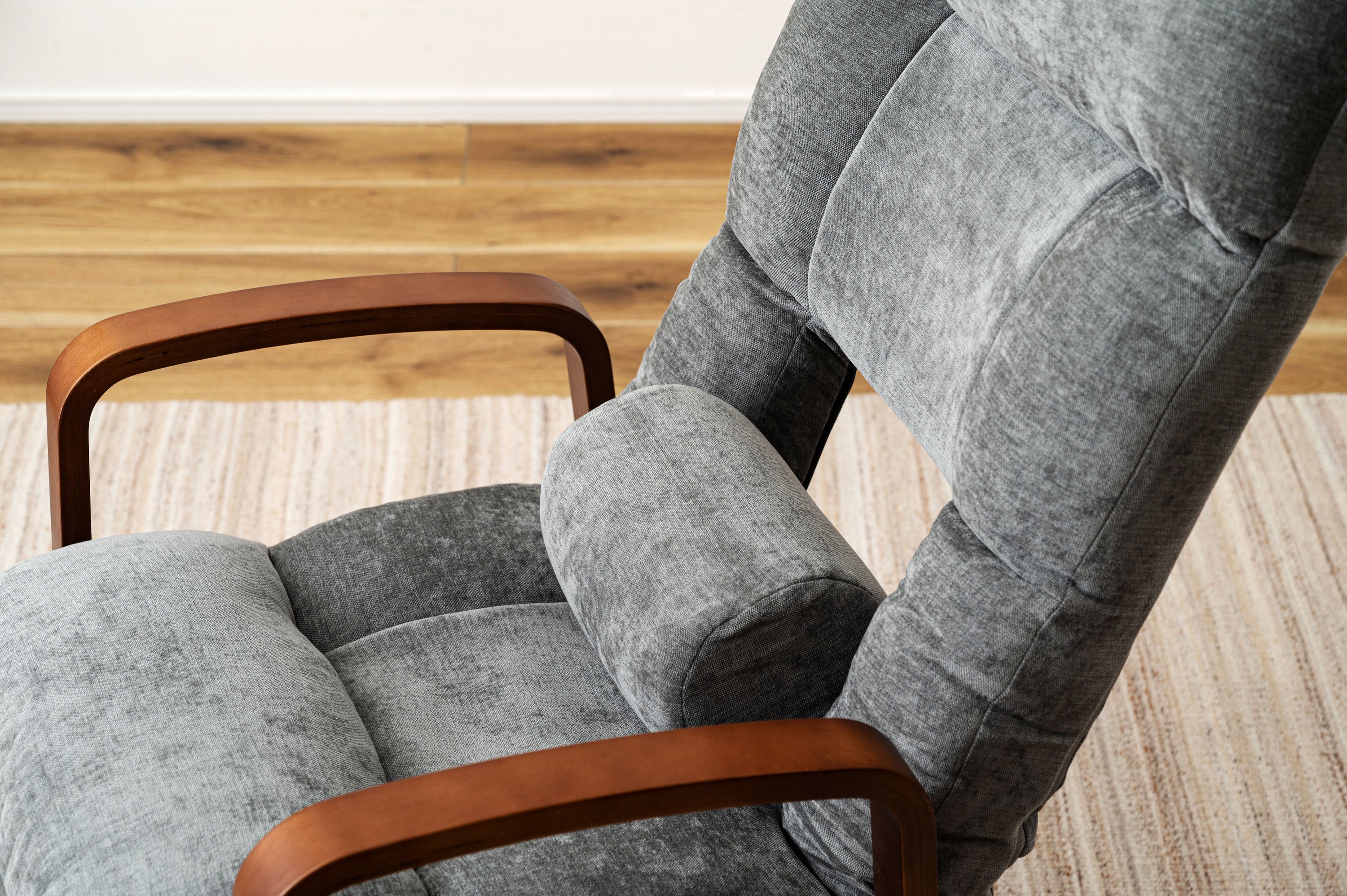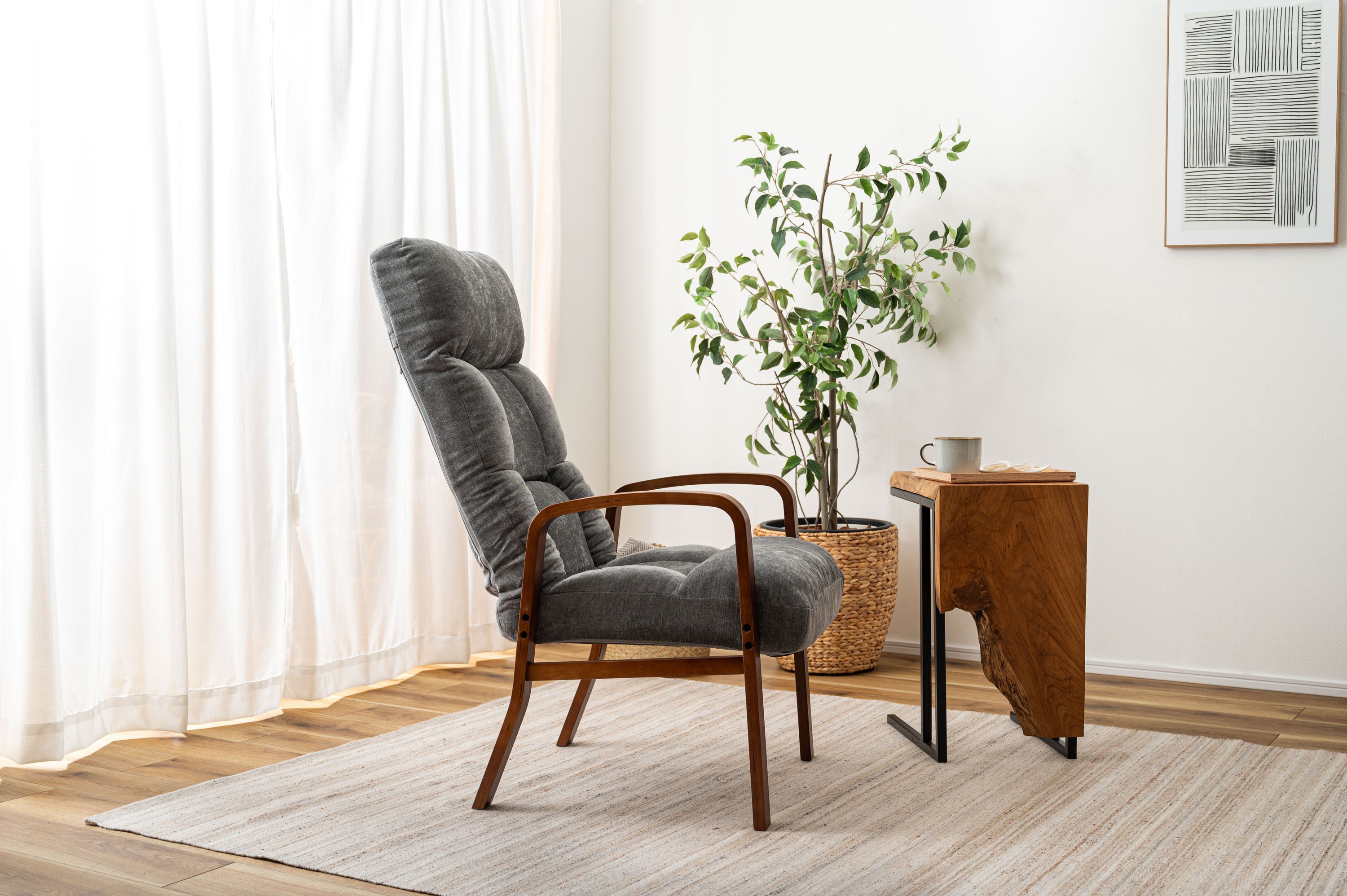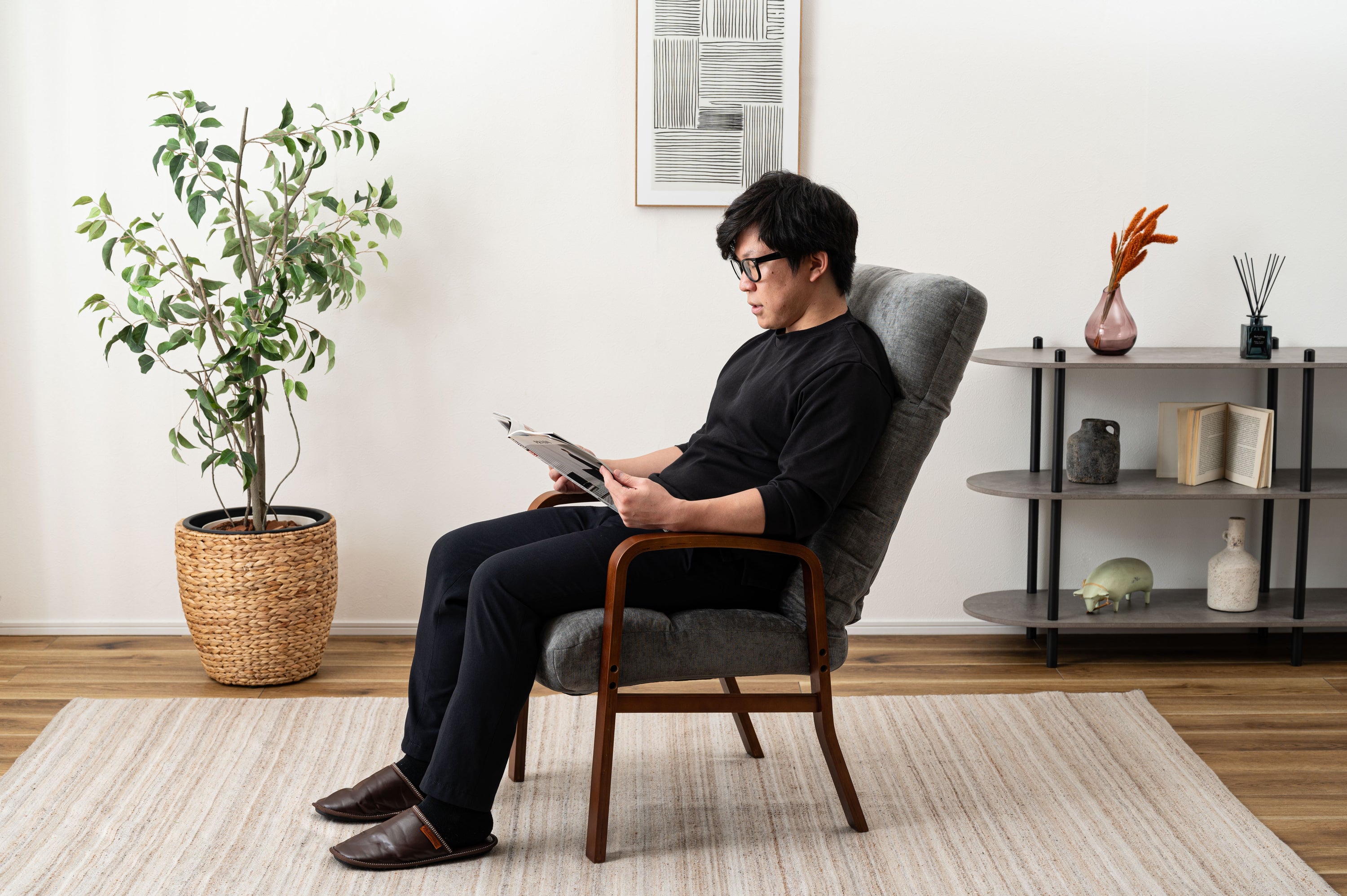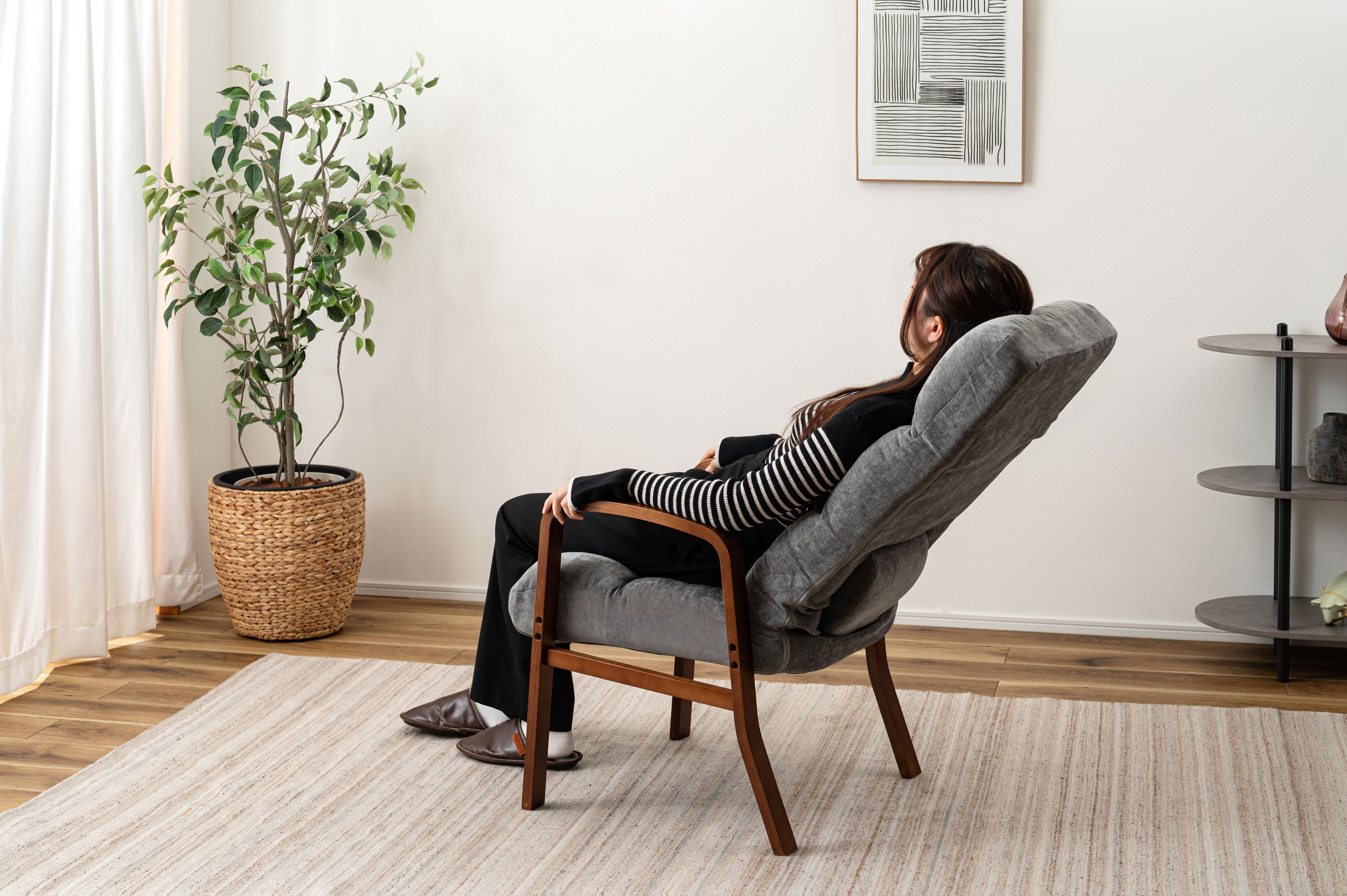 リクライニング機能で、自分にぴったりのチェアに調整が可能な高座椅子。立ち上がりやすい肘掛の形状や持ち運びやすさなど、使う人に寄り添った設計の高座椅子。腰を支えるランバーサポートと、首を支えるヘッドレスト付き。背もたれは7段階リクライニング。頭・腰部は14段階リクライニング。自分の好みに合わせて快適な姿勢に調整。背もたれは折りたたみが可能で、使わない時は最小限のスペースで保管。掴みやすい形状の肘掛で、立ったり座ったりの動作をサポート。しっかりと硬めのクッションで、長時間座っても疲れにくい設計。ヘッド部分が独立してリクライニングするので、ヘッドレストとして頭を預けてリラックス。腰部もリクライニング可能で、ランバーサポートとして腰を支え背筋を伸ばして使用可能。脚裏にはフェルトが付いているので、床への傷防止にもなり安心。