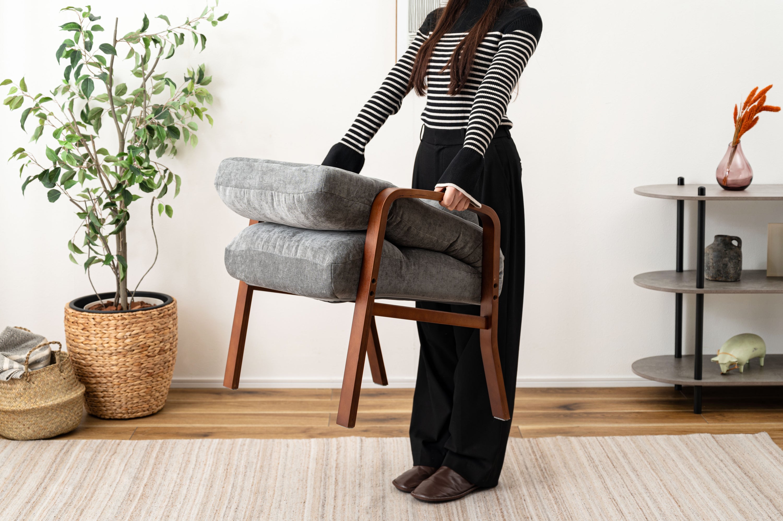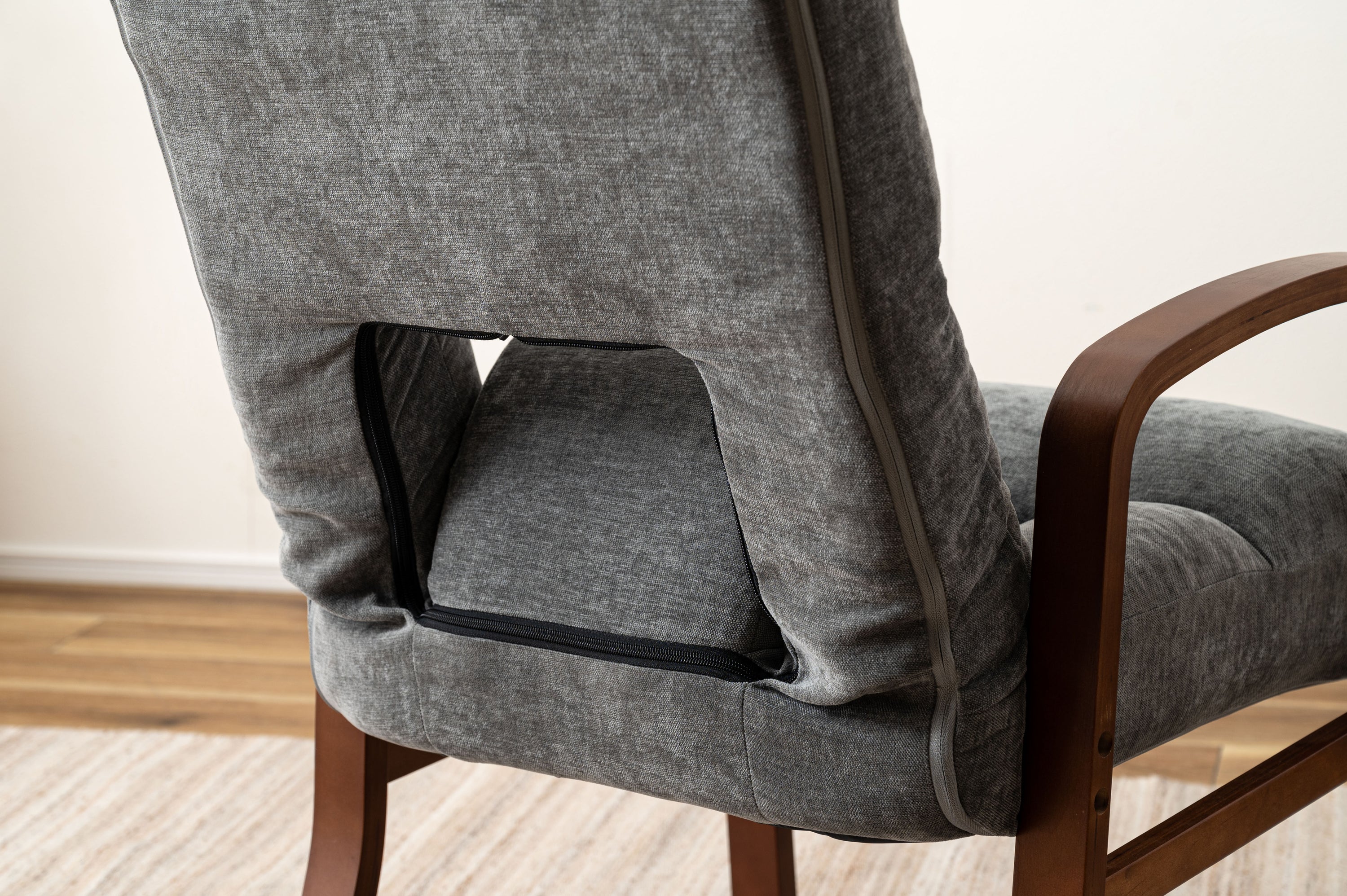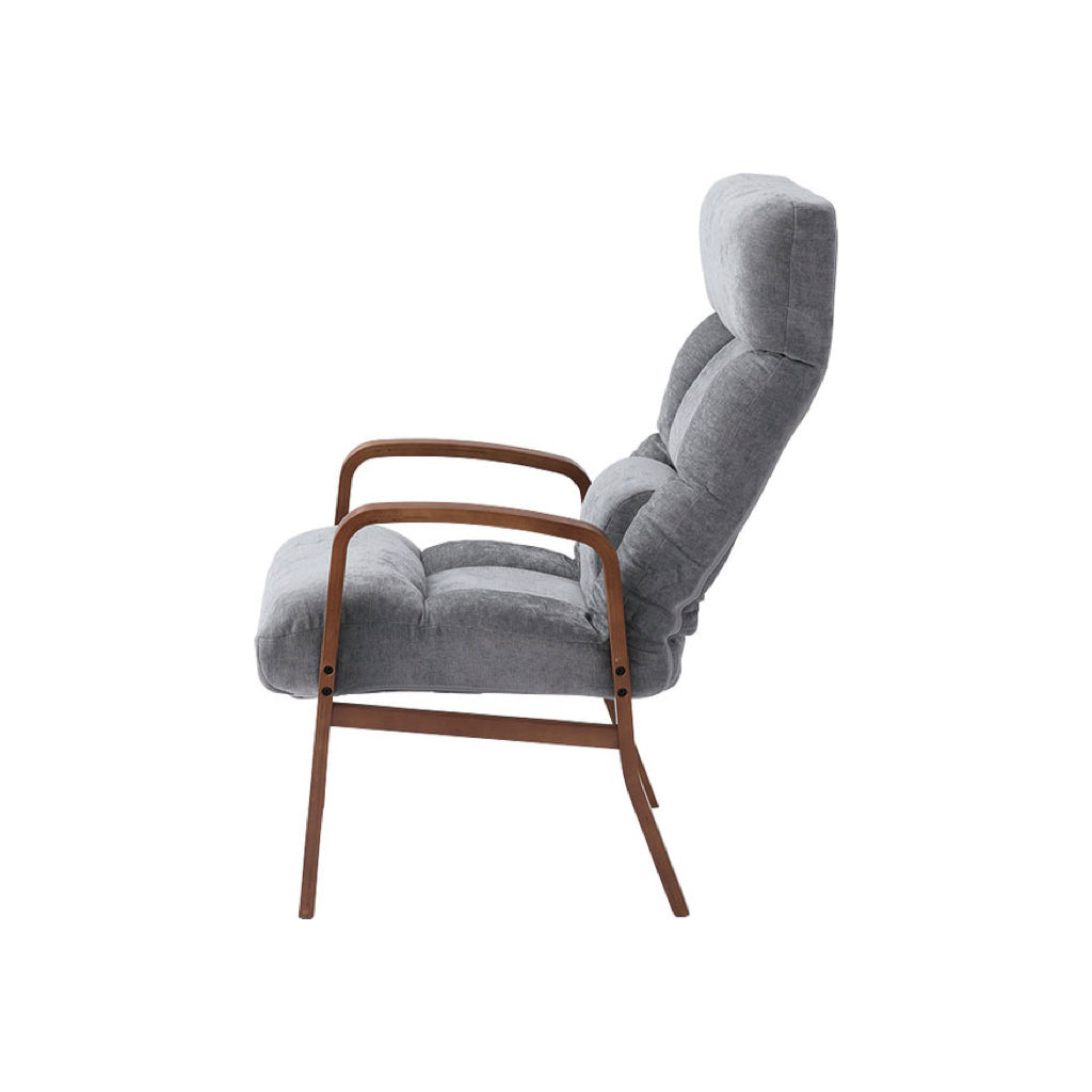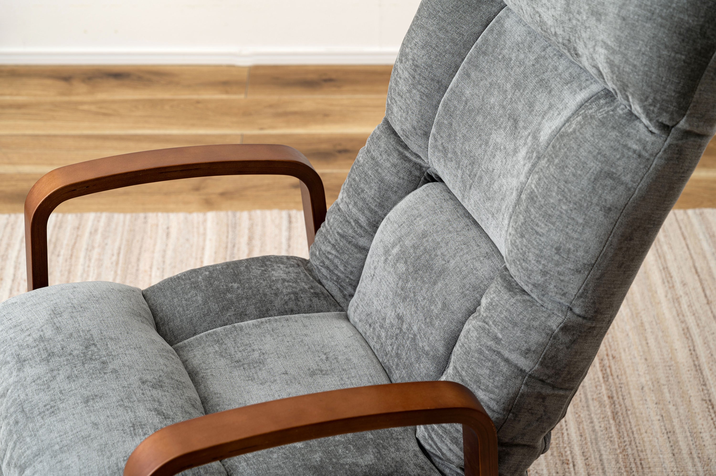 リクライニング機能で、自分にぴったりのチェアに調整が可能な高座椅子。立ち上がりやすい肘掛の形状や持ち運びやすさなど、使う人に寄り添った設計の高座椅子。腰を支えるランバーサポートと、首を支えるヘッドレスト付き。背もたれは7段階リクライニング。頭・腰部は14段階リクライニング。自分の好みに合わせて快適な姿勢に調整。背もたれは折りたたみが可能で、使わない時は最小限のスペースで保管。掴みやすい形状の肘掛で、立ったり座ったりの動作をサポート。しっかりと硬めのクッションで、長時間座っても疲れにくい設計。ヘッド部分が独立してリクライニングするので、ヘッドレストとして頭を預けてリラックス。腰部もリクライニング可能で、ランバーサポートとして腰を支え背筋を伸ばして使用可能。脚裏にはフェルトが付いているので、床への傷防止にもなり安心。