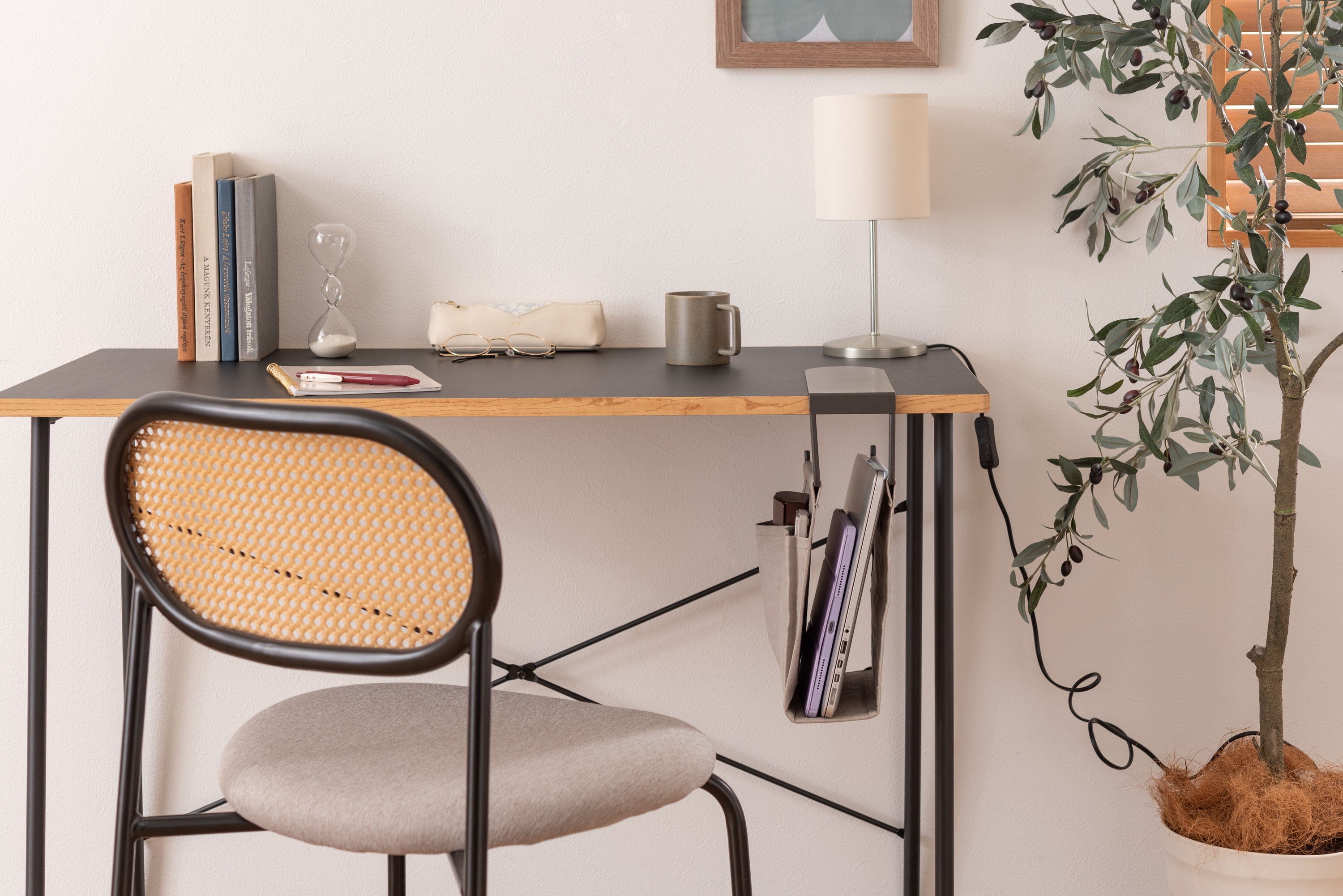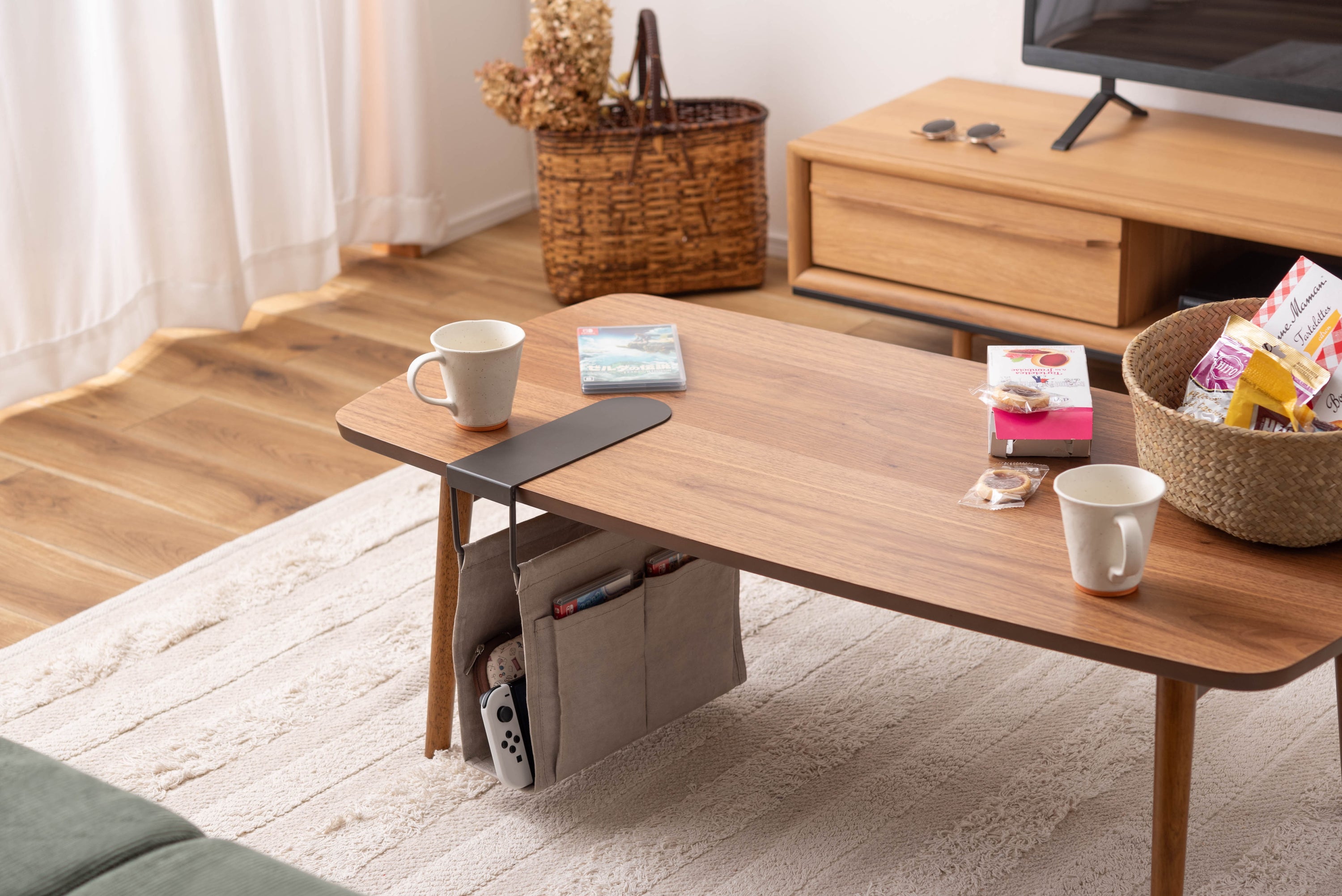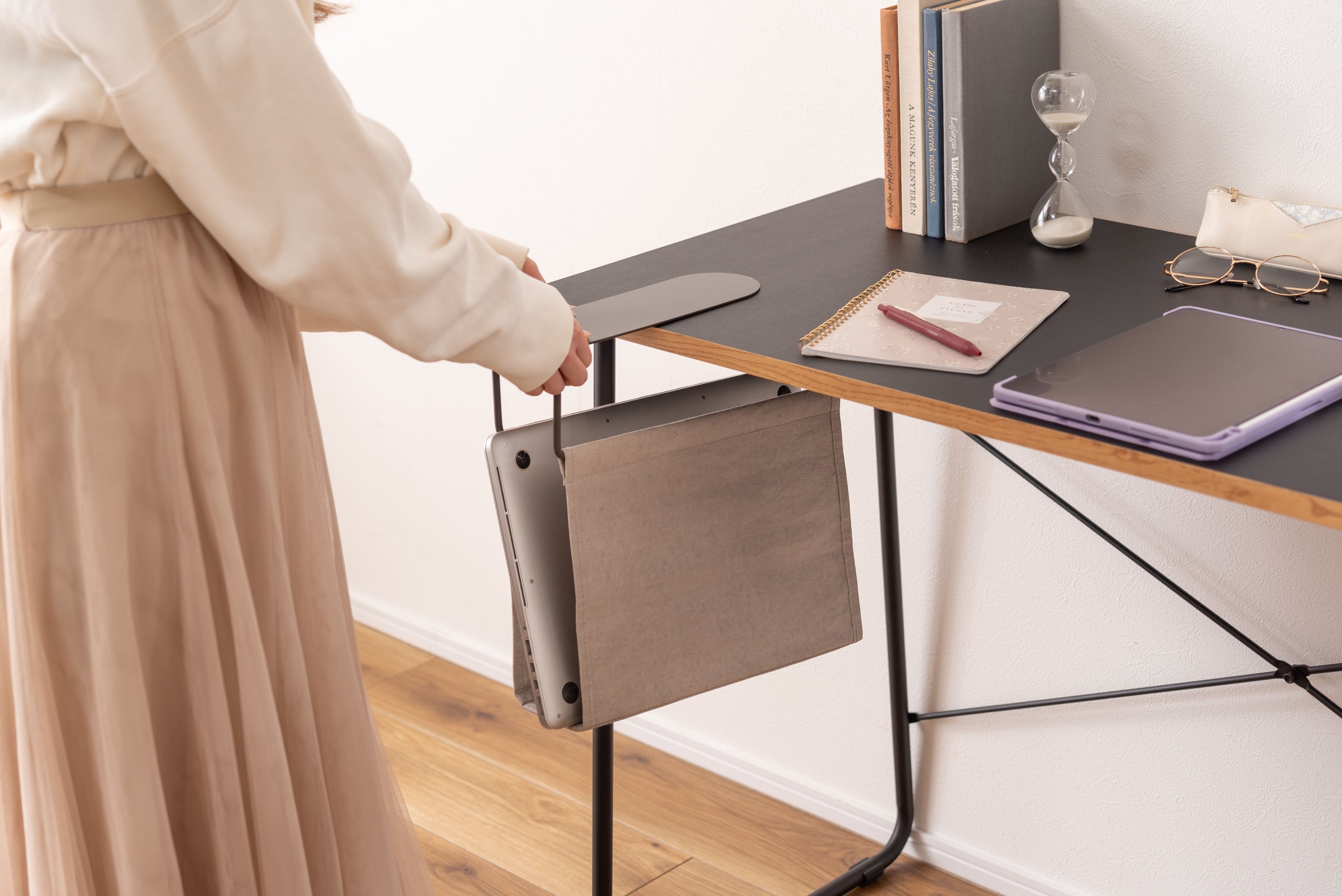 テーブル下のデッドスペースを有効活用 リビングやデスクをスッキリさせるハンギング収納バッグ。 A4ファイルやタブレット端末も楽々入る大きさで、利便性も抜群。 強化べラム紙を使用し、シンプルかつお洒落に収納できます。