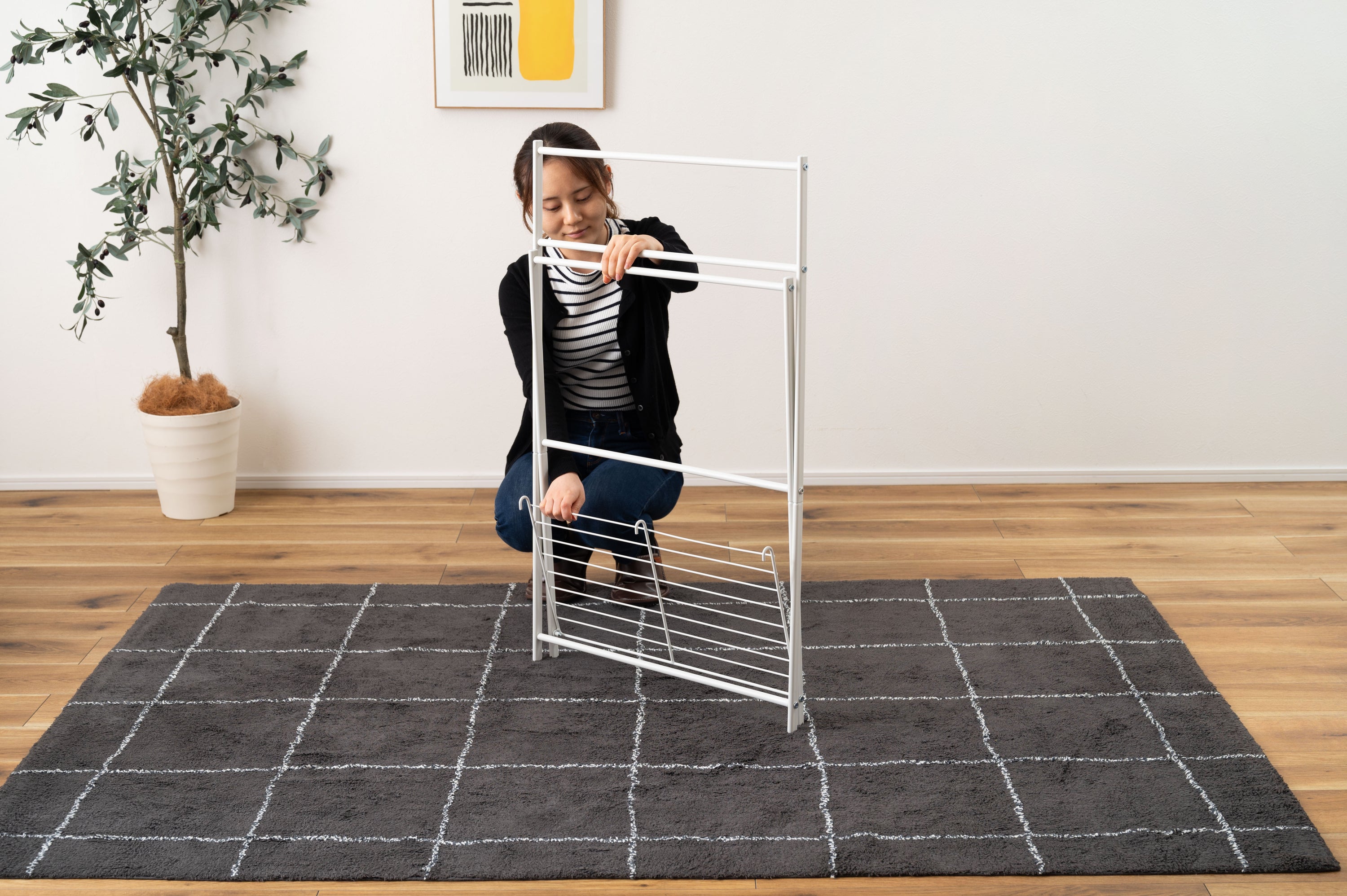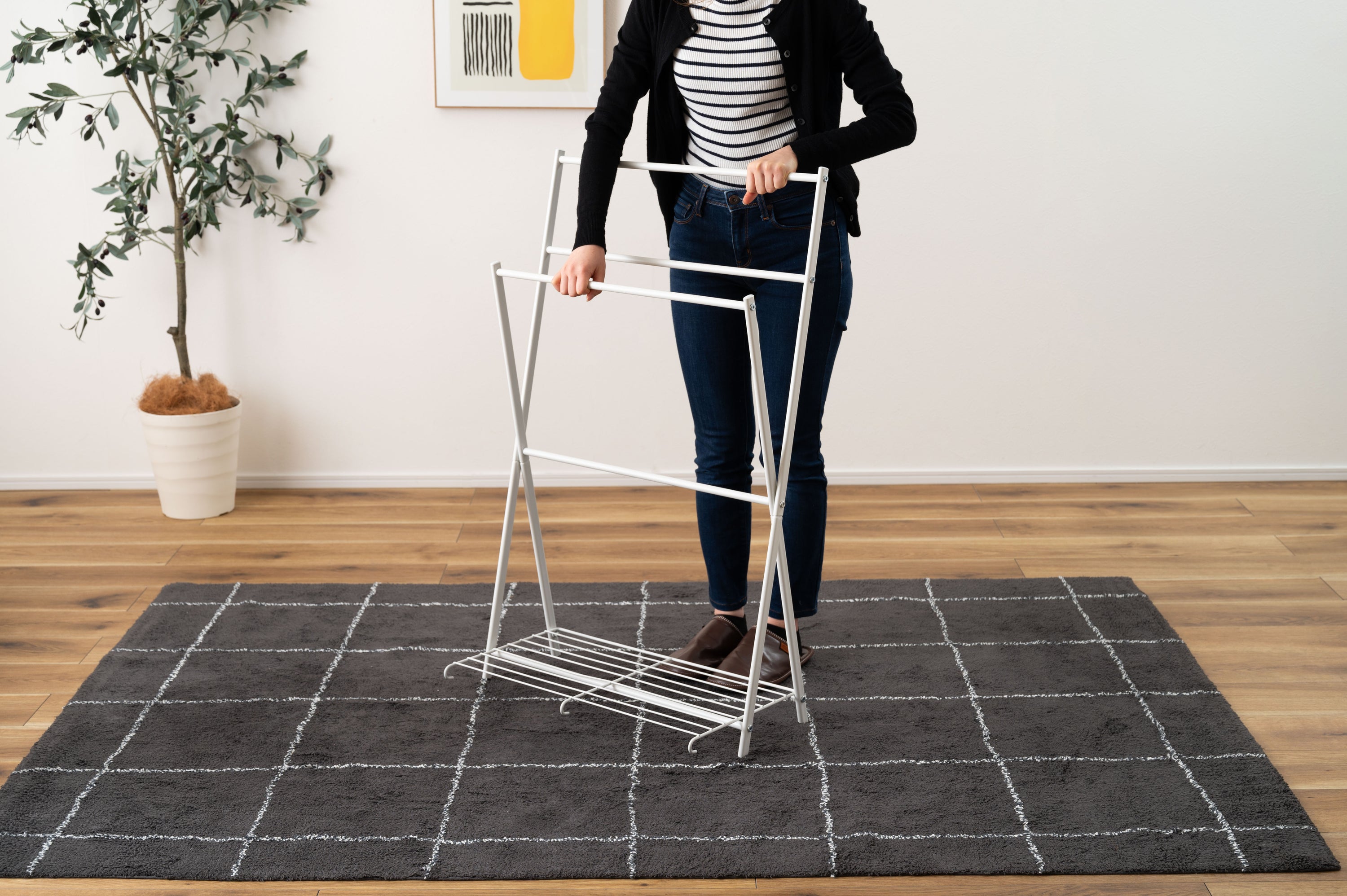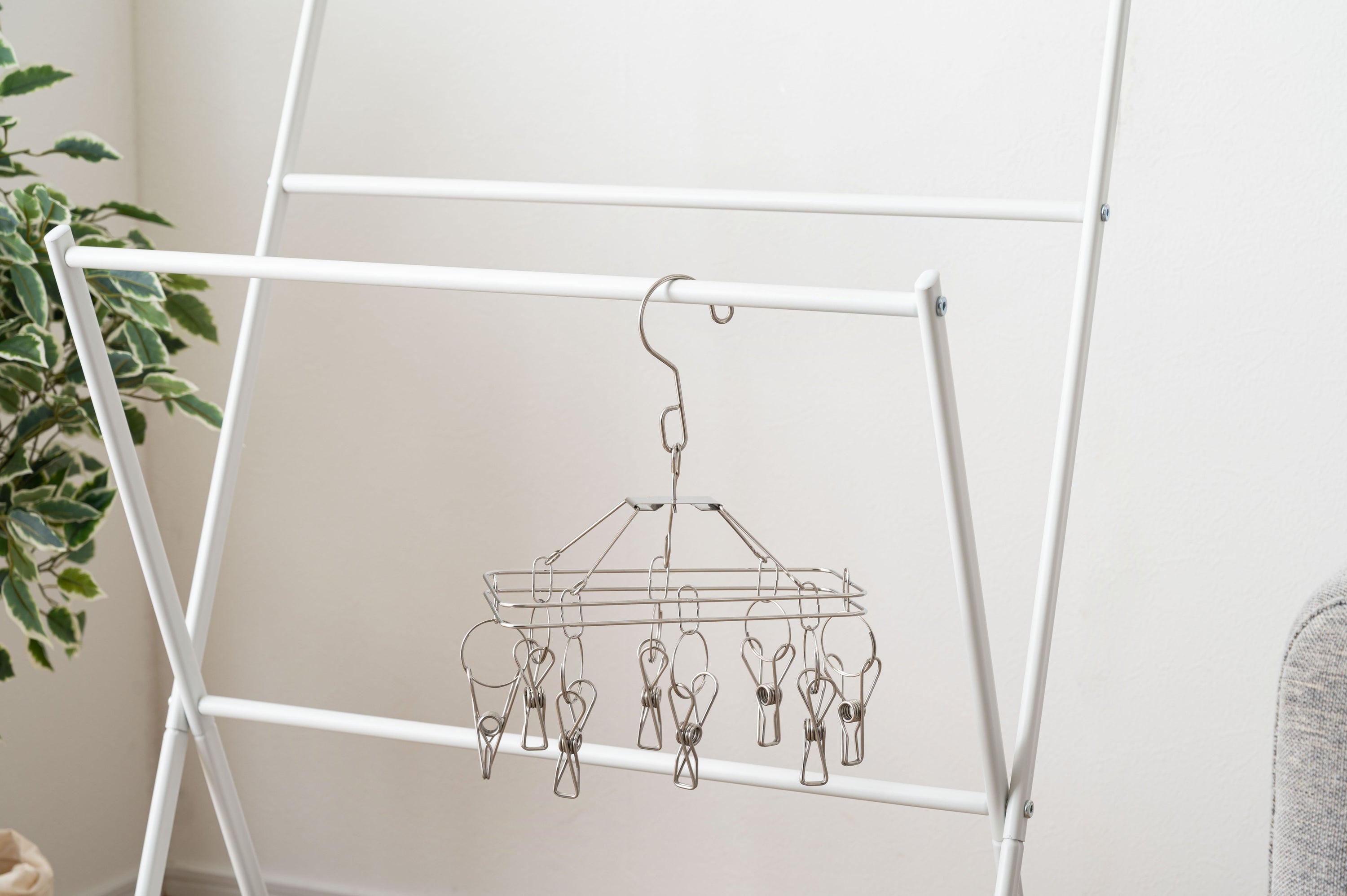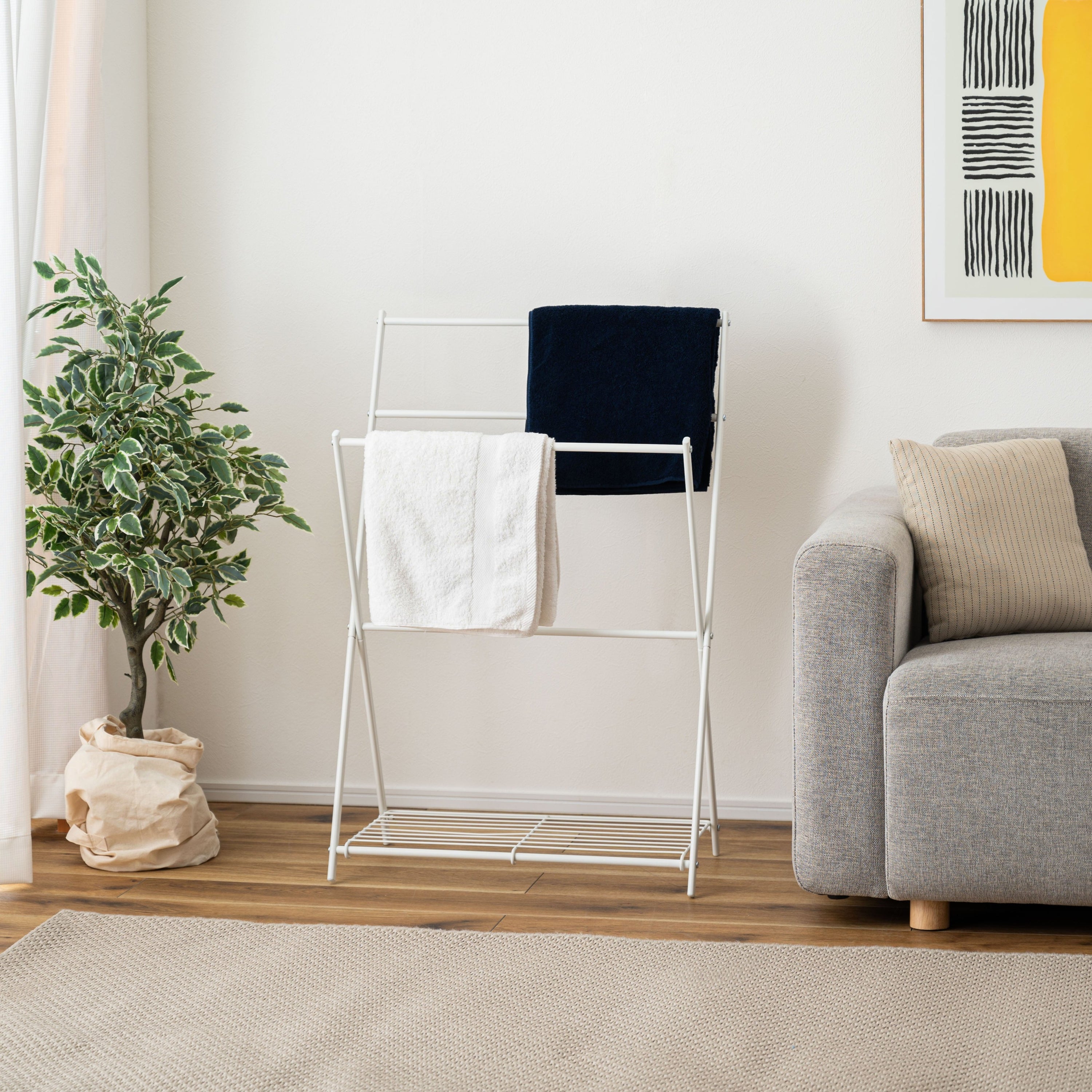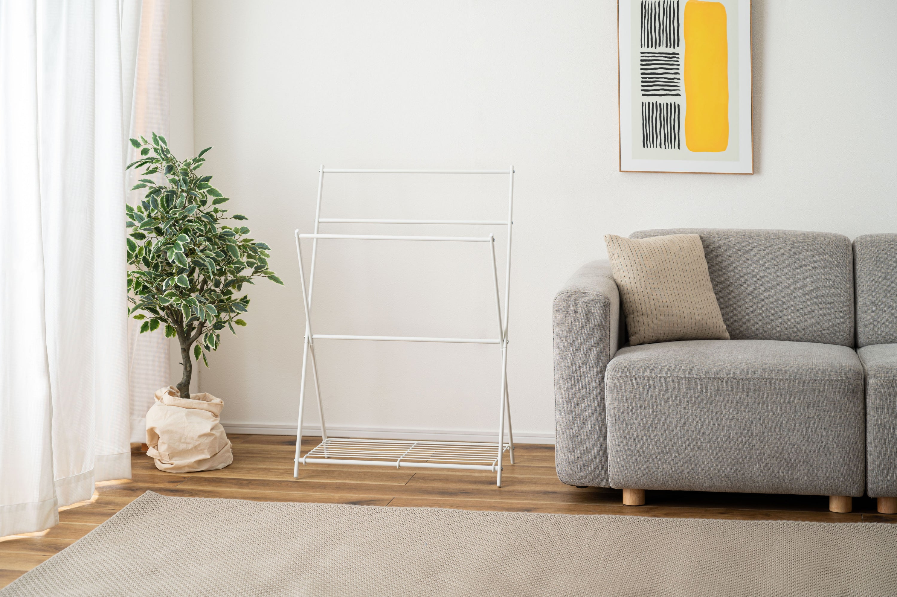 コンパクトサイズで場所を取らず、スッキリ置けるフォールディングタオルハンガー。 折りたたみ可能なので使わない時は省スペースに隙間収納ができます。 段違いに干す事が出来るので、風通しが良いのも嬉しいポイントです。