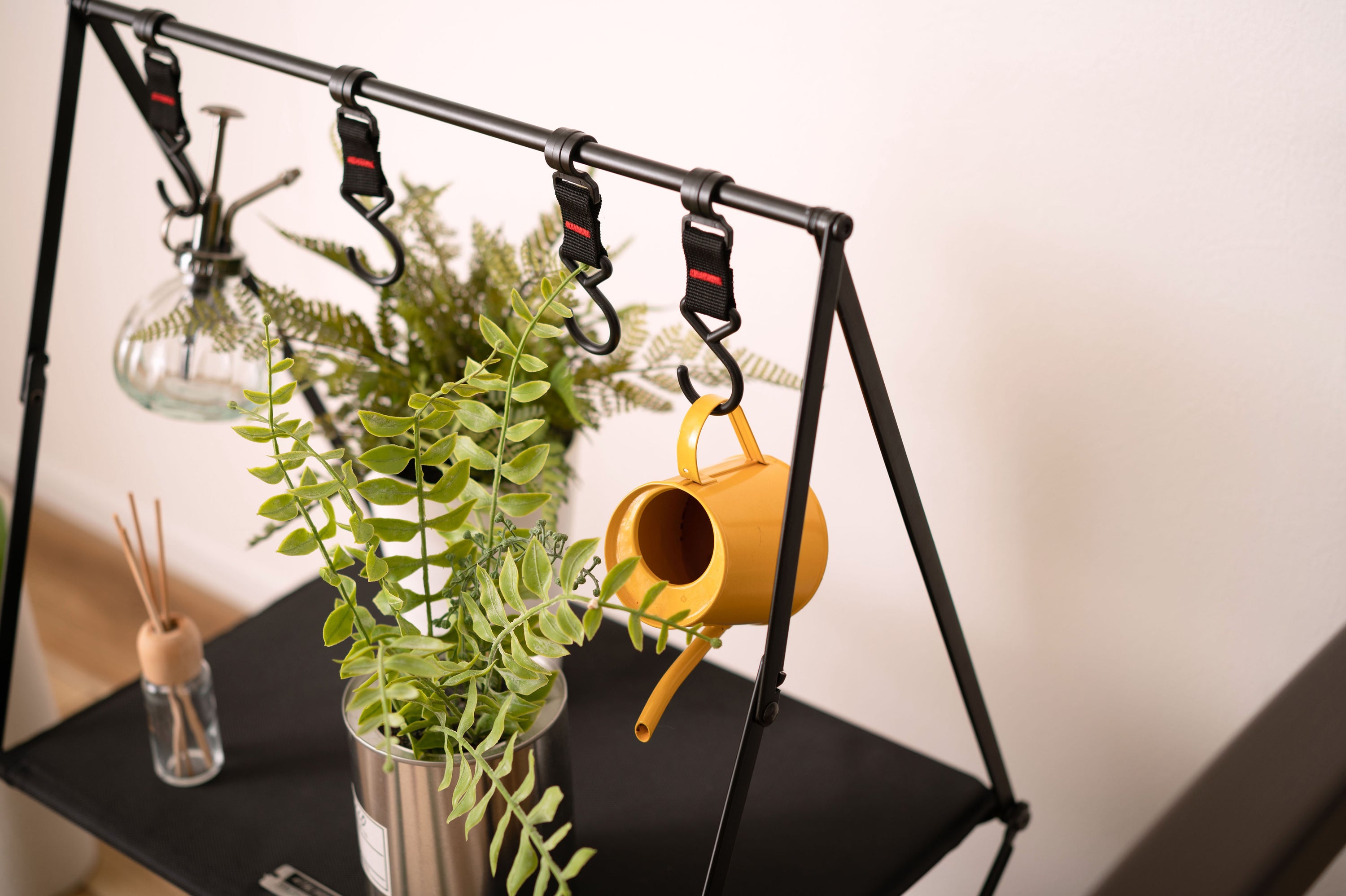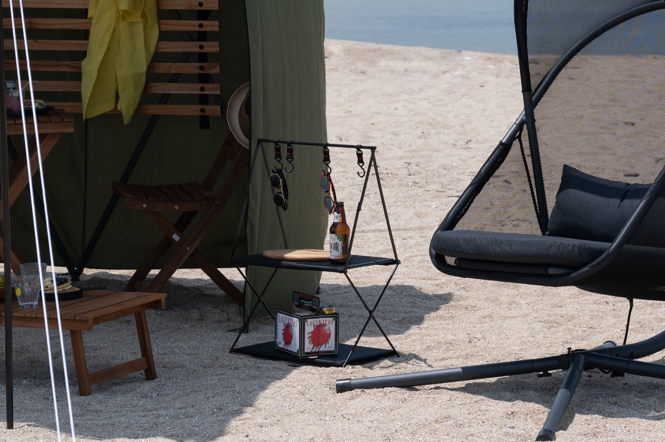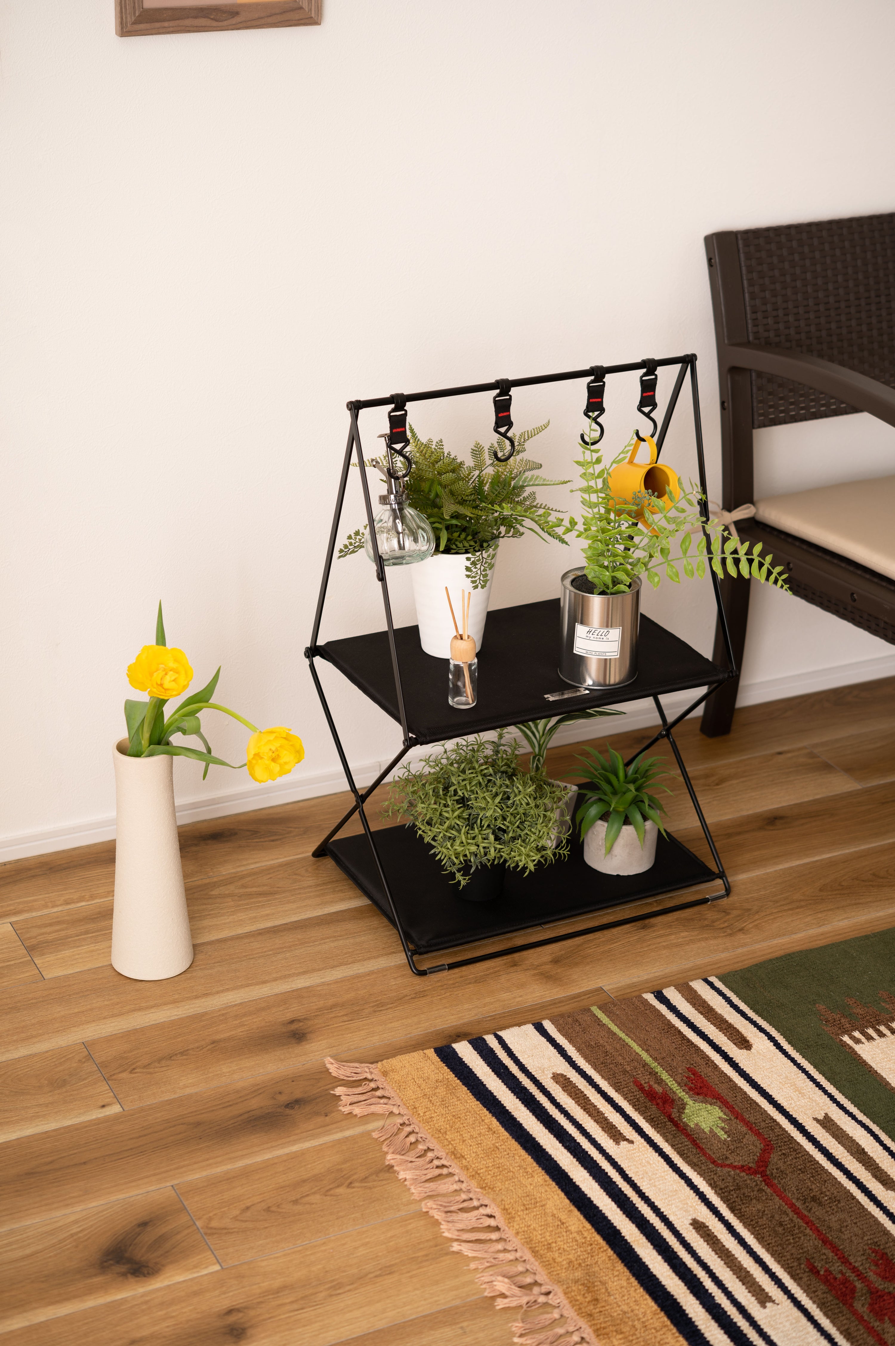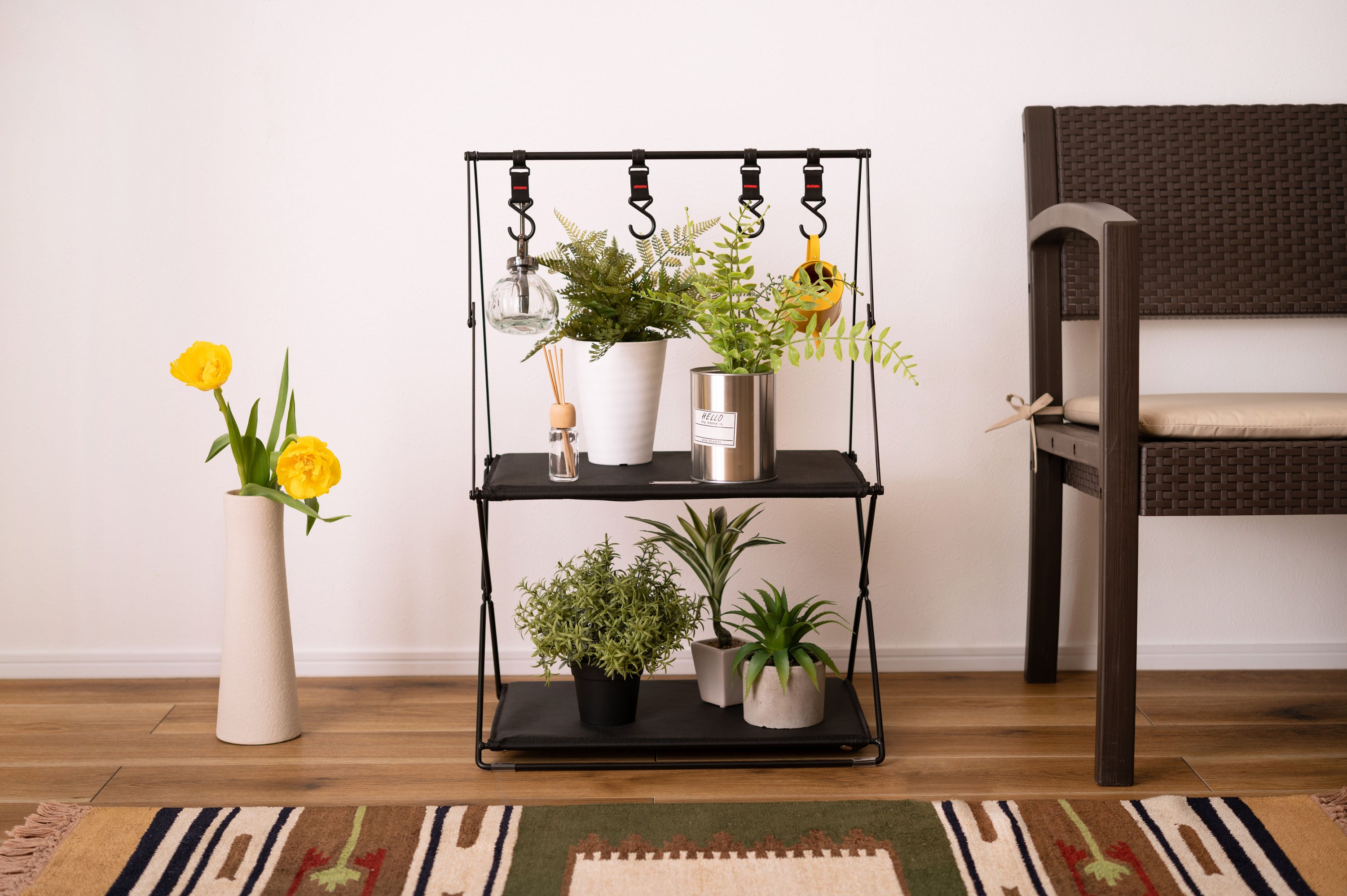 あらゆる場所でマルチに使える折りたたみハンギングラックです。場所を選ばず、散らかりがちな小物類を手軽にまとめて収納できます。4つのフックが付いているので、様々な物を手軽に掛けることができます。アウトドア・キャンプル・レジャーはもちろん、屋内の使用でも大活躍します。コンパクトに折りたたむことができるので移動や収納も邪魔になりません。