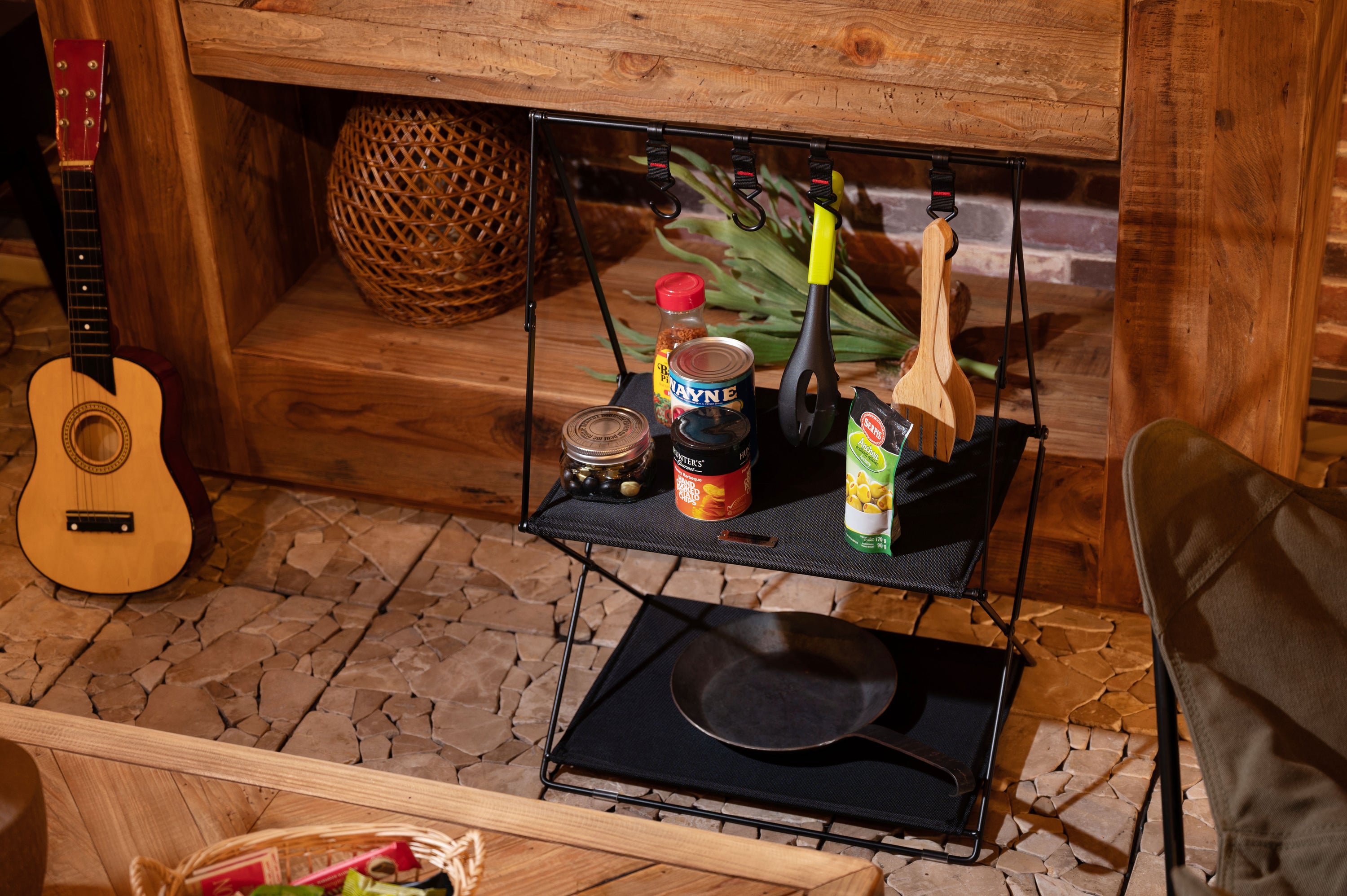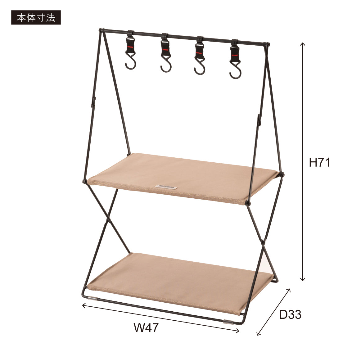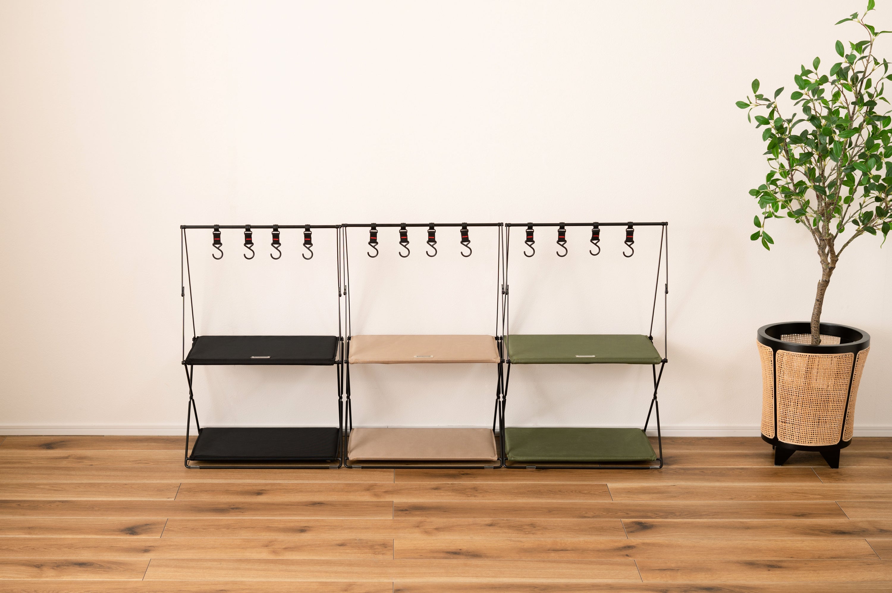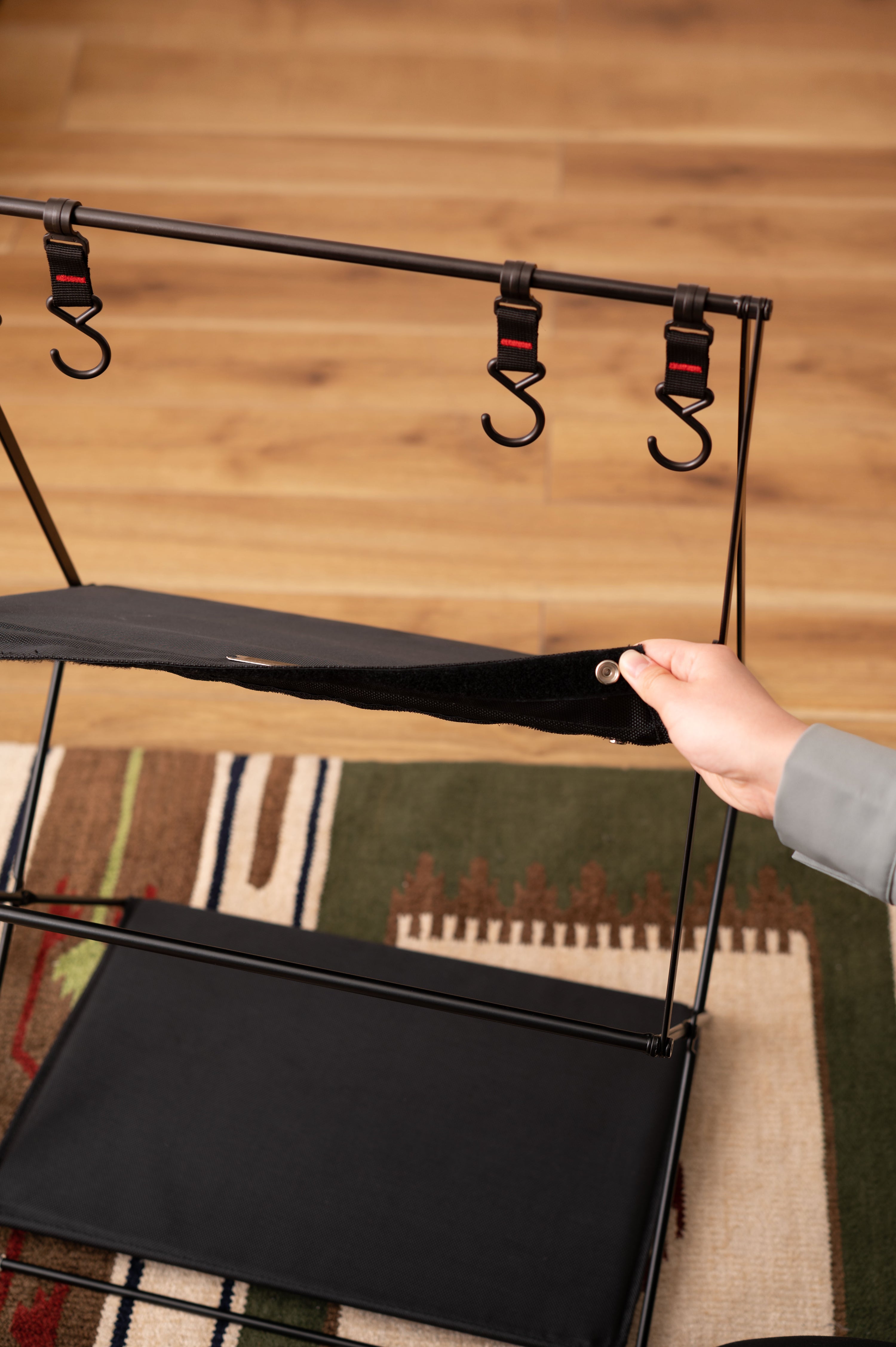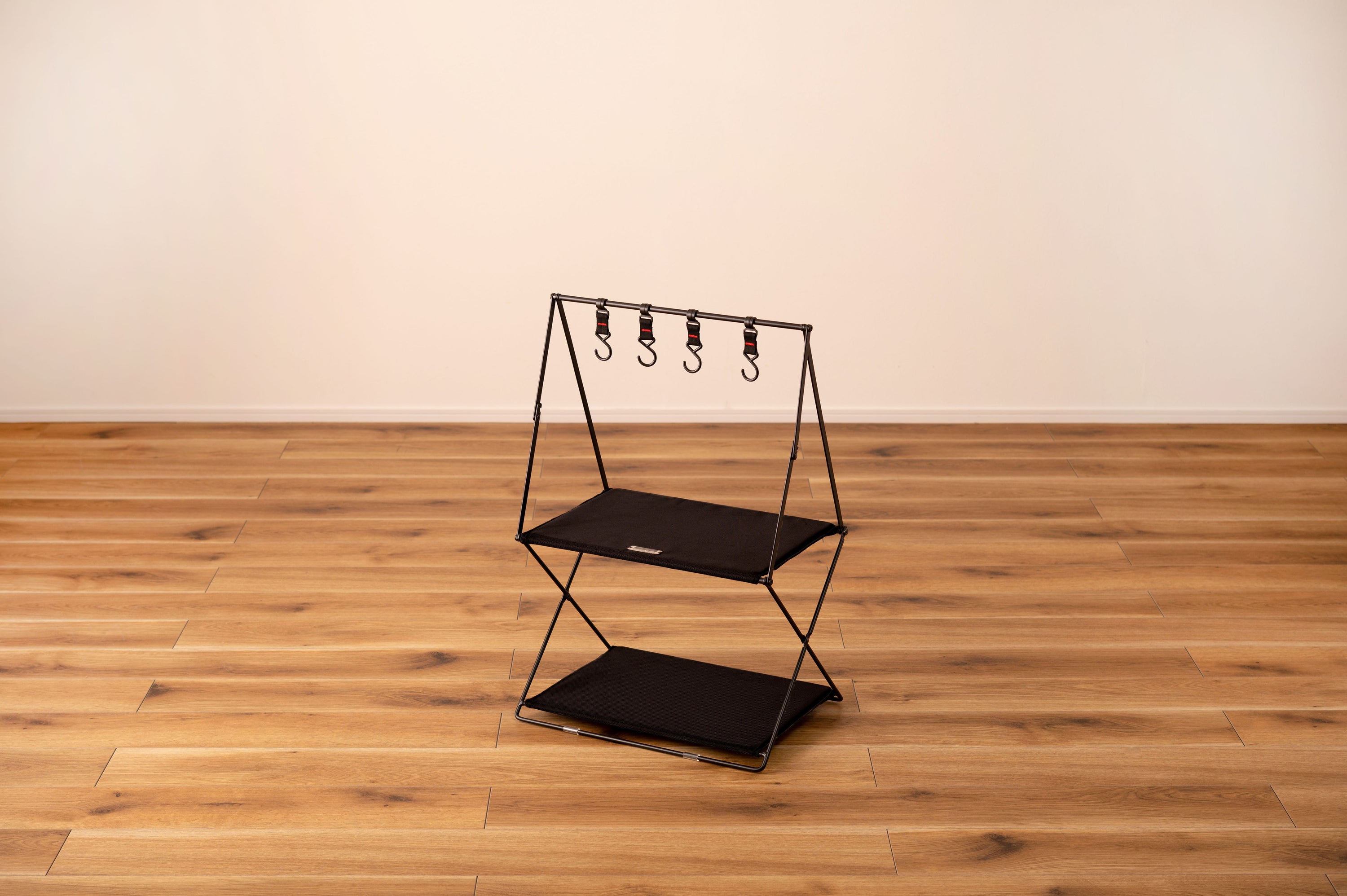 あらゆる場所でマルチに使える折りたたみハンギングラックです。場所を選ばず、散らかりがちな小物類を手軽にまとめて収納できます。4つのフックが付いているので、様々な物を手軽に掛けることができます。アウトドア・キャンプル・レジャーはもちろん、屋内の使用でも大活躍します。コンパクトに折りたたむことができるので移動や収納も邪魔になりません。
