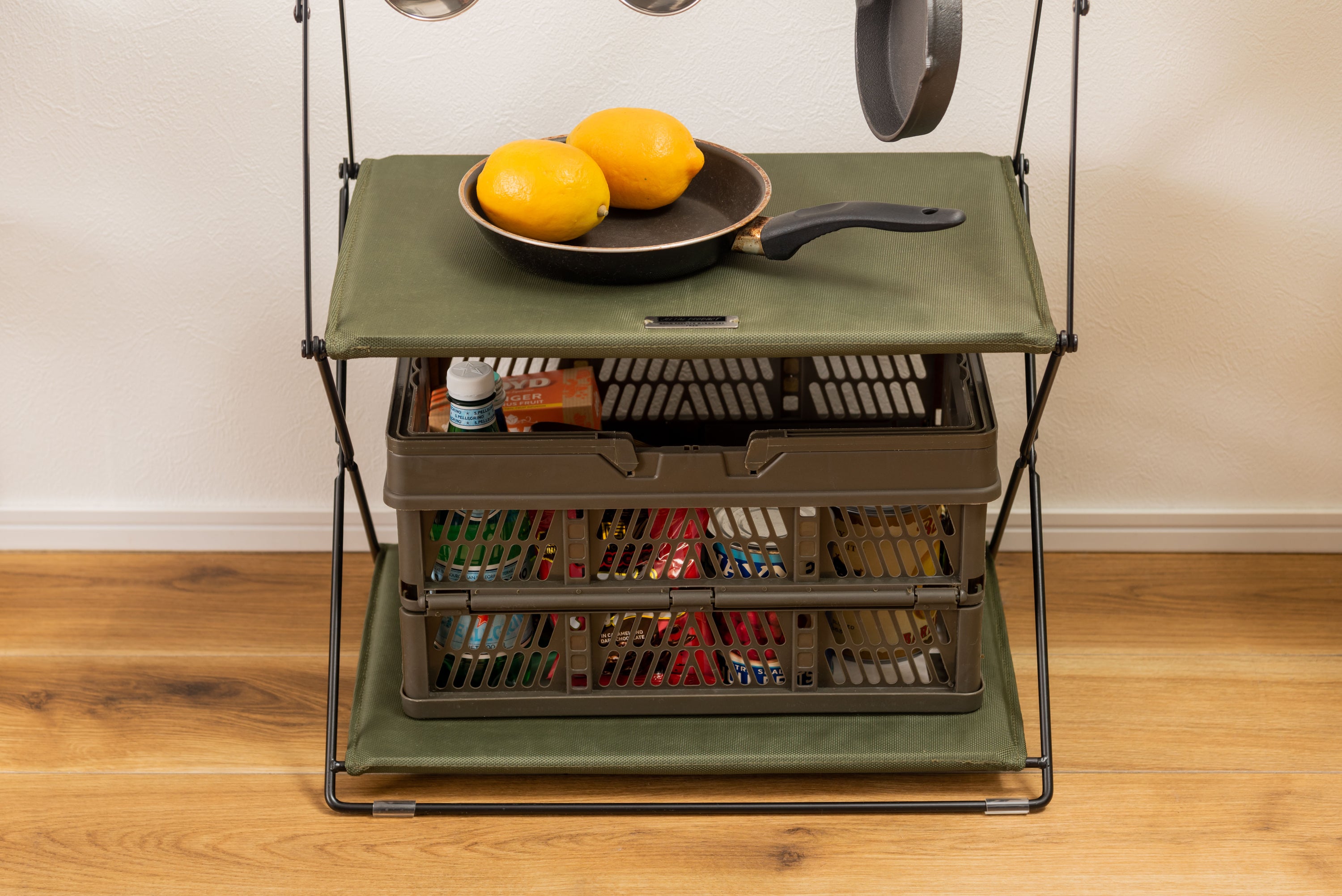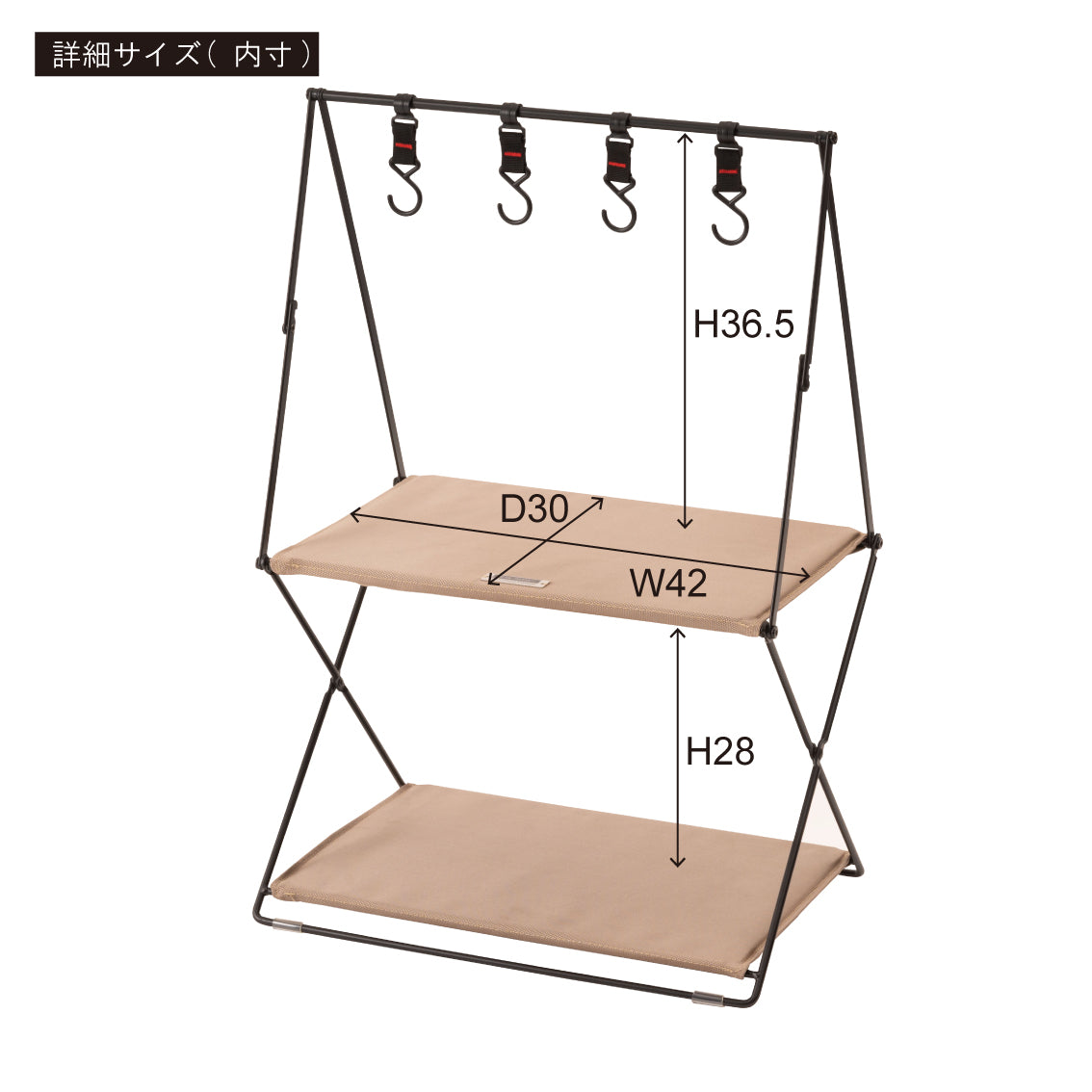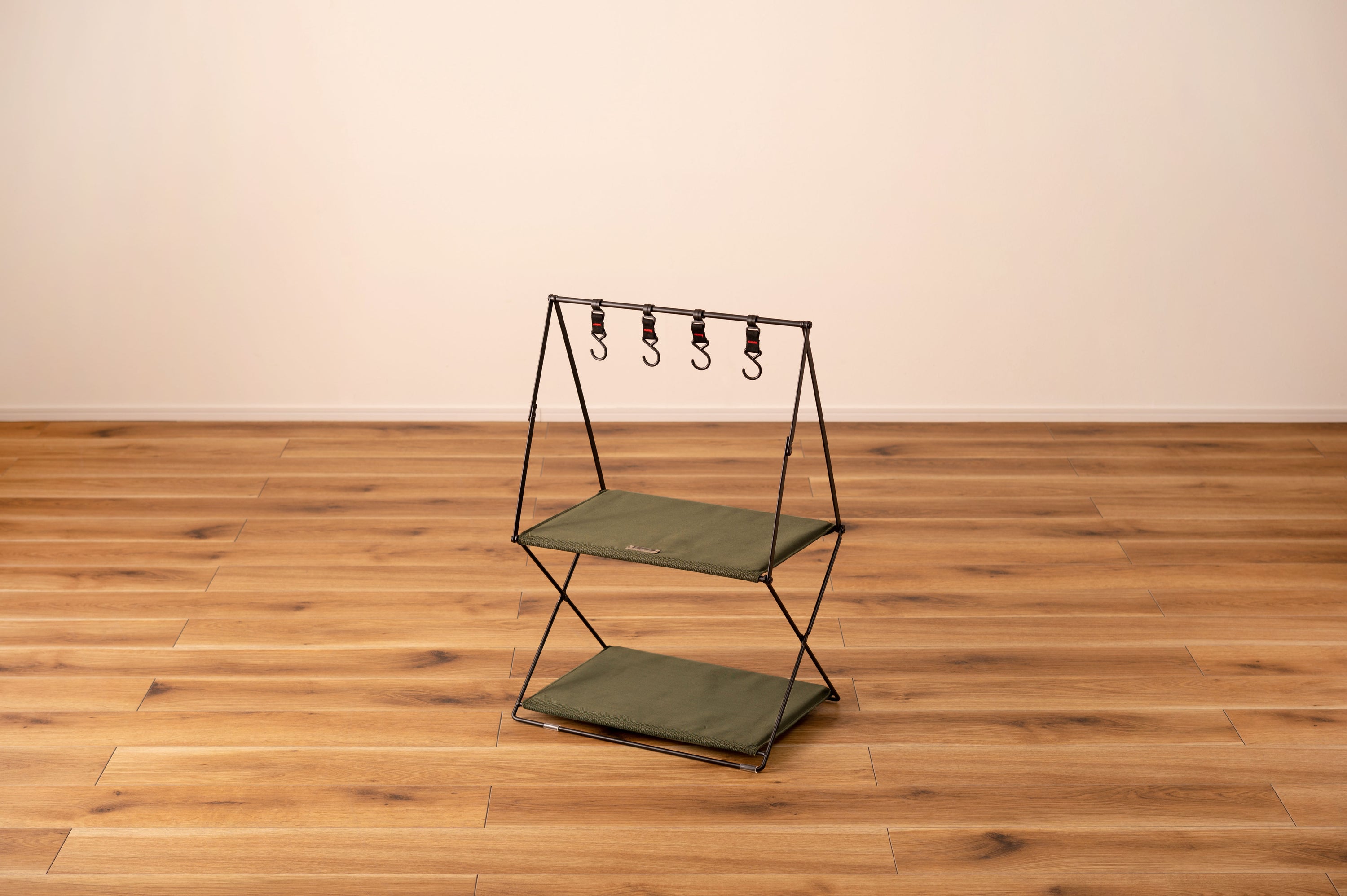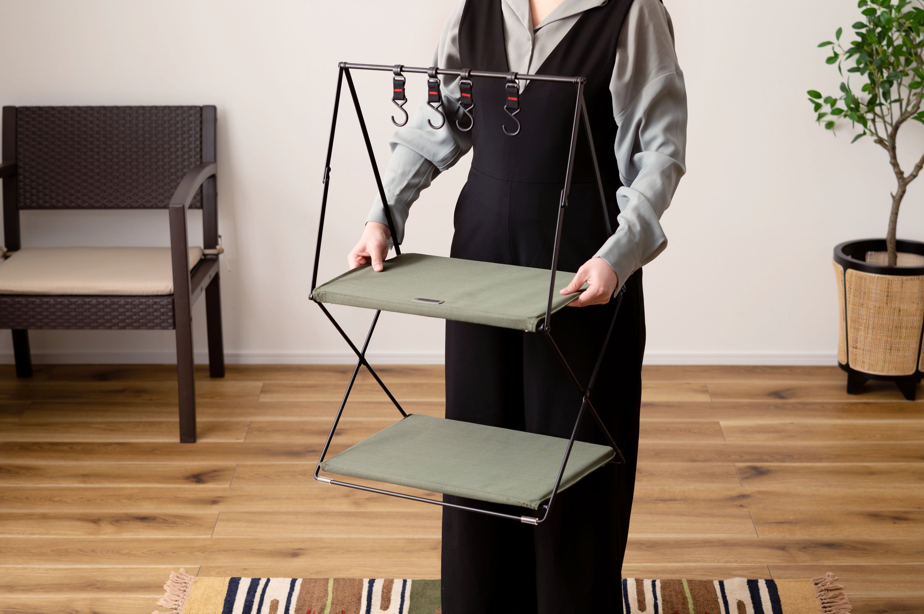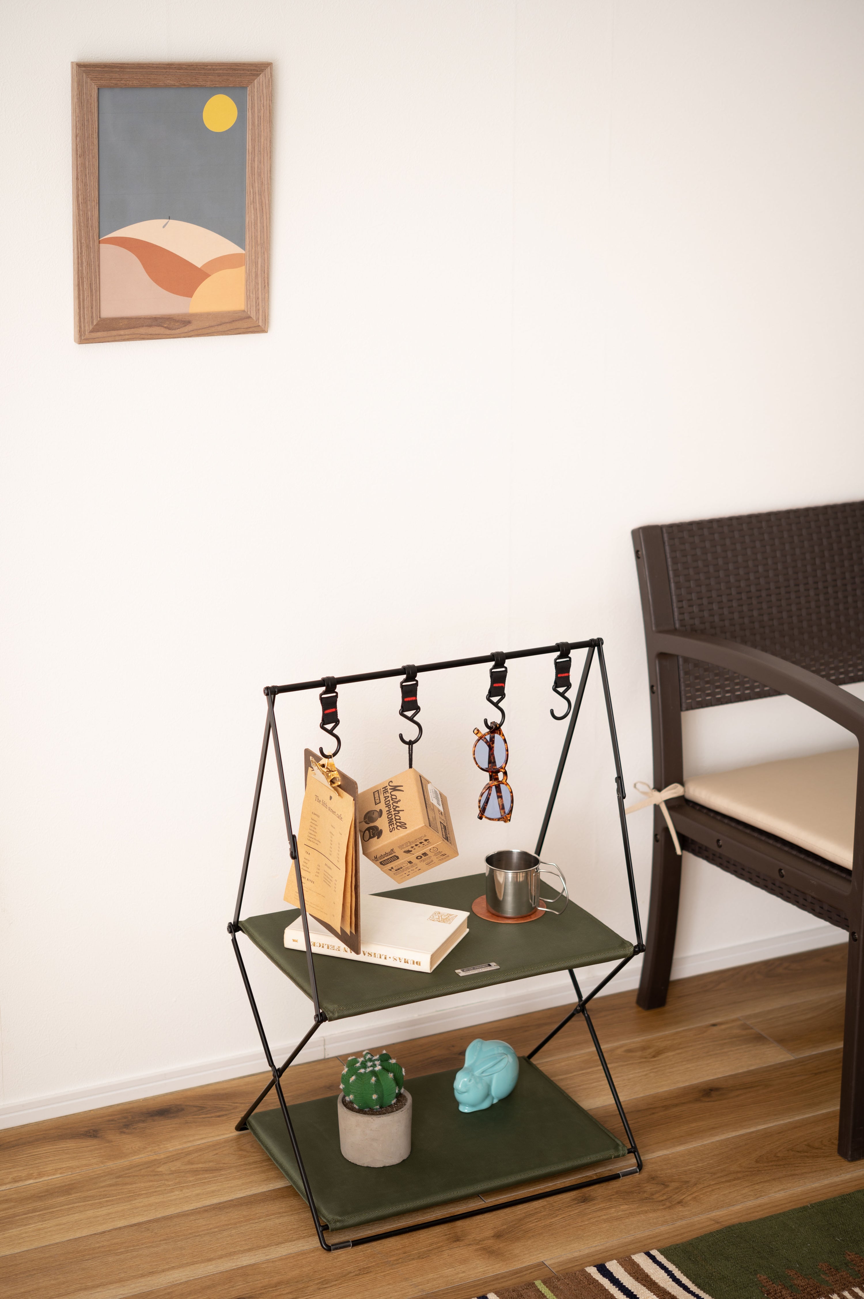 あらゆる場所でマルチに使える折りたたみハンギングラックです。場所を選ばず、散らかりがちな小物類を手軽にまとめて収納できます。4つのフックが付いているので、様々な物を手軽に掛けることができます。アウトドア・キャンプル・レジャーはもちろん、屋内の使用でも大活躍します。コンパクトに折りたたむことができるので移動や収納も邪魔になりません。