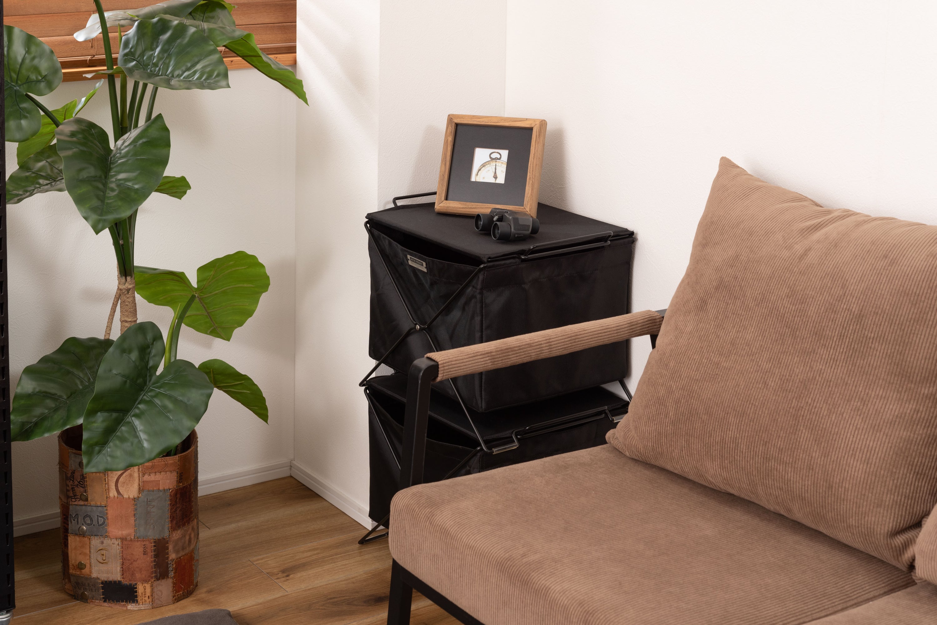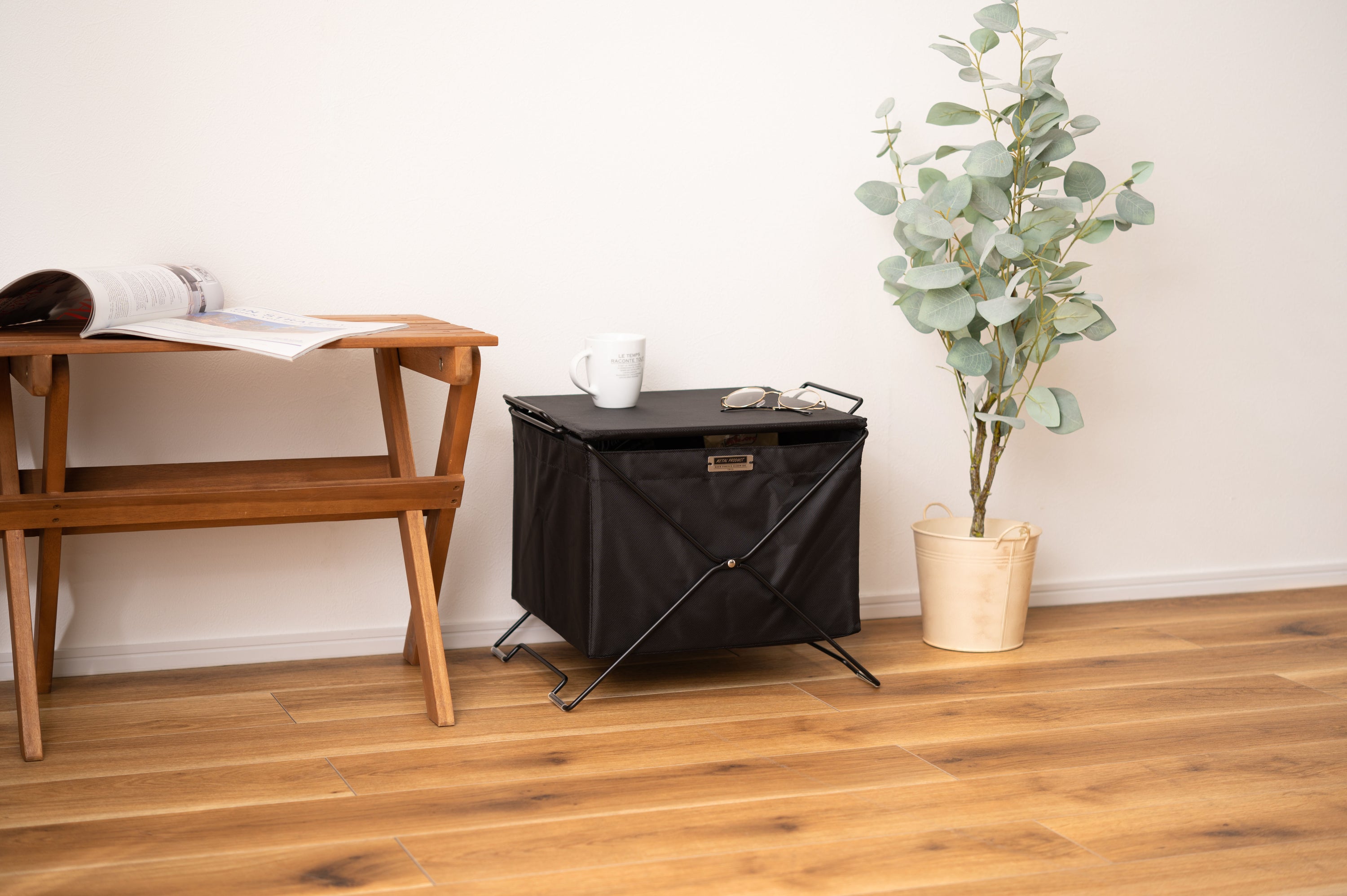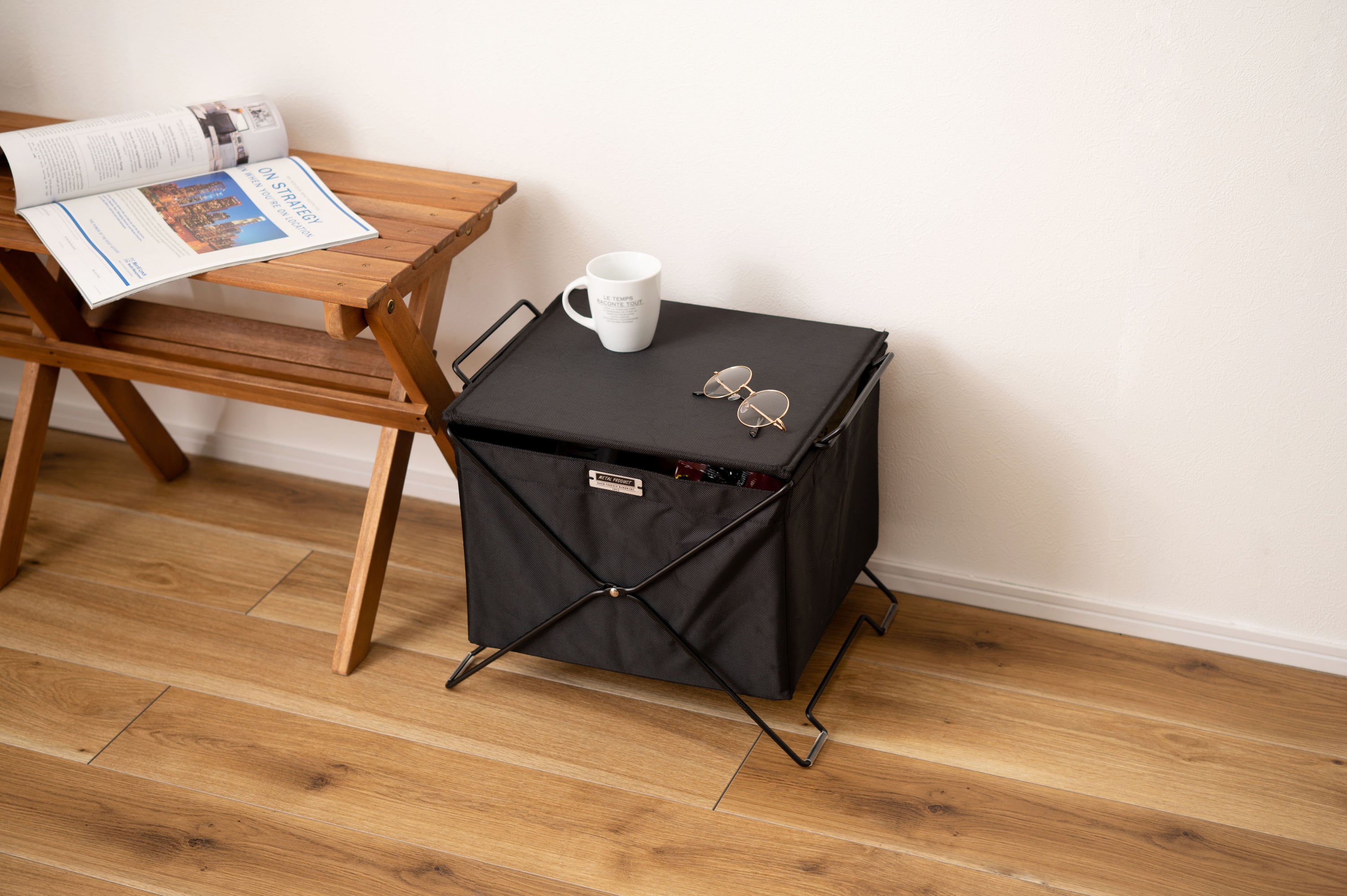 気軽に使えるフタ付きバスケット。机周りやアウトドアでの小物の収納に便利。軽くて持ち運びがしやすく、フタが平面でしっかりしているのでサイドテーブルにも使用できます。フタは取り外してトレーとしても使用できます。積み重ね(スタッキング)が可能なので、省スペースで効率よく収納ができます。取っ手が付いているので持ち運びもらくらく。