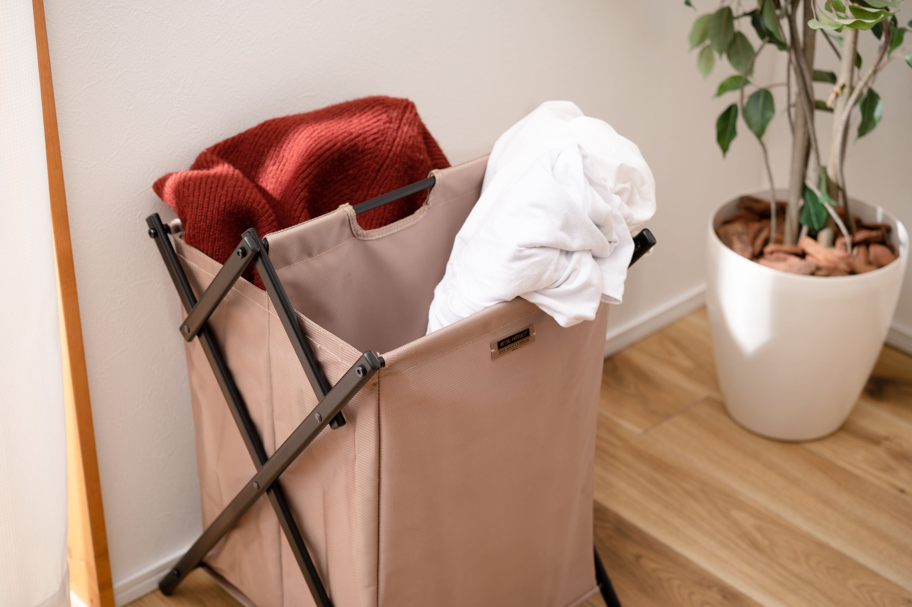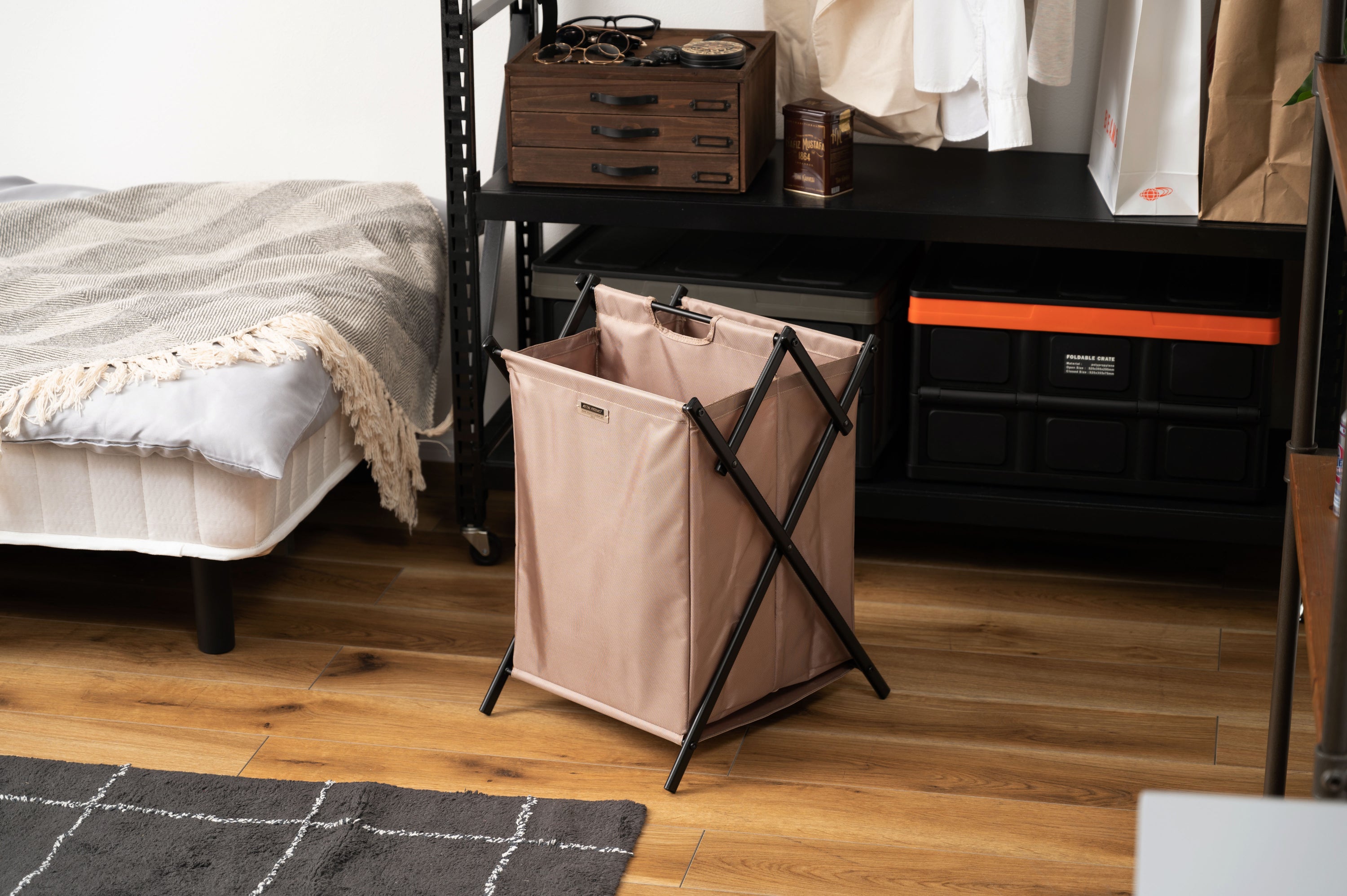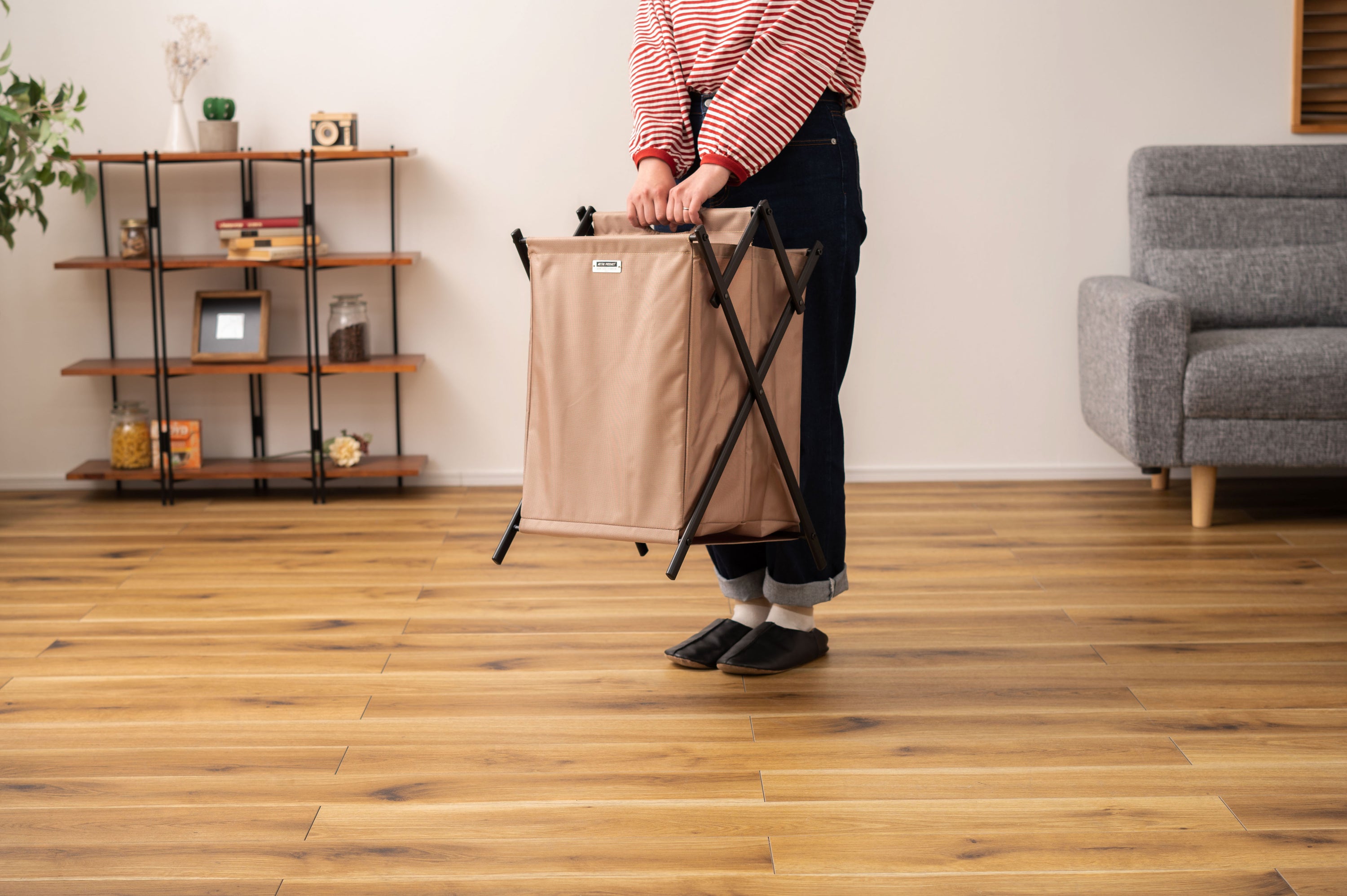 様々なシーンで活躍する収納バスケット深さがあるので衣類やおもちゃなど、たくさんの物が収納できます。使わないときは折り畳むことができるので持ち運びがしやすく様々なシーンに合わせて活用できます。深さのある大容量タイプ。両端を内側に押し込むだけで折り畳めます。取っ手が付いて持ち運びができます。隙間収納が可能です。