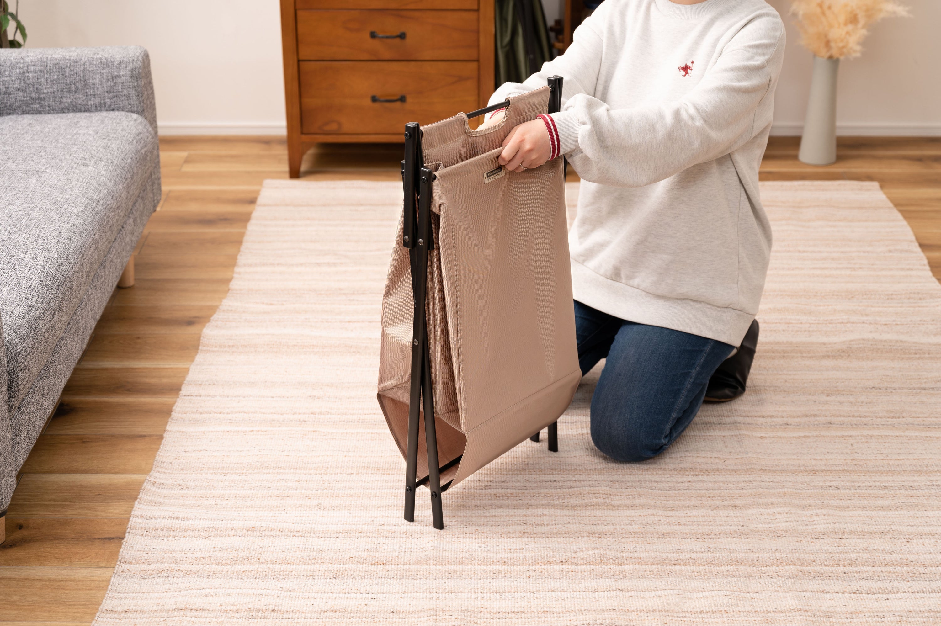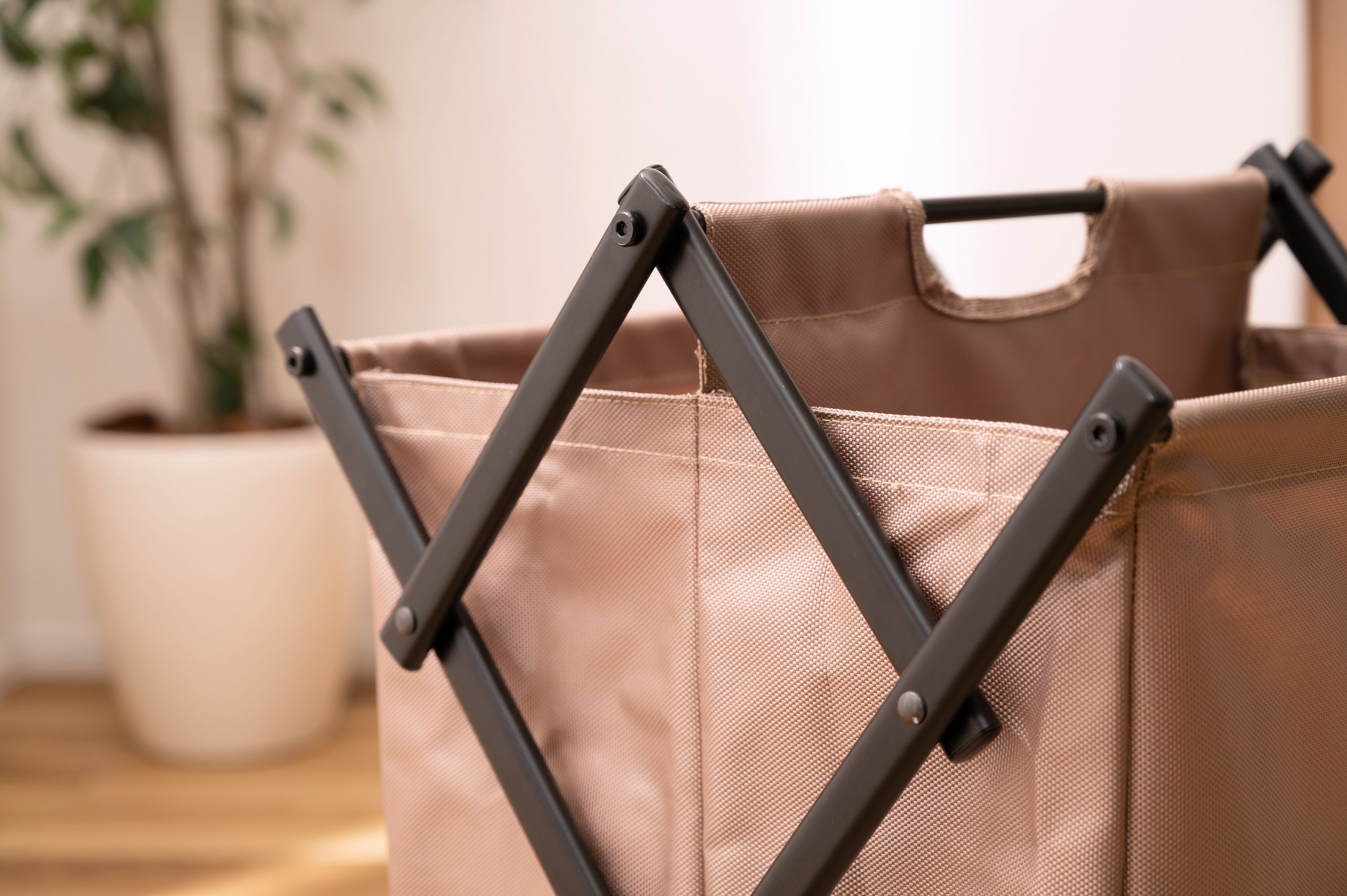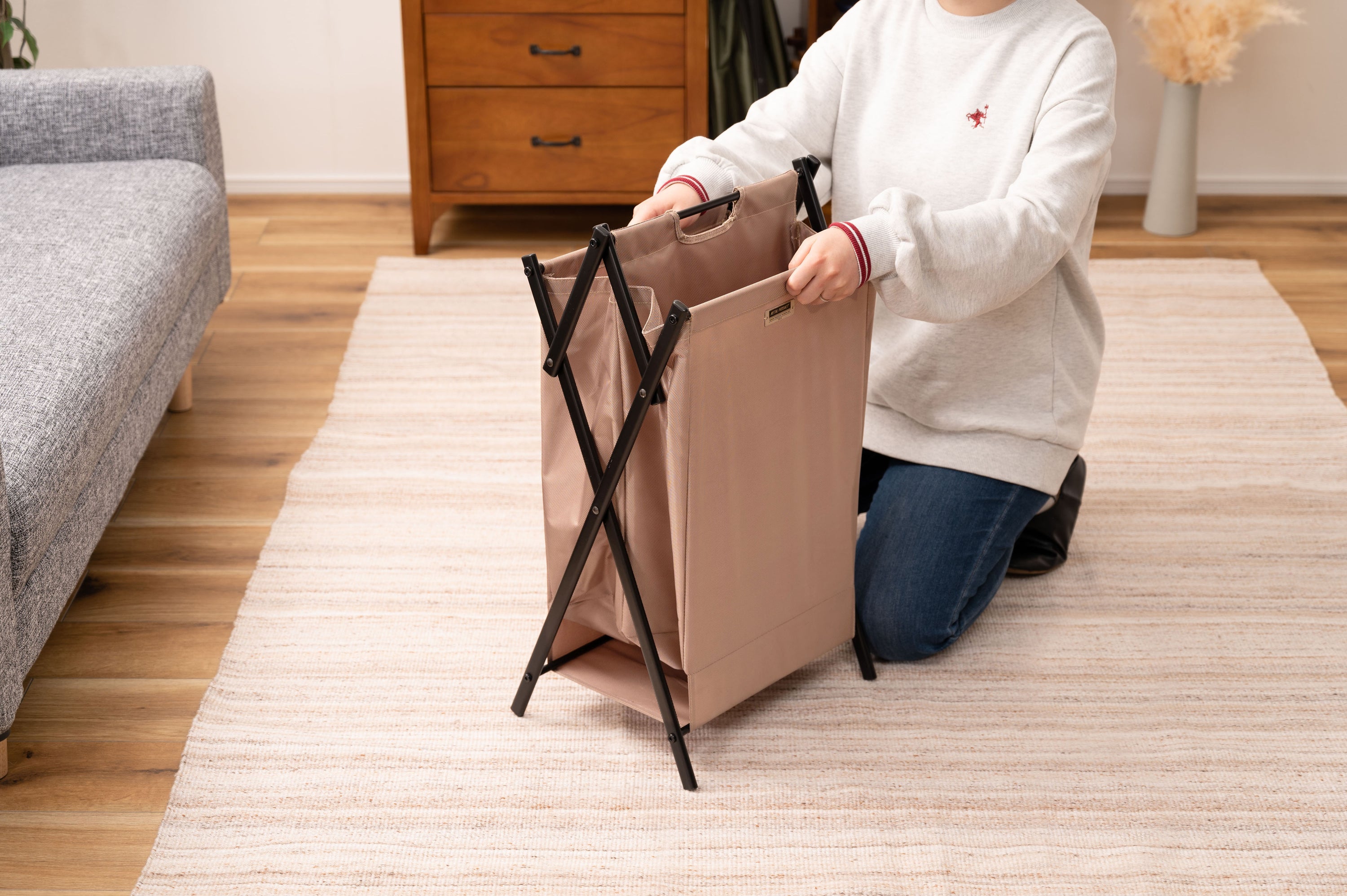 様々なシーンで活躍する収納バスケット深さがあるので衣類やおもちゃなど、たくさんの物が収納できます。使わないときは折り畳むことができるので持ち運びがしやすく様々なシーンに合わせて活用できます。深さのある大容量タイプ。両端を内側に押し込むだけで折り畳めます。取っ手が付いて持ち運びができます。隙間収納が可能です。