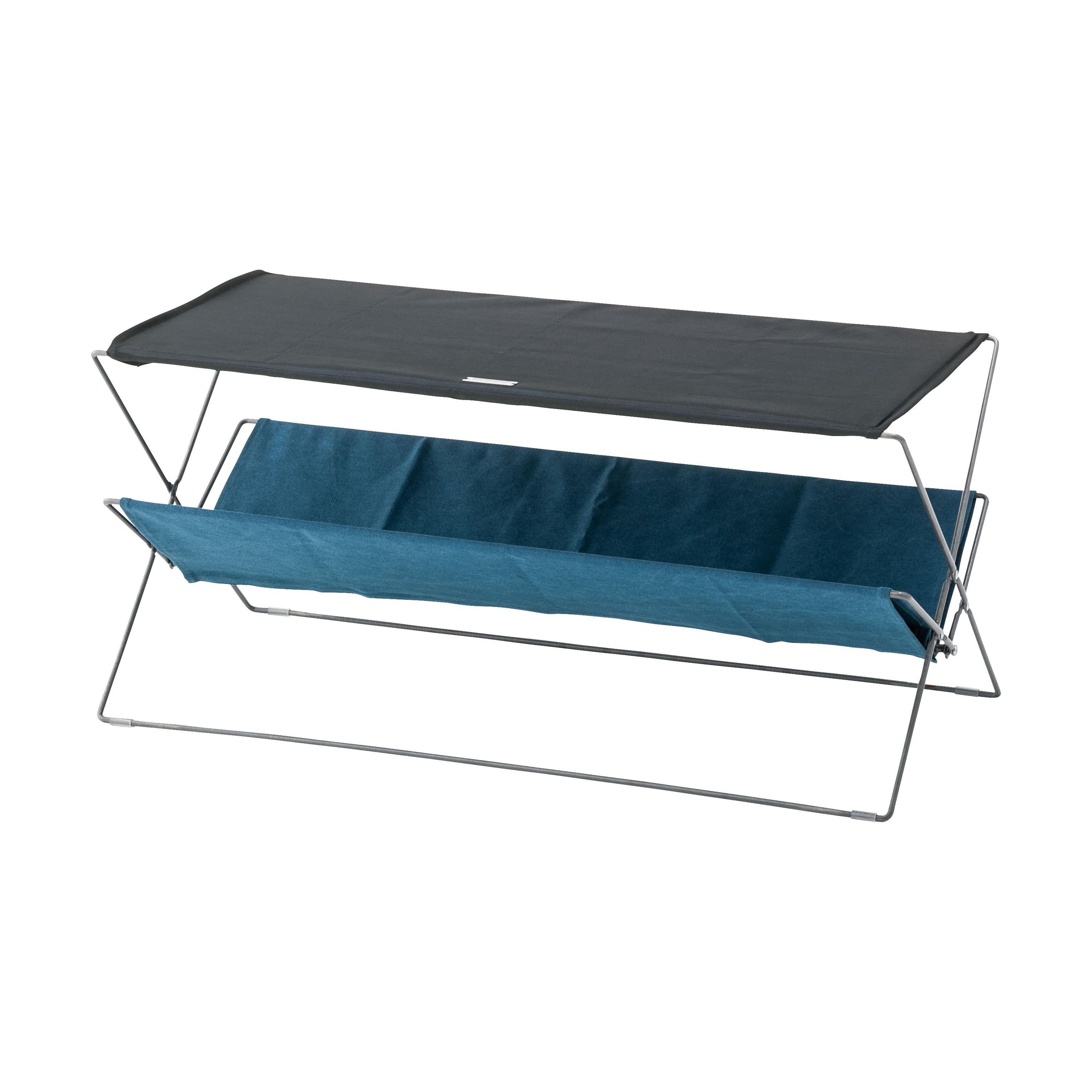 折りたたみができ持ち運びが手軽に行えるので様々なシーンで大活躍。 天板の下はマガジンラックとして使える収納棚付きで機能性も抜群です。