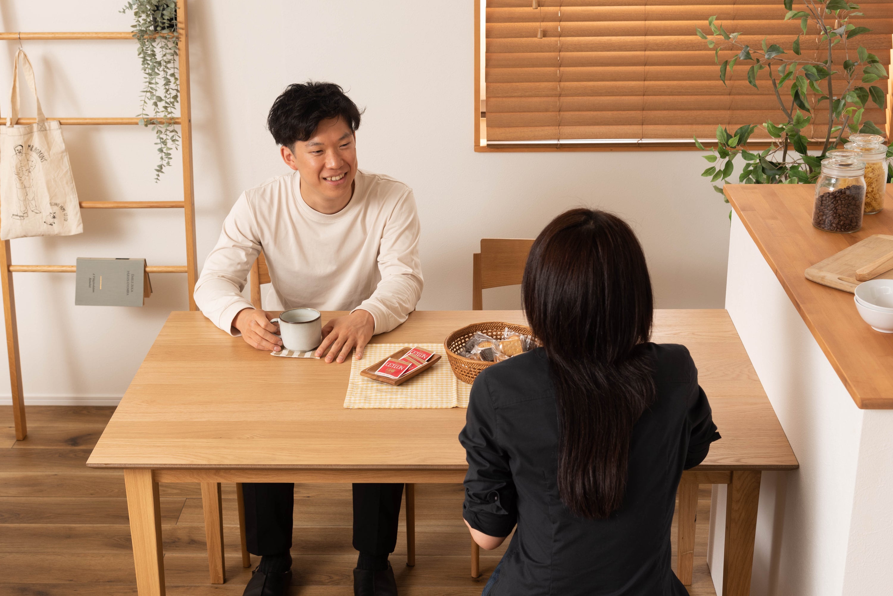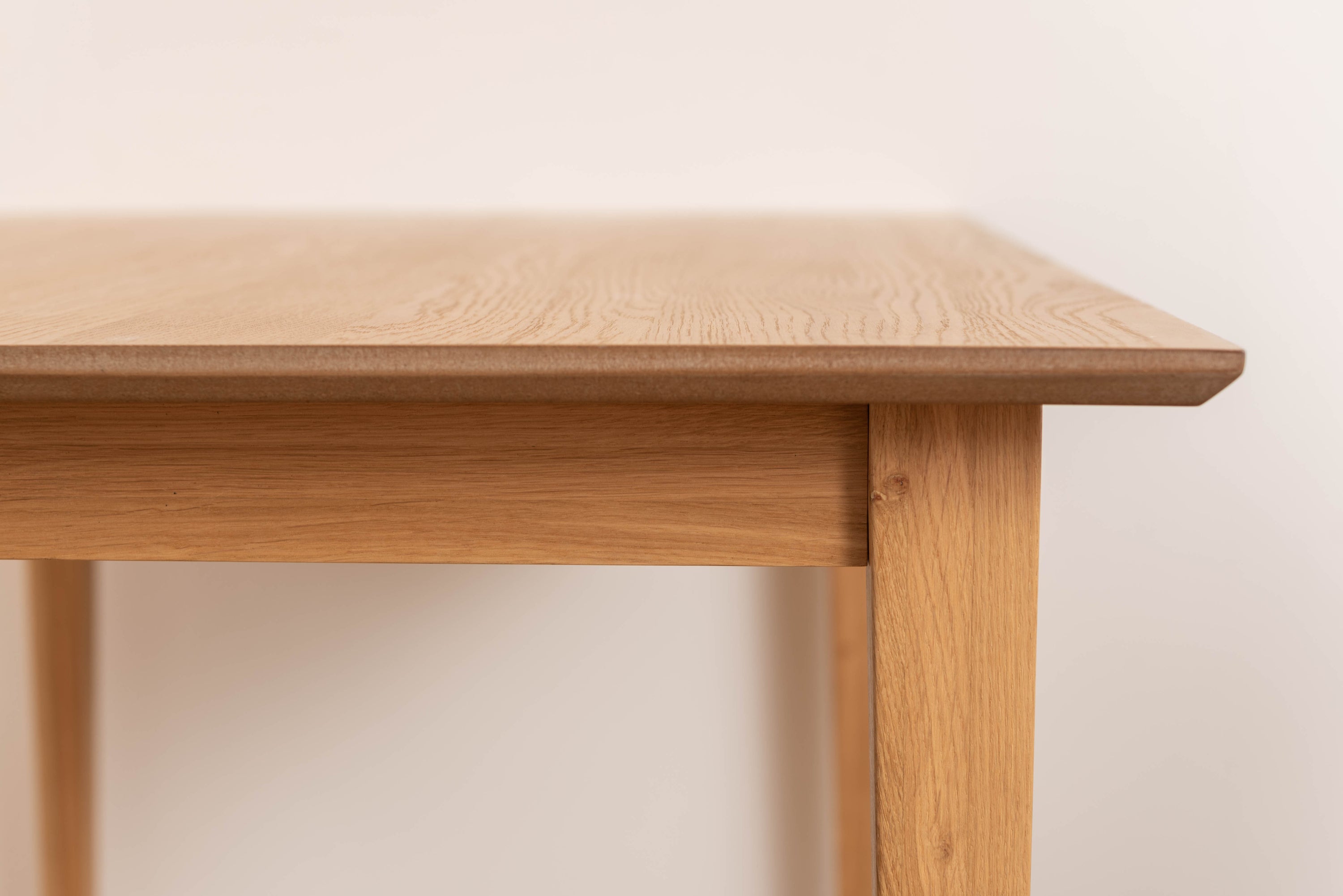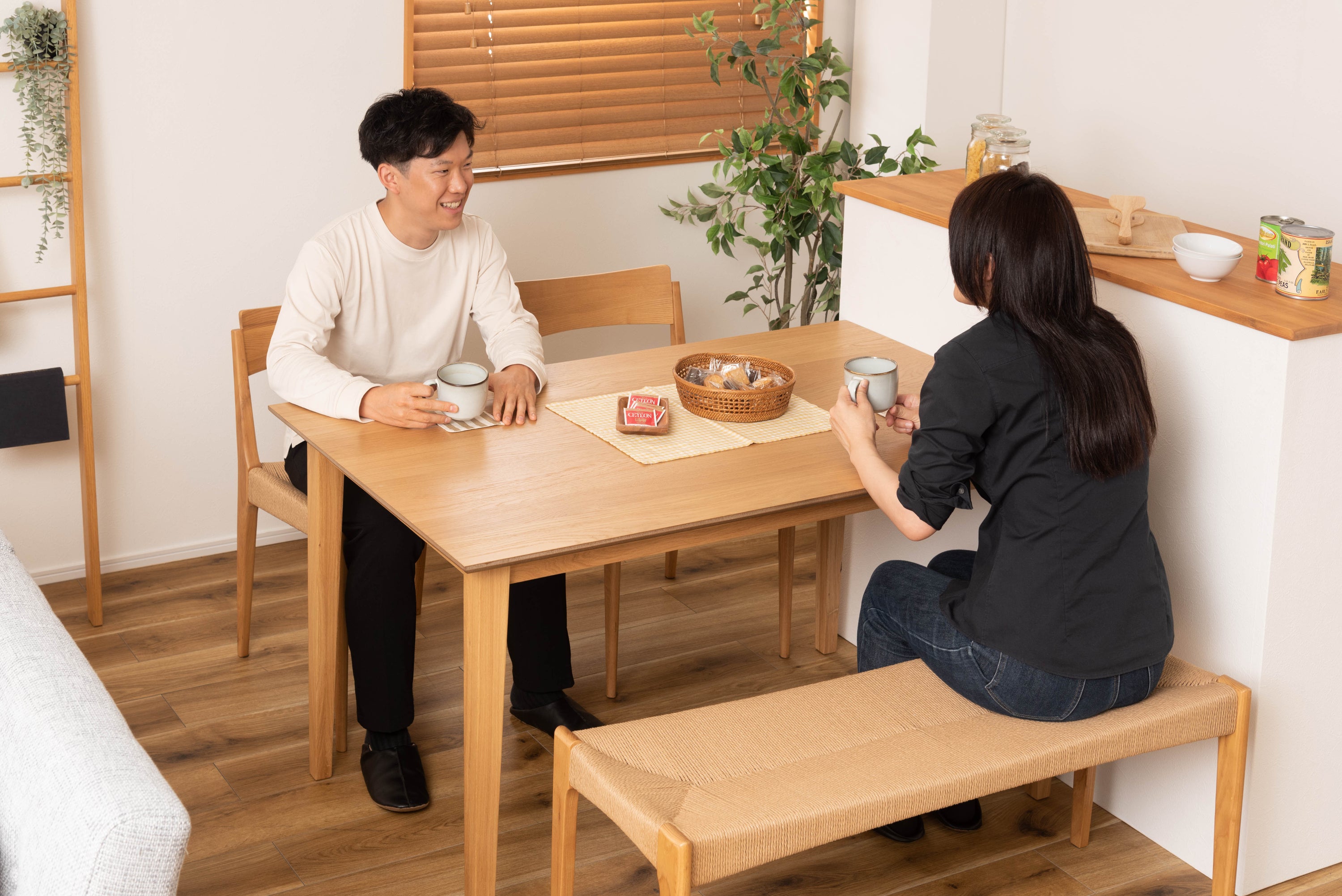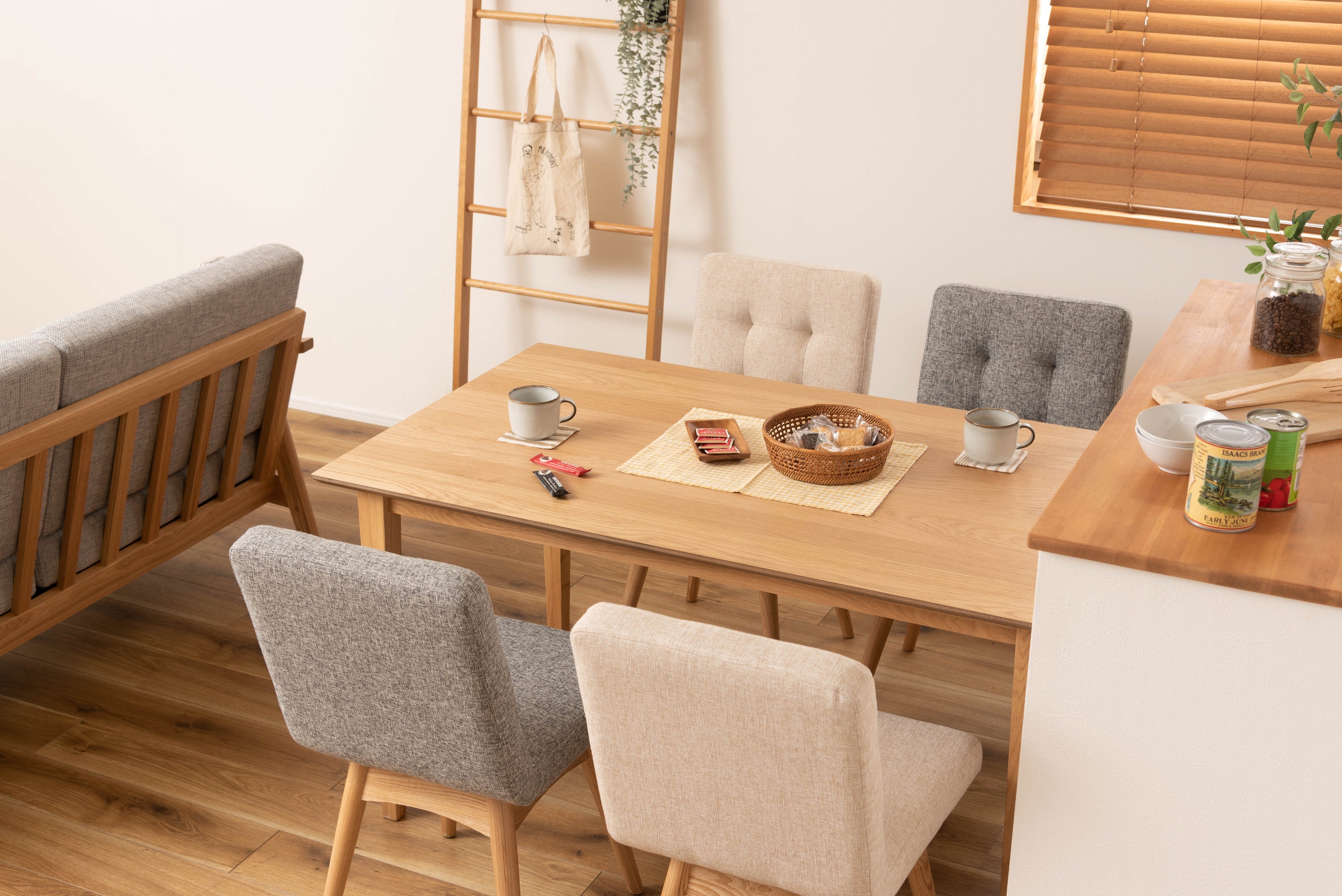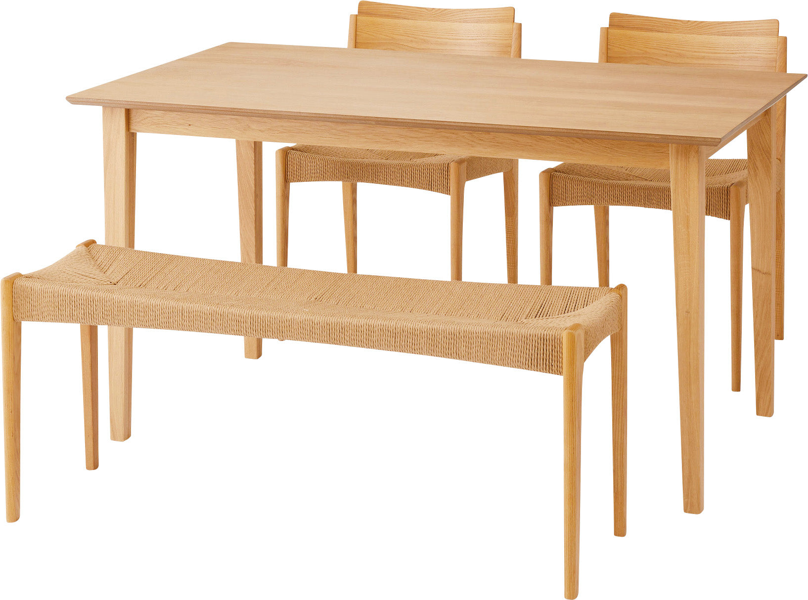 ホワイトオークの木目を活かした、シンプルなデザインのダイニングテーブル。木目が美しいホワイトオークを使用。清楚感があり上品な色味と木目が特徴で、ナチュラル系インテリアの代表的な材として、オーク材の魅力を活かしたシンプルなデザイン。脚は天板側から床側にかけて徐々に細くなっていくテーパードレッグ。ダイニングスペースが重くなりすぎず、様々なチェアに合わせられるデザイン。天板のエッジは斜めにカットしデザイン性の高い仕上がり。サイズ展開は省スペースでも使いやすい135センチと、4人で座ってもゆったりと使用できる150センチの2種類からお選びいただけます。木目の表情を活かした天板が食卓に彩りを与えてくれます。